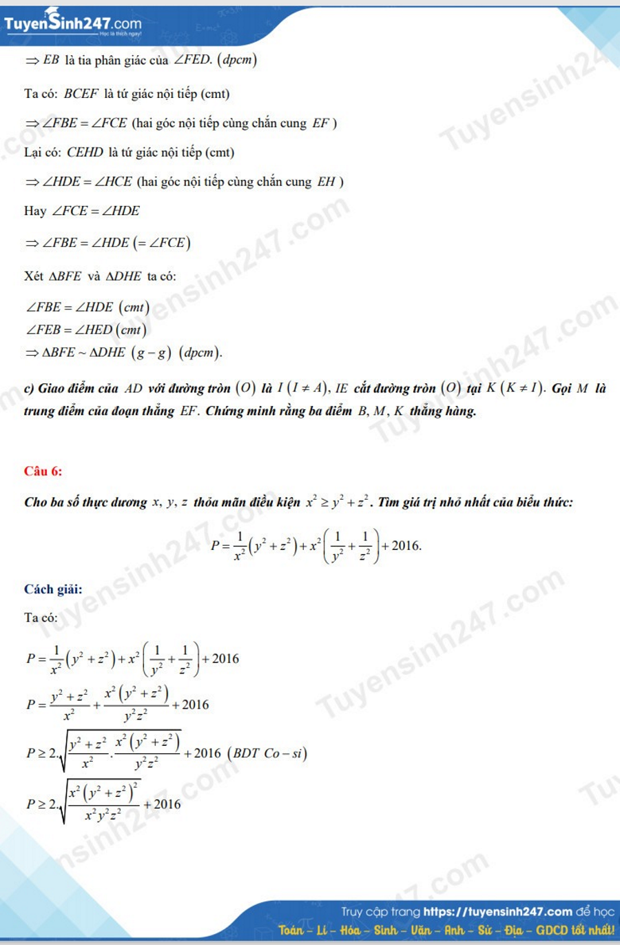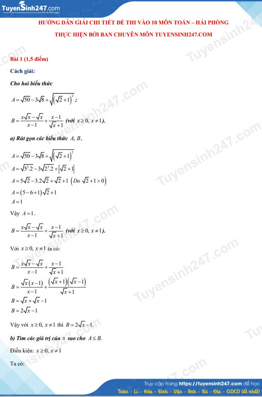 Thí sinh dự thi lớp 10 TP. Hải Phòng vừa hoàn thành bài thi môn Toán. Dưới đây là đáp án do ban chuyên môn Tuyensinh247 thực hiện.