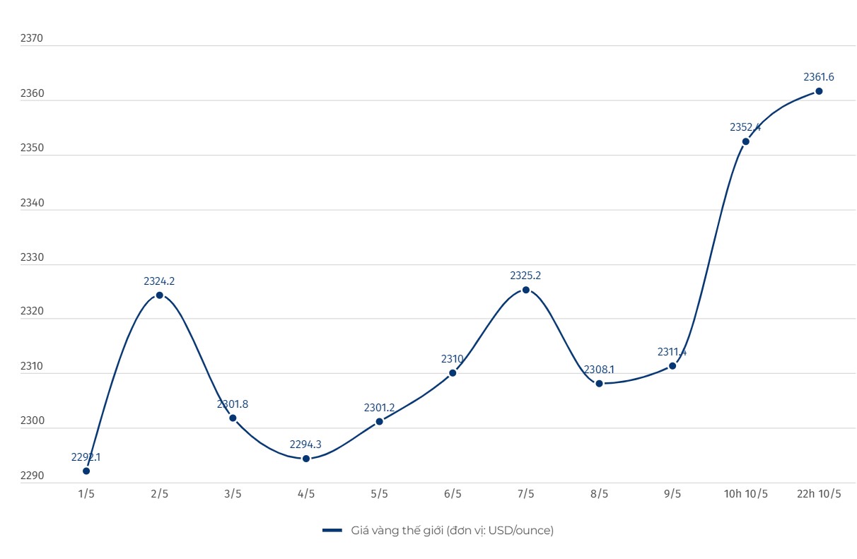 Giá vàng thế giới neo cao bất chấp chỉ số USD vẫn đang rất mạnh. Ghi nhận lúc 22h ngày 10.5, chỉ số US Dollar Index đo lường biến động của đồng bạc xanh với 6 đồng tiền chủ chốt ở ngưỡng 105,270 điểm (tăng 0,15%).