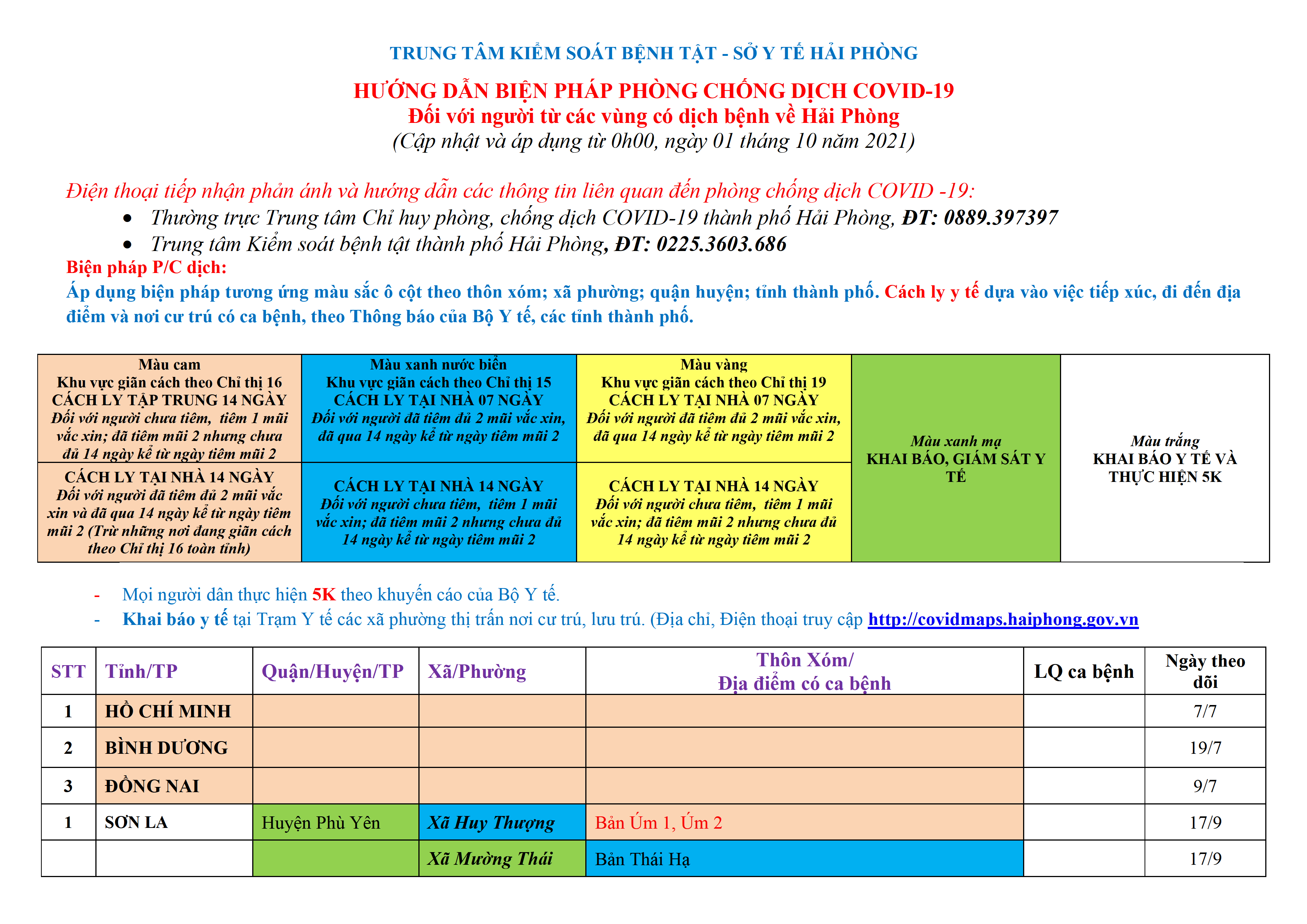 Từ 0h00” ngày 01/10/2021: Điều chỉnh về cách ly y tế đối với người từ các địa phương về Hải Phòng.