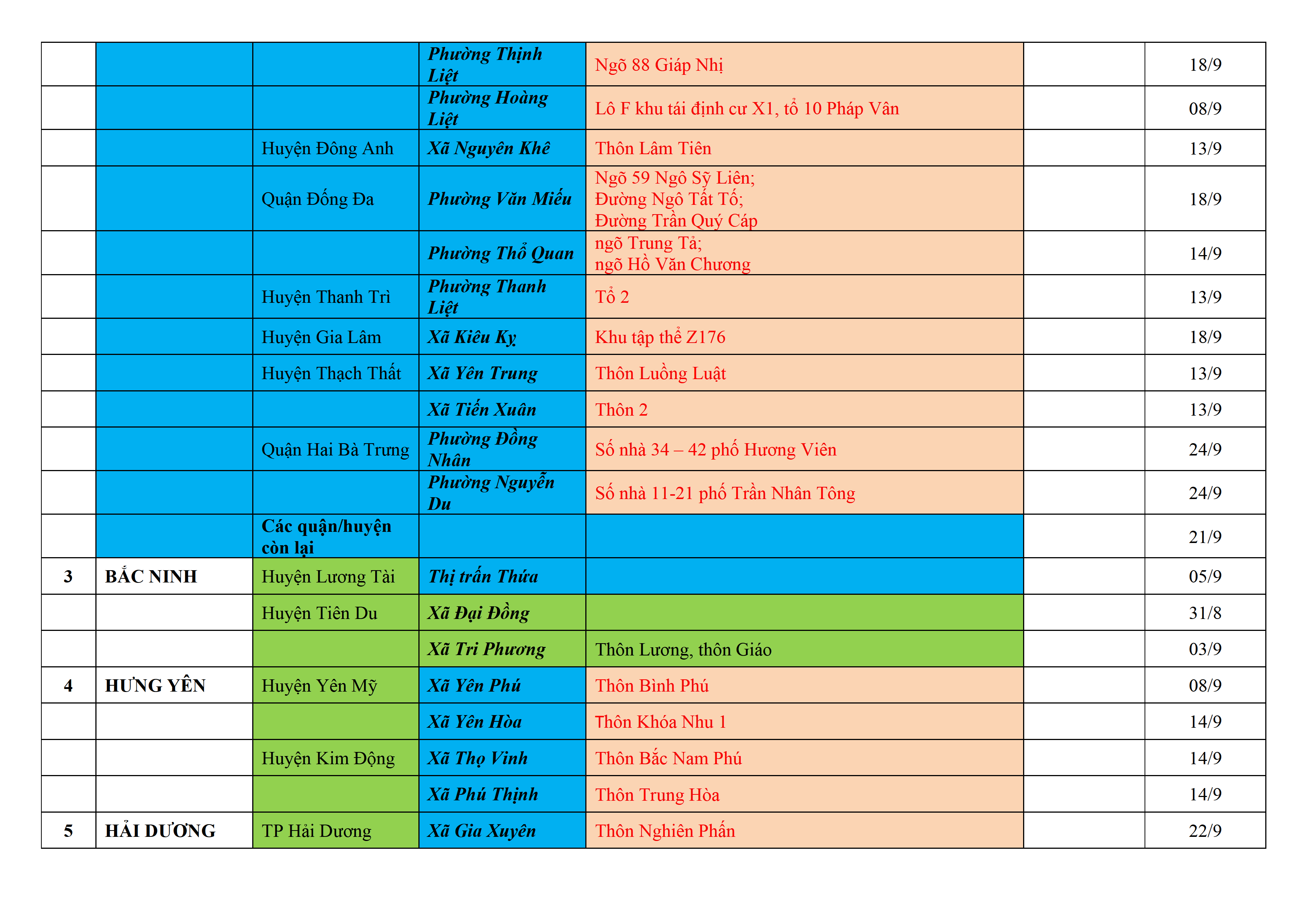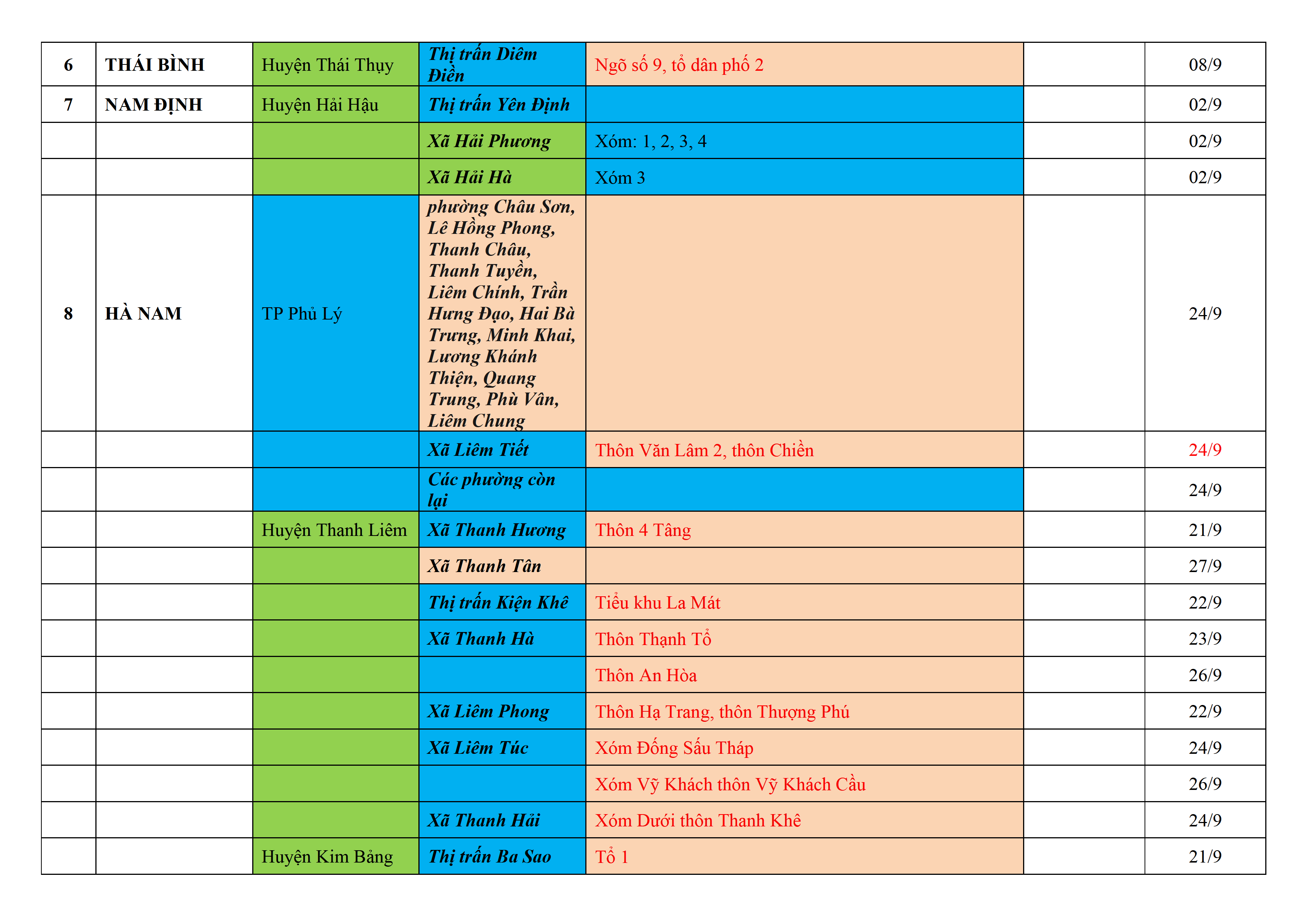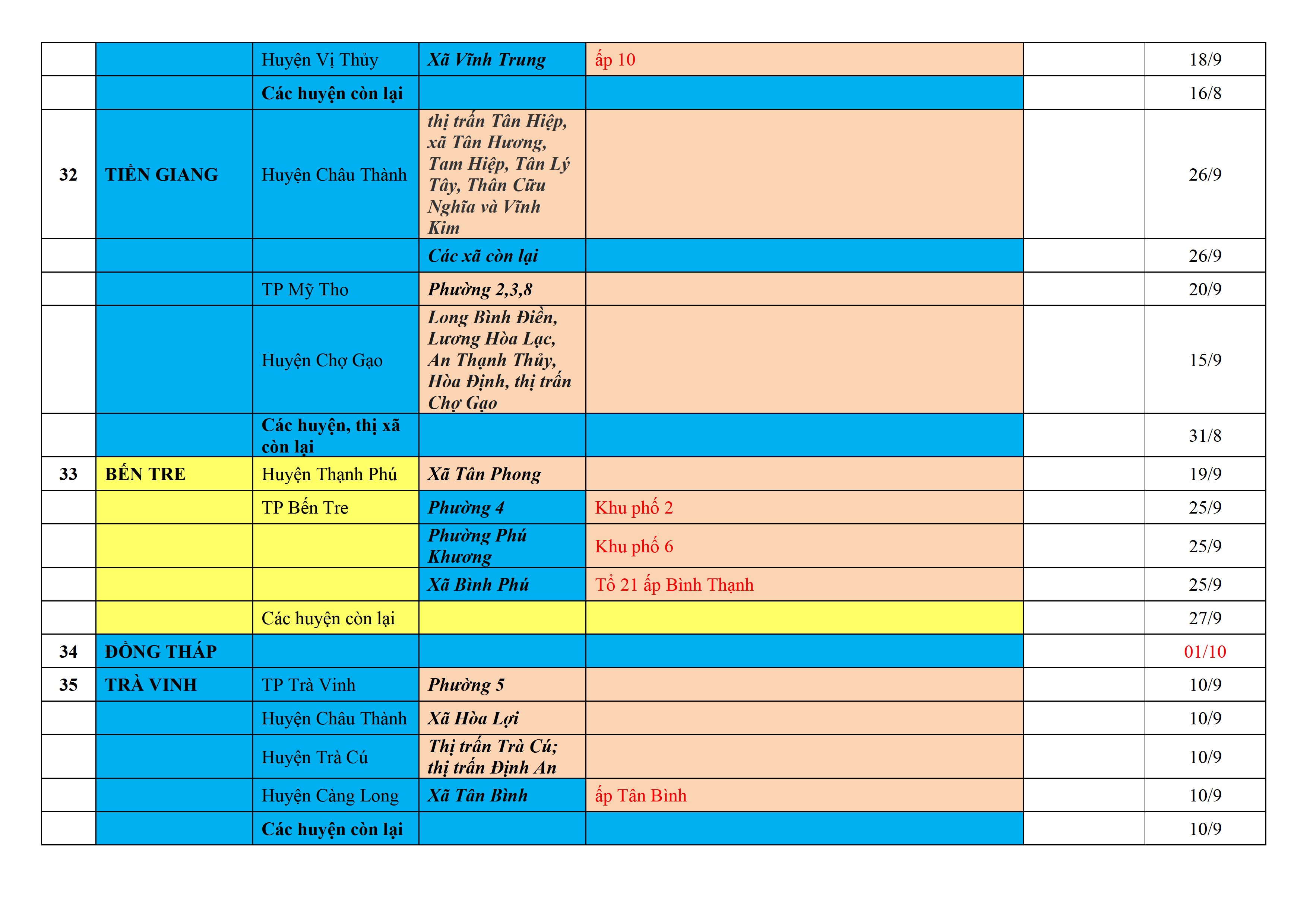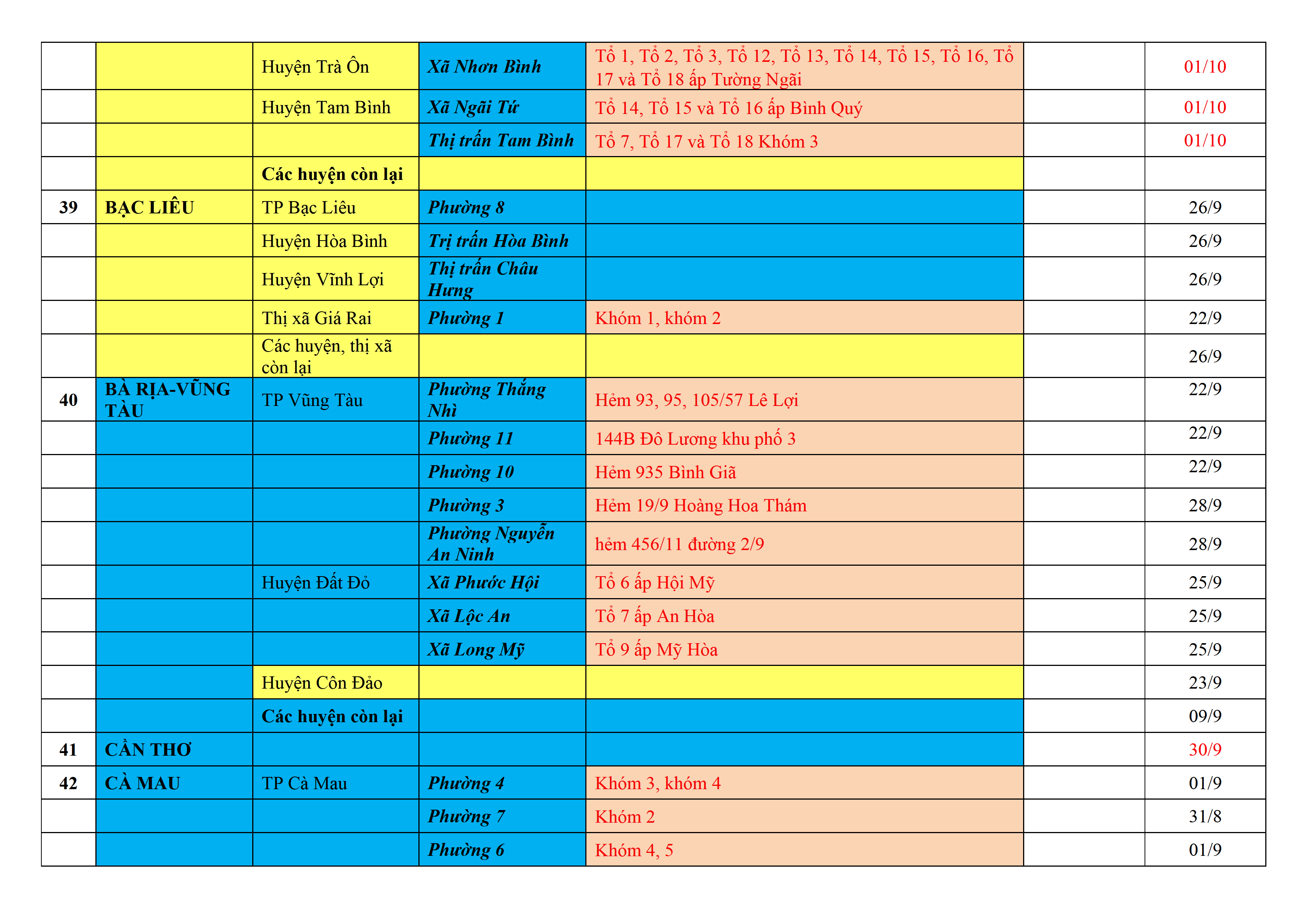 Áp dụng biện pháp tương ứng màu sắc ô cột theo thôn xóm; xã phường; quận huyện; tỉnh thành phố. Cách ly y tế dựa vào việc tiếp xúc, đi đến địa điểm và nơi cư trú có ca bệnh, theo Thông báo của Bộ Y tế, các tỉnh thành phố.
