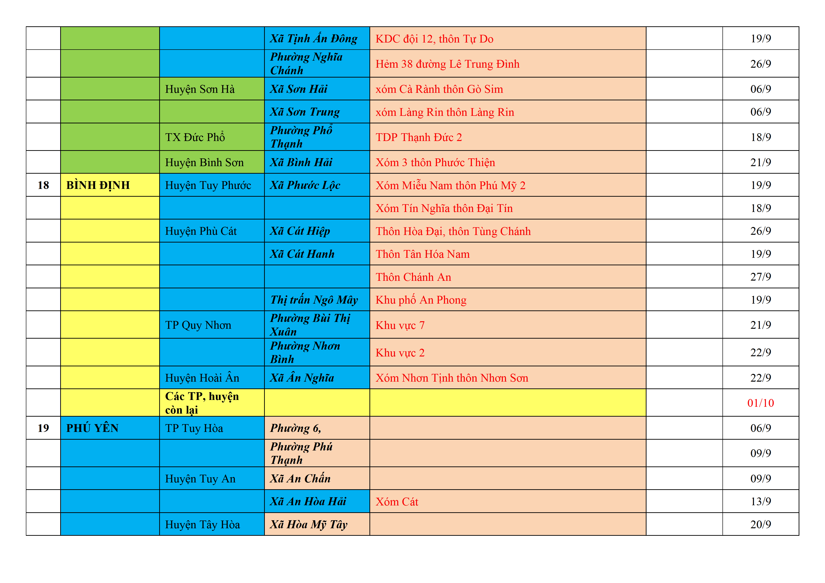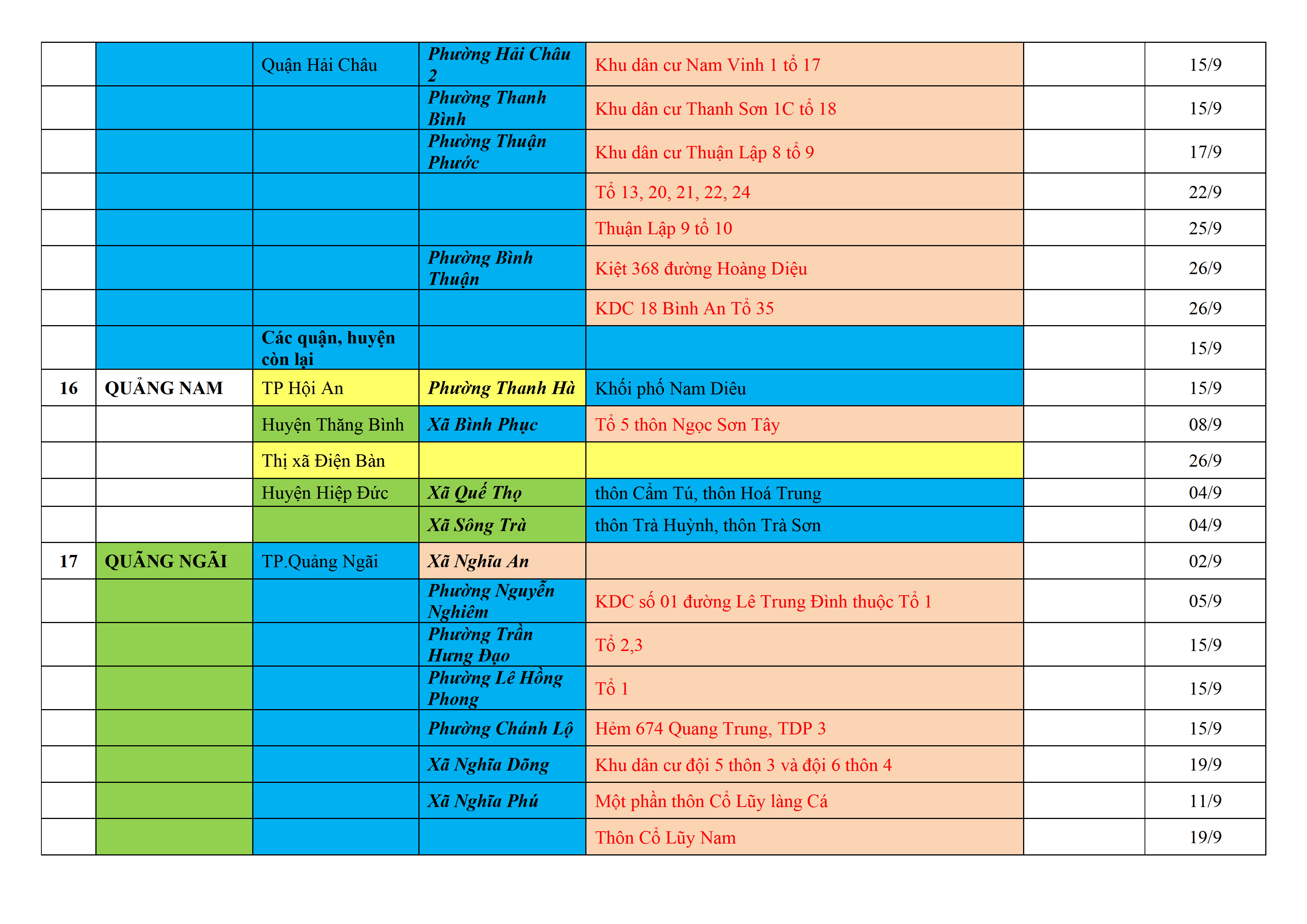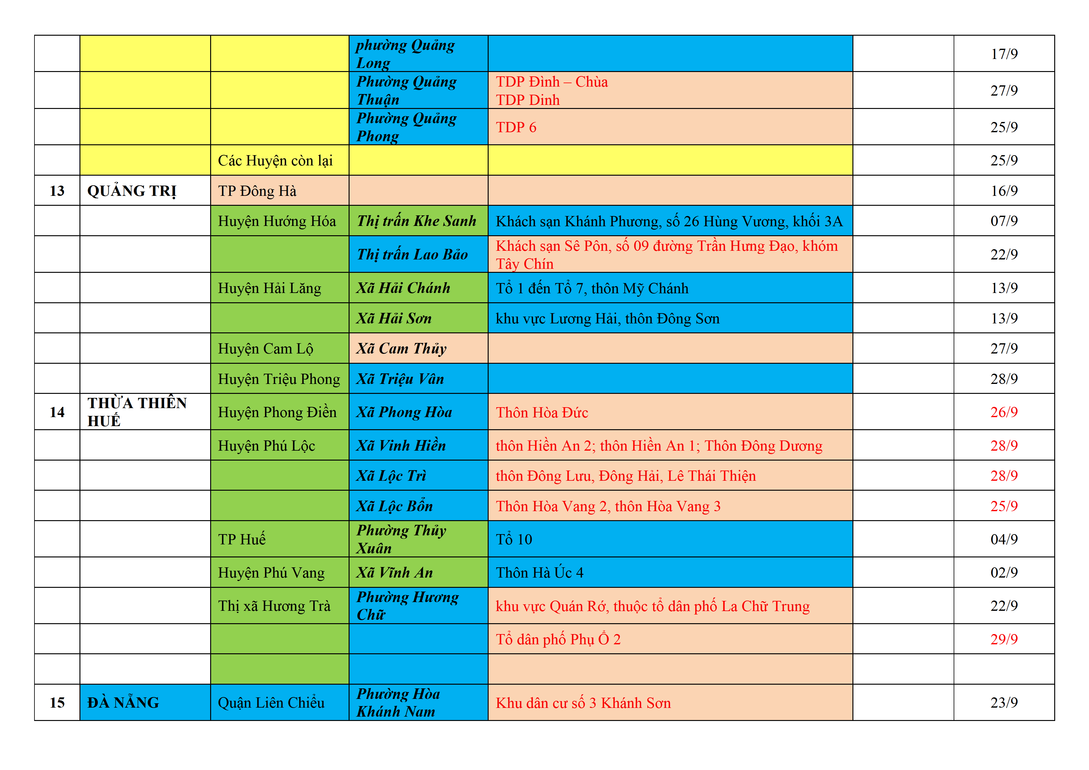 Áp dụng biện pháp tương ứng màu sắc ô cột theo thôn xóm; xã phường; quận huyện; tỉnh thành phố. Cách ly y tế dựa vào việc tiếp xúc, đi đến địa điểm và nơi cư trú có ca bệnh, theo Thông báo của Bộ Y tế, các tỉnh thành phố.