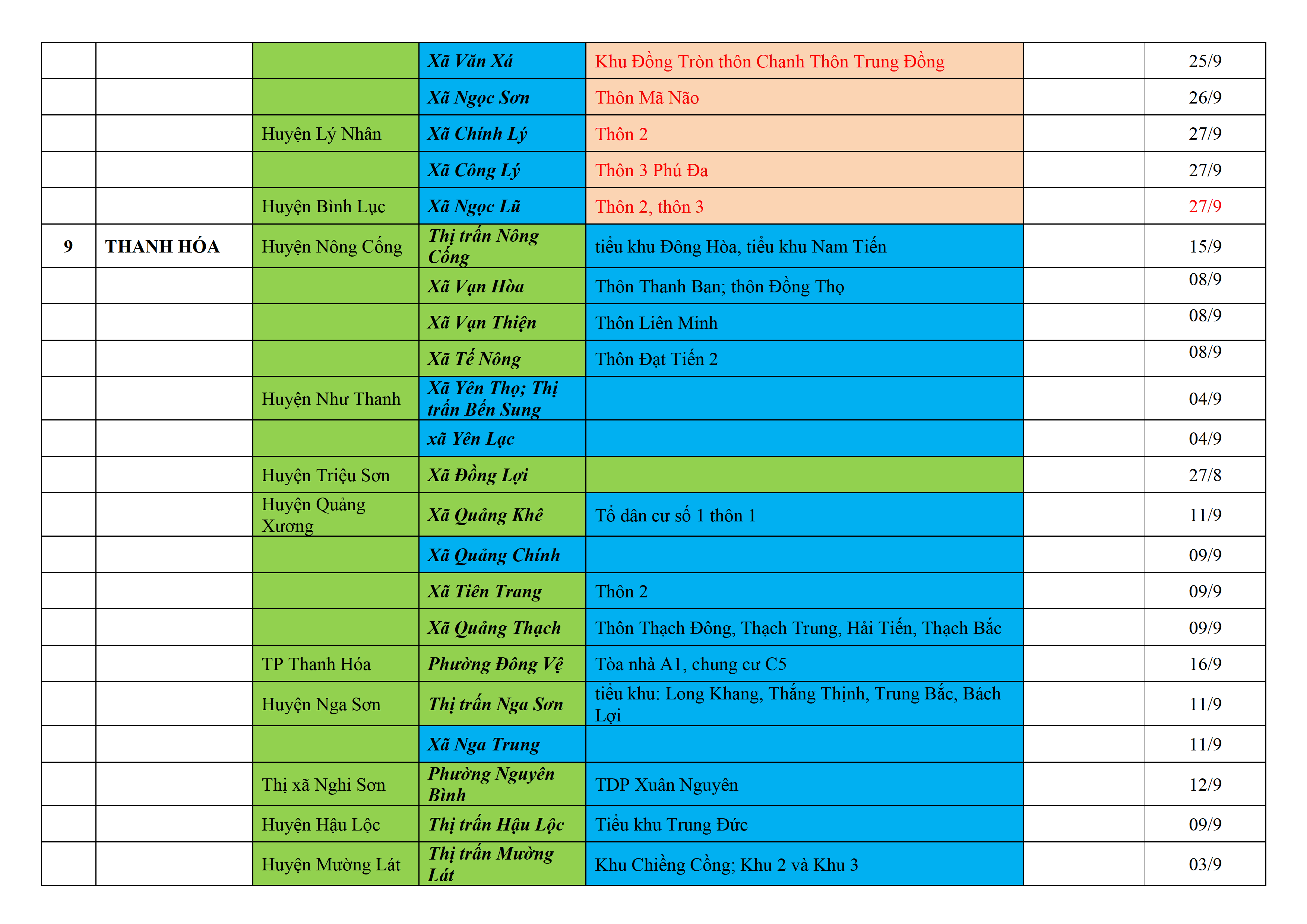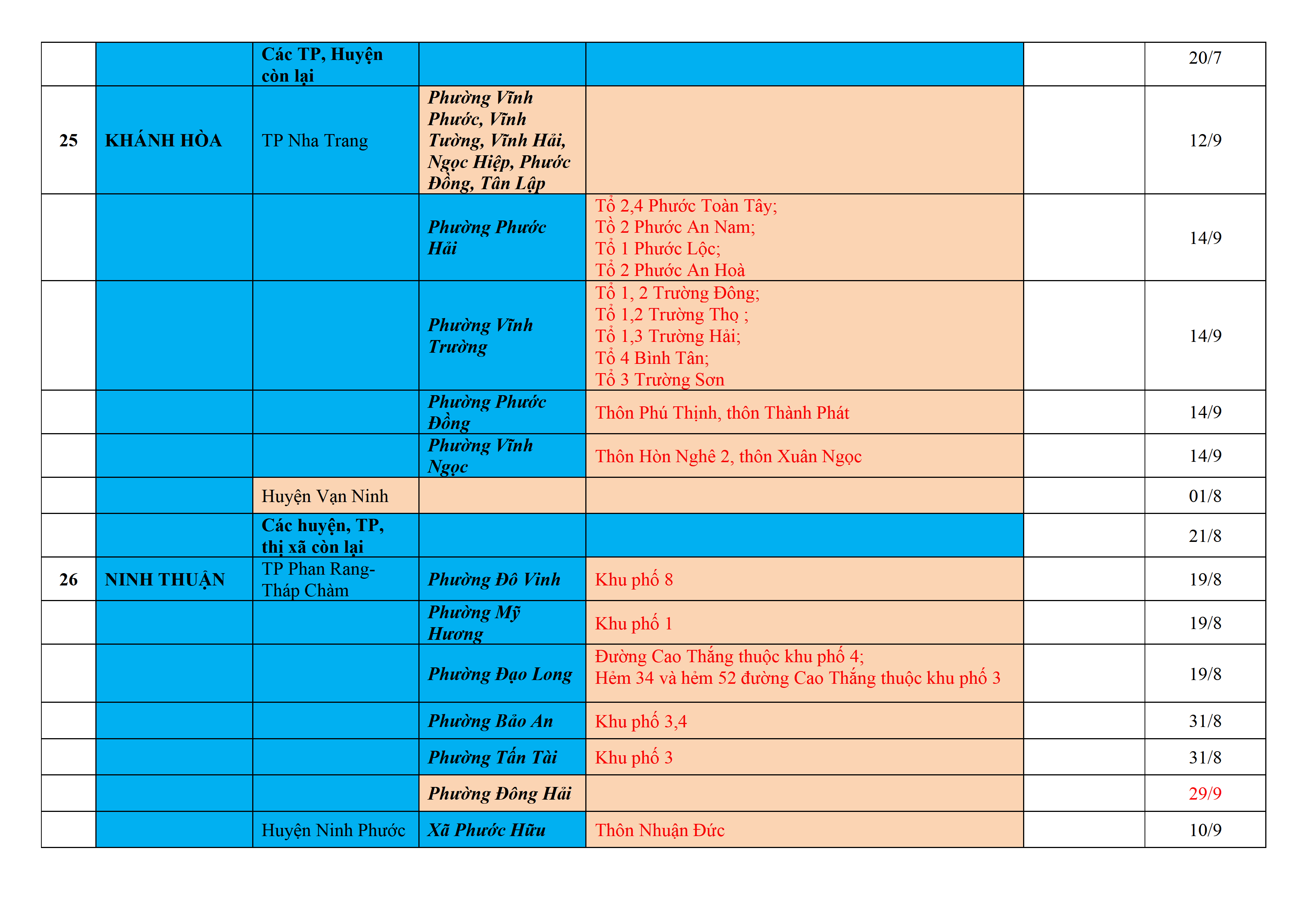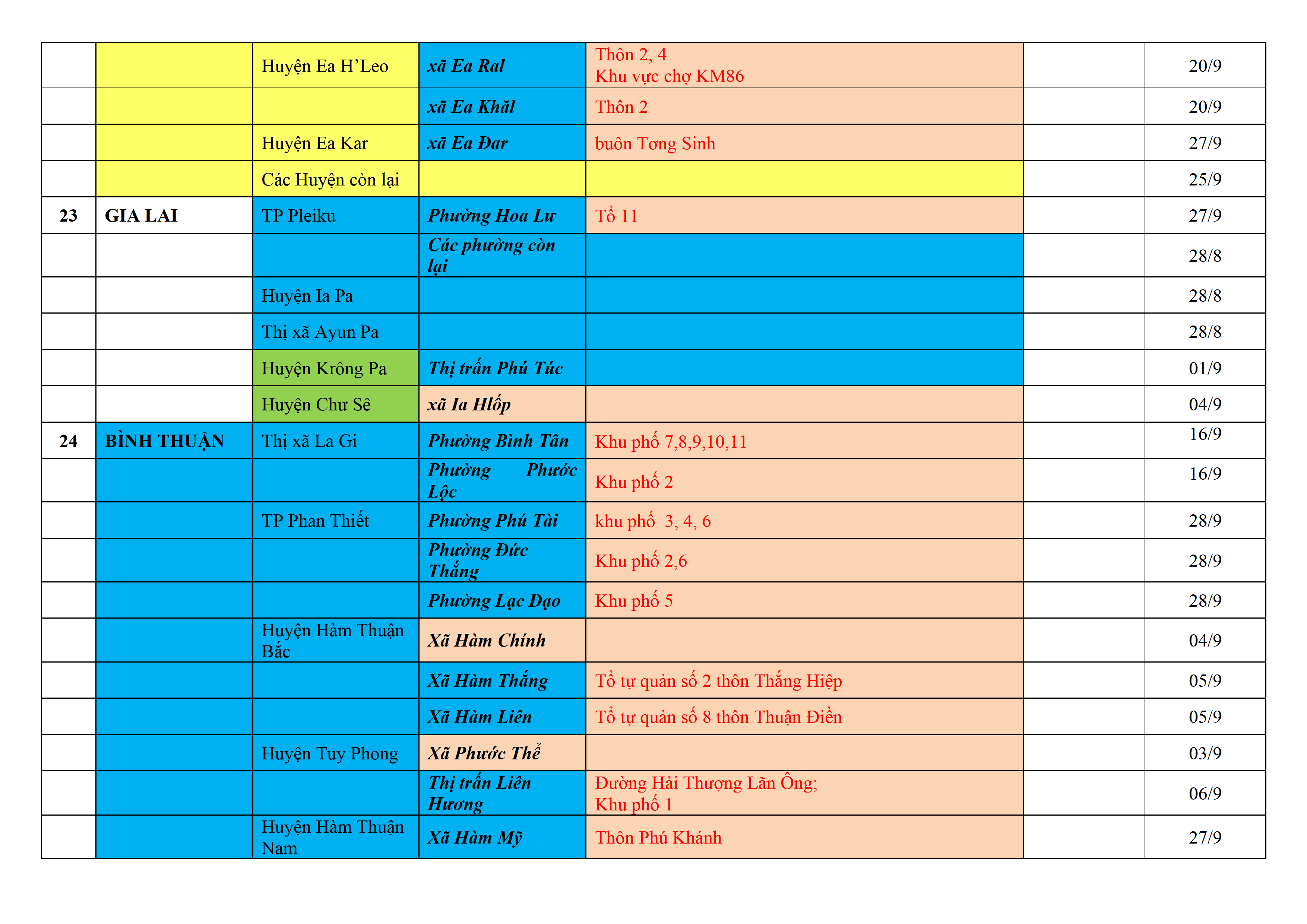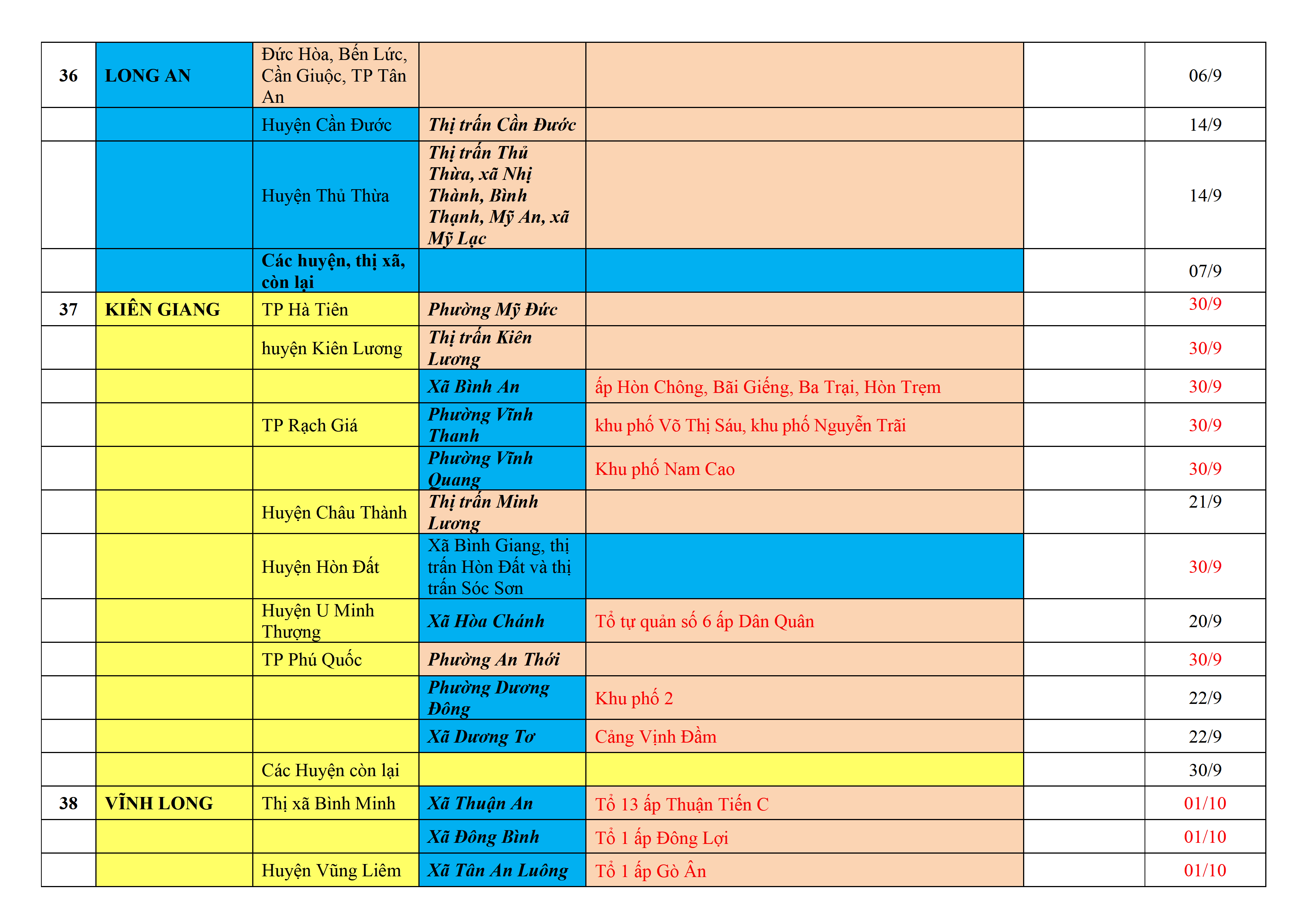 Áp dụng biện pháp tương ứng màu sắc ô cột theo thôn xóm; xã phường; quận huyện; tỉnh thành phố. Cách ly y tế dựa vào việc tiếp xúc, đi đến địa điểm và nơi cư trú có ca bệnh, theo Thông báo của Bộ Y tế, các tỉnh thành phố.