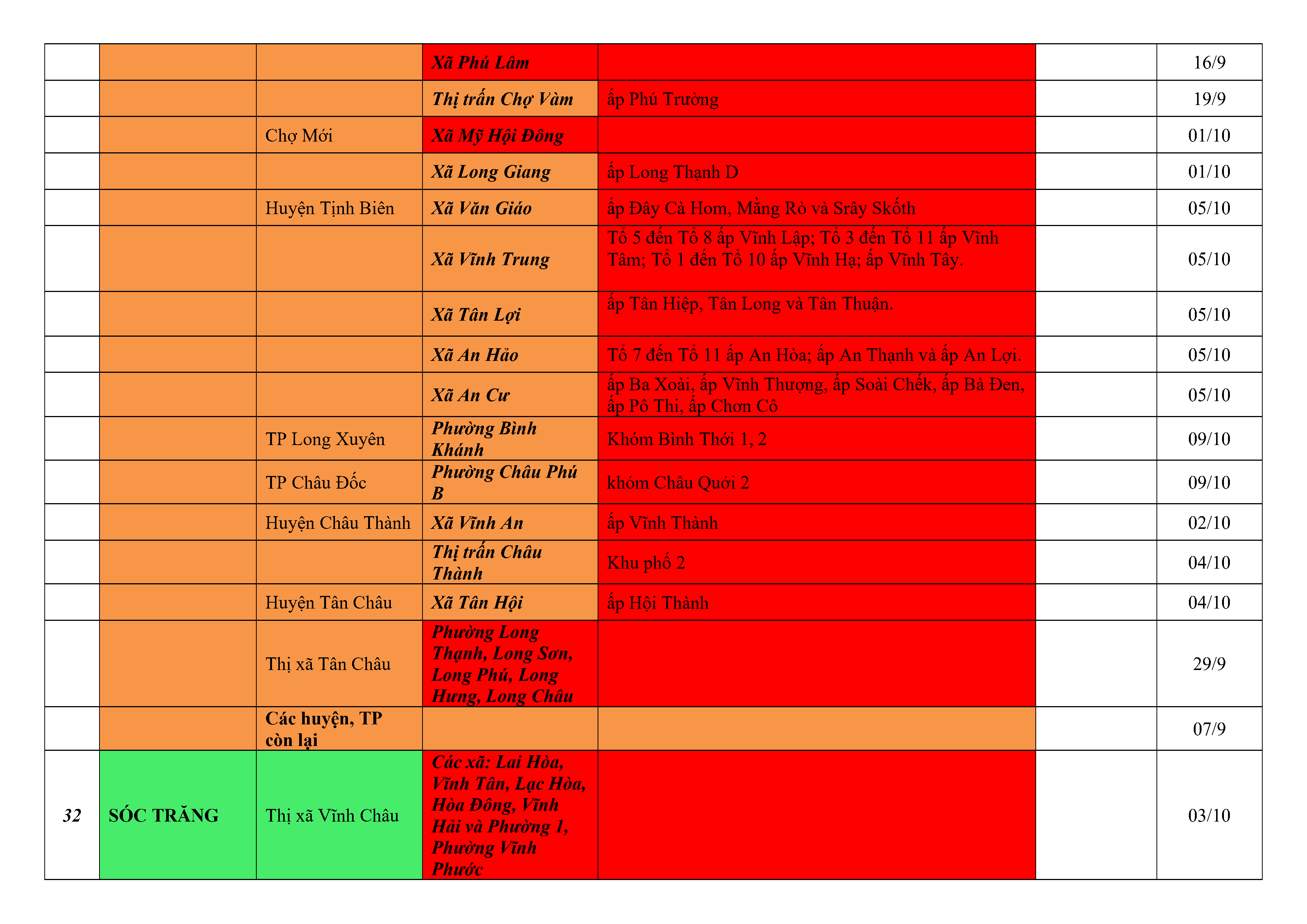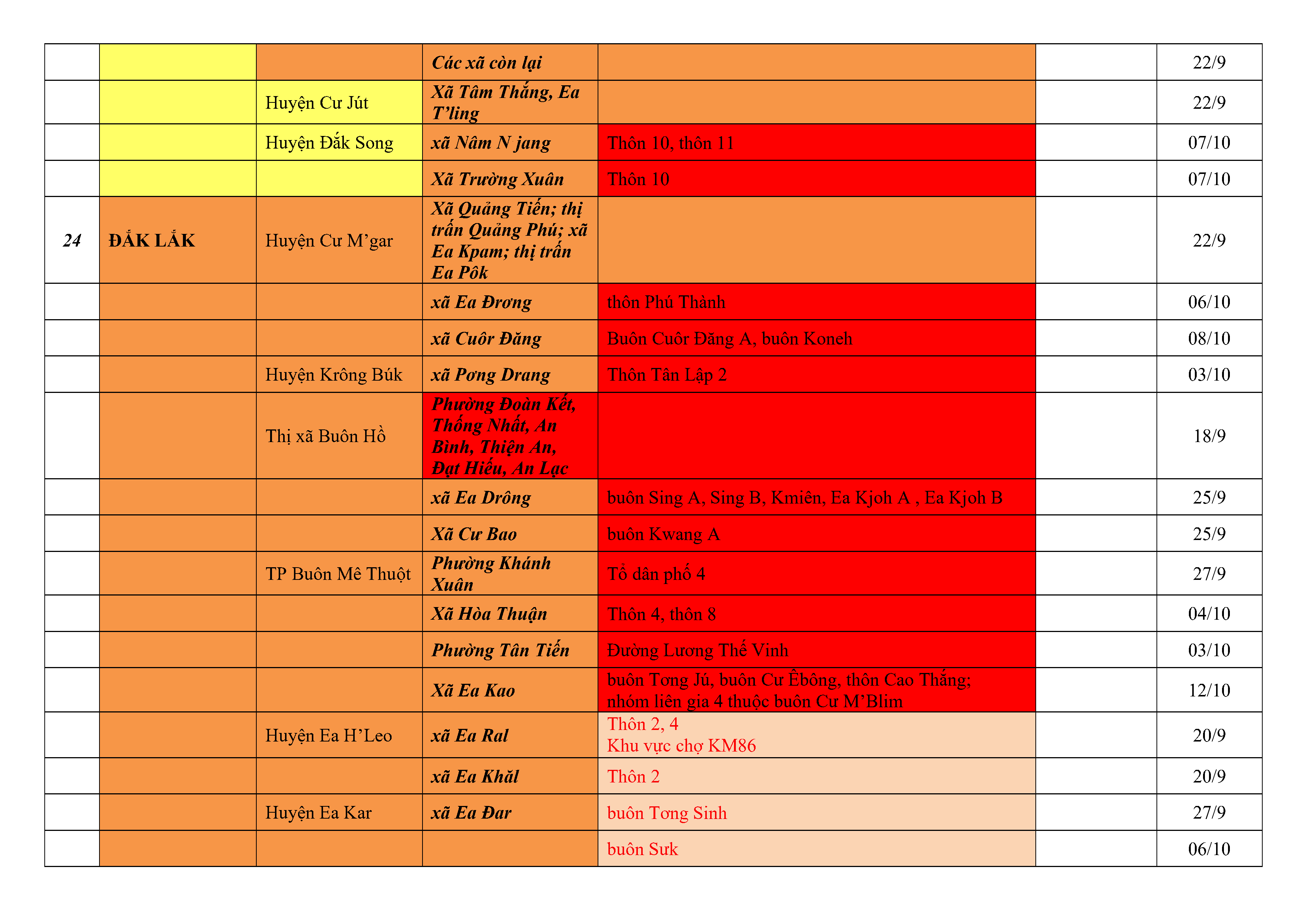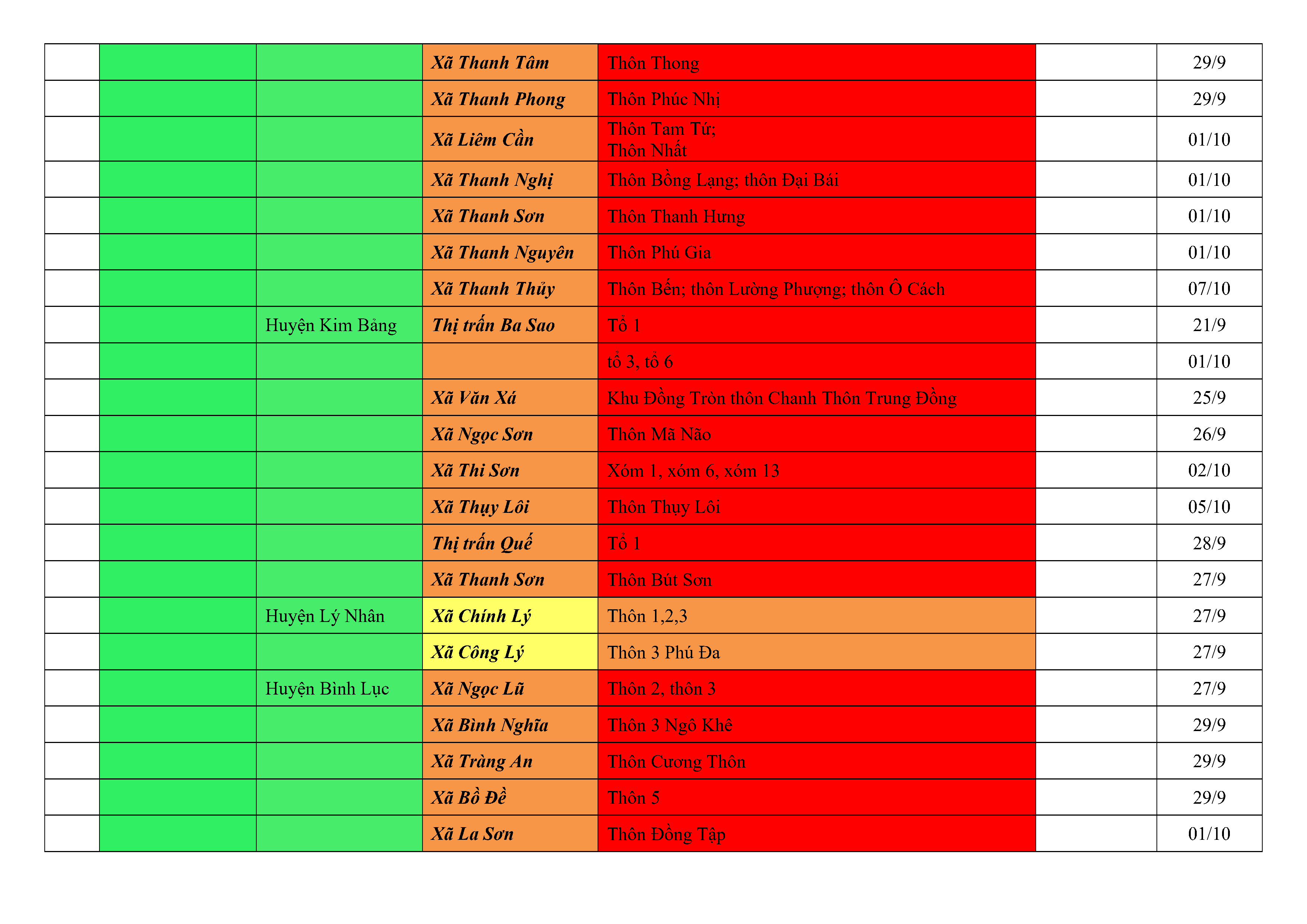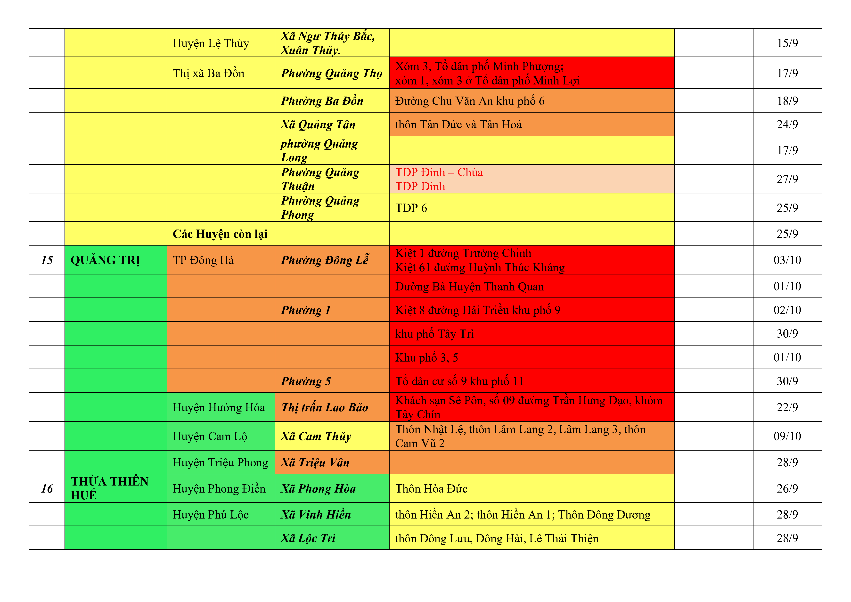 Lưu ý: các tỉnh, thành phố không có tên trong bảng màu, đi lại bình thường, tuân thủ các biện pháp phòng chống dịch theo chỉ đạo của Bộ Y tế; khai bào y tế, thực hiện nghiêm 5K.