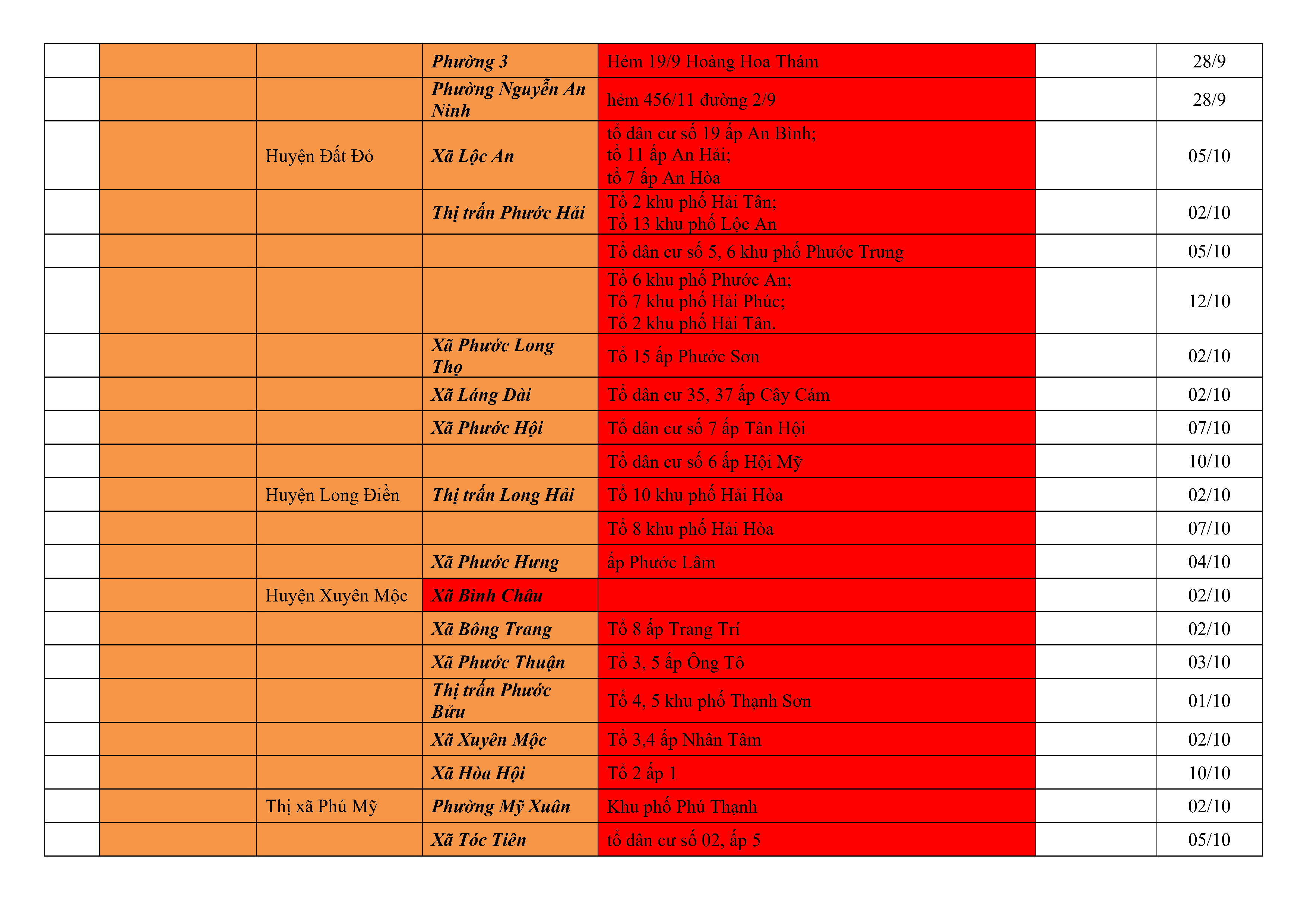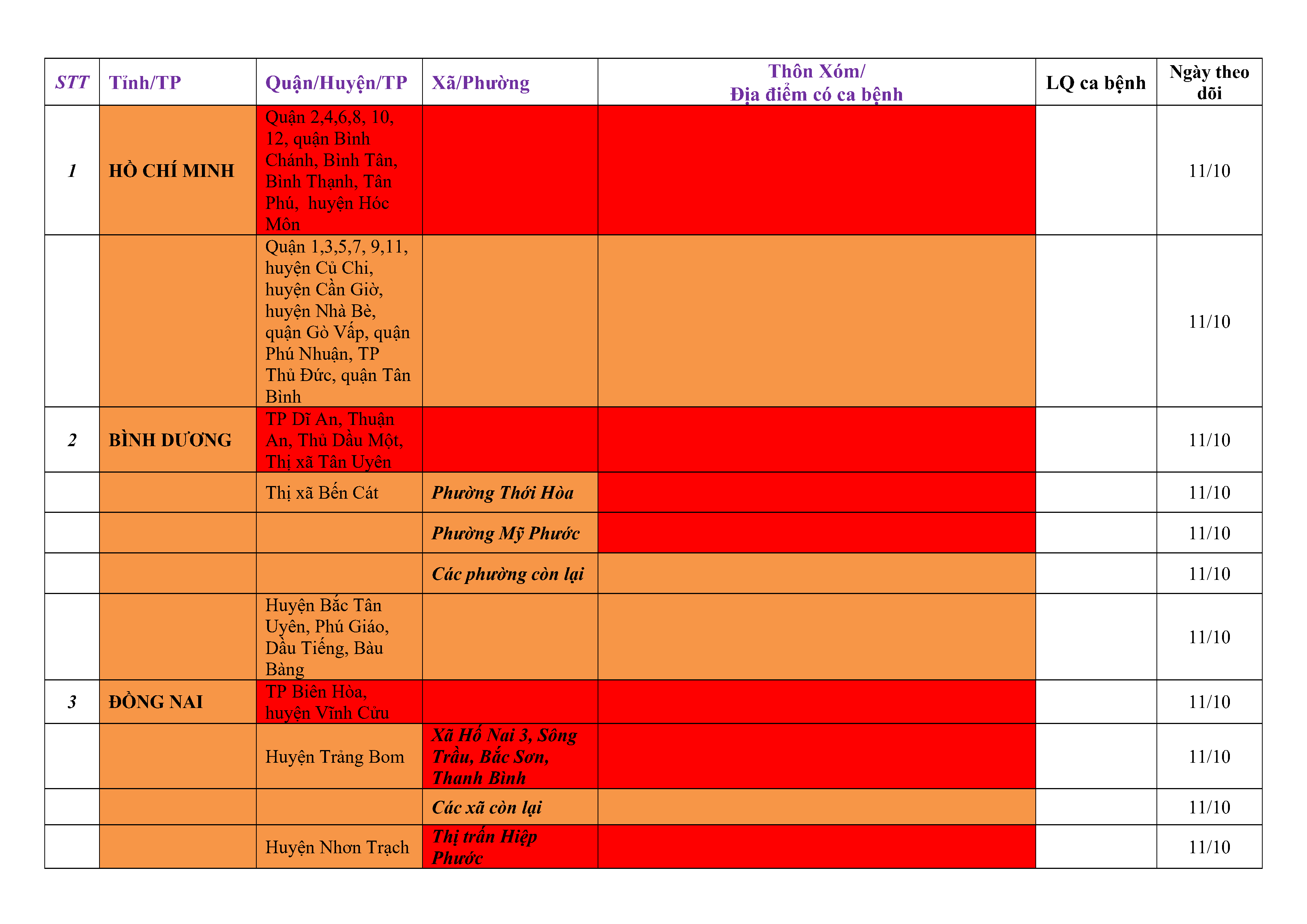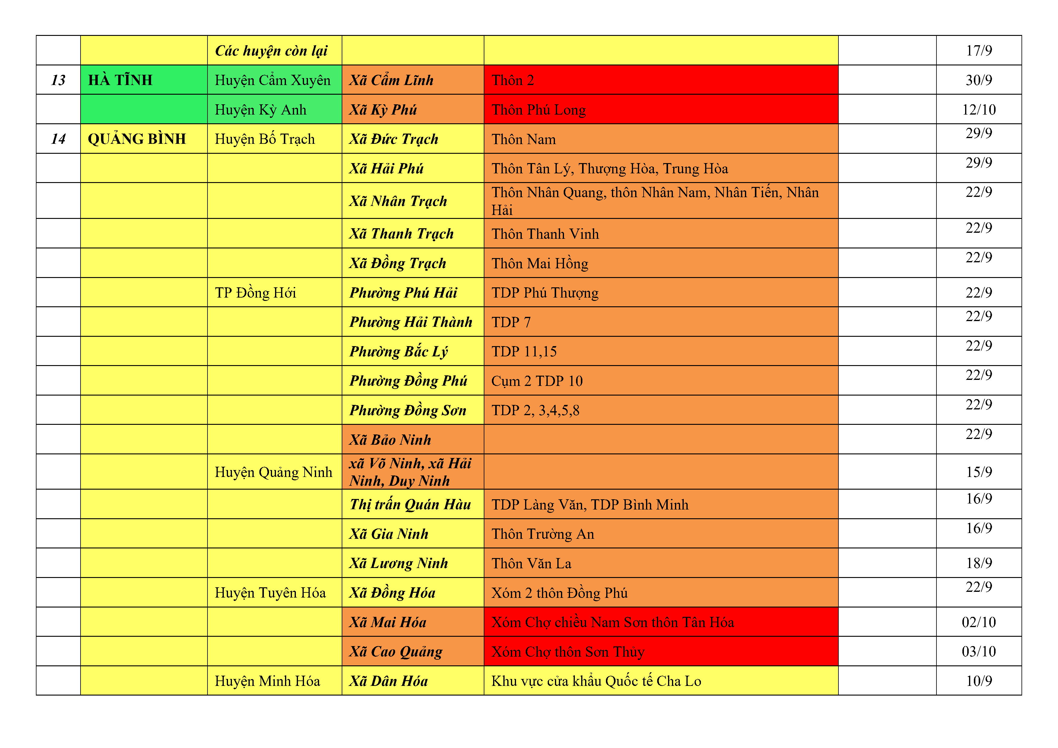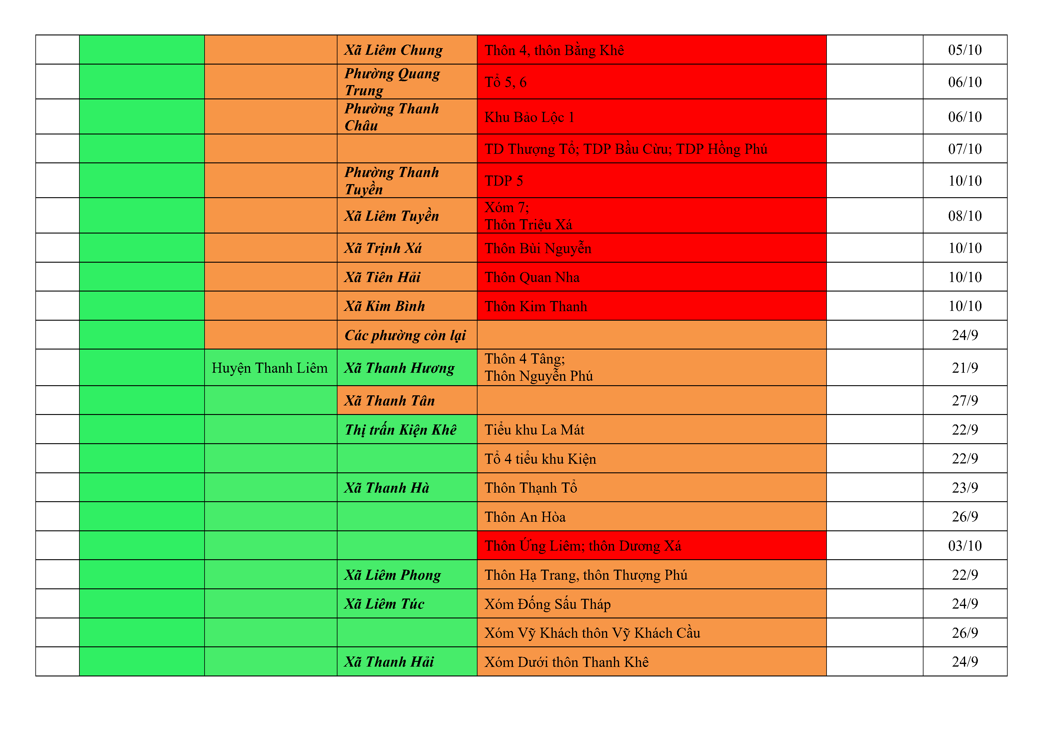 Lưu ý: các tỉnh, thành phố không có tên trong bảng màu, đi lại bình thường, tuân thủ các biện pháp phòng chống dịch theo chỉ đạo của Bộ Y tế; khai bào y tế, thực hiện nghiêm 5K.