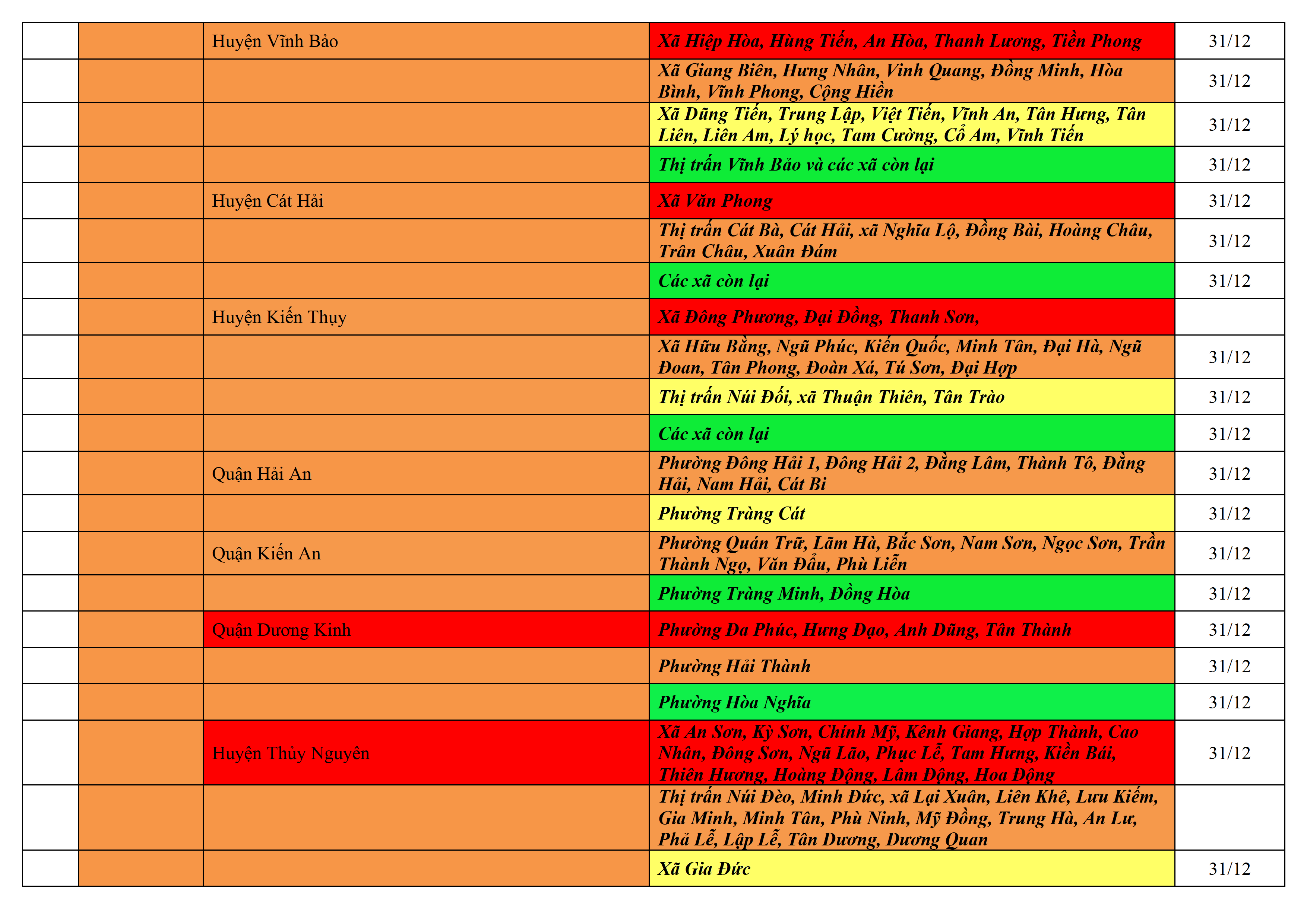 . Mọi người dân thực hiện 5K theo khuyến cáo của Bộ Y tế. Khai báo y tế tại Trạm Y tế các xã phường thị trấn nơi cư trú, lưu trú. (truy cập http://covidmaps.haiphong.gov.vn).
