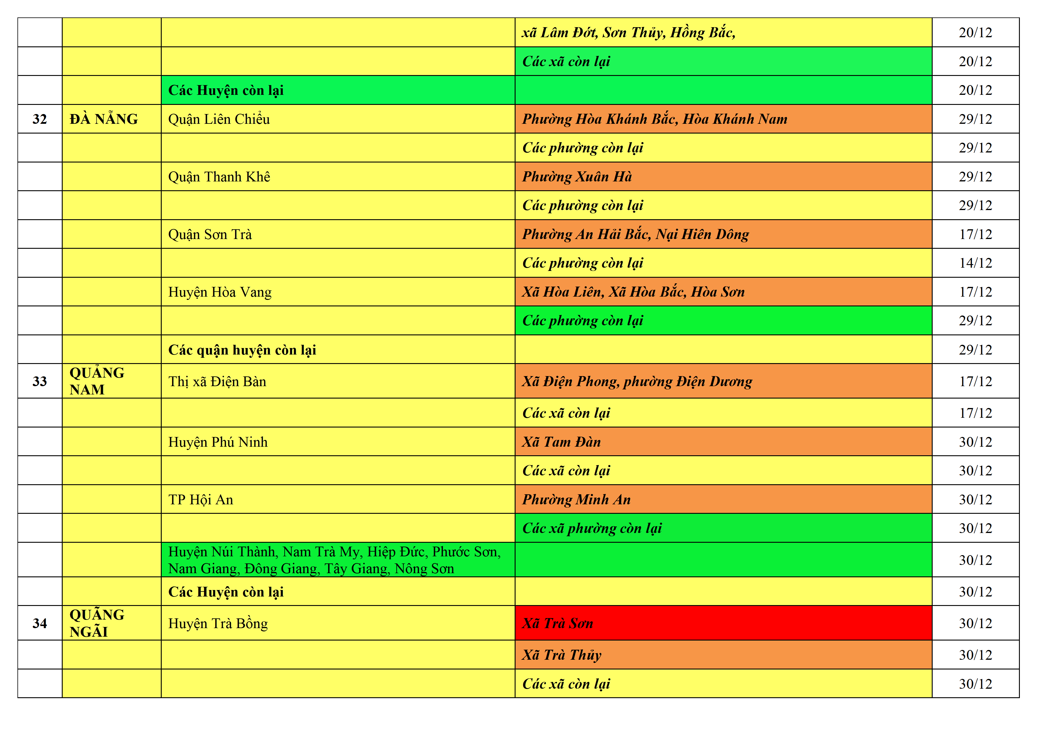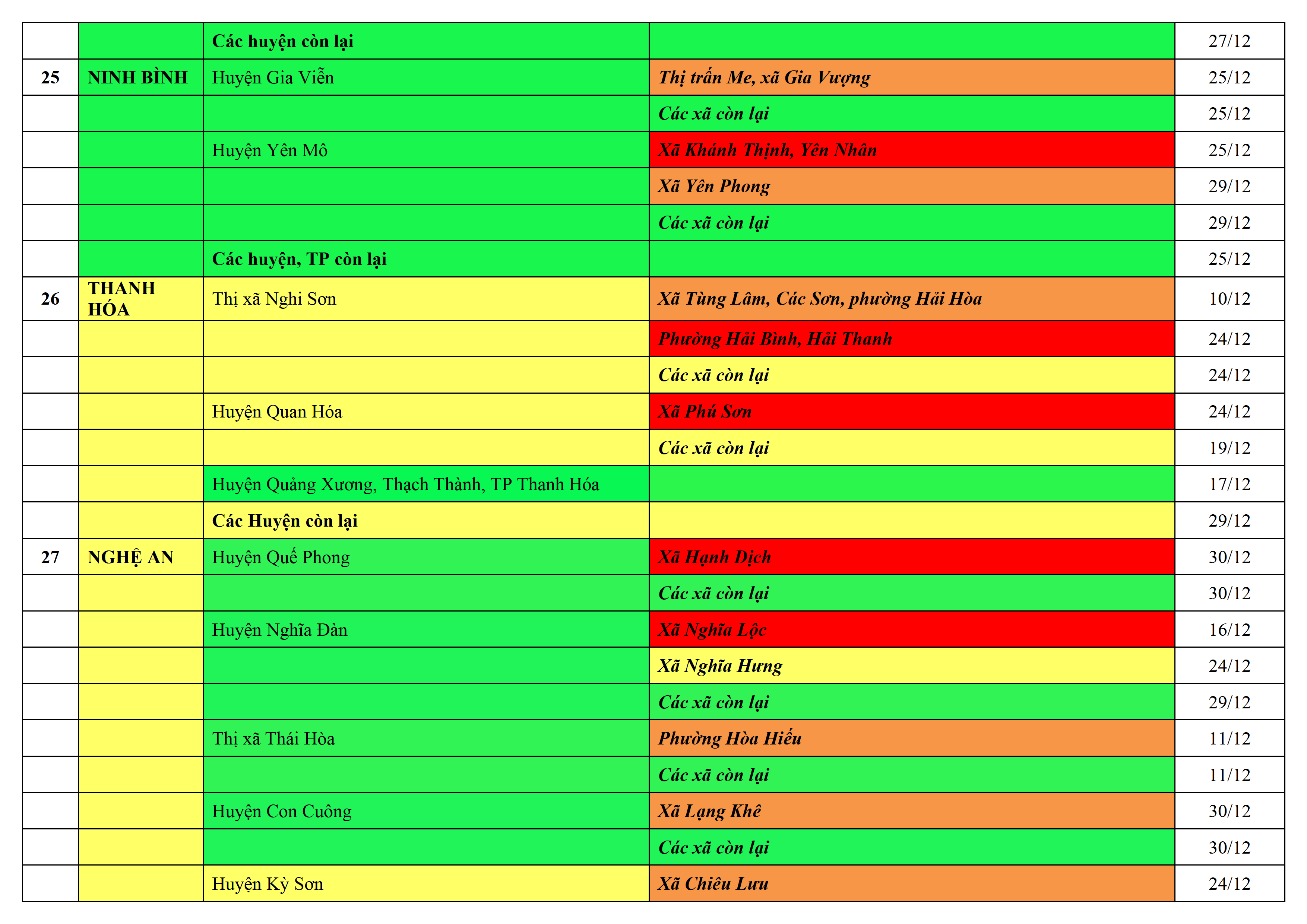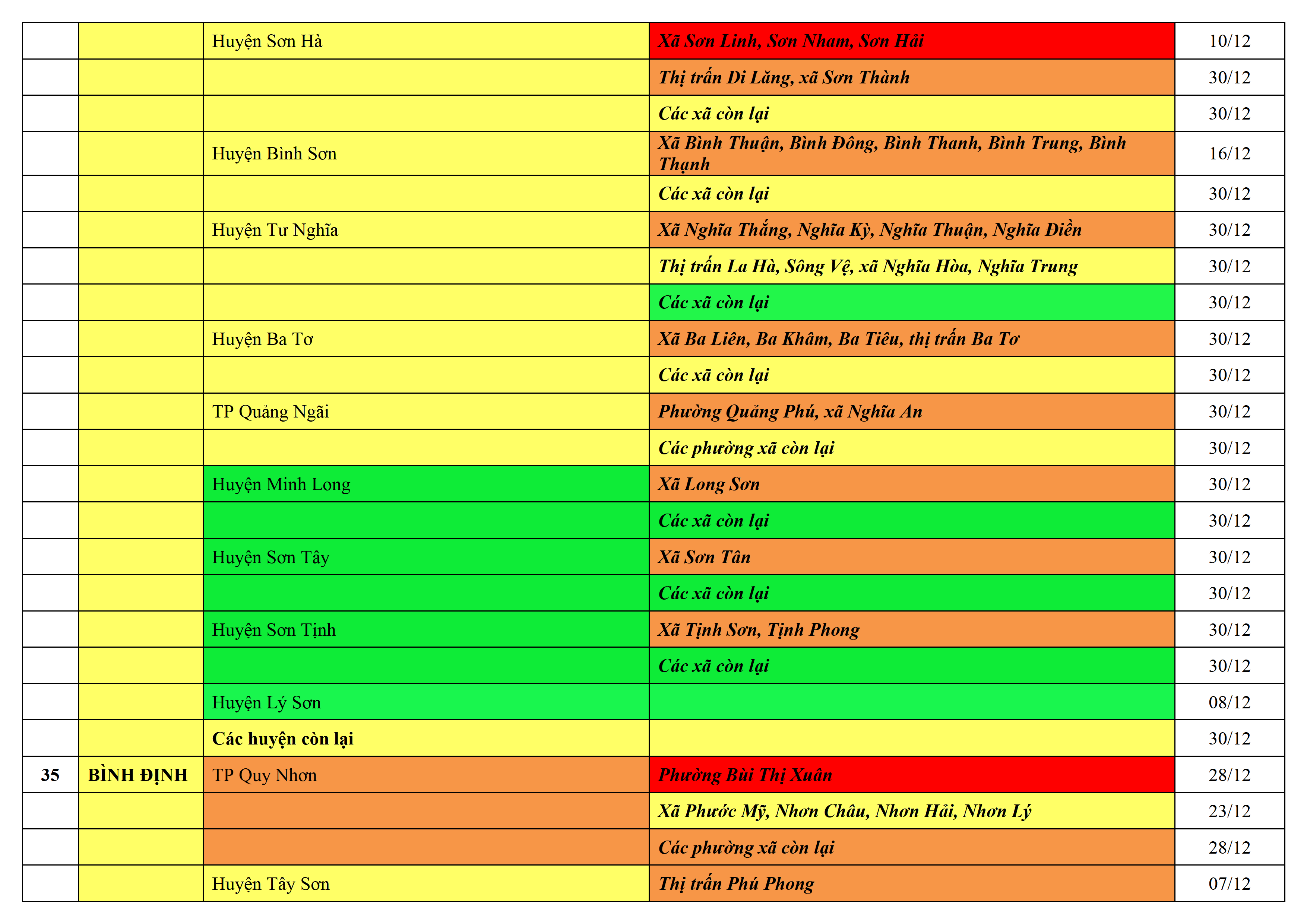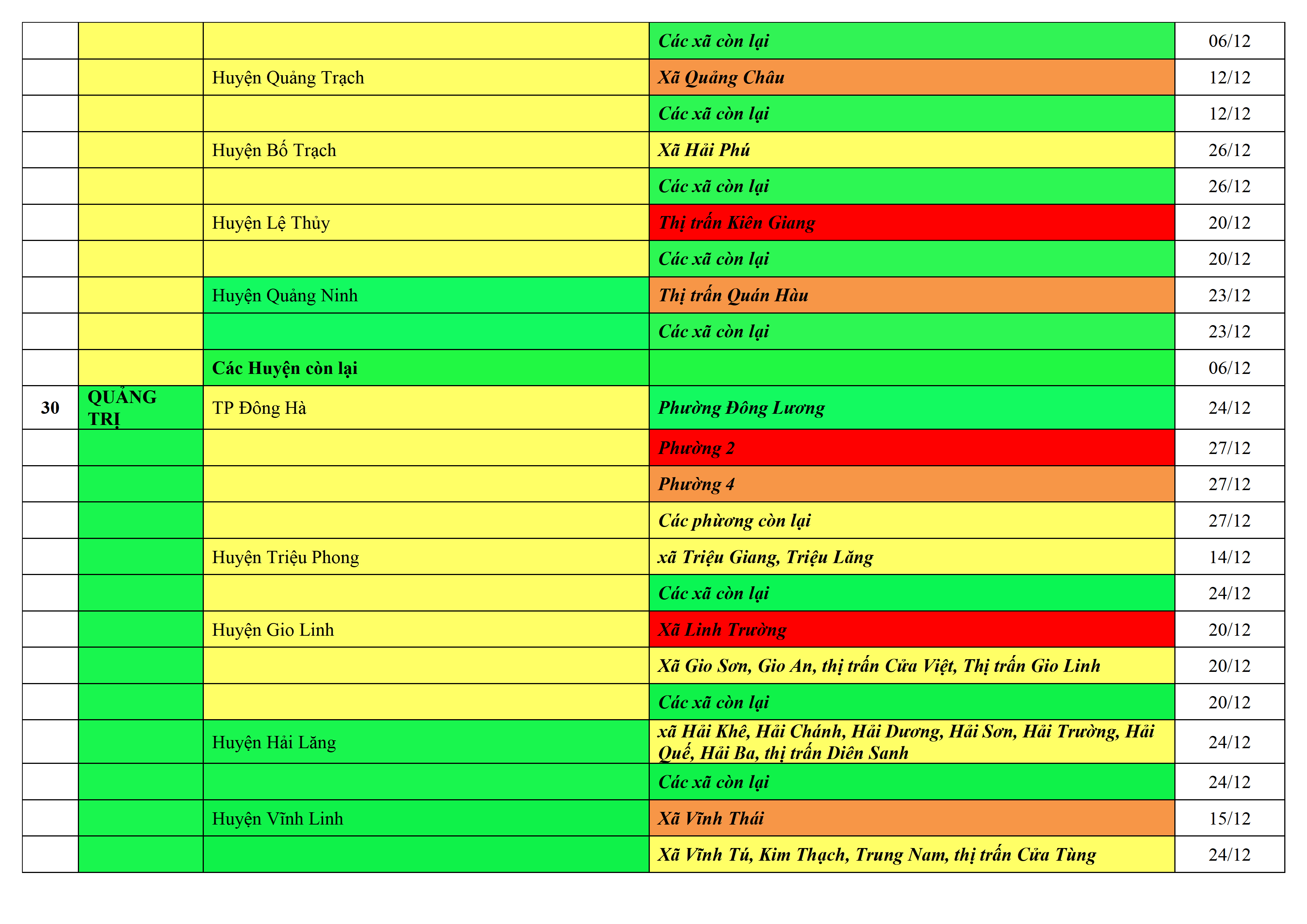 Áp dụng biện pháp tương ứng màu sắc ô cột theo thôn xóm; xã phường; quận huyện; tỉnh thành phố. Cách ly y tế dựa vào việc tiếp xúc, đi đến địa điểm và nơi cư trú có ca bệnh, theo Thông báo của Bộ Y tế, các tỉnh thành phố.