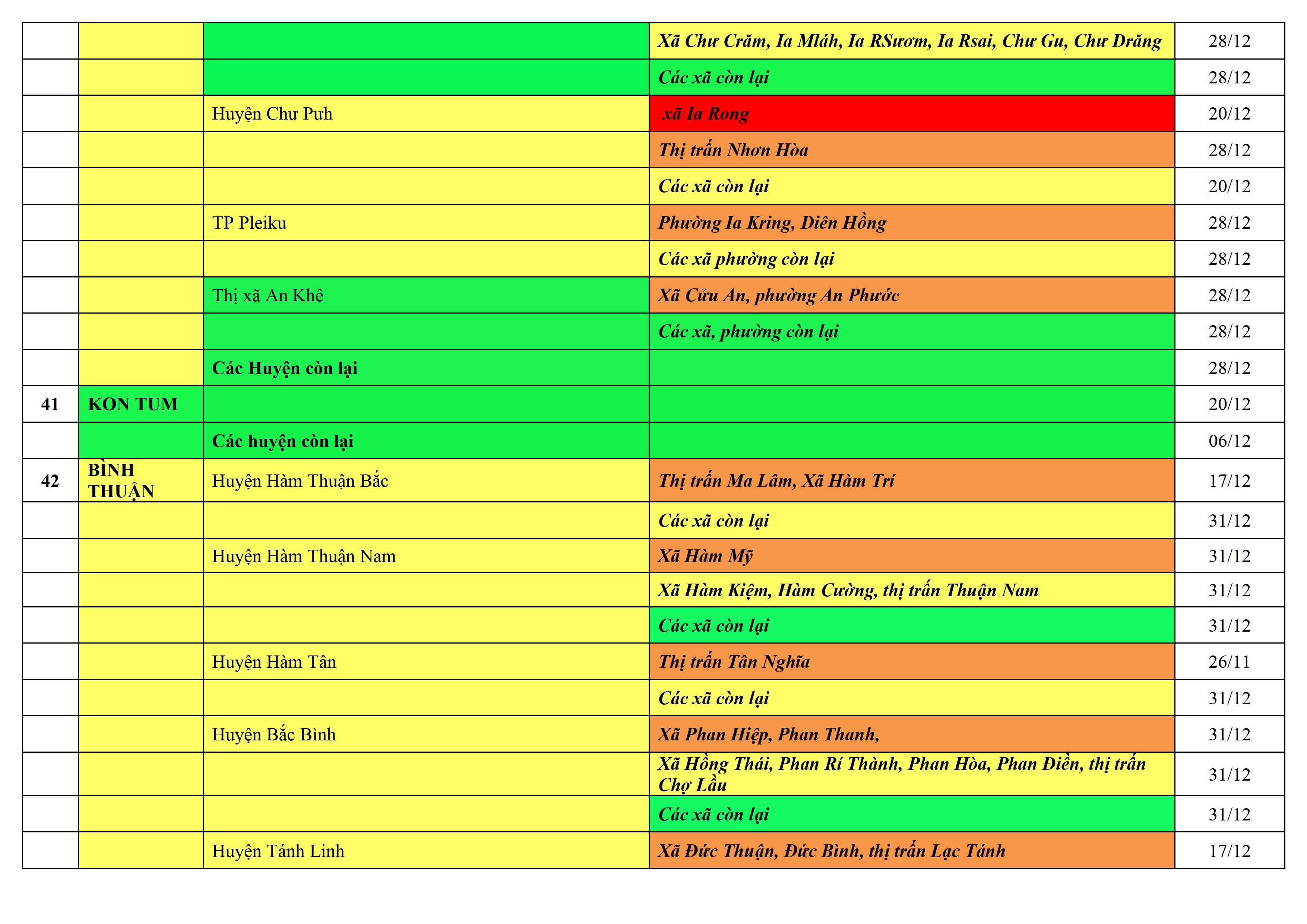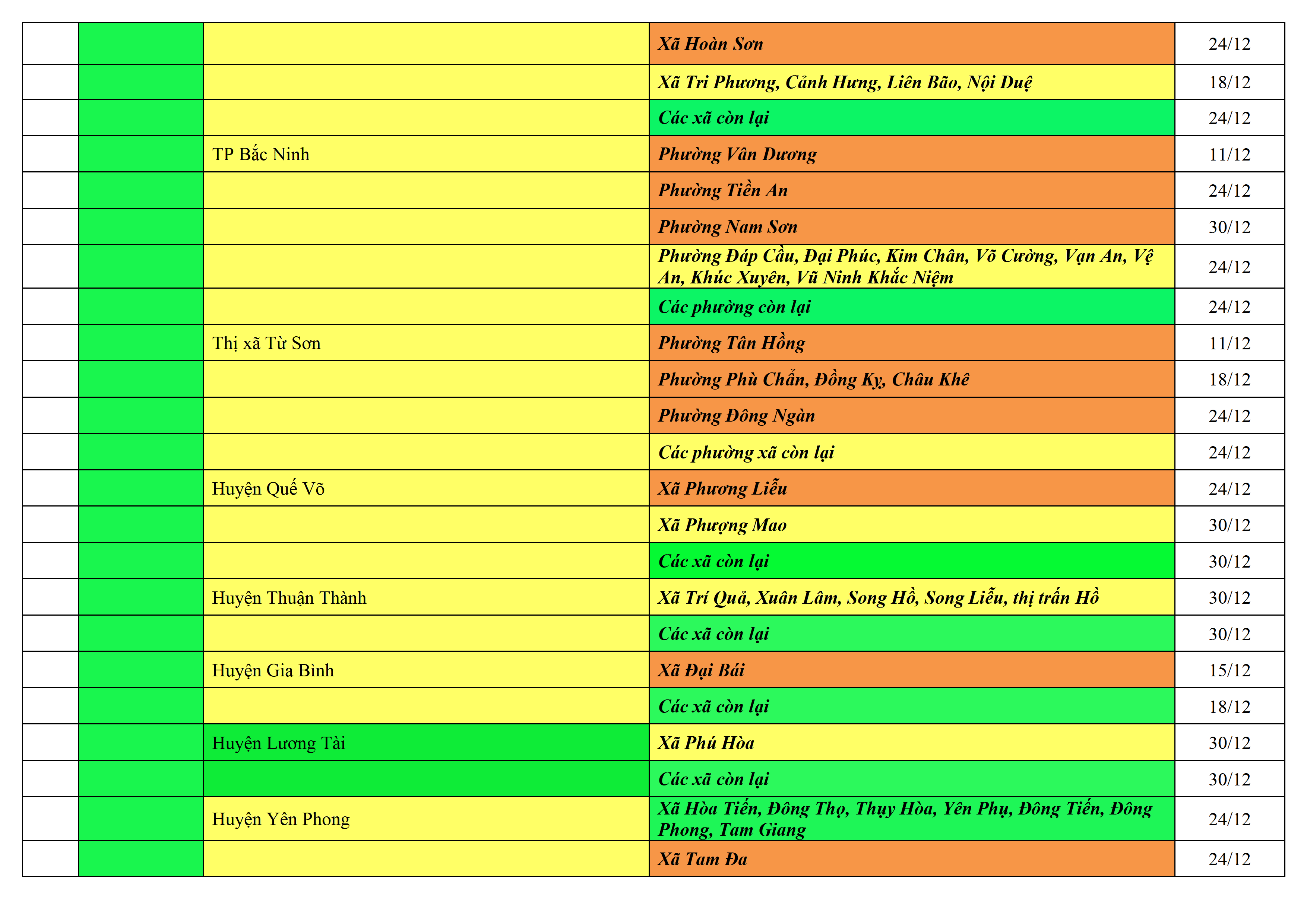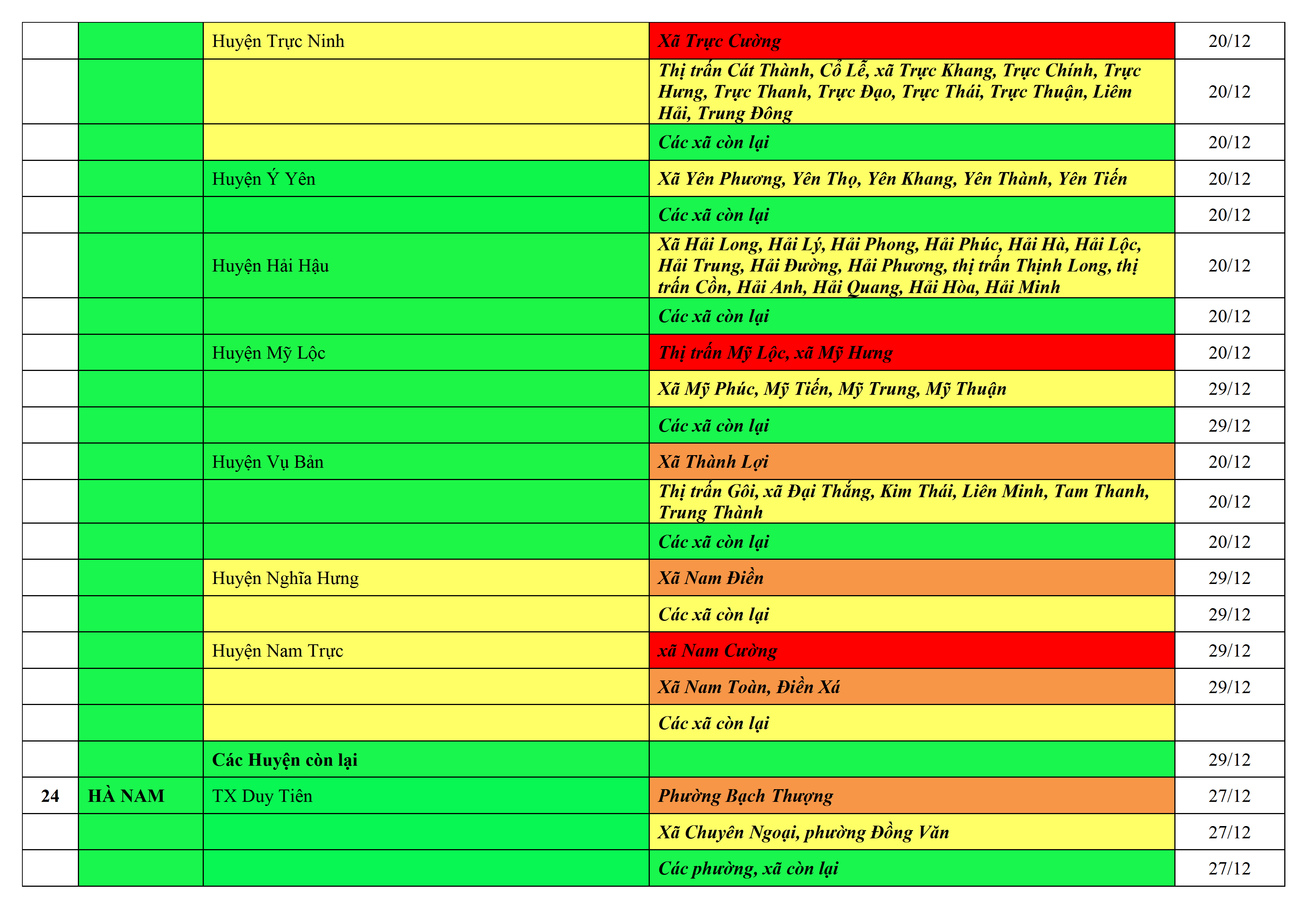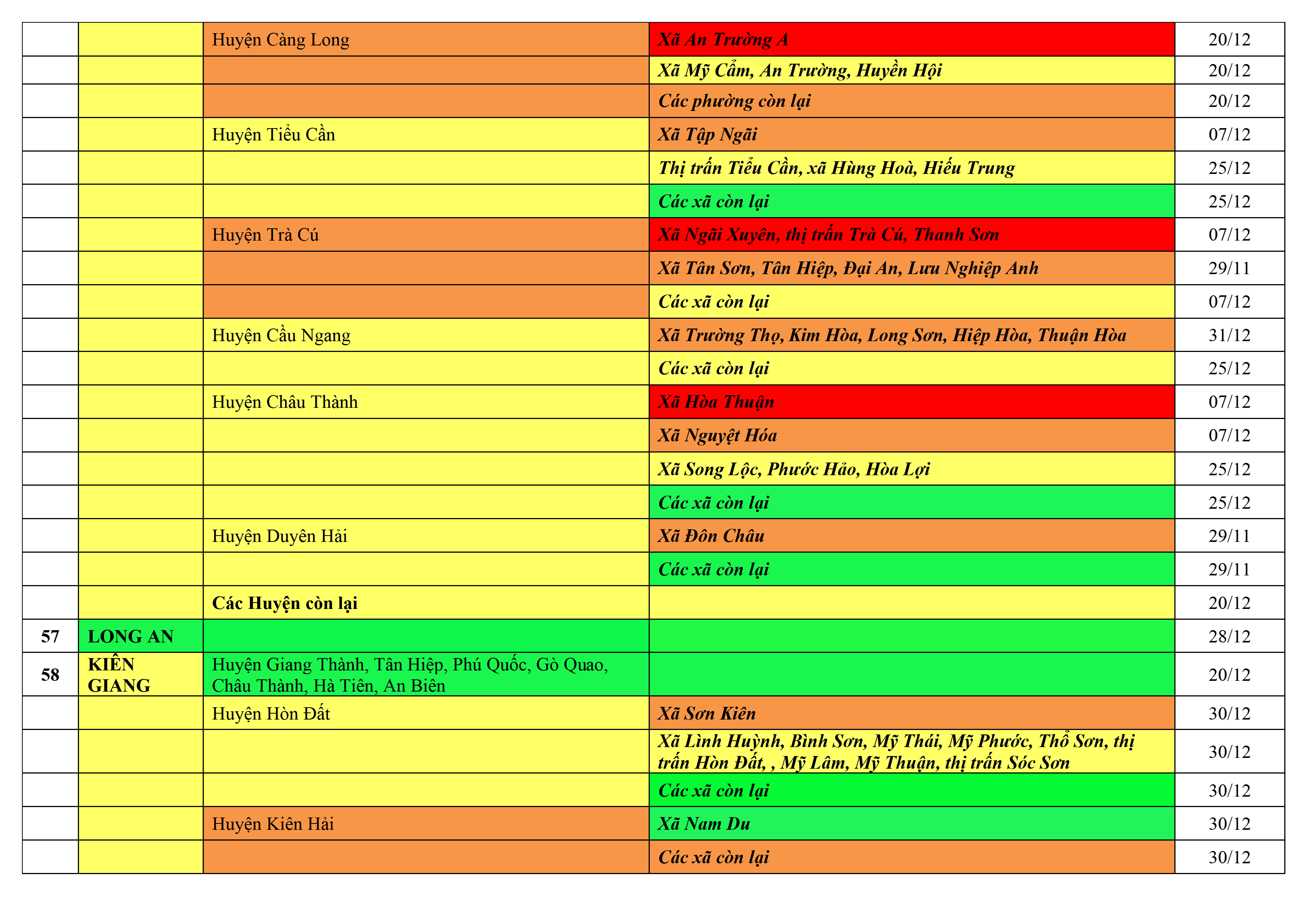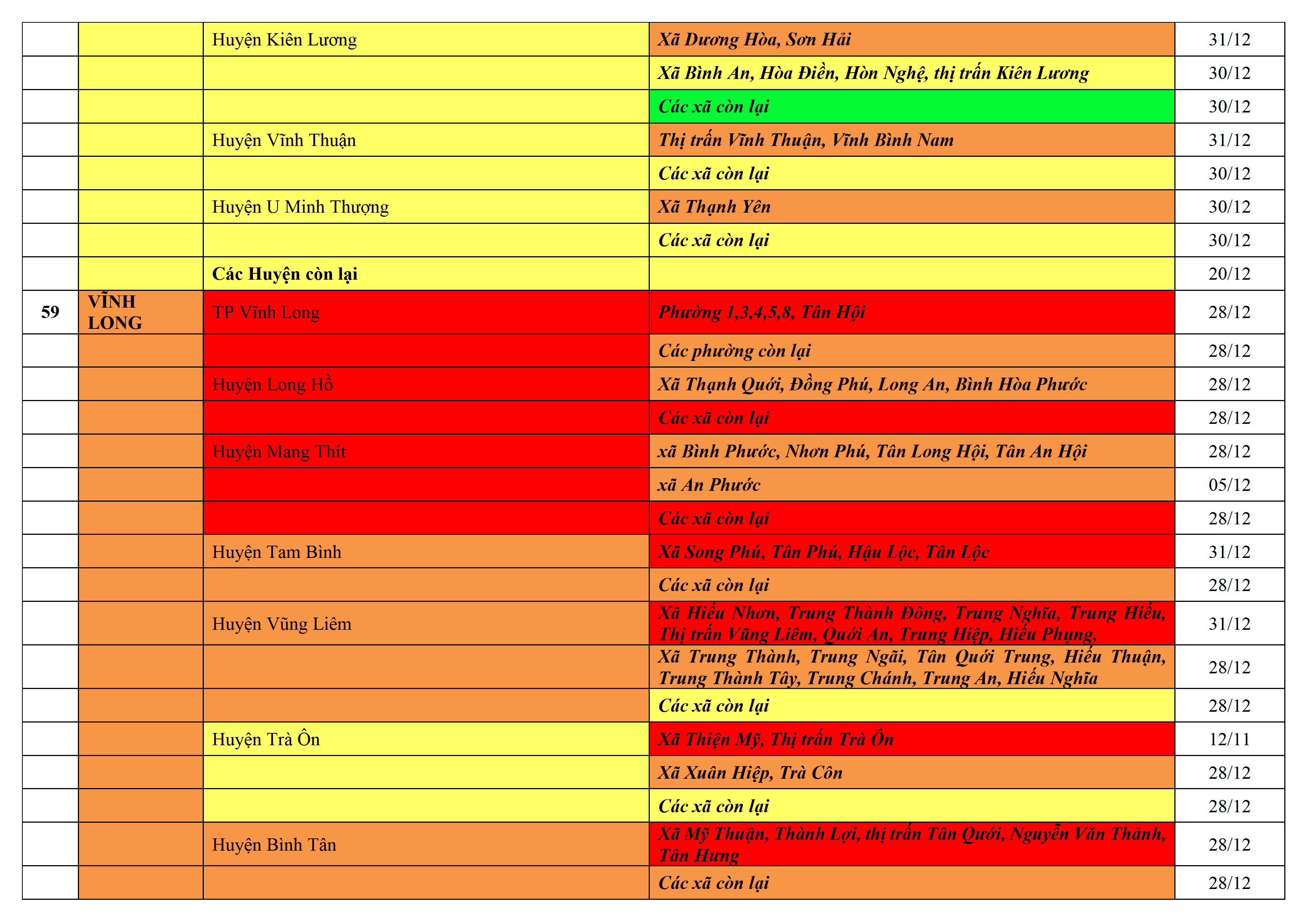 Áp dụng biện pháp tương ứng màu sắc ô cột theo thôn xóm; xã phường; quận huyện; tỉnh thành phố. Cách ly y tế dựa vào việc tiếp xúc, đi đến địa điểm và nơi cư trú có ca bệnh, theo Thông báo của Bộ Y tế, các tỉnh thành phố.