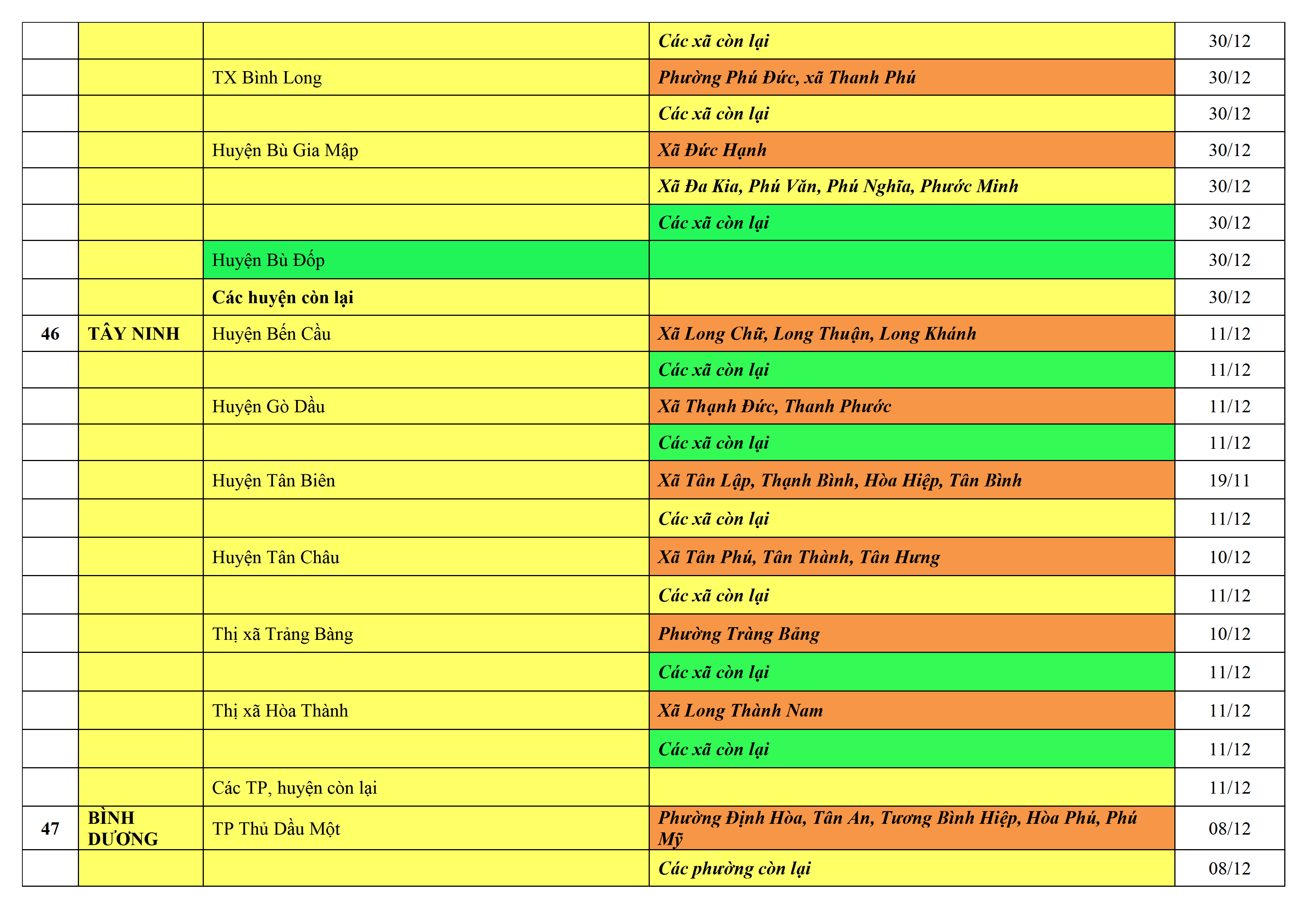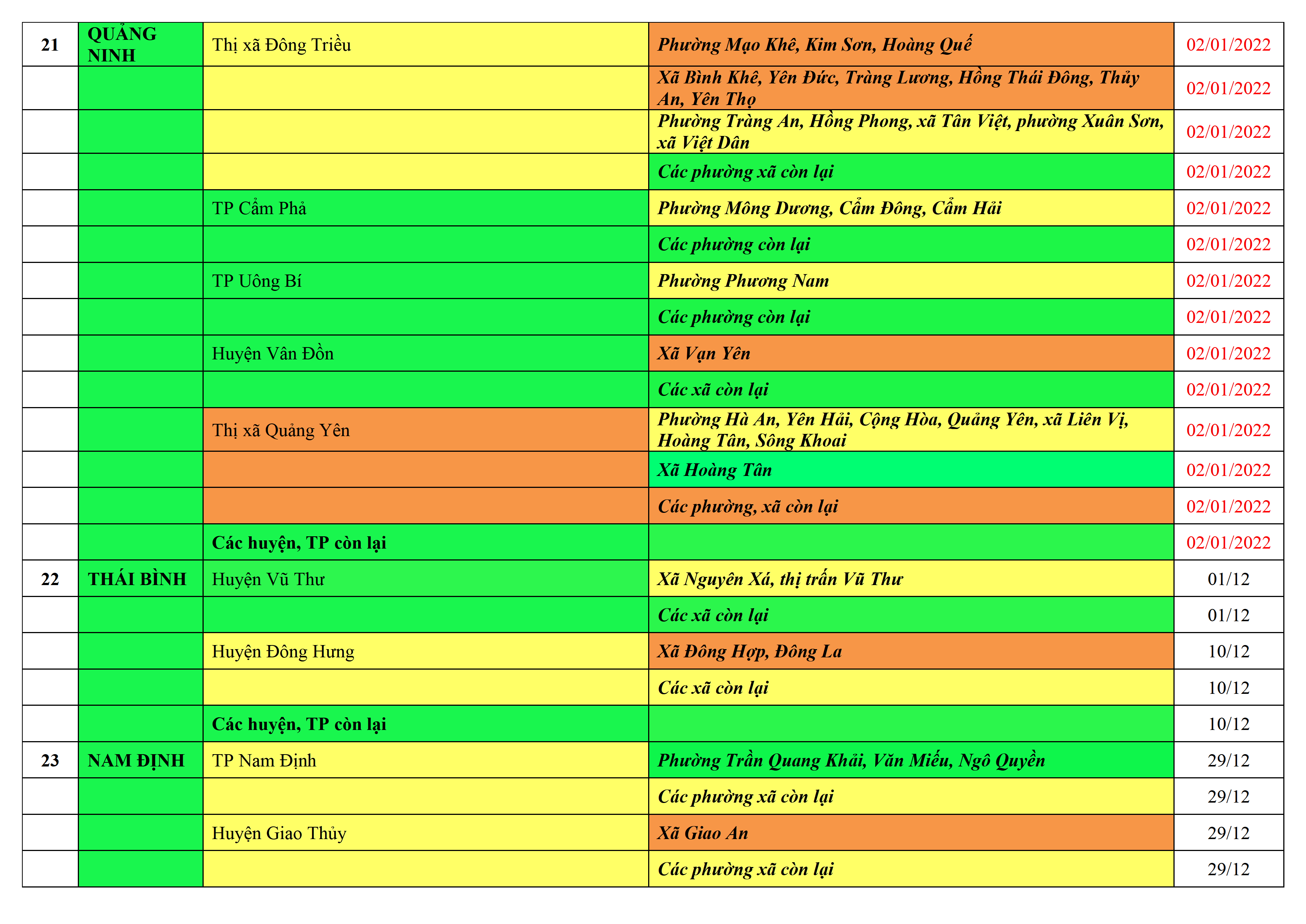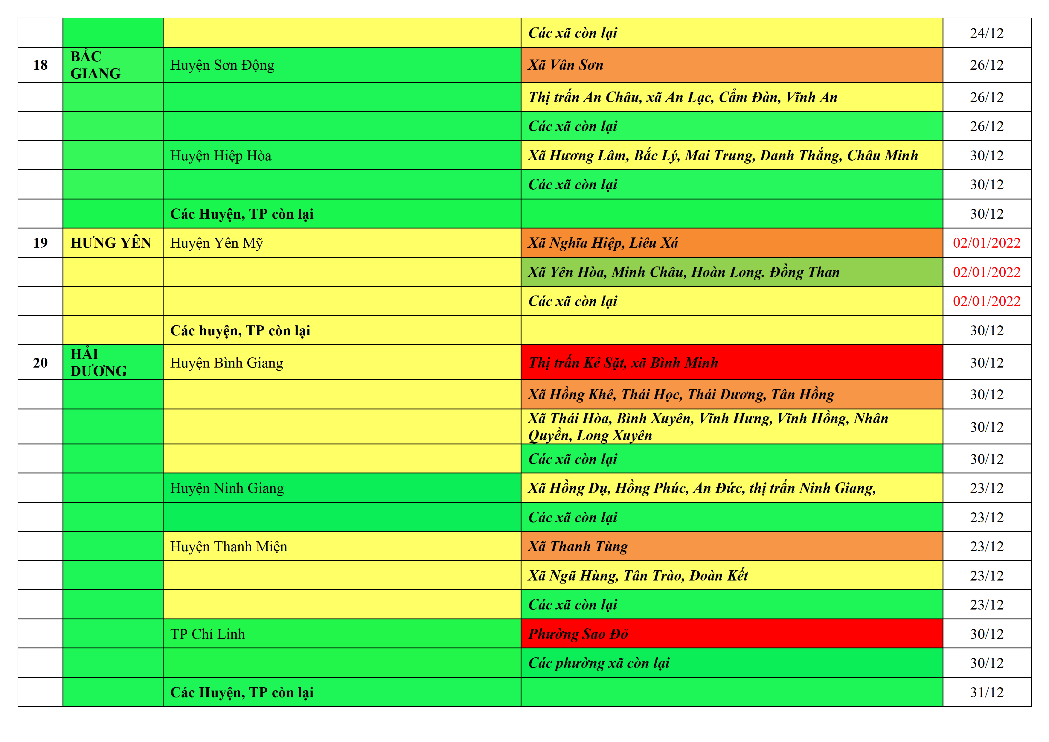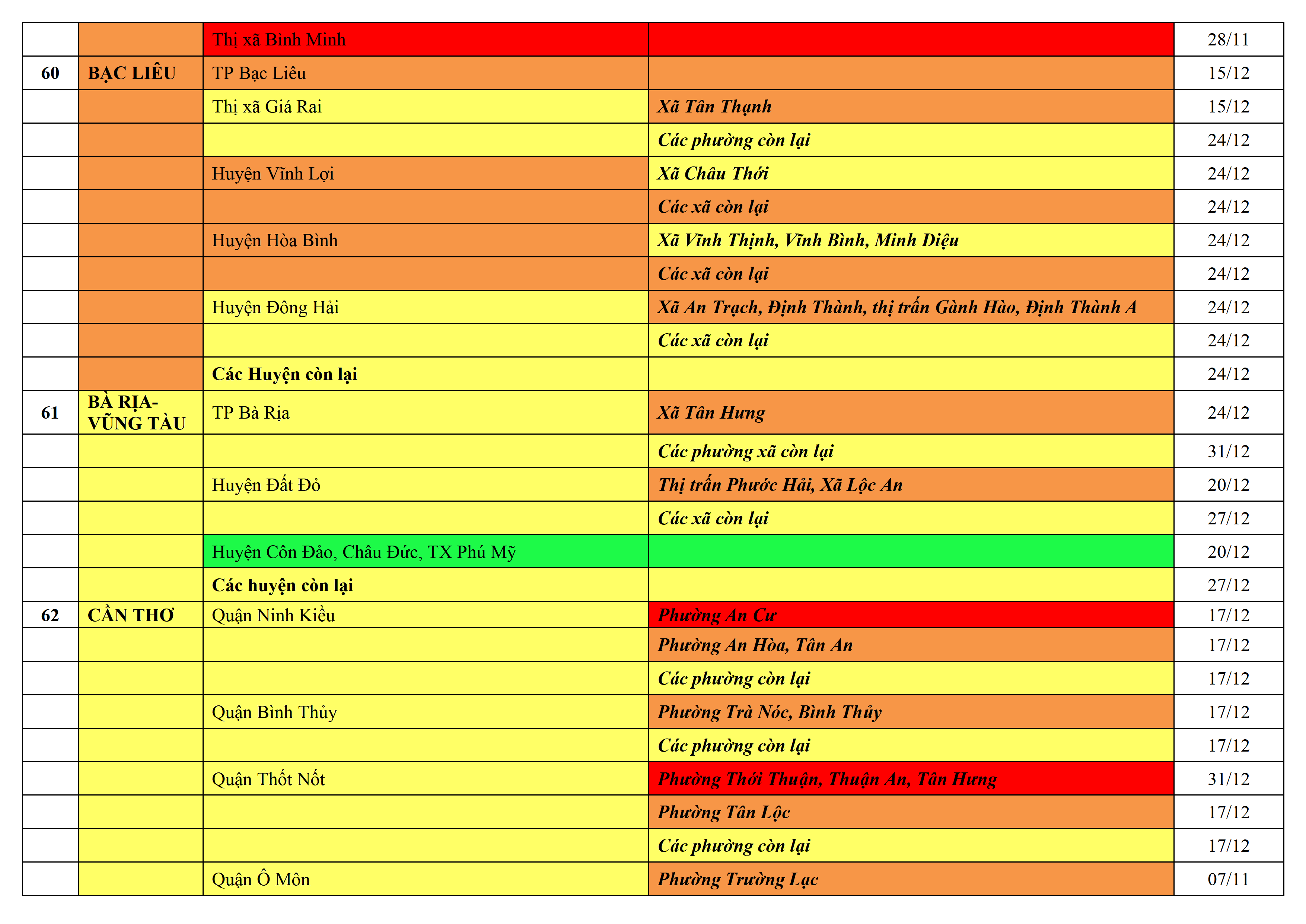 Áp dụng biện pháp tương ứng màu sắc ô cột theo thôn xóm; xã phường; quận huyện; tỉnh thành phố. Cách ly y tế dựa vào việc tiếp xúc, đi đến địa điểm và nơi cư trú có ca bệnh, theo Thông báo của Bộ Y tế, các tỉnh thành phố.