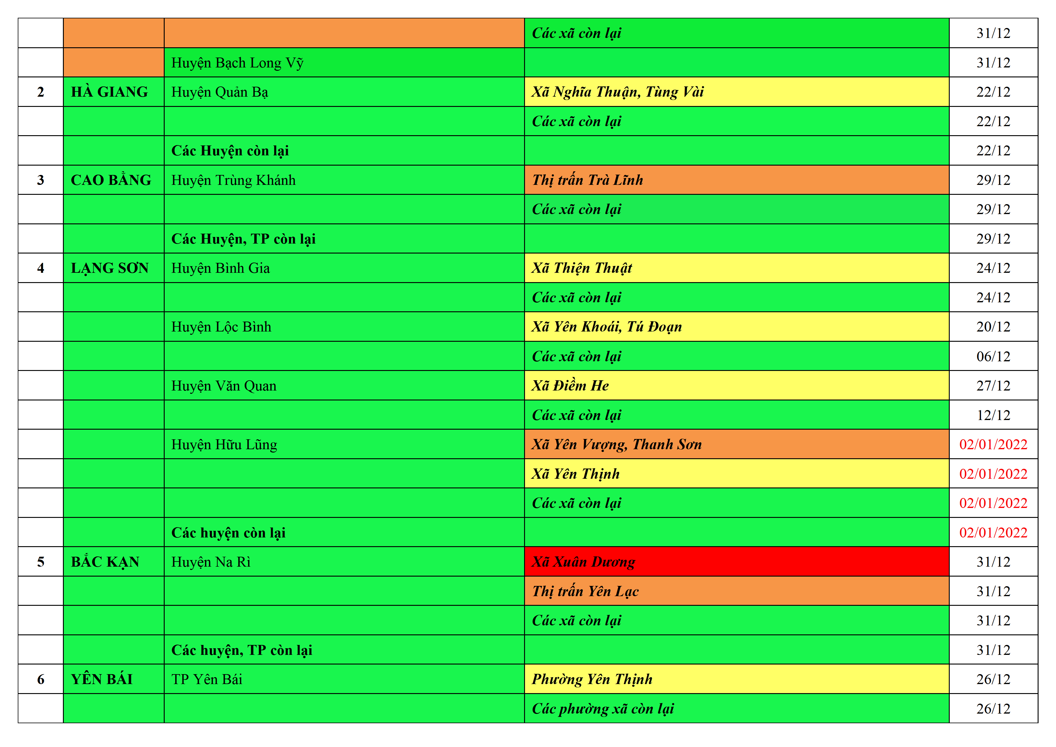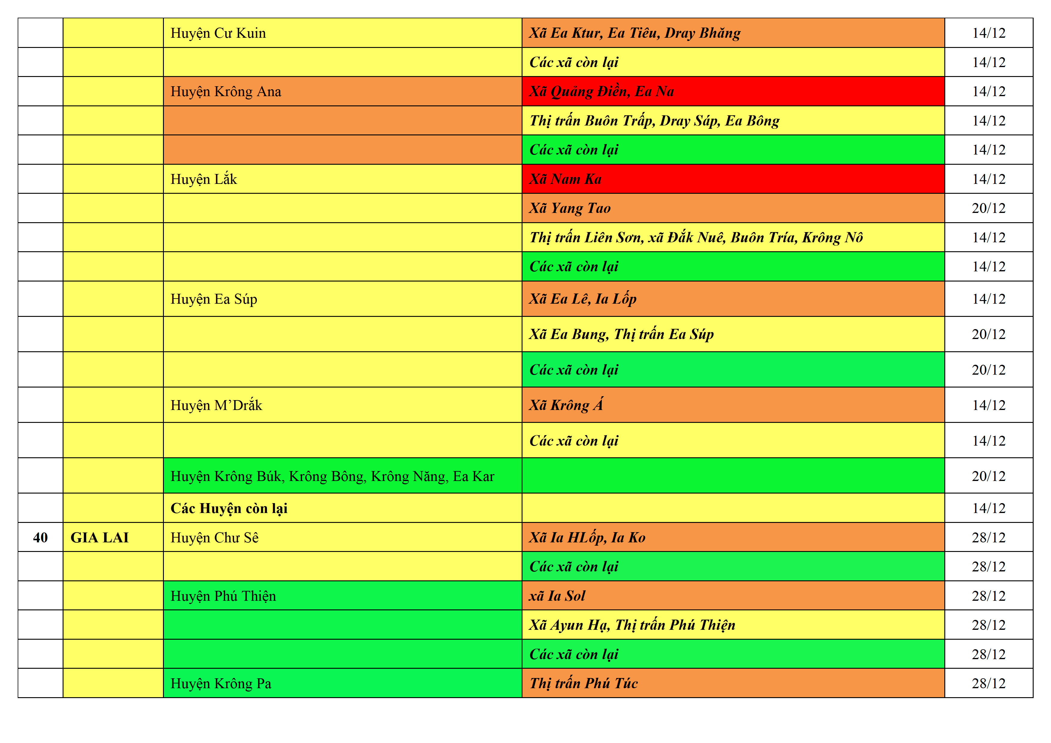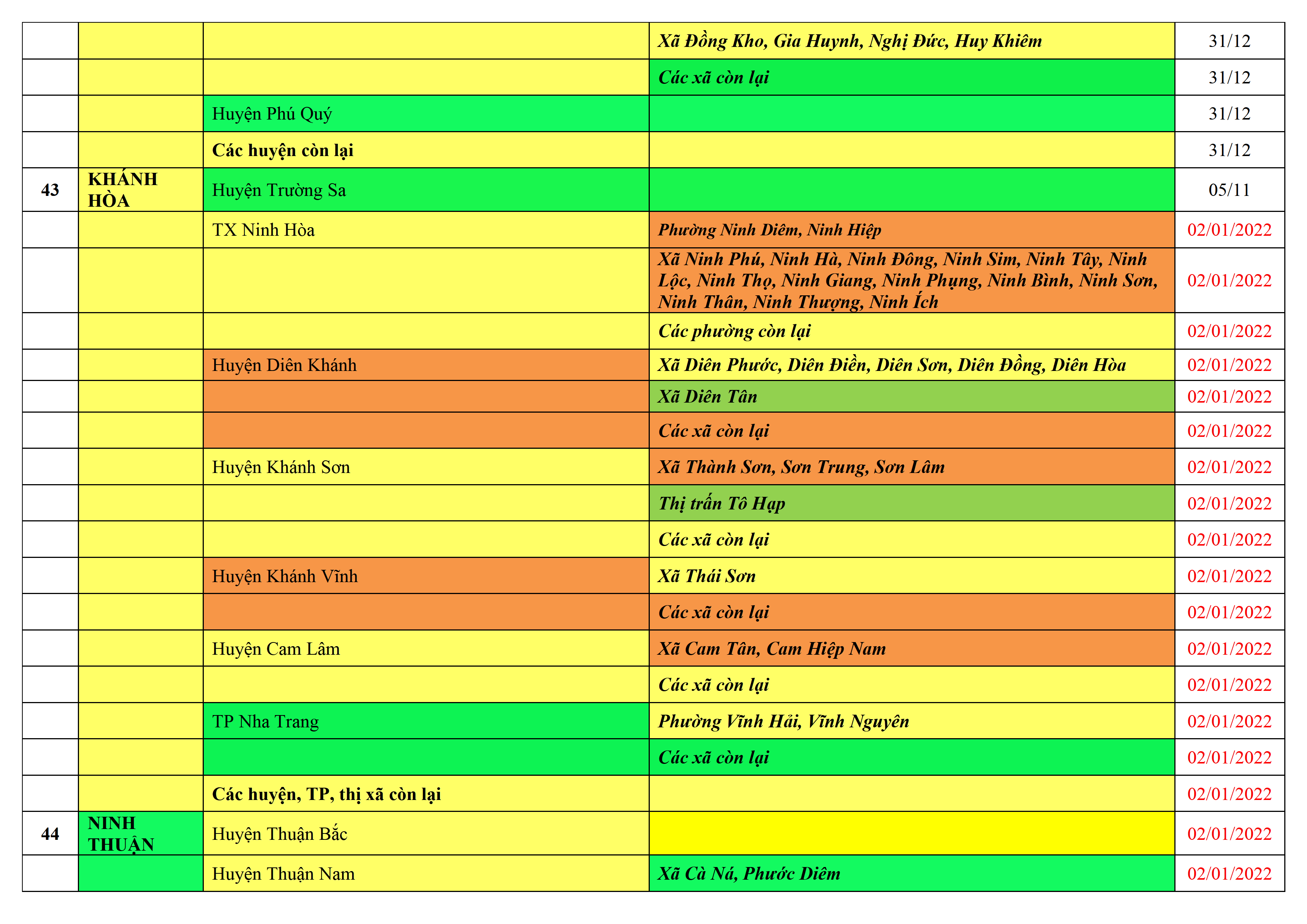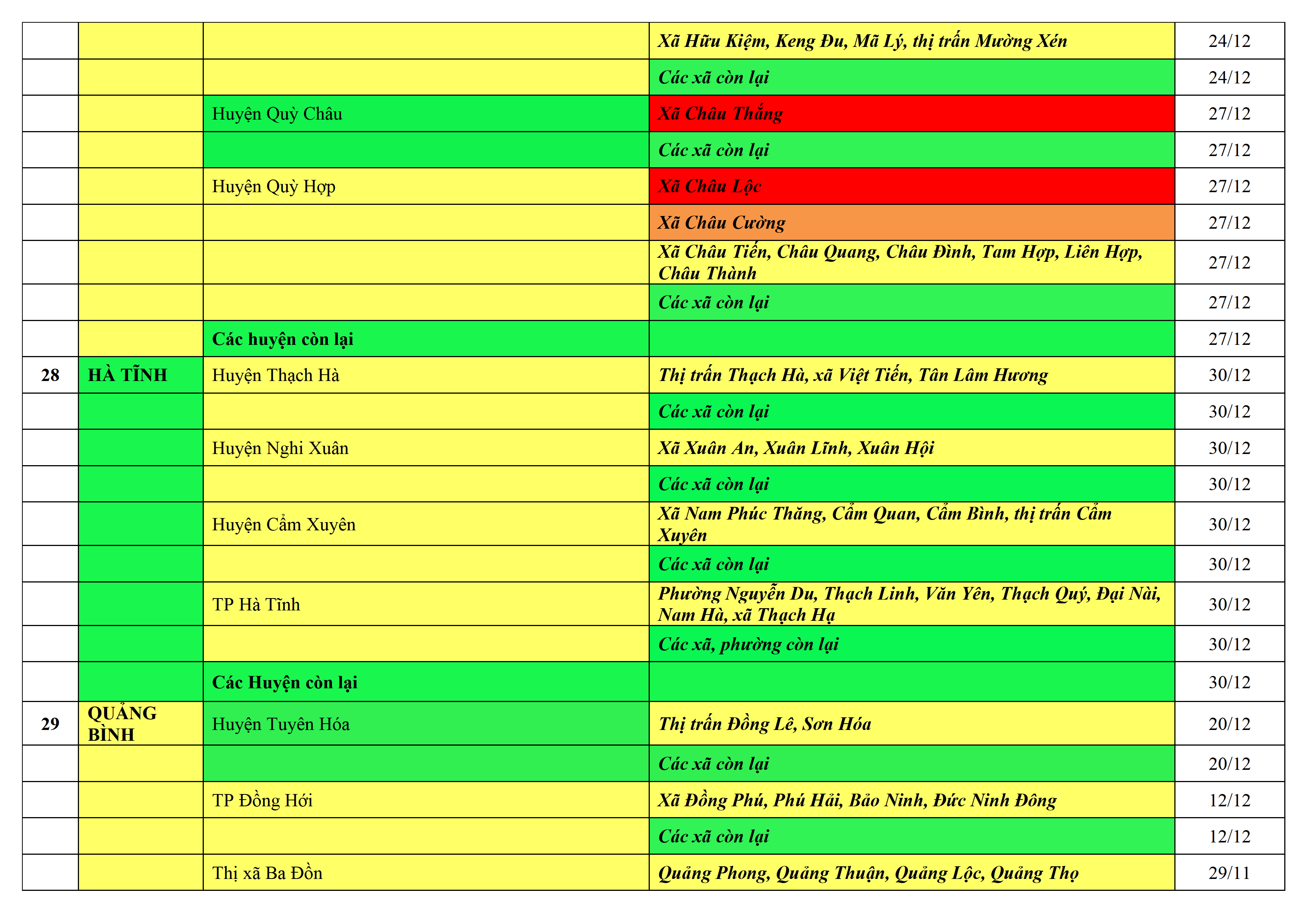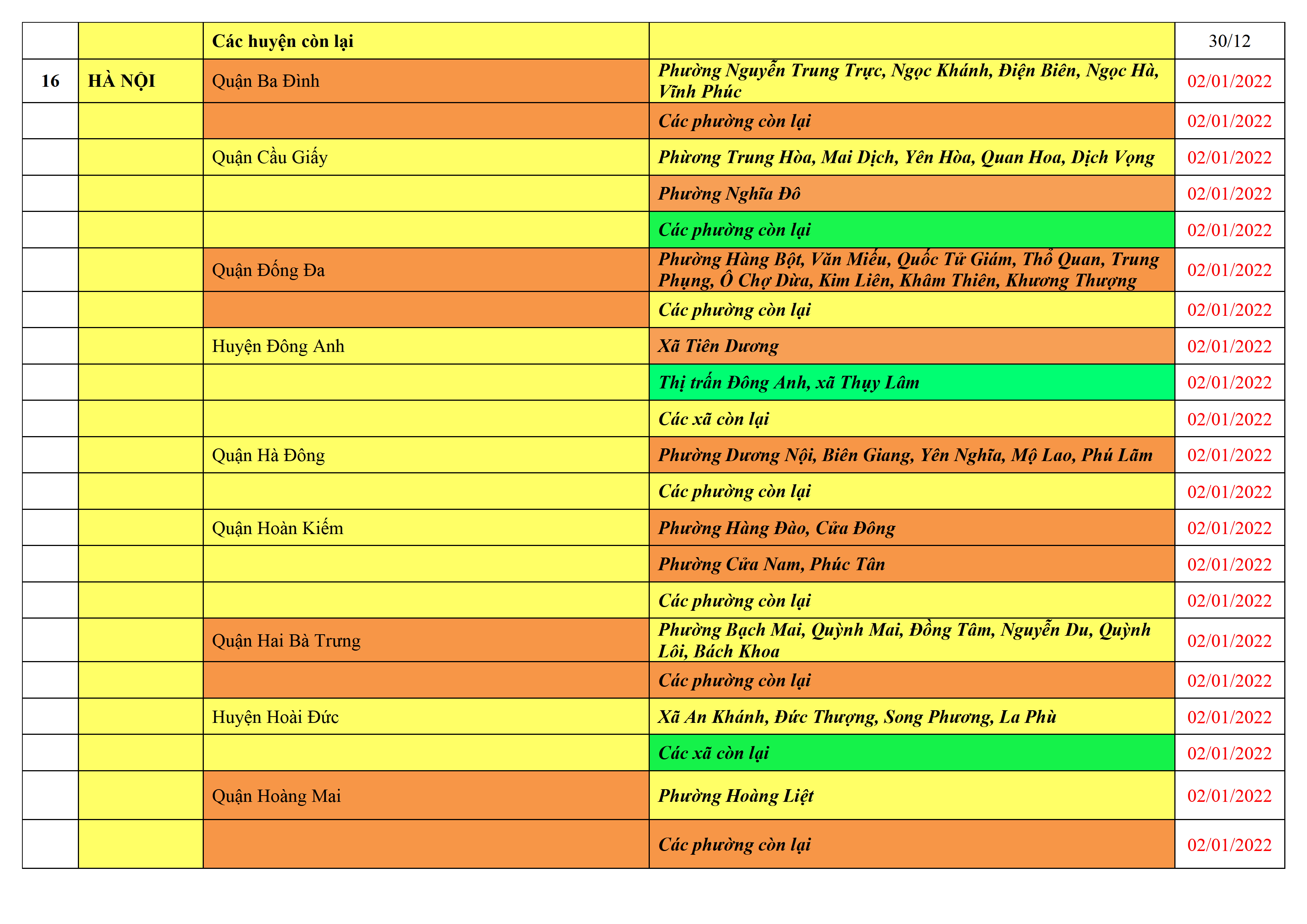 Áp dụng biện pháp tương ứng màu sắc ô cột theo thôn xóm; xã phường; quận huyện; tỉnh thành phố. Cách ly y tế dựa vào việc tiếp xúc, đi đến địa điểm và nơi cư trú có ca bệnh, theo Thông báo của Bộ Y tế, các tỉnh thành phố.