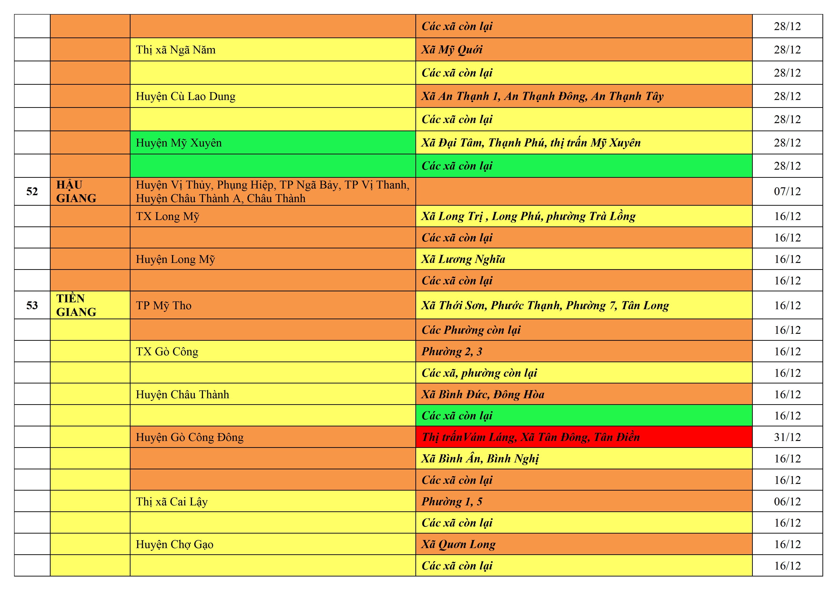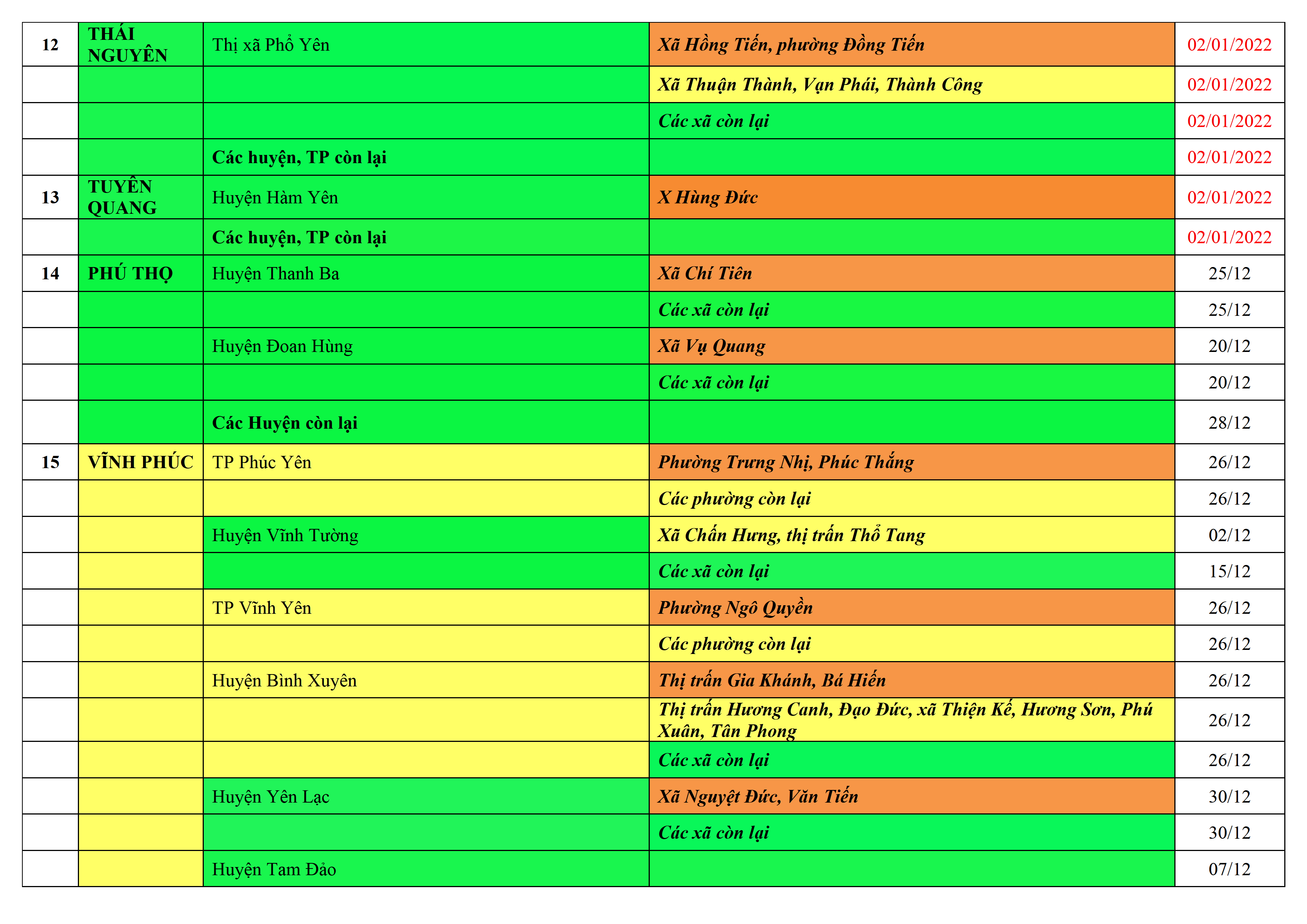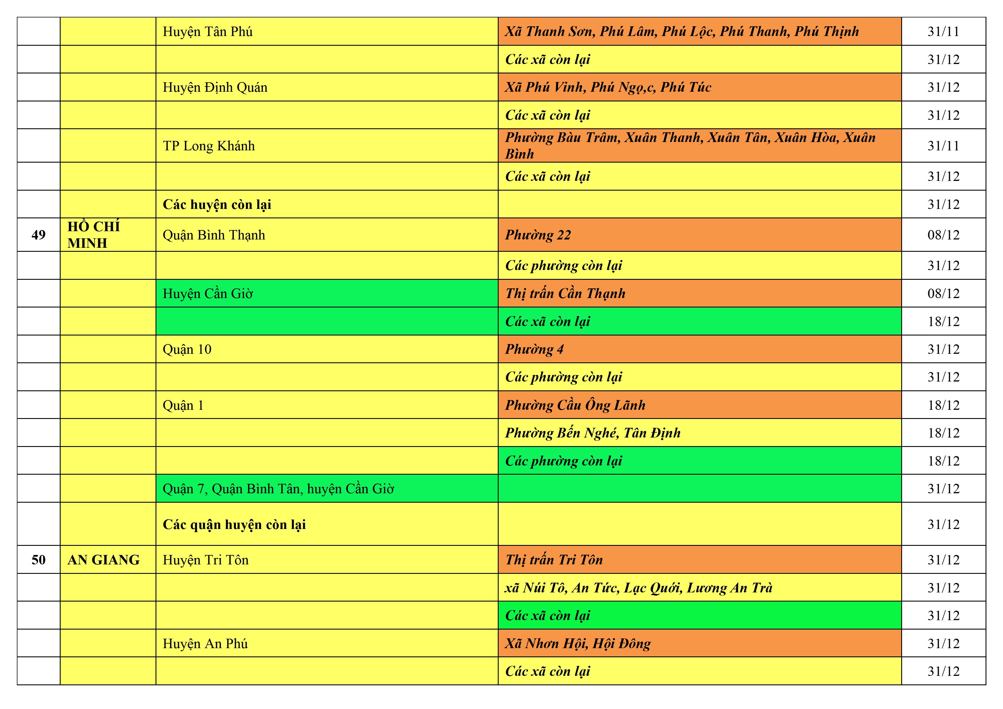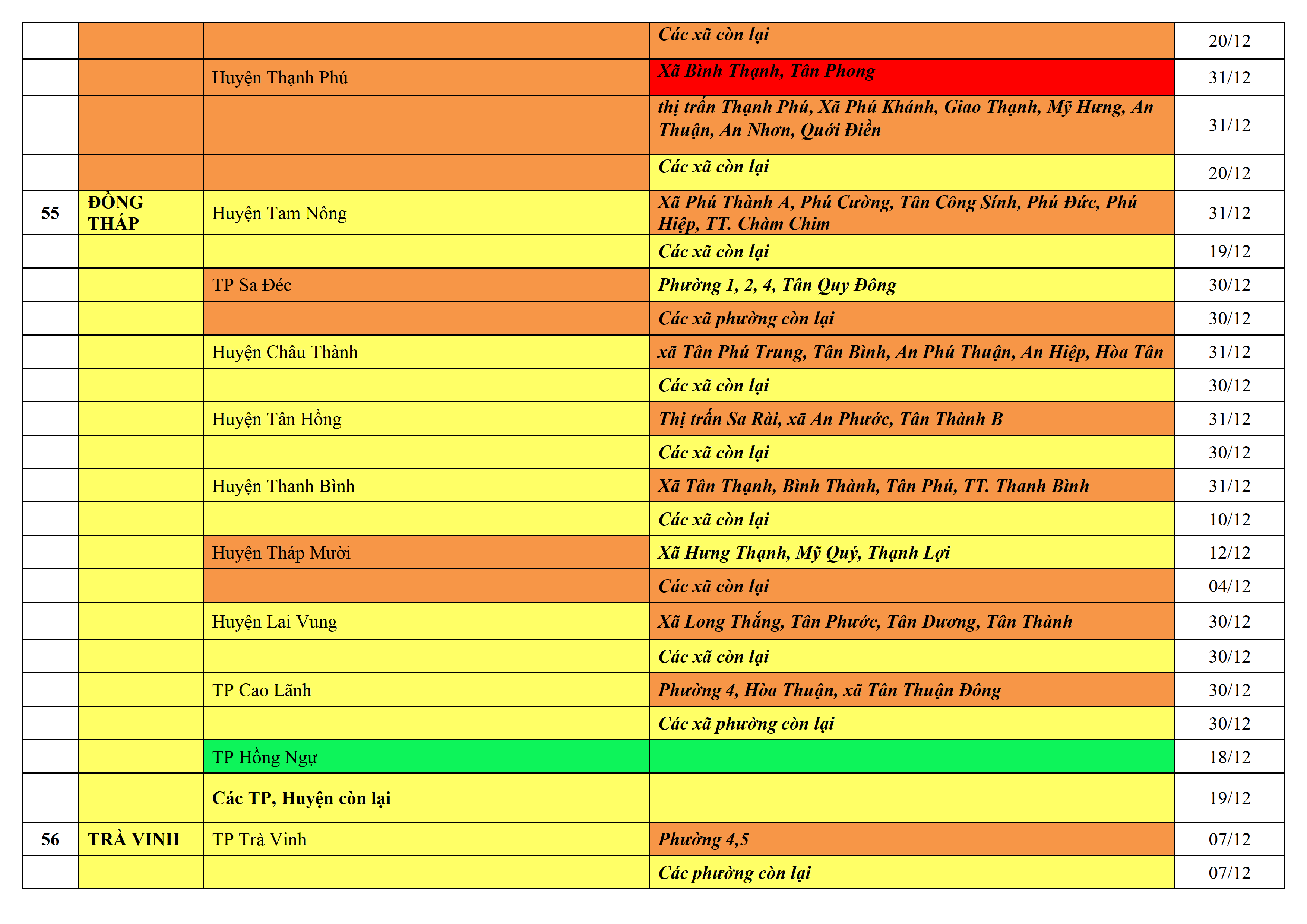 Áp dụng biện pháp tương ứng màu sắc ô cột theo thôn xóm; xã phường; quận huyện; tỉnh thành phố.