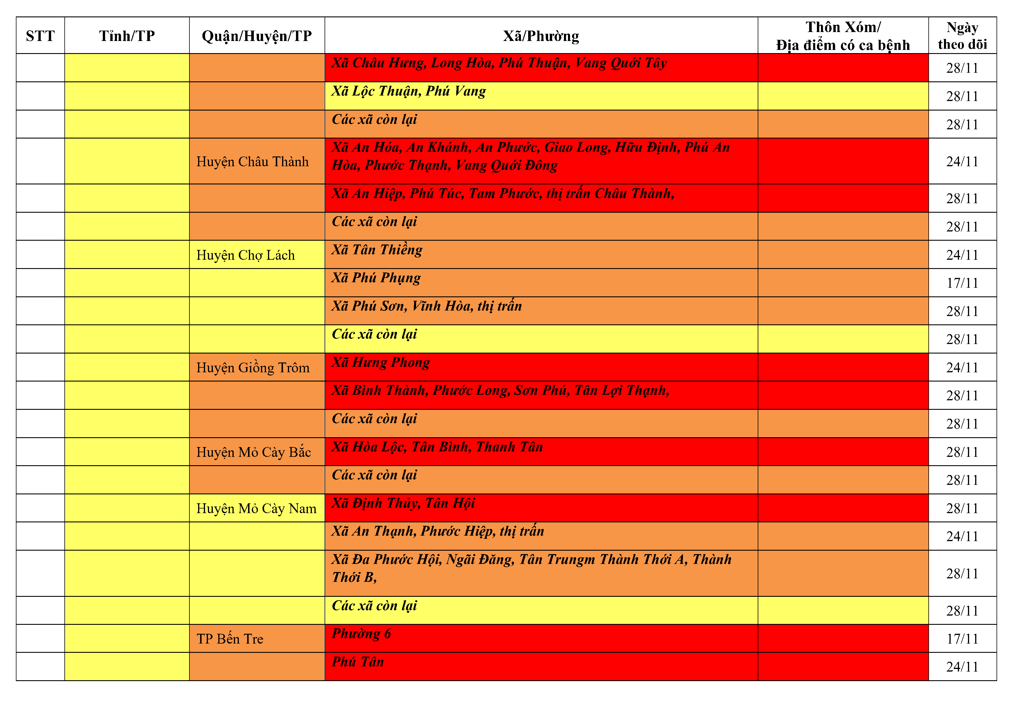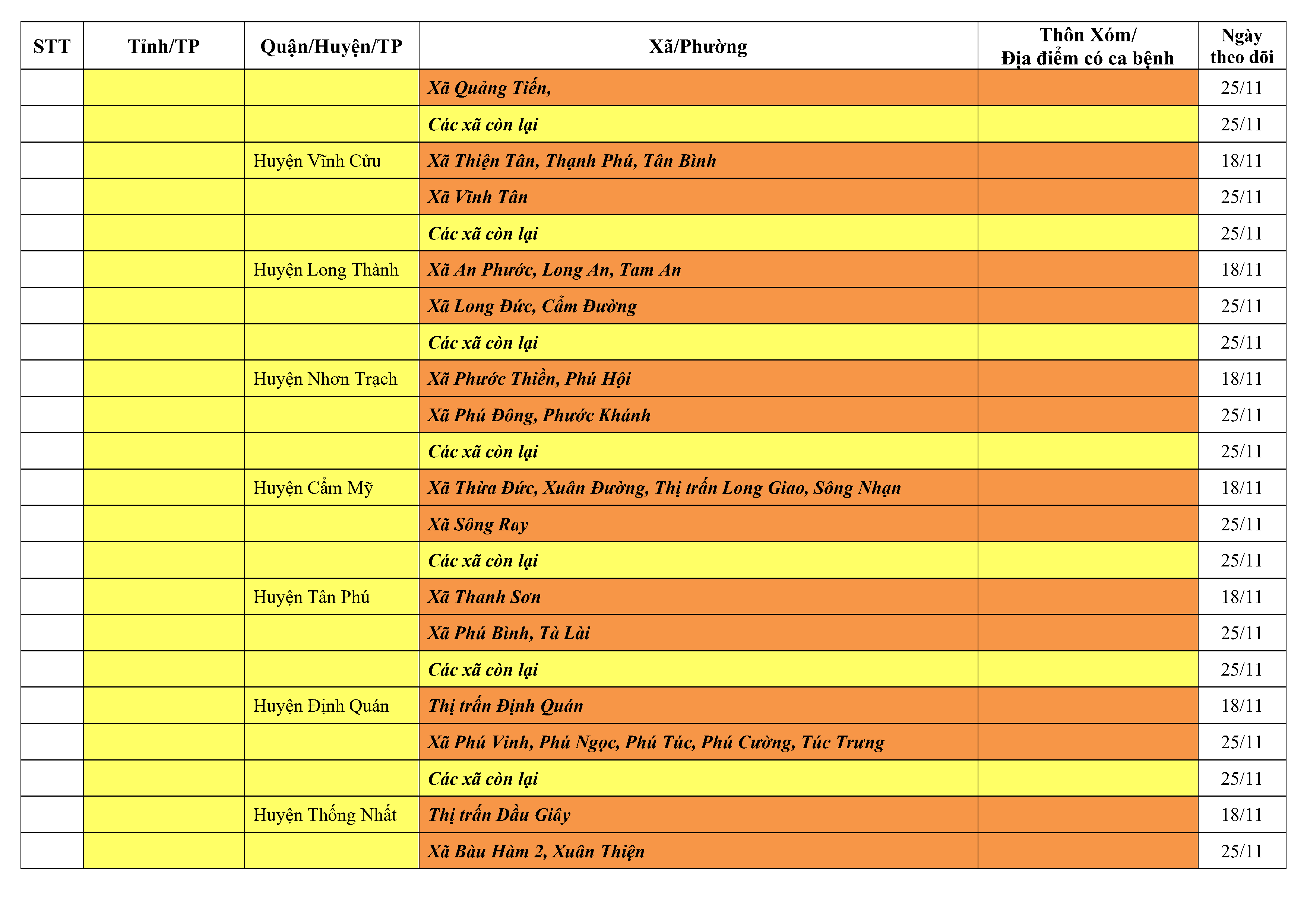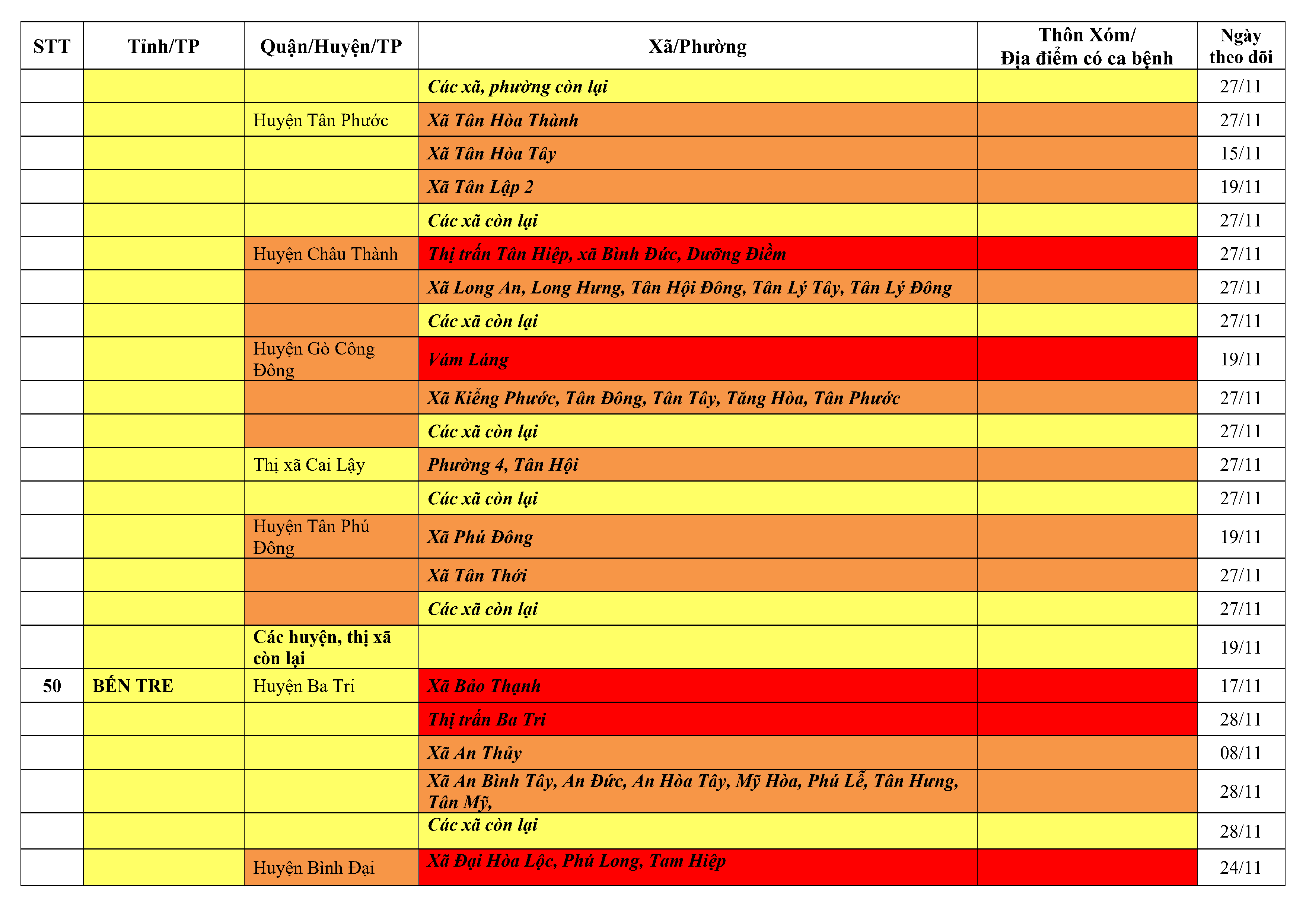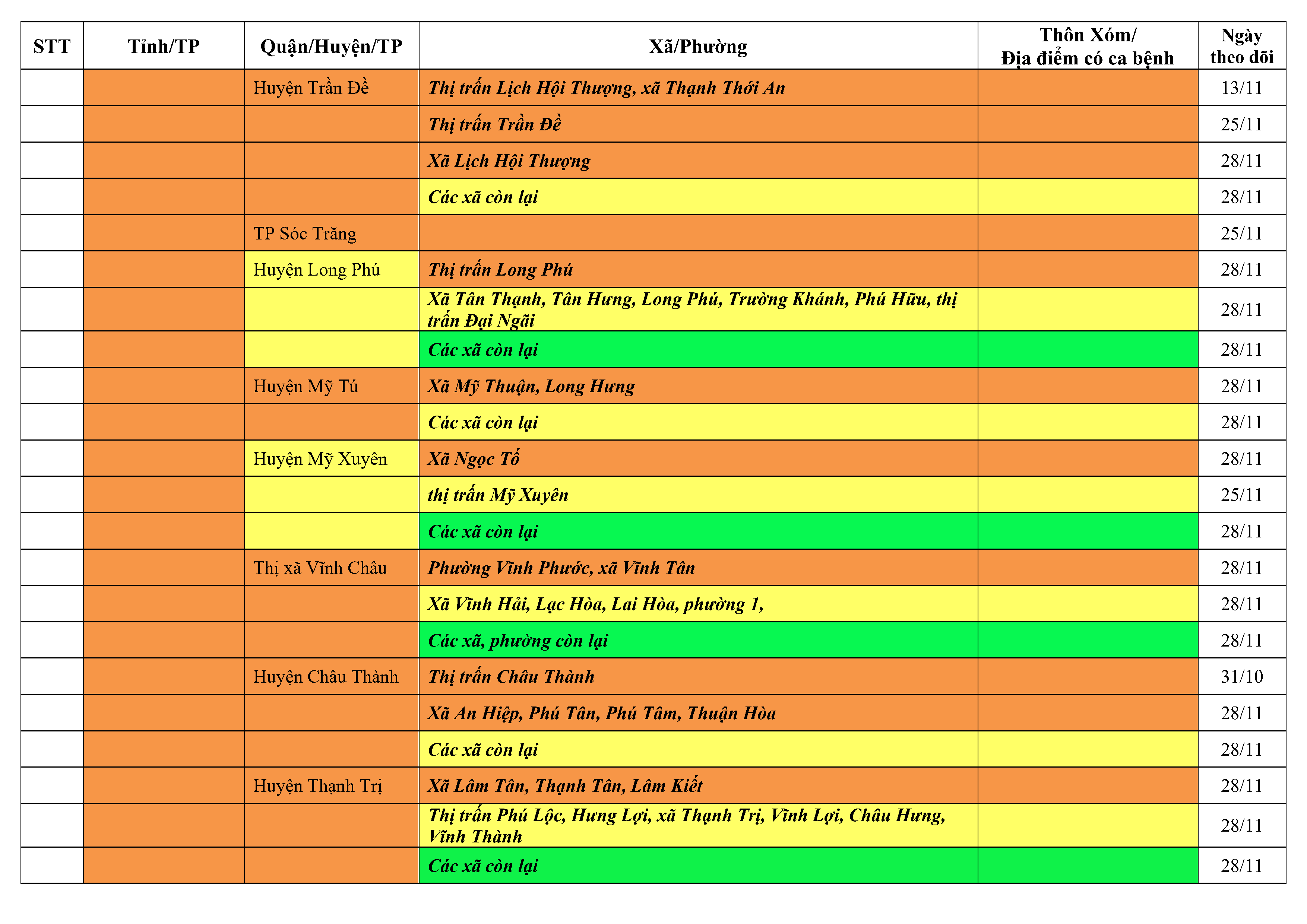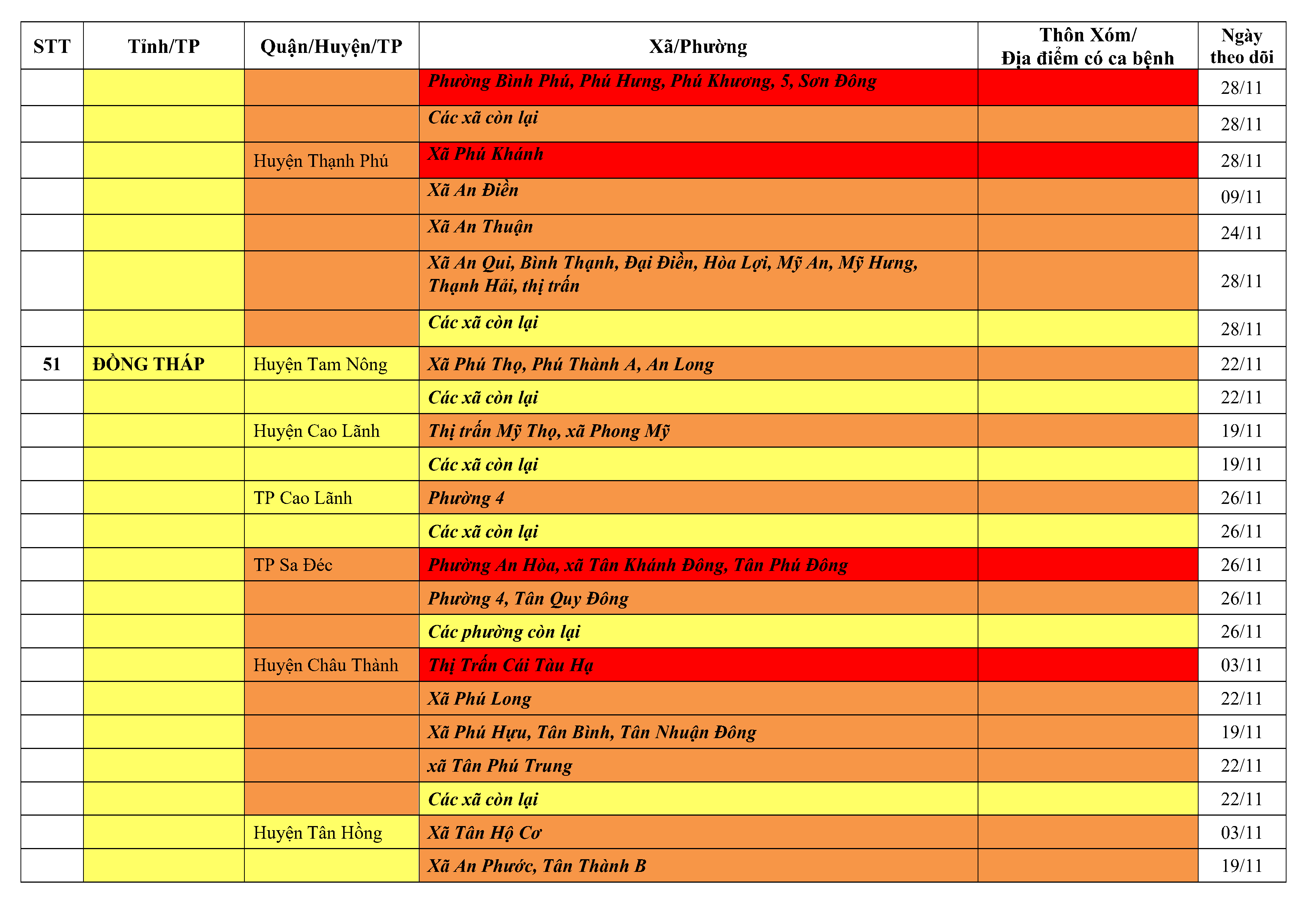 Lưu ý: Các tỉnh, thành phố không có tên trong bảng màu, đi lại bình thường, tuân thủ các biện pháp phòng chống dịch theo chỉ đạo của Bộ Y tế; khai báo y tế, thực hiện nghiêm 5K.