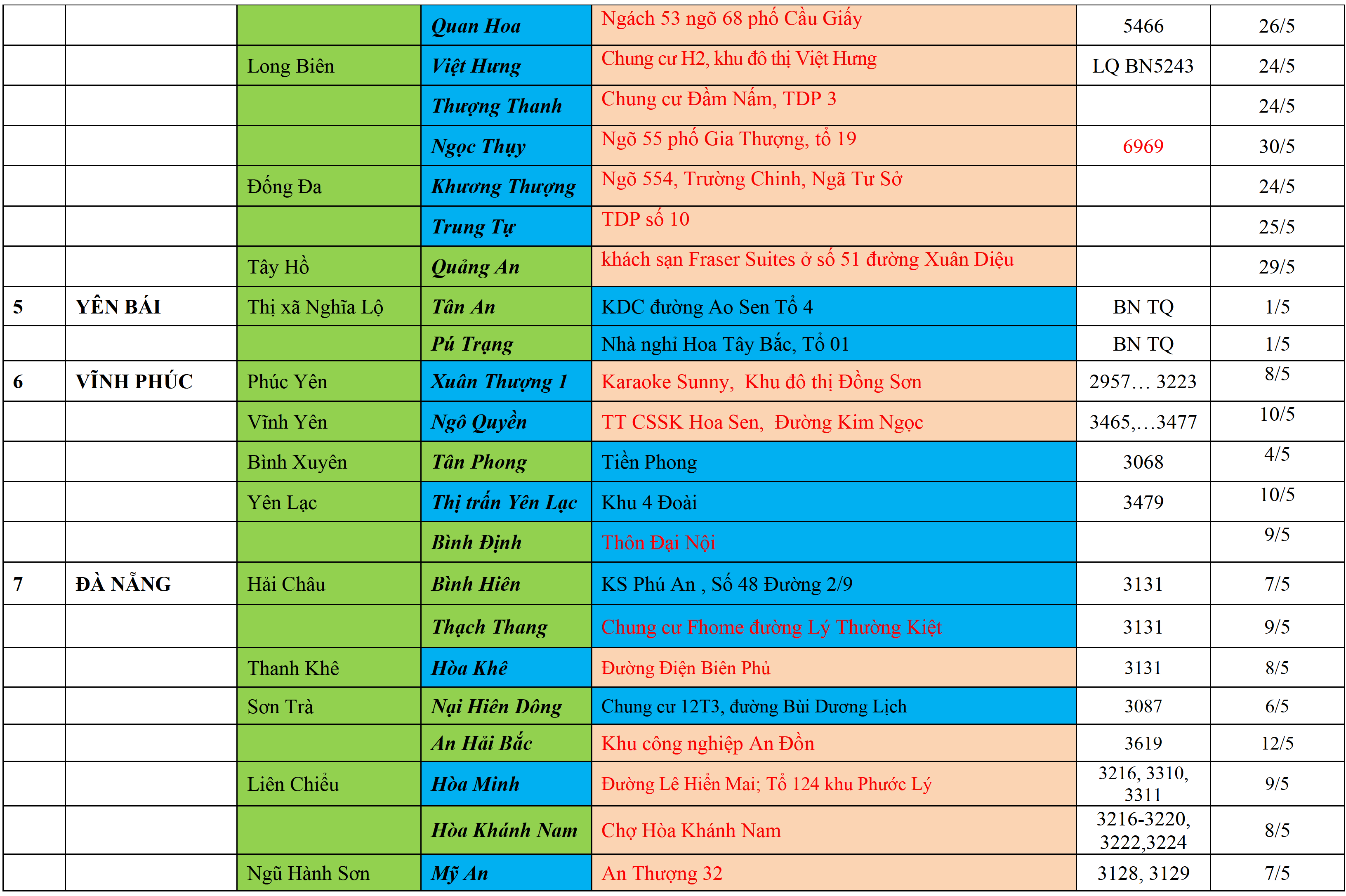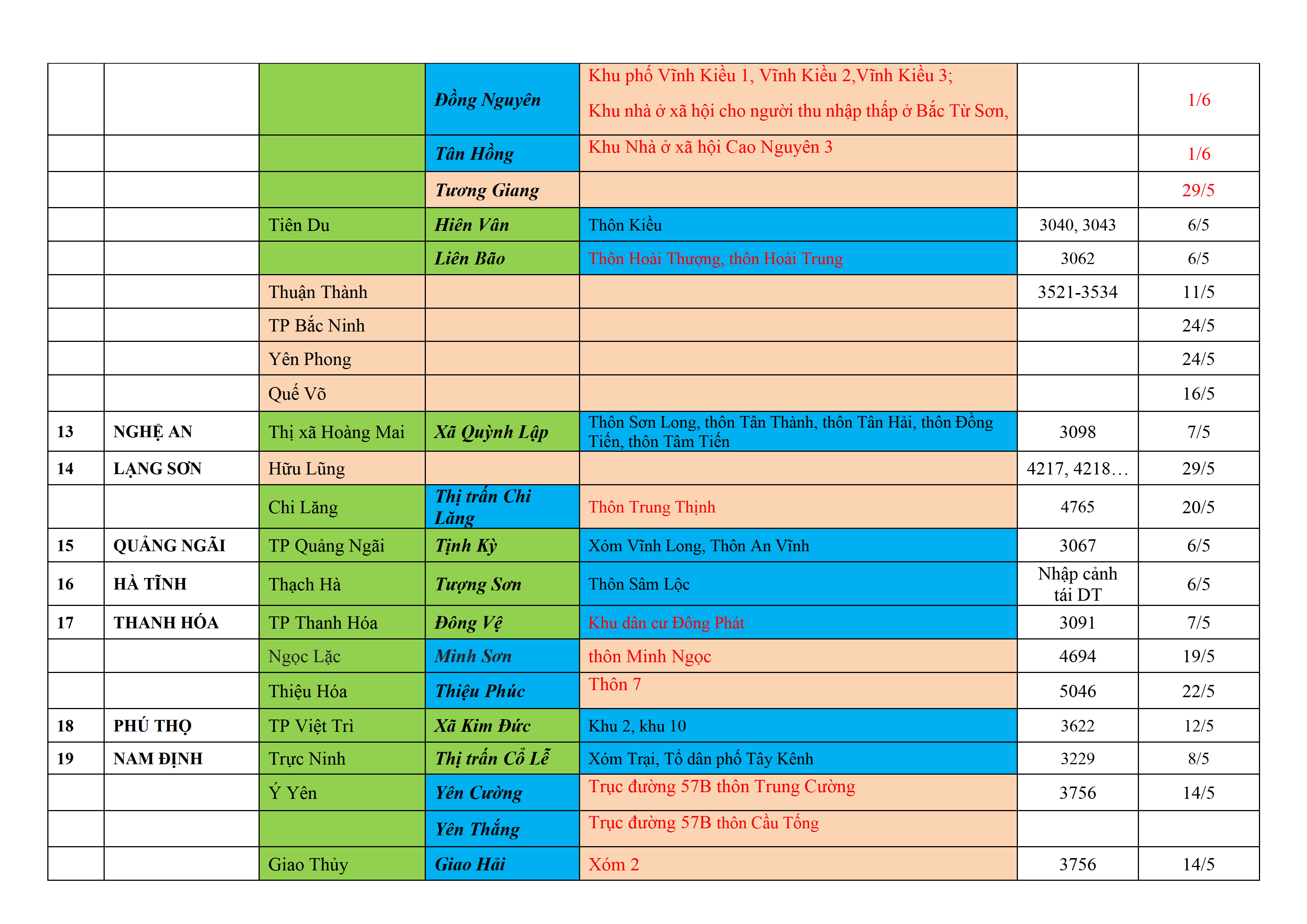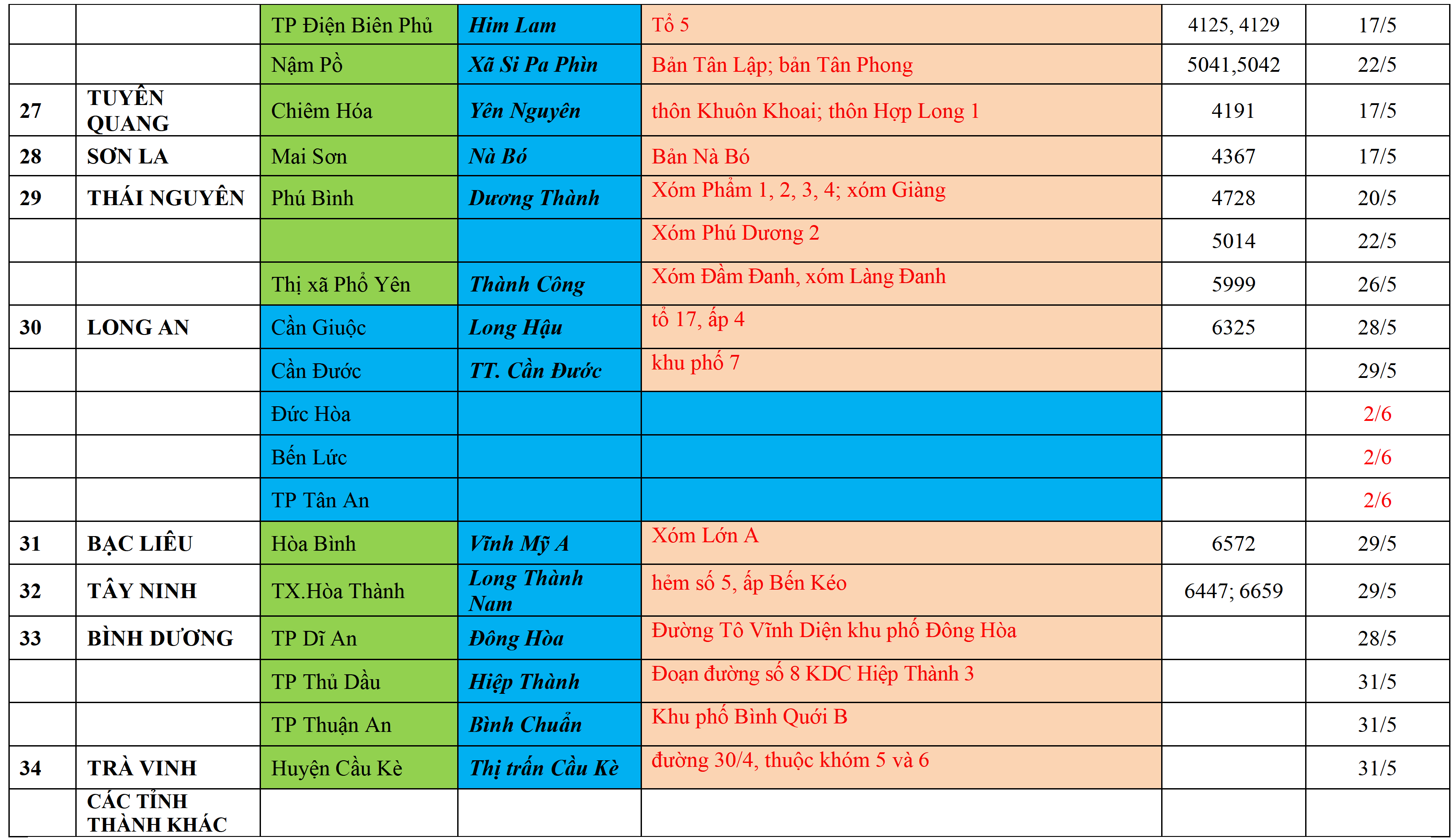 . Từ 12h00 ngày 02/6/2021 thay đổi biện pháp cách ly y tế đối với các địa phương: