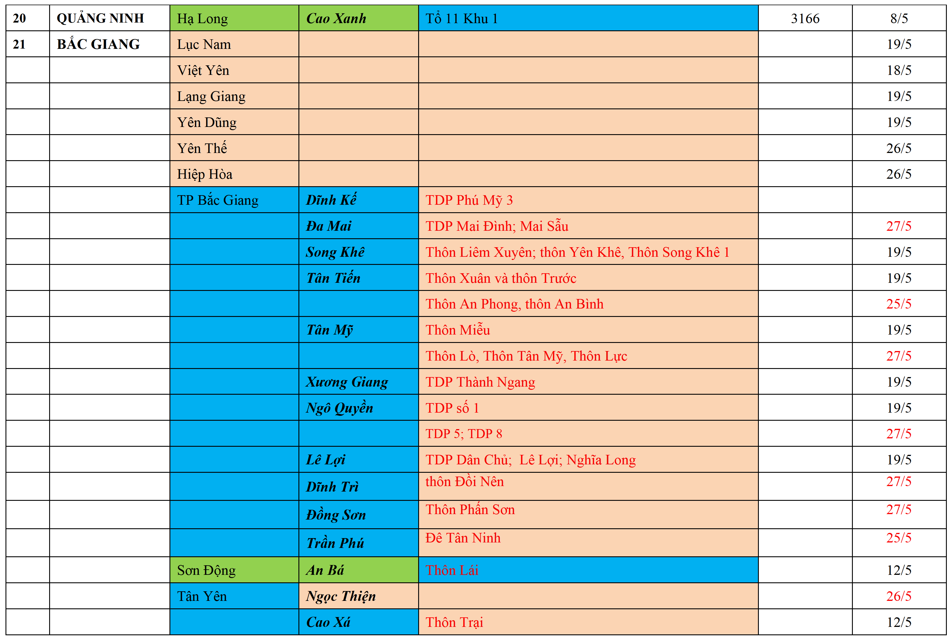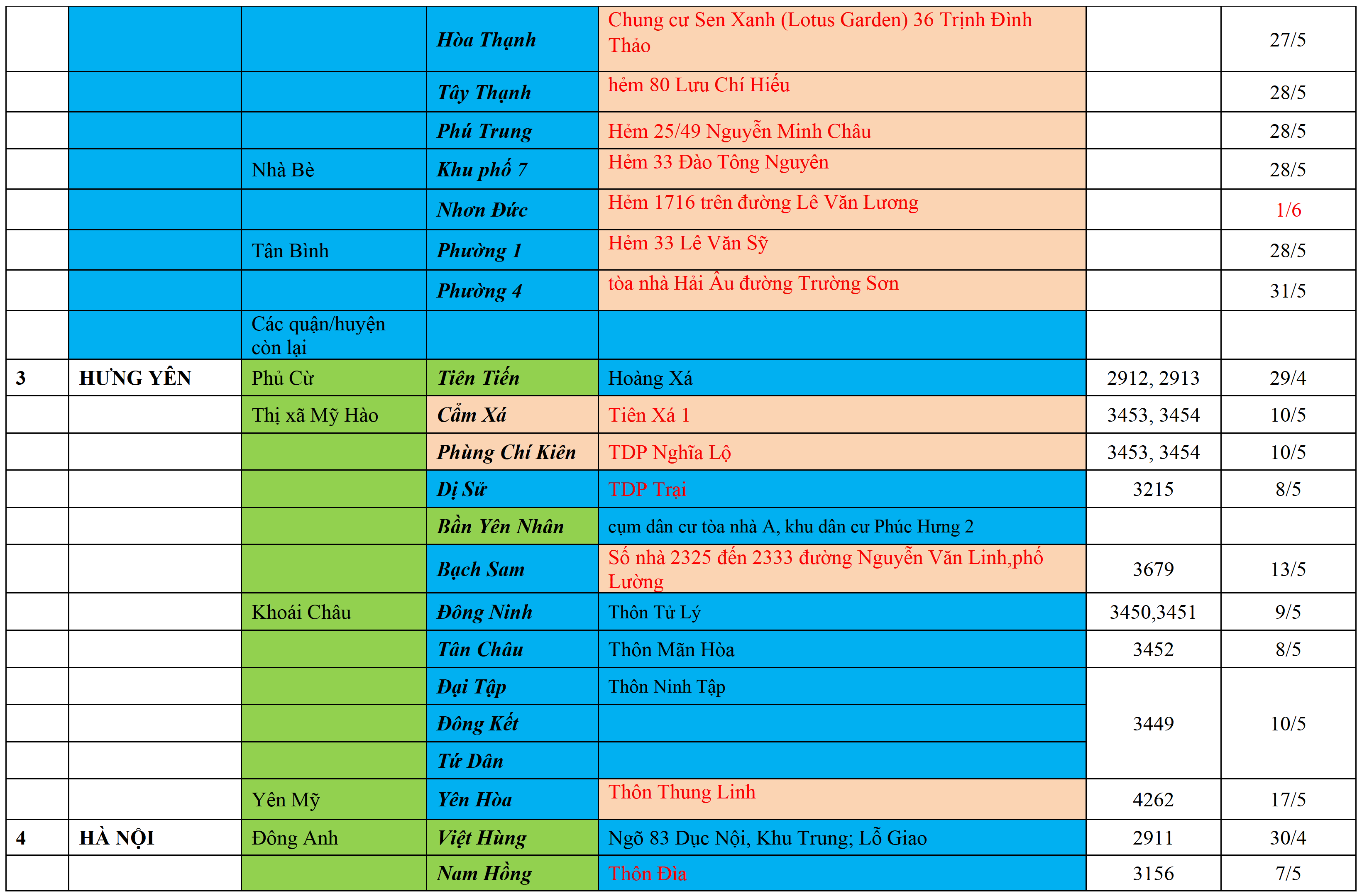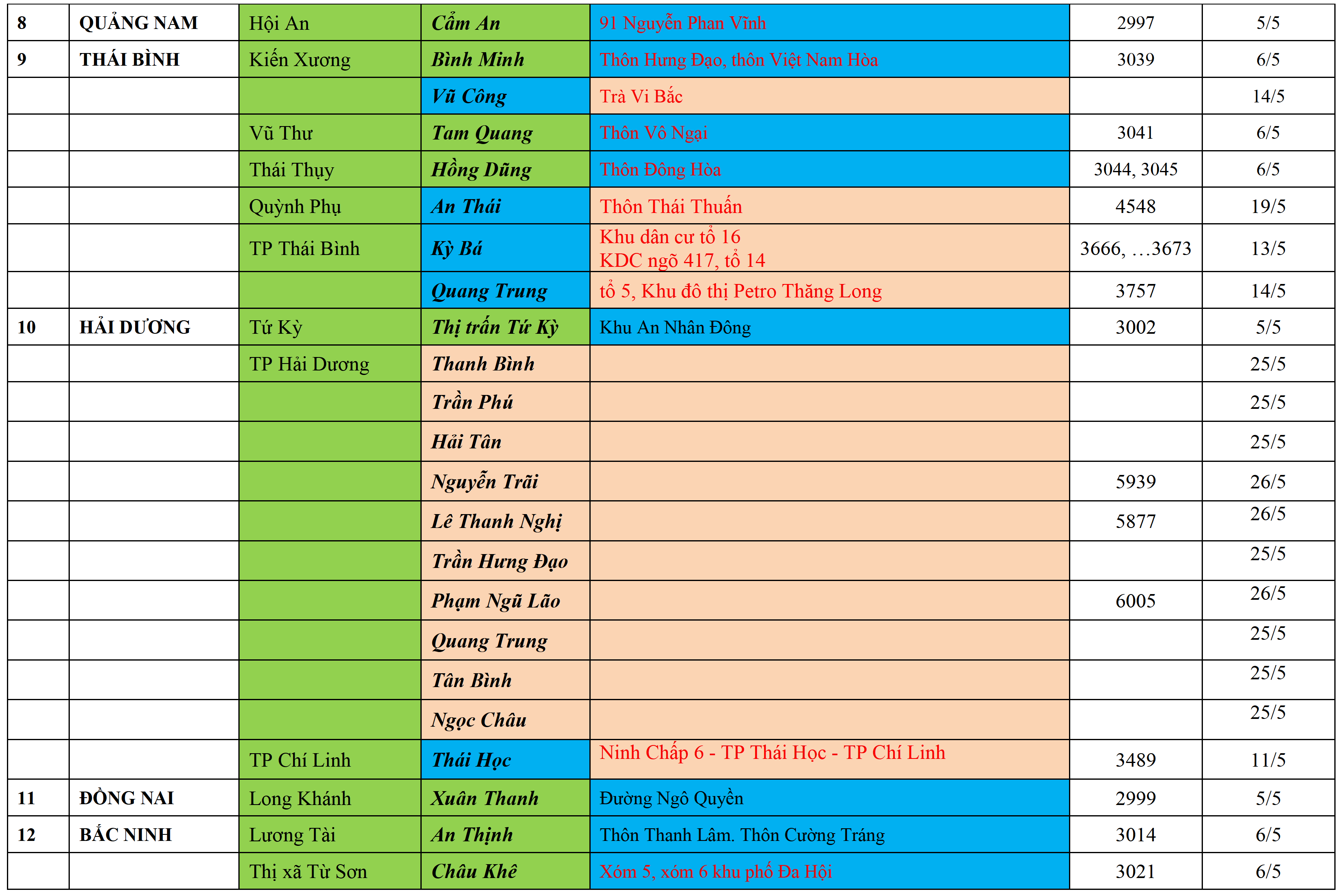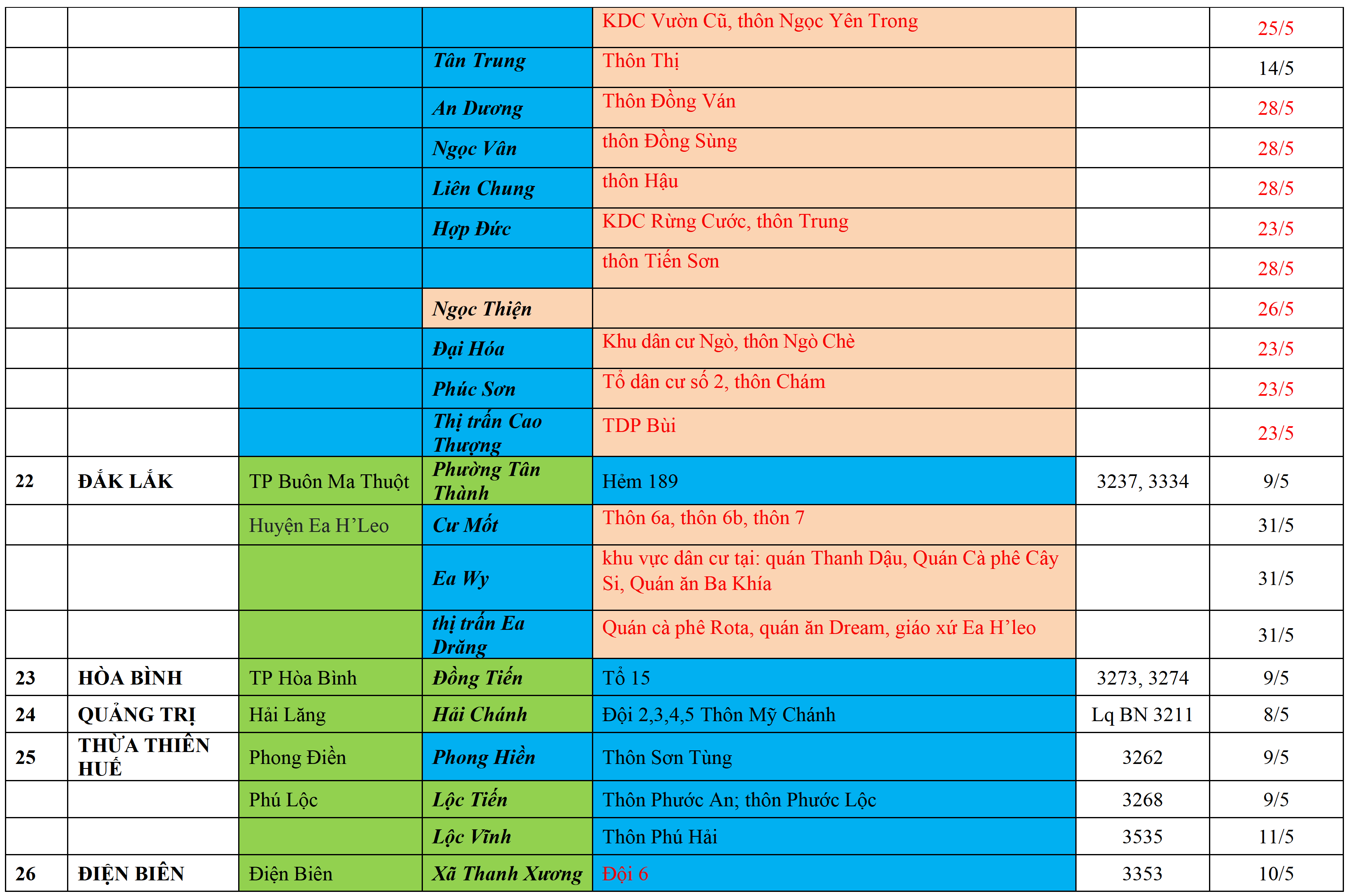 . Từ 12h00 ngày 02/6/2021 thay đổi biện pháp cách ly y tế đối với các địa phương:
