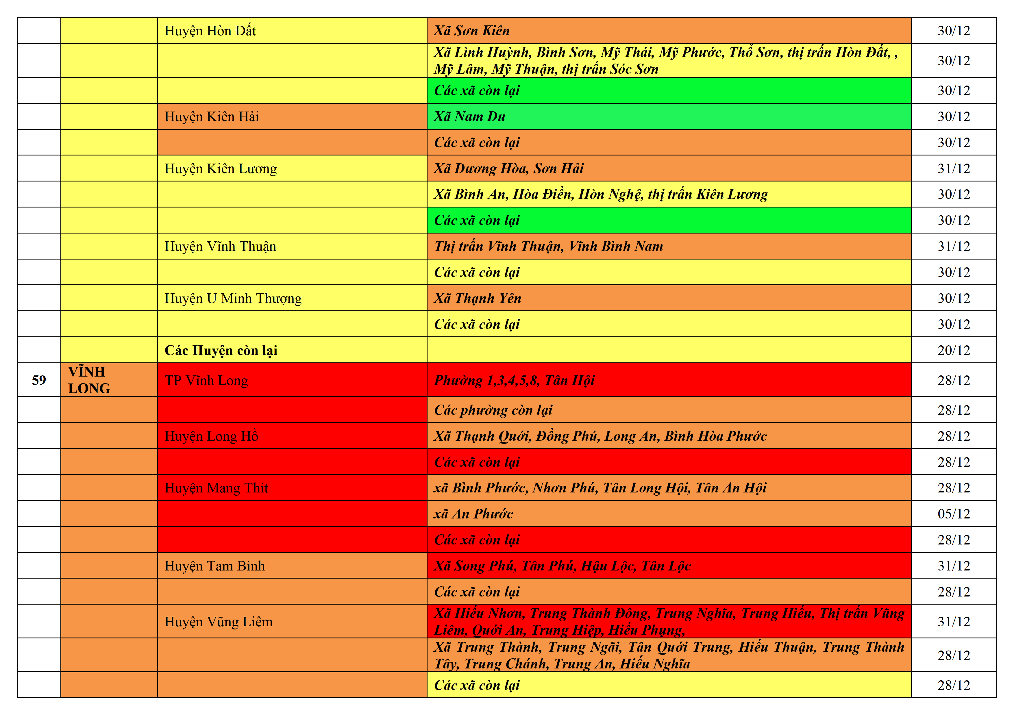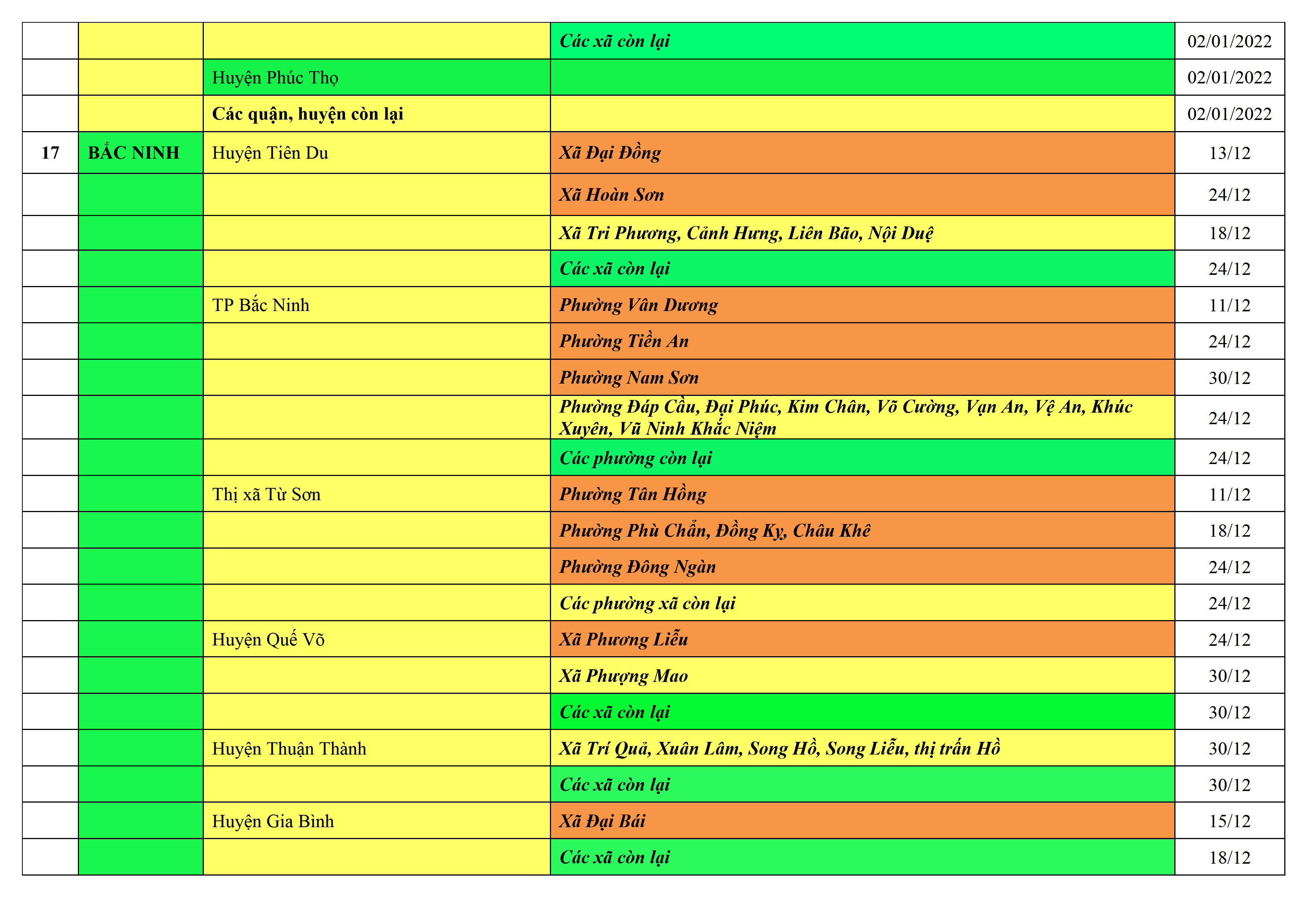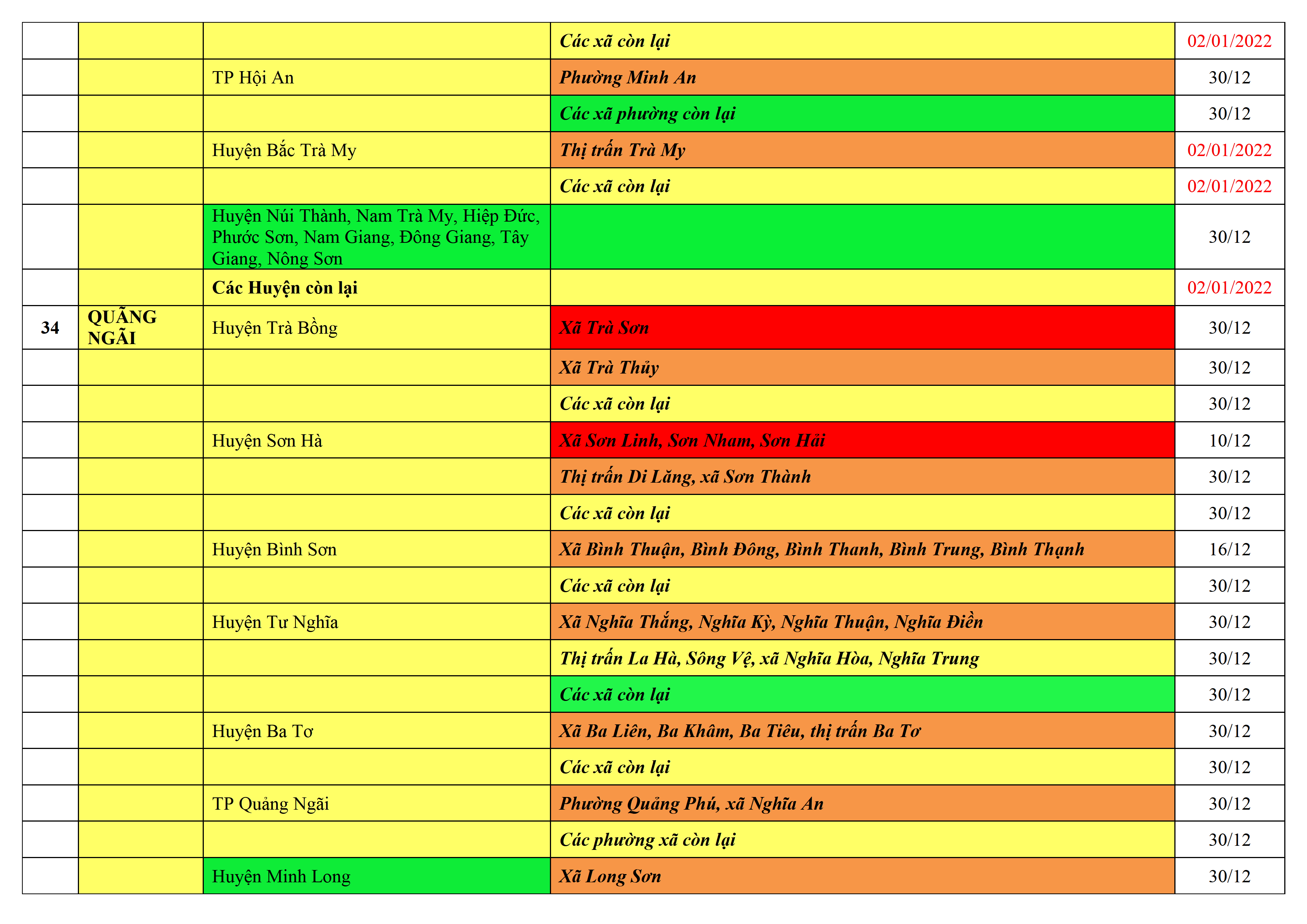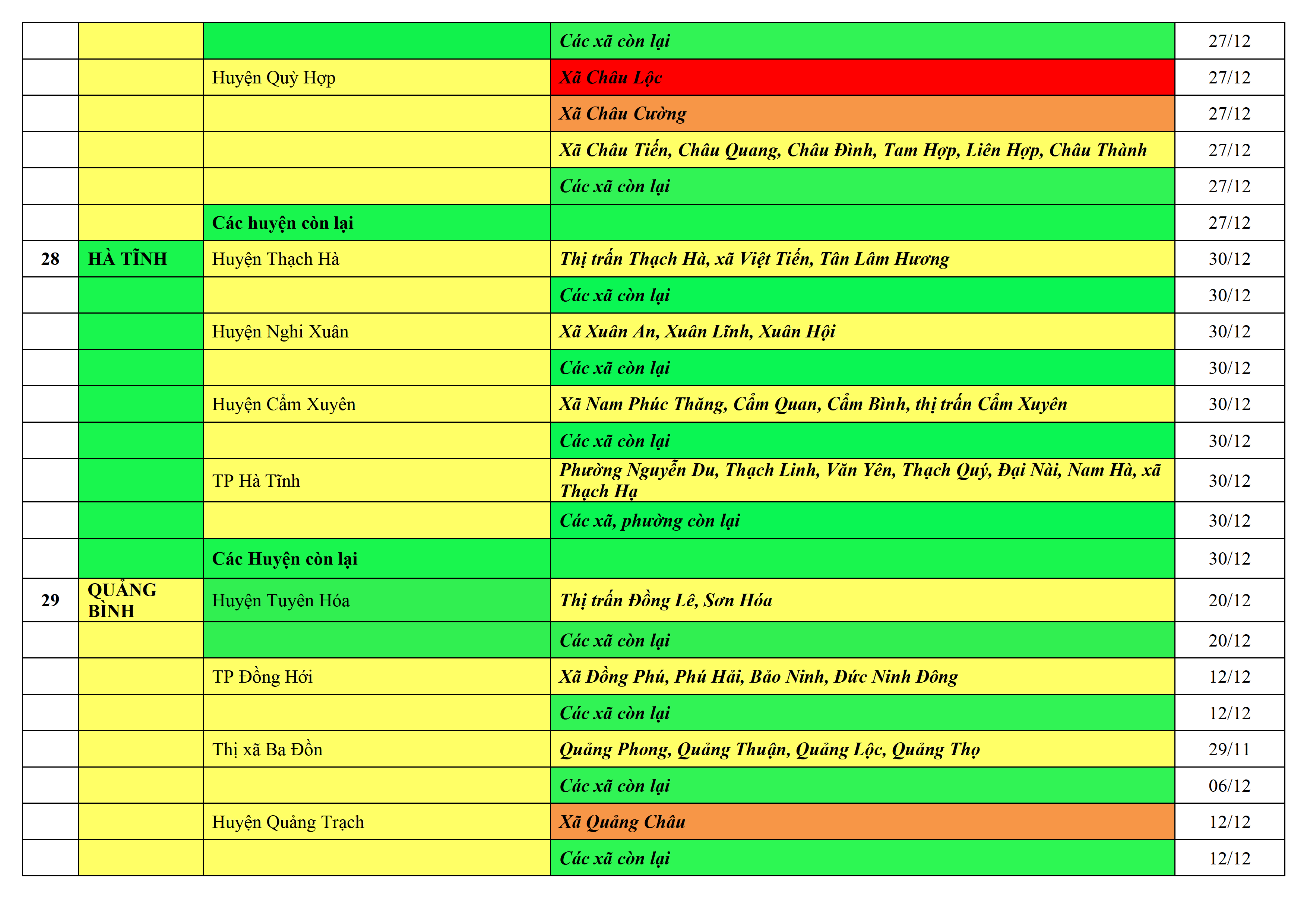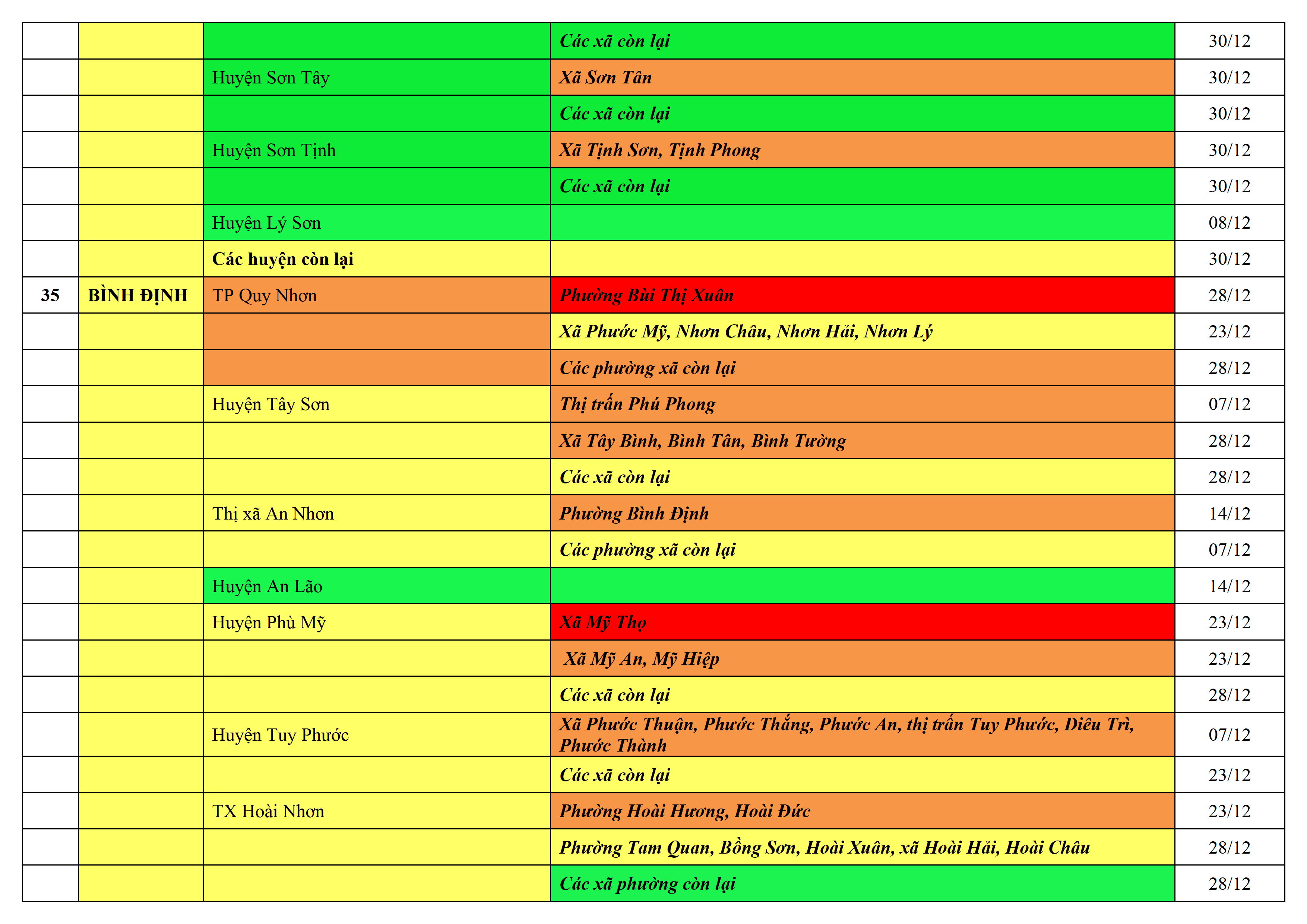 Áp dụng biện pháp tương ứng màu sắc ô cột theo thôn xóm; xã phường; quận huyện; tỉnh thành phố. Cách ly y tế dựa vào việc tiếp xúc, đi đến địa điểm và nơi cư trú có ca bệnh, theo Thông báo của Bộ Y tế, các tỉnh thành phố.