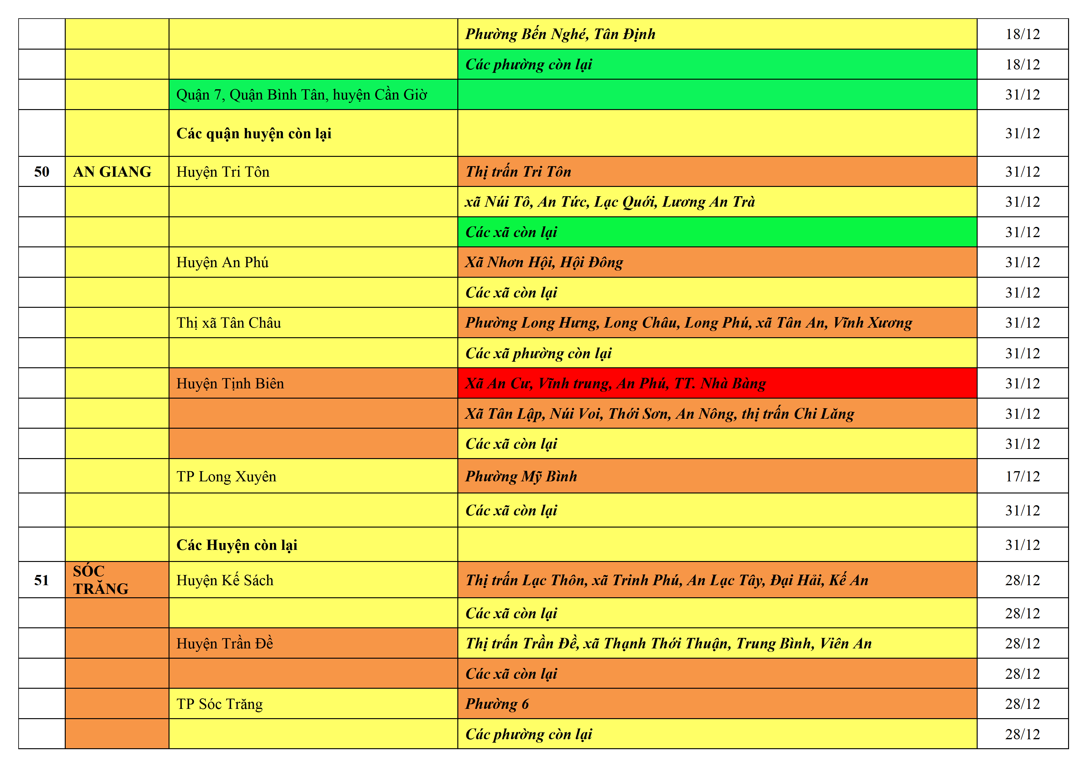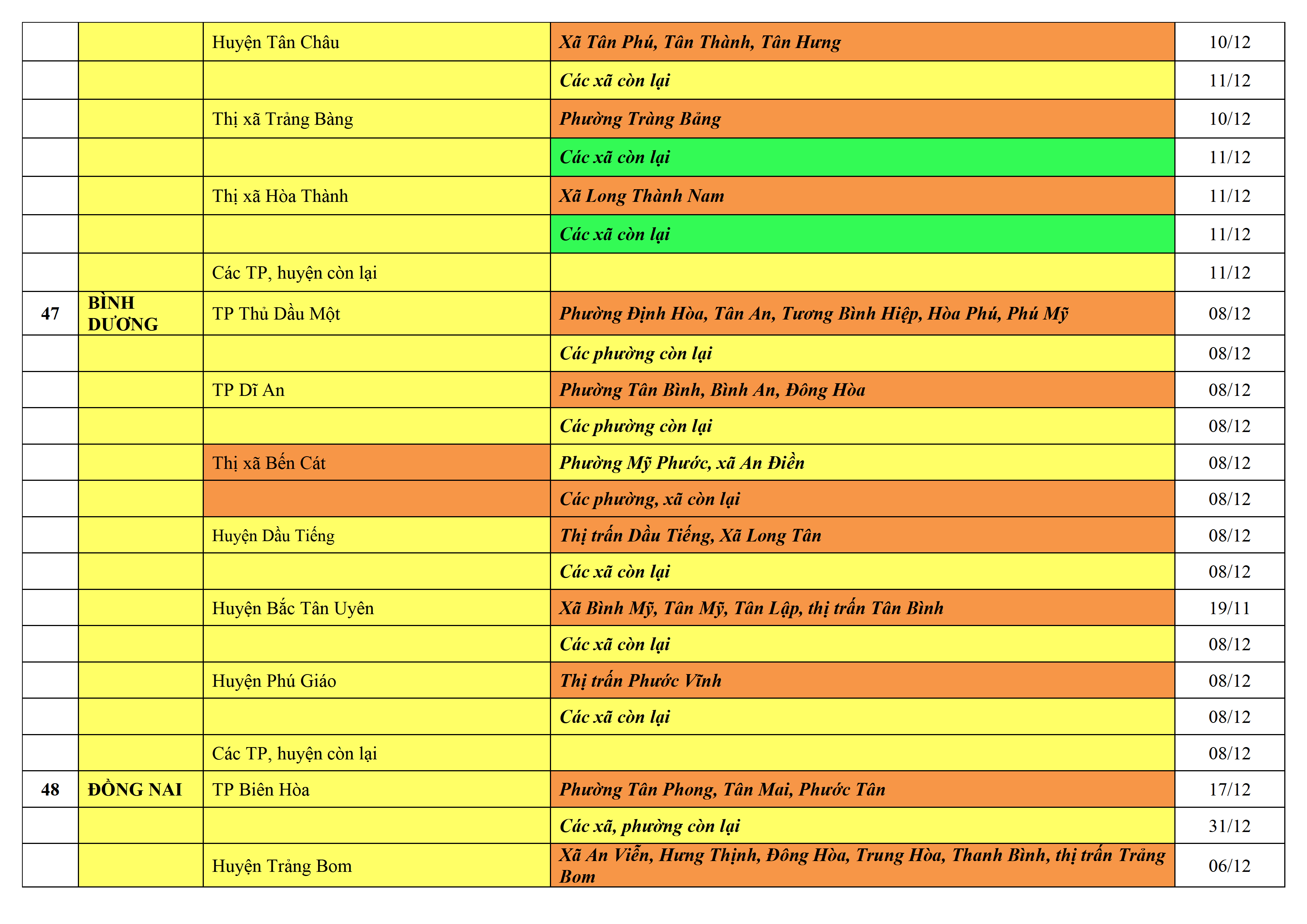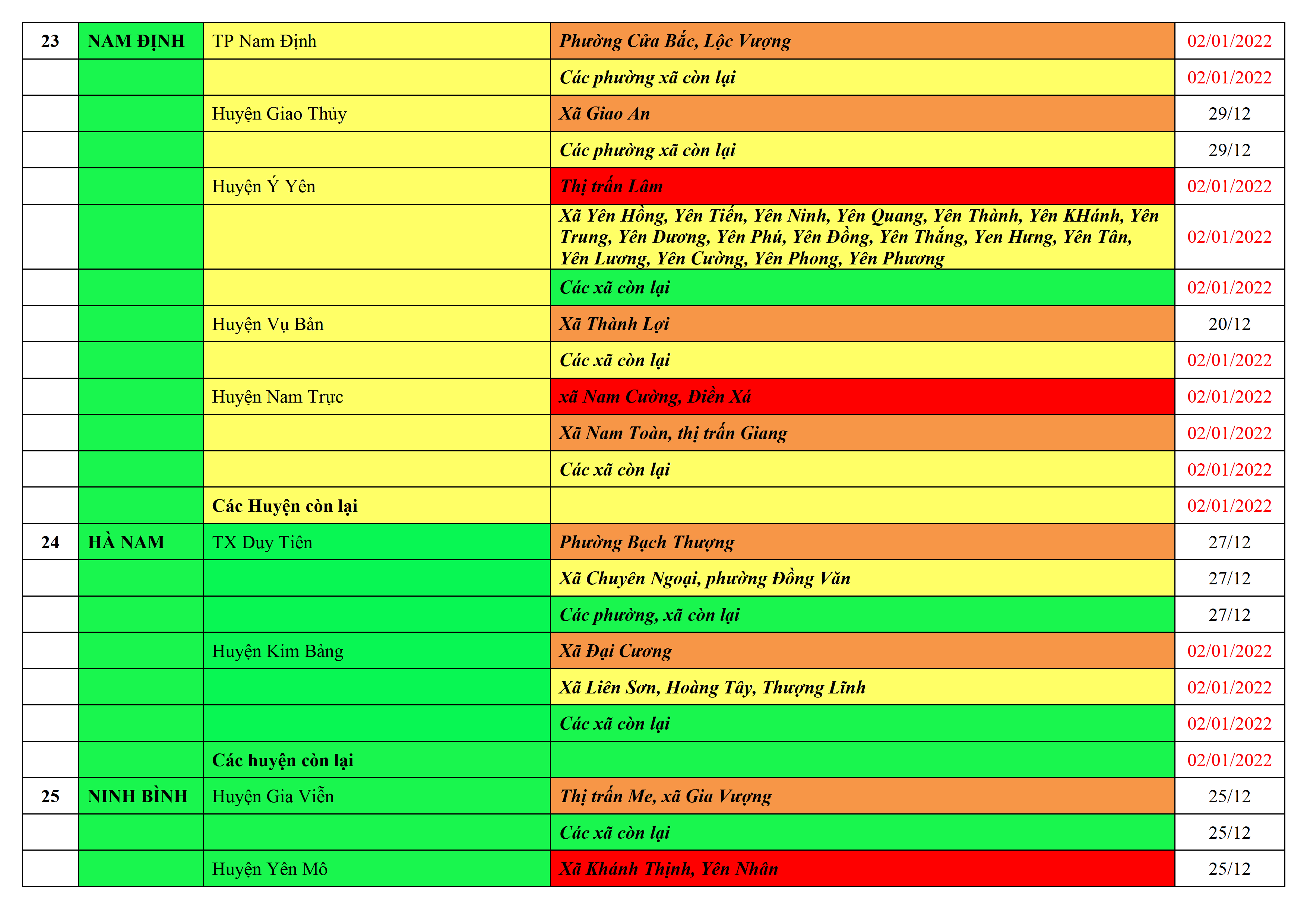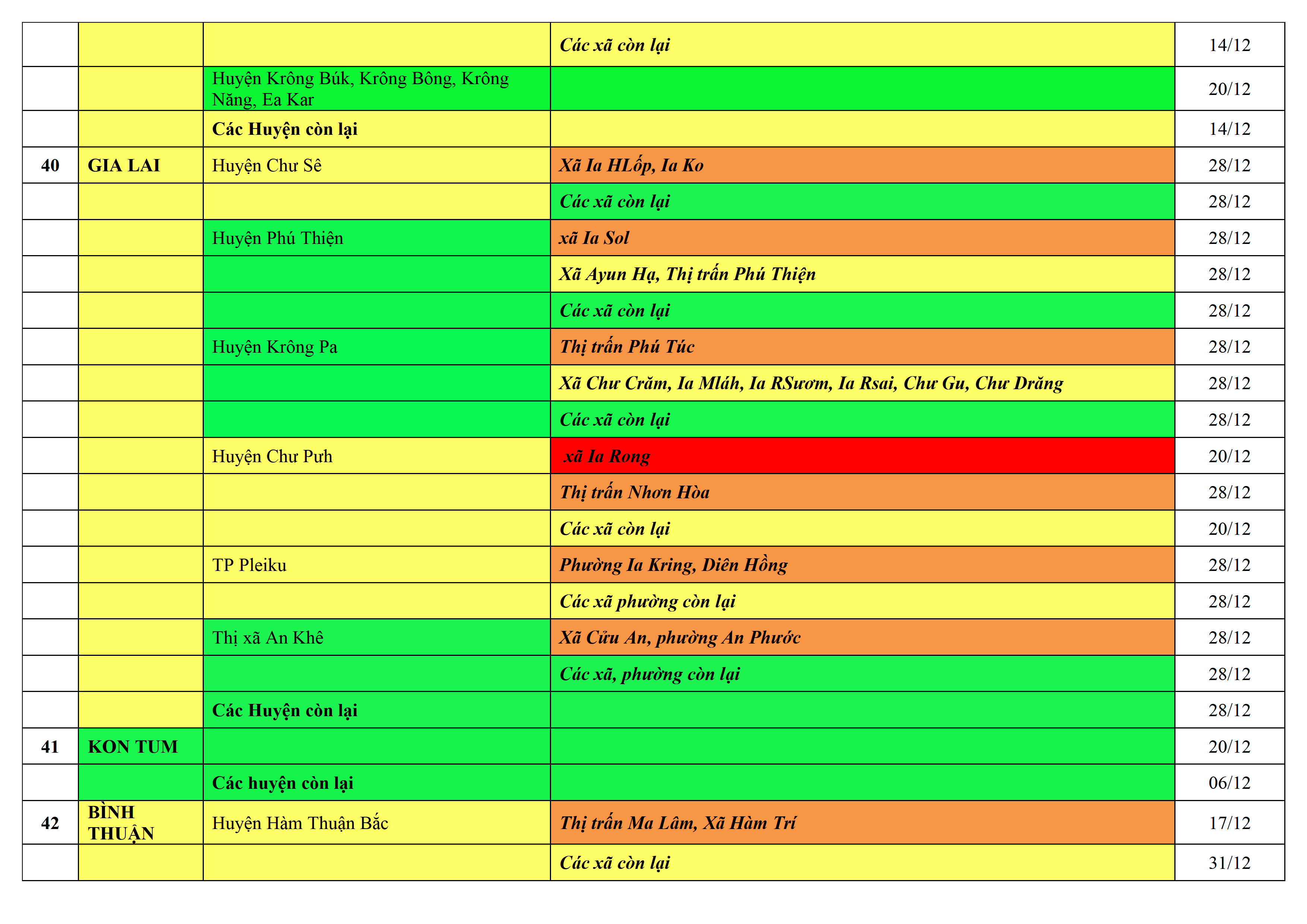 Áp dụng biện pháp tương ứng màu sắc ô cột theo thôn xóm; xã phường; quận huyện; tỉnh thành phố. Cách ly y tế dựa vào việc tiếp xúc, đi đến địa điểm và nơi cư trú có ca bệnh, theo Thông báo của Bộ Y tế, các tỉnh thành phố.