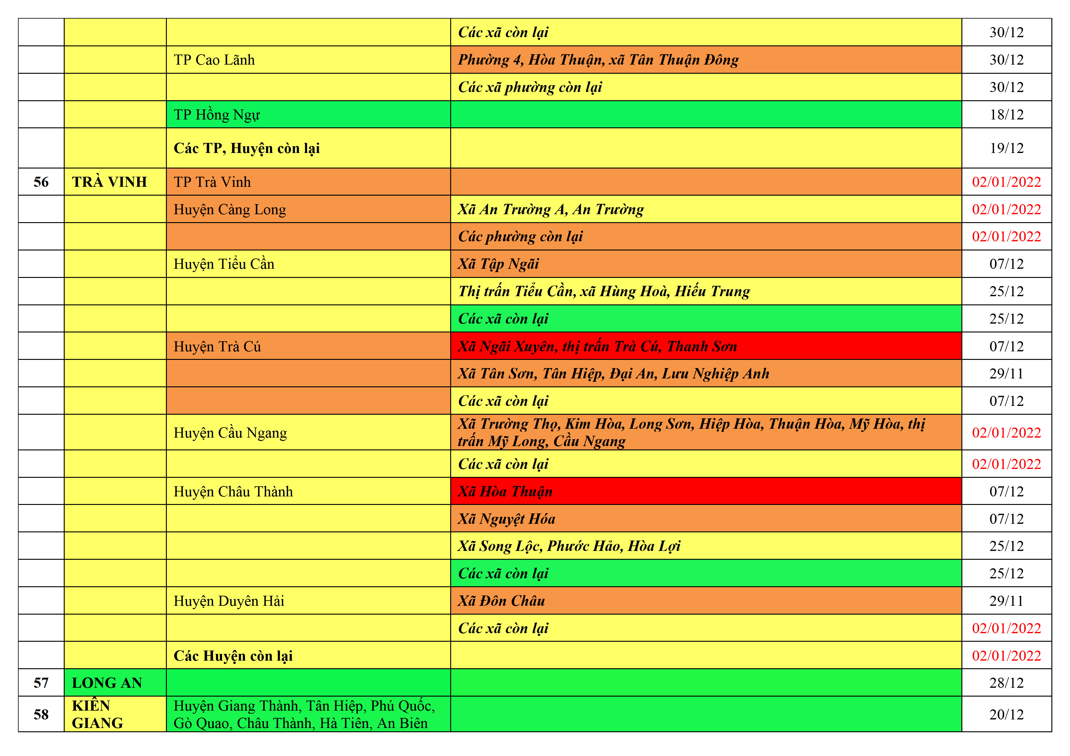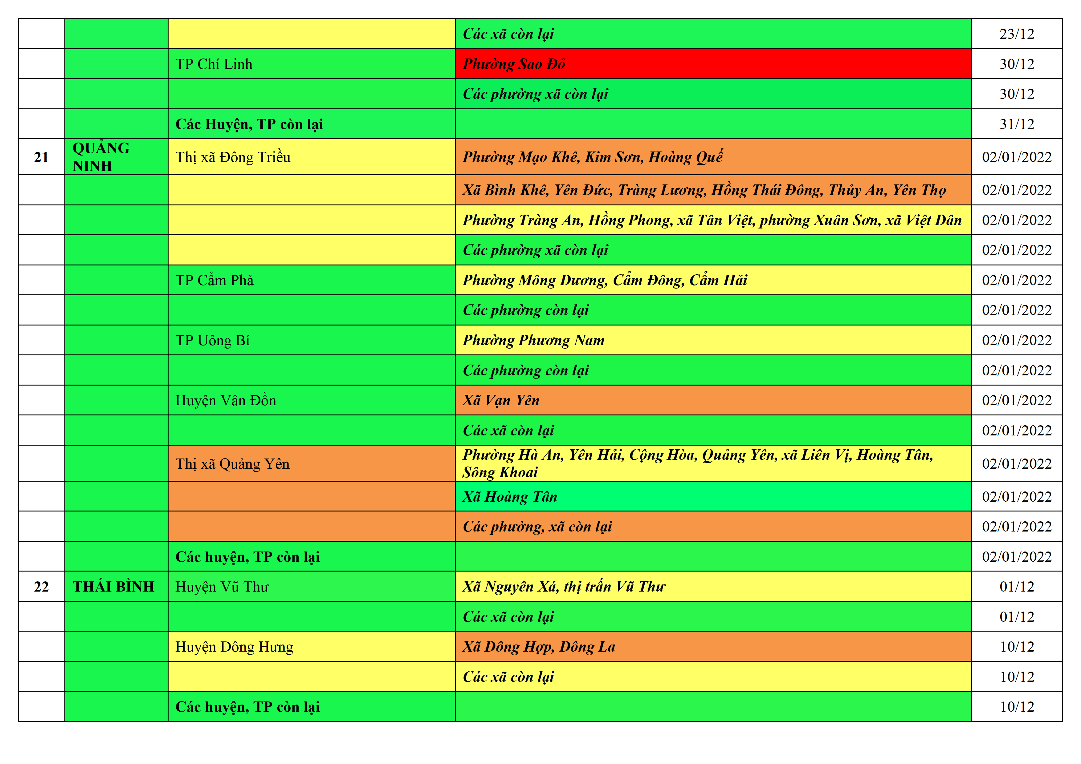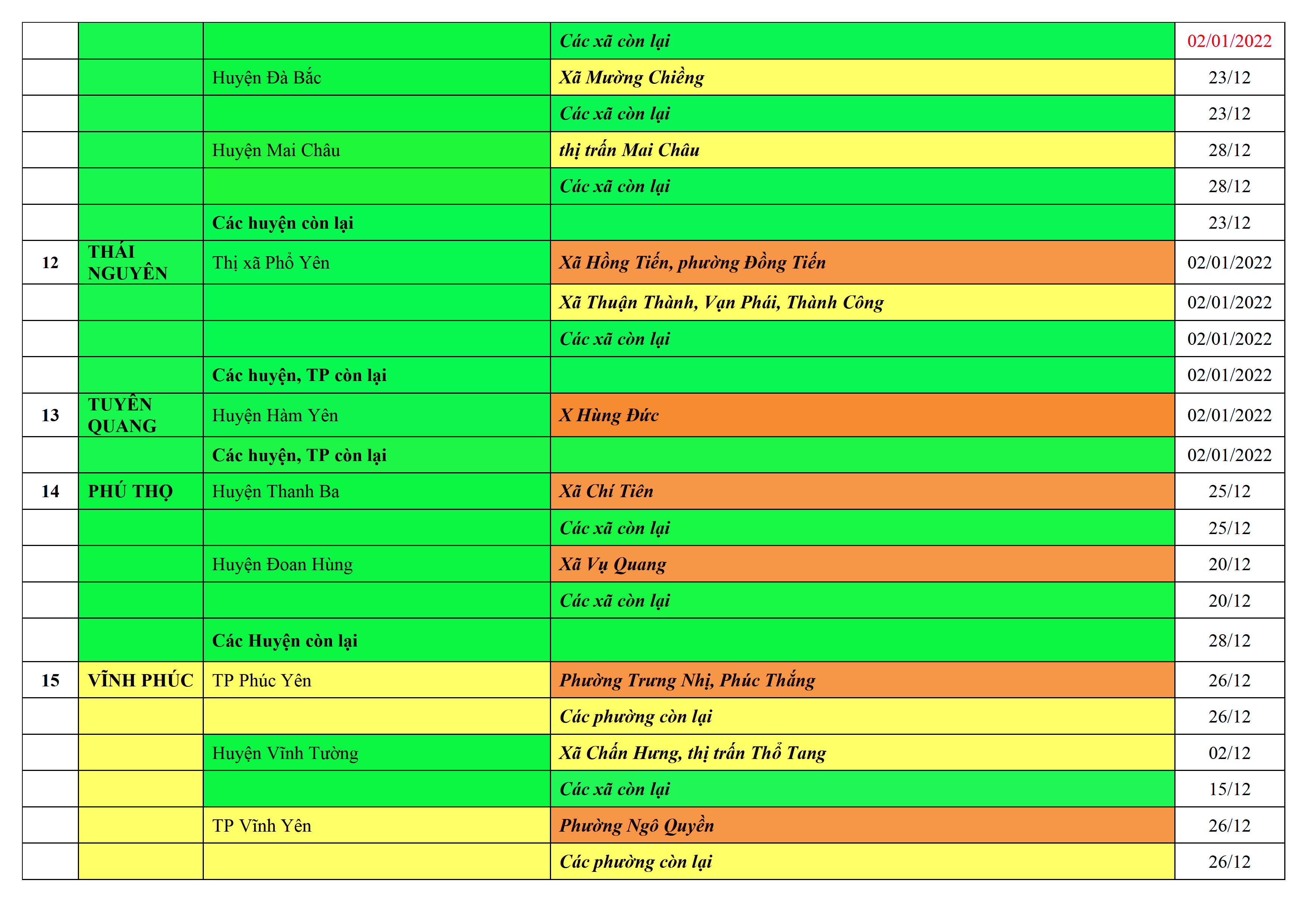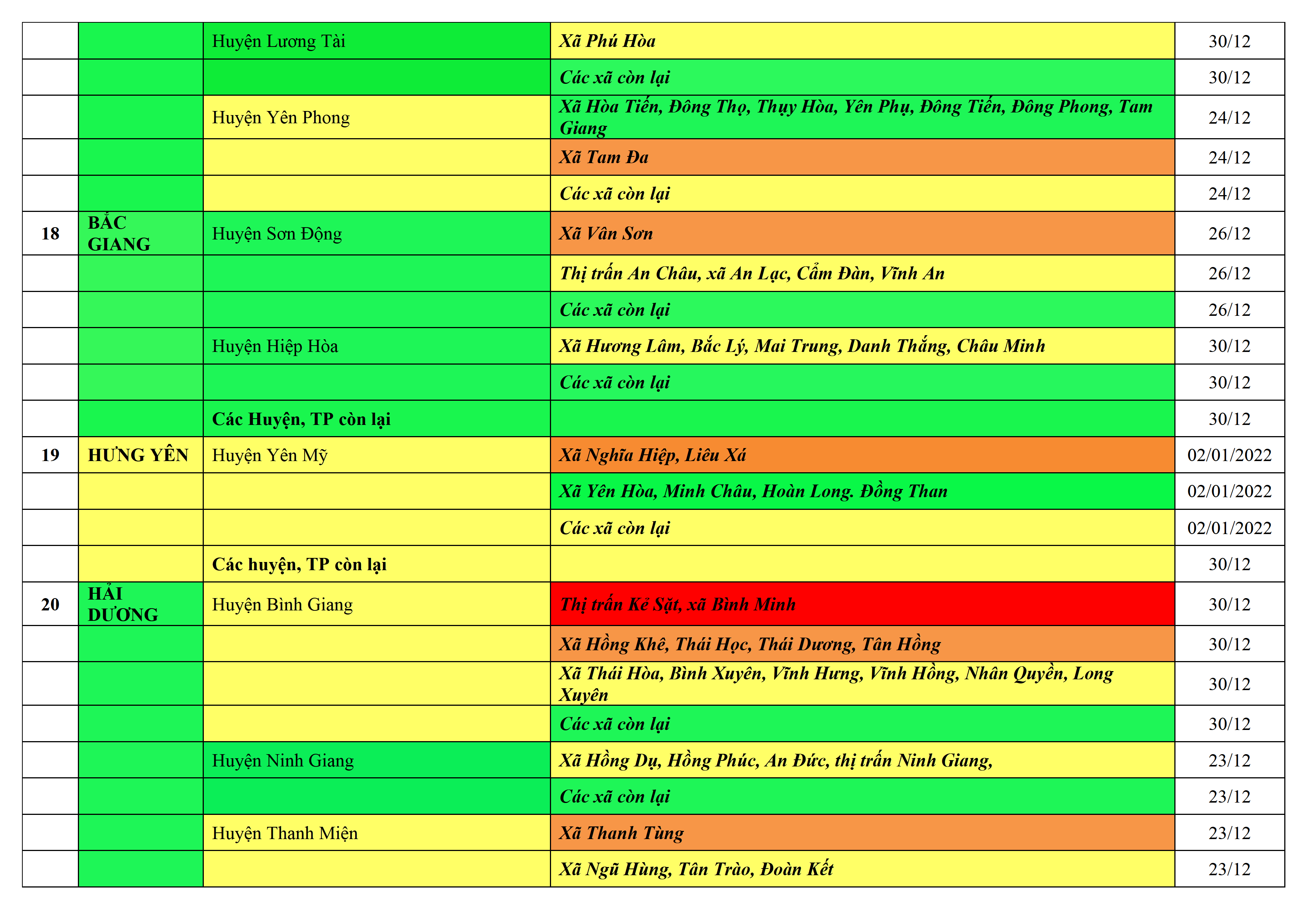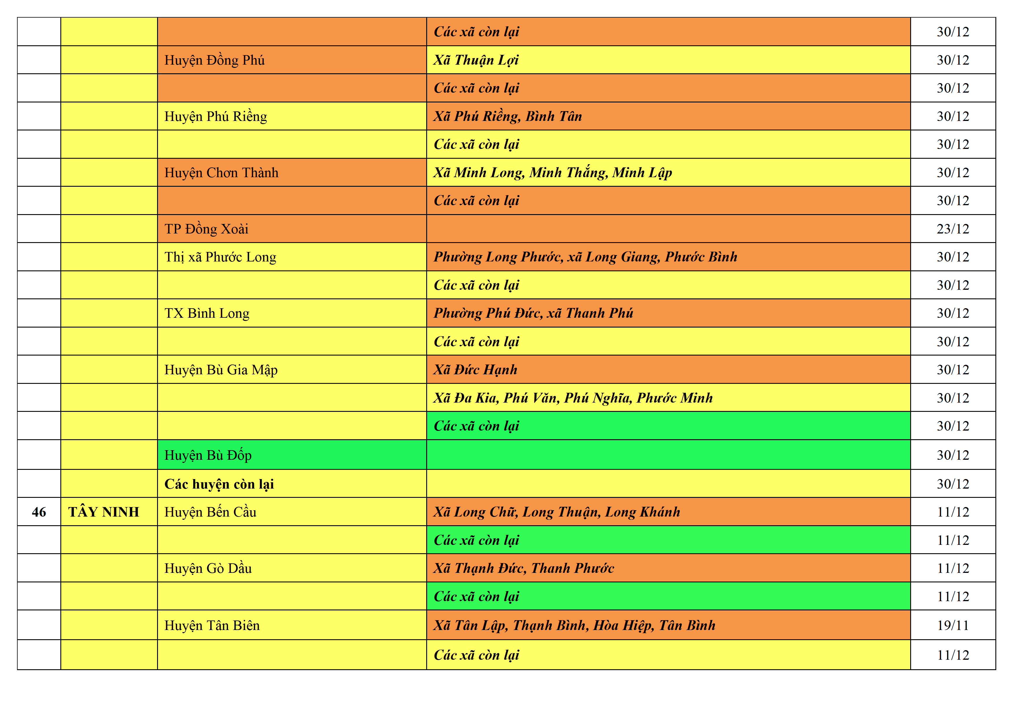 Áp dụng biện pháp tương ứng màu sắc ô cột theo thôn xóm; xã phường; quận huyện; tỉnh thành phố. Cách ly y tế dựa vào việc tiếp xúc, đi đến địa điểm và nơi cư trú có ca bệnh, theo Thông báo của Bộ Y tế, các tỉnh thành phố.