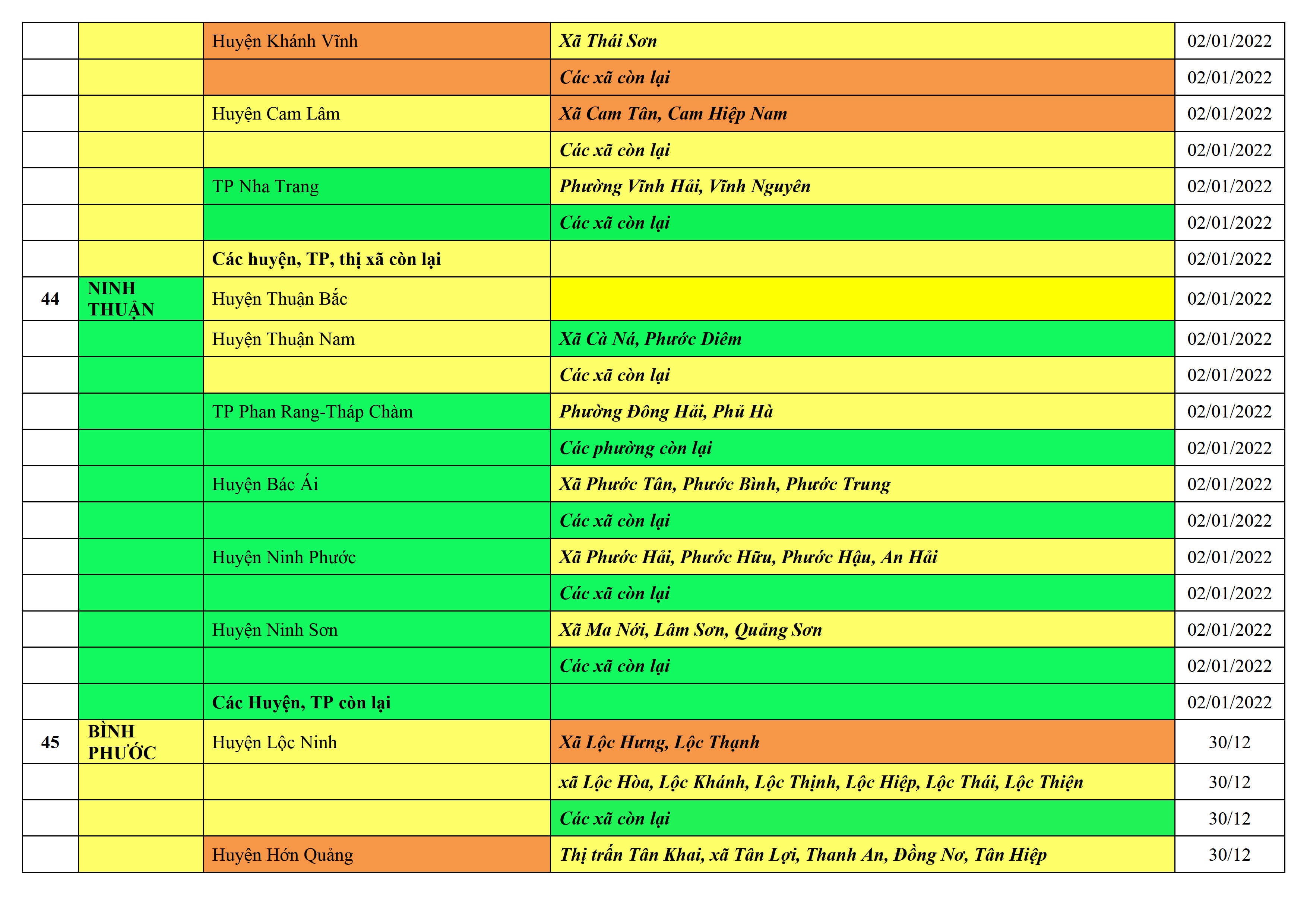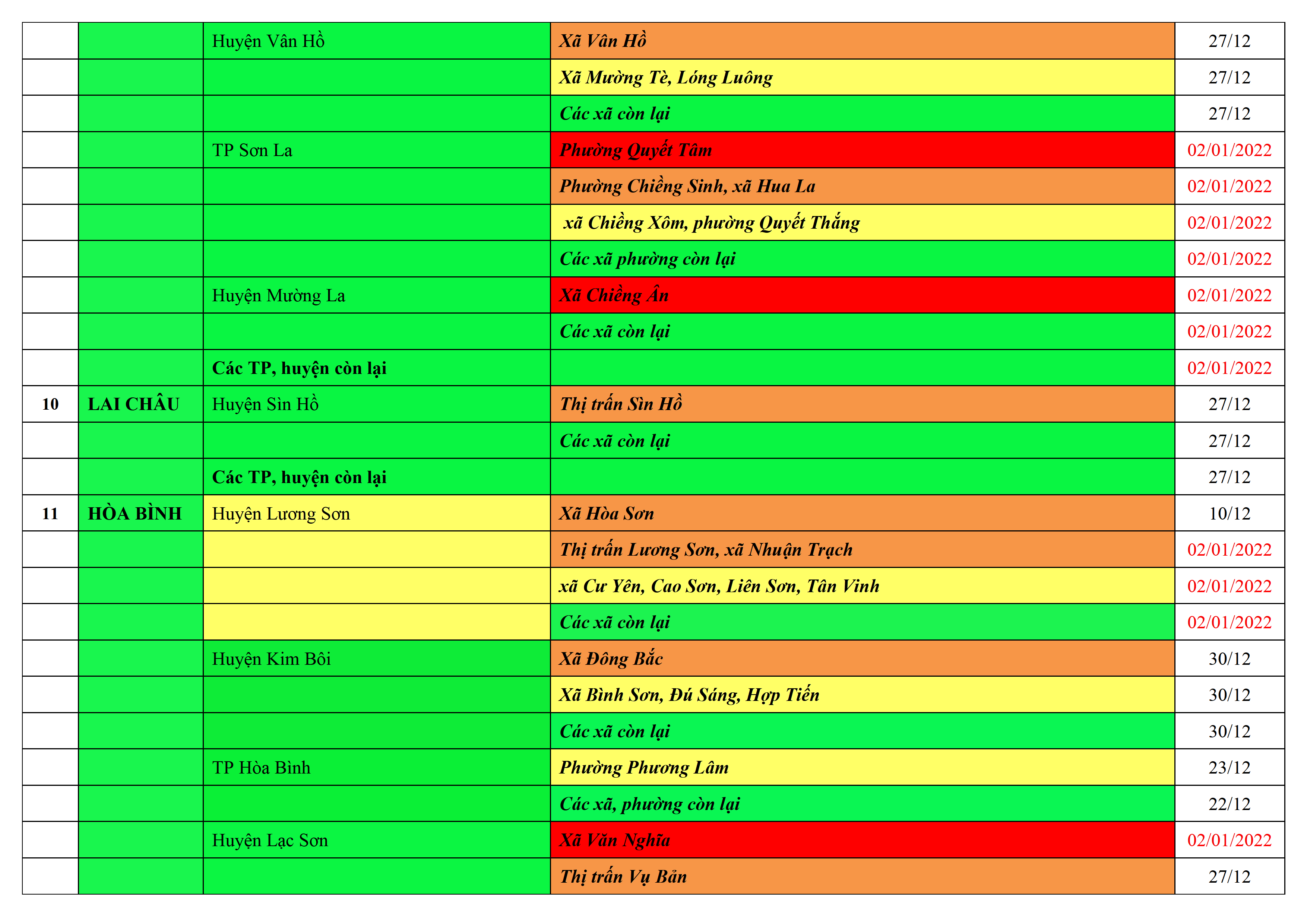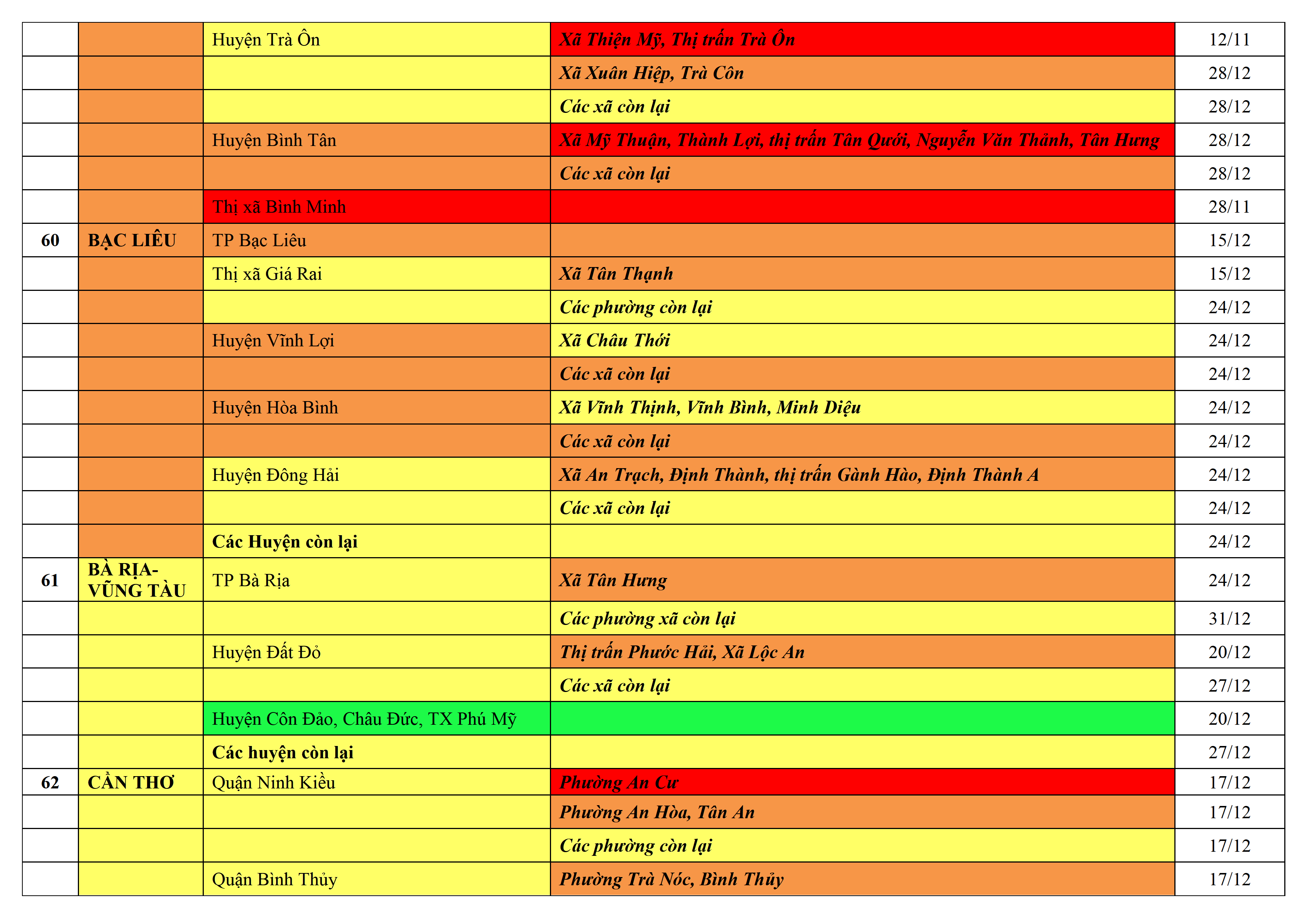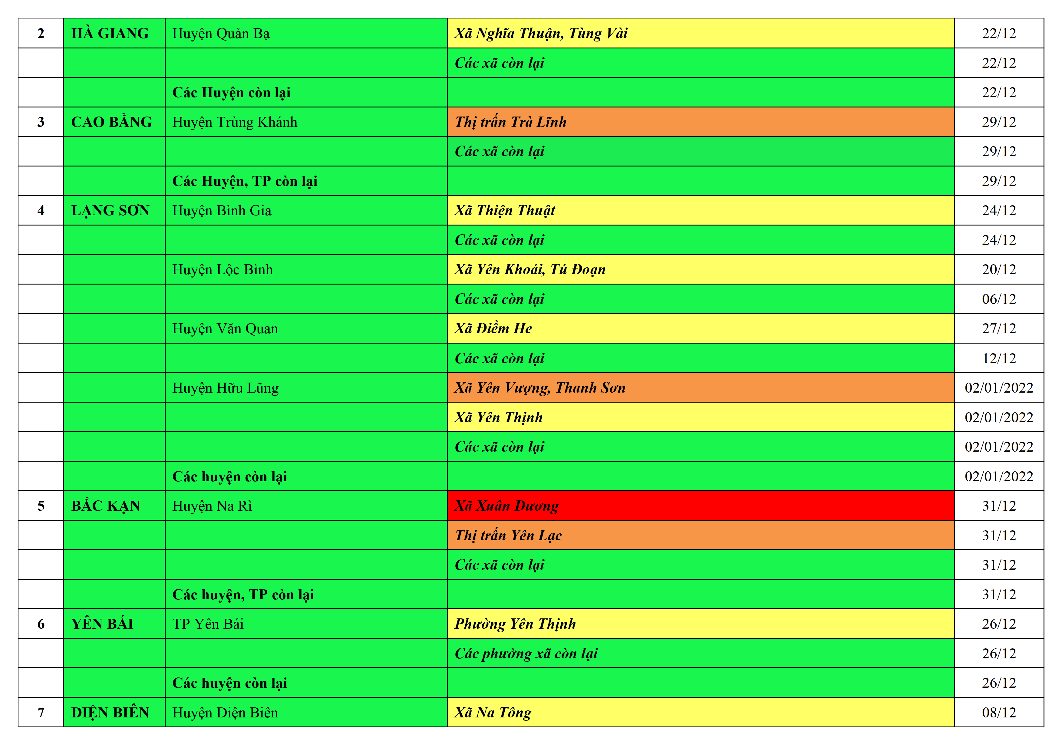 Áp dụng biện pháp tương ứng màu sắc ô cột theo thôn xóm; xã phường; quận huyện; tỉnh thành phố. Cách ly y tế dựa vào việc tiếp xúc, đi đến địa điểm và nơi cư trú có ca bệnh, theo Thông báo của Bộ Y tế, các tỉnh thành phố.