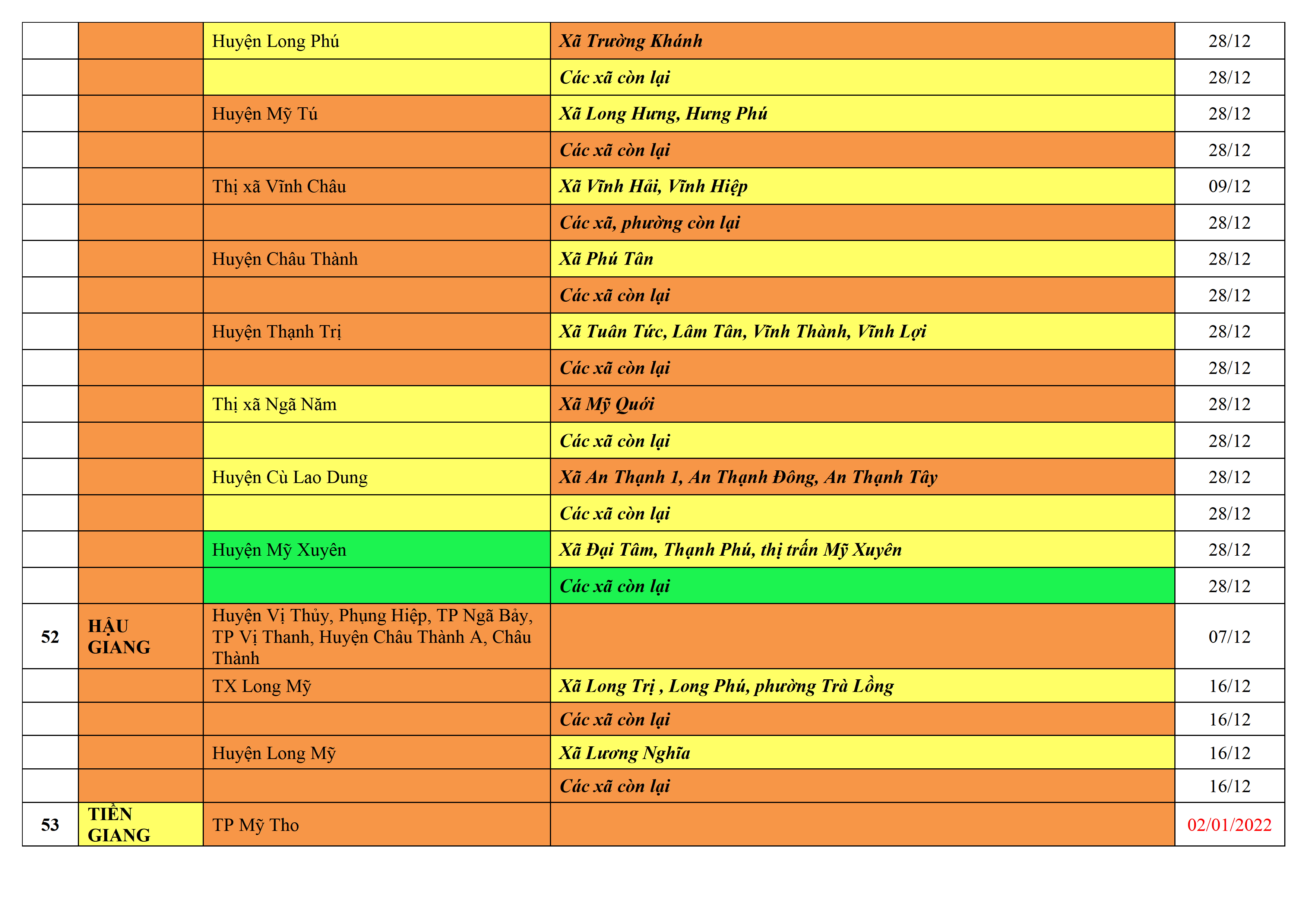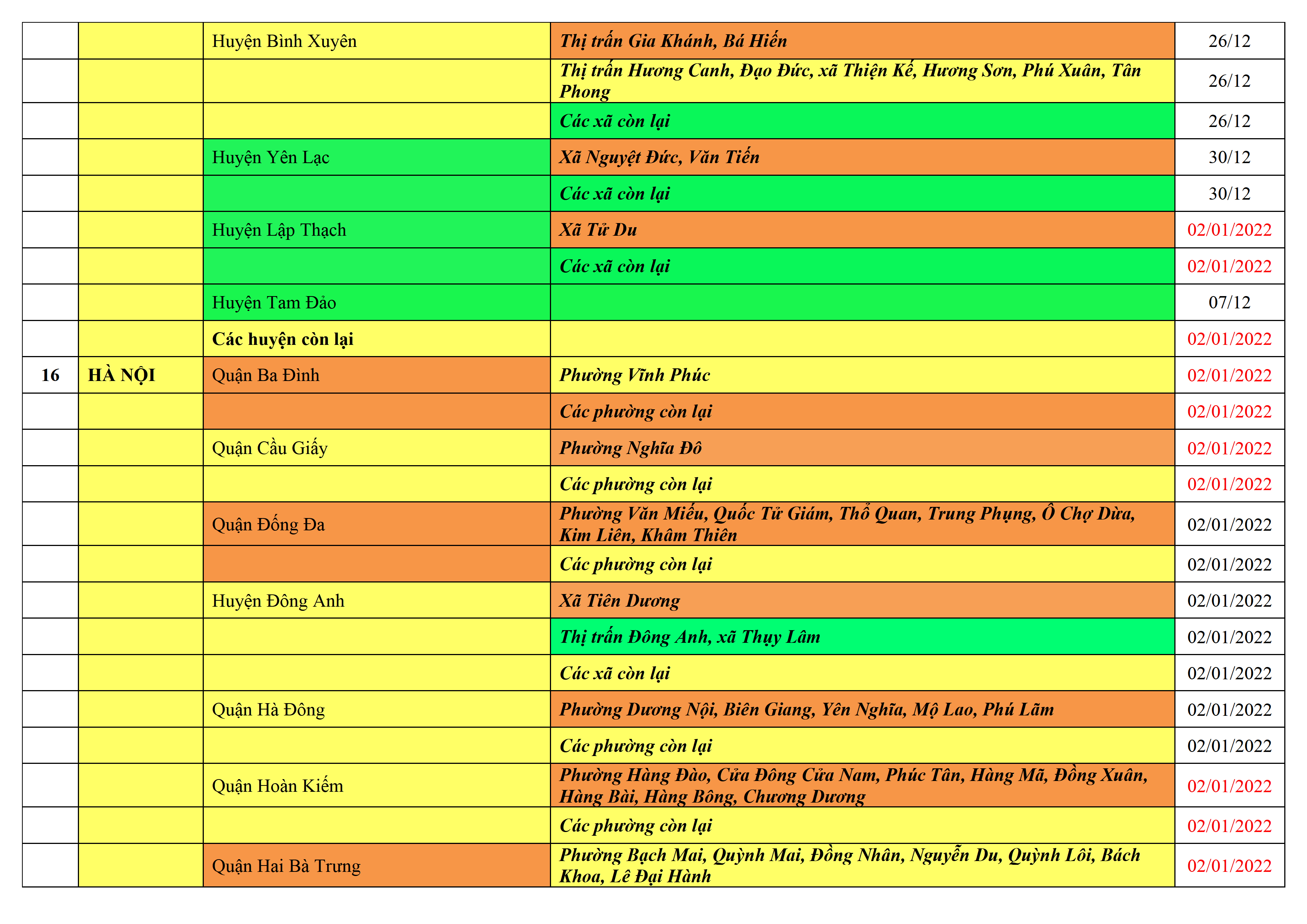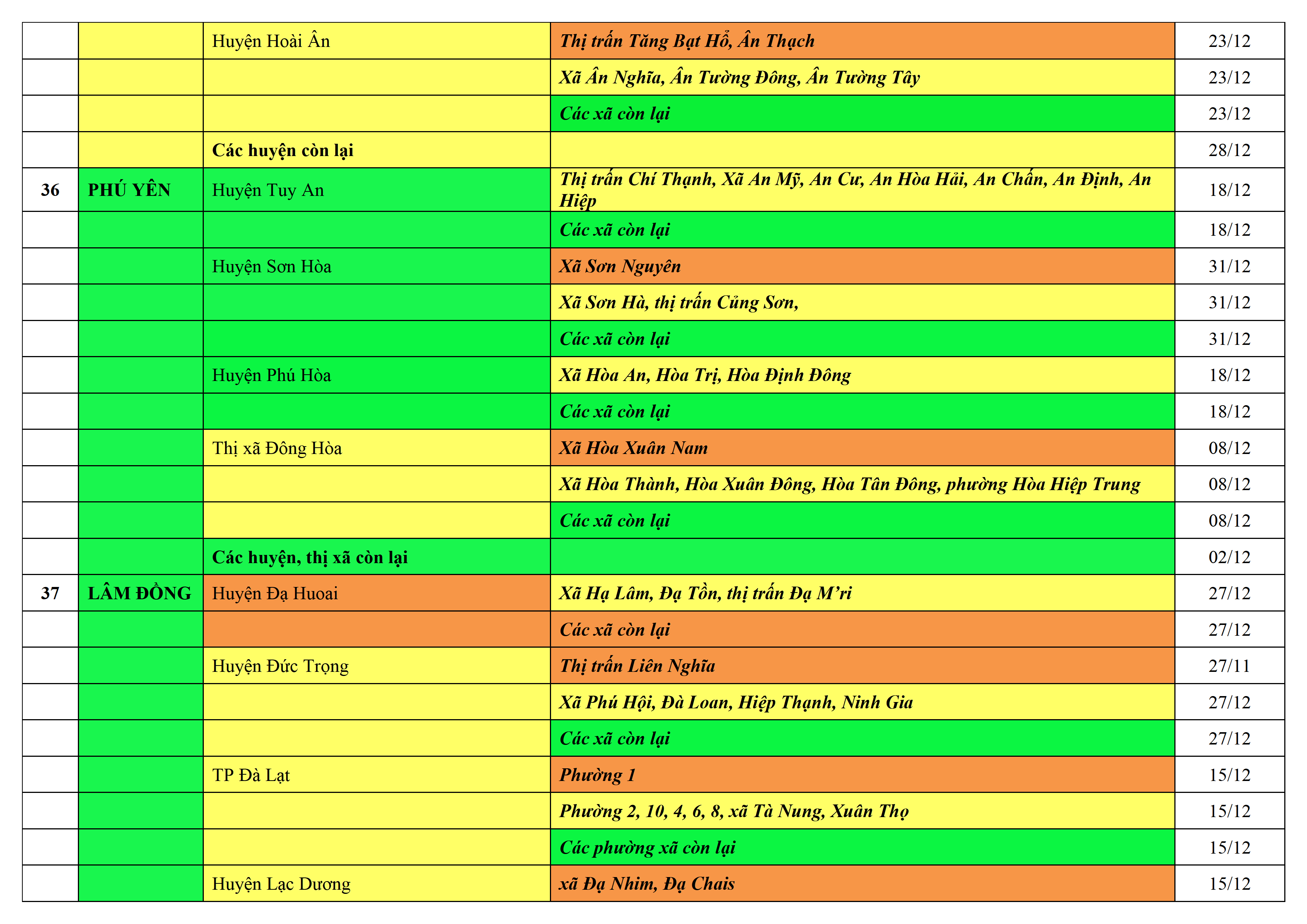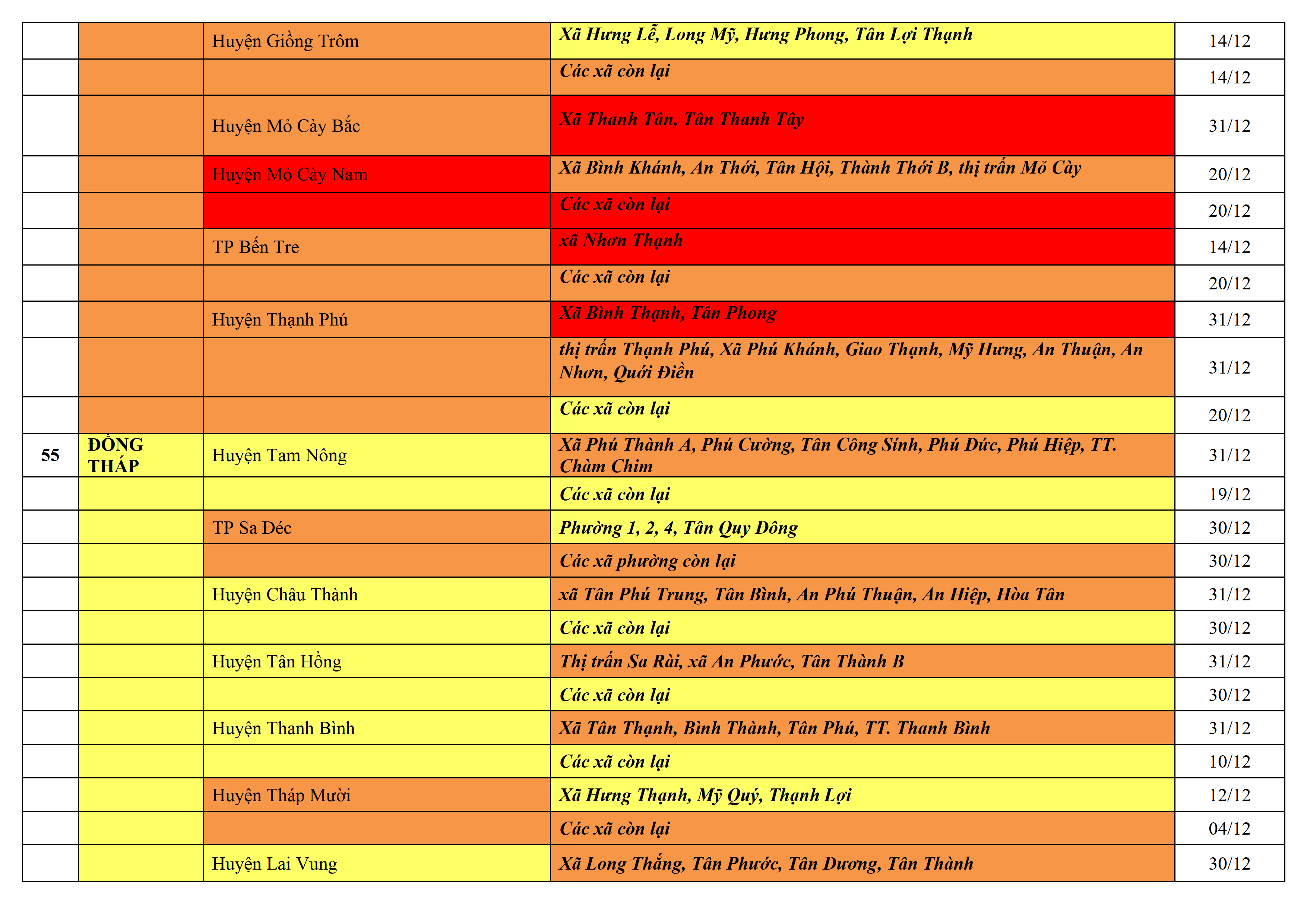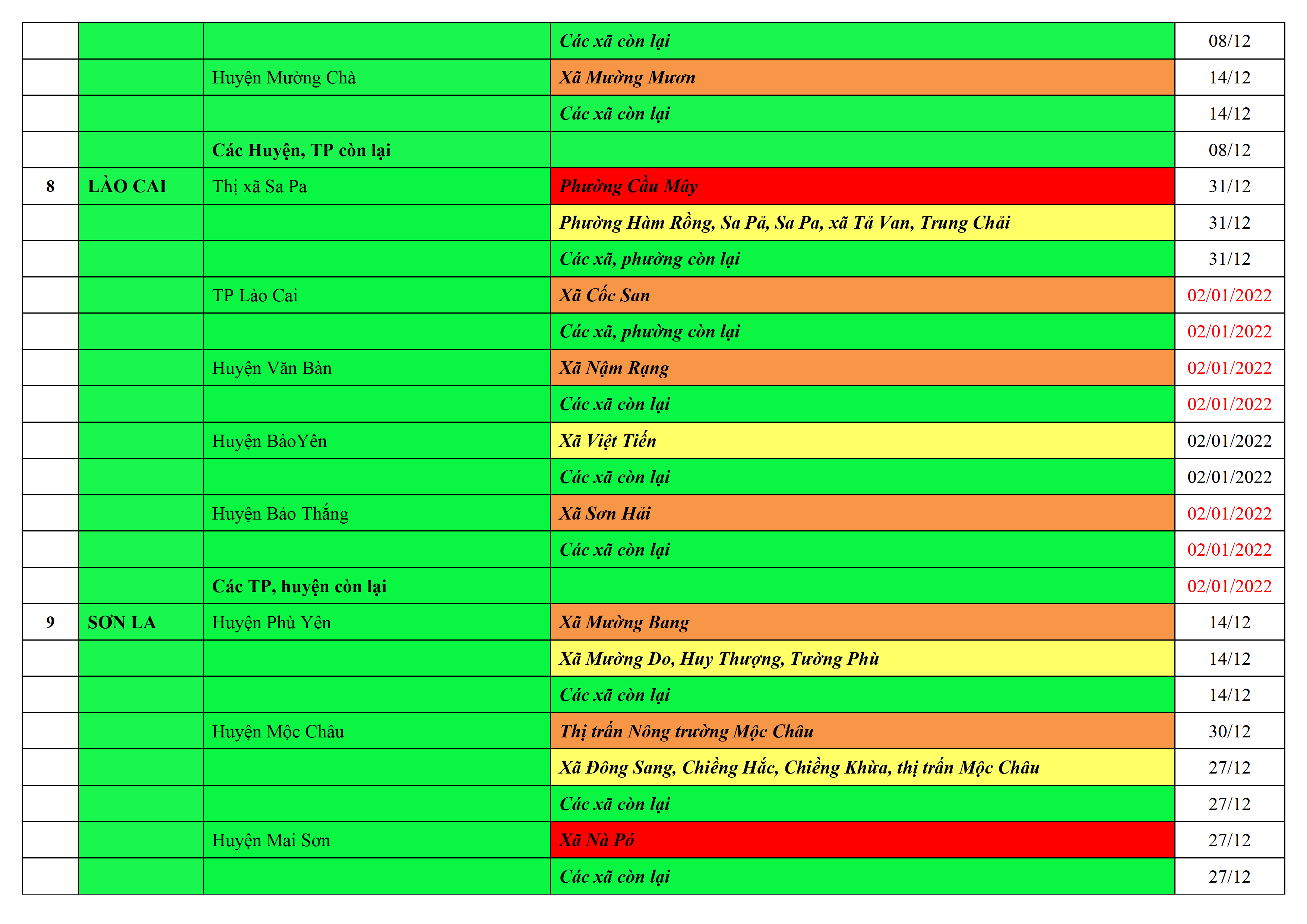 Áp dụng biện pháp tương ứng màu sắc ô cột theo thôn xóm; xã phường; quận huyện; tỉnh thành phố. Cách ly y tế dựa vào việc tiếp xúc, đi đến địa điểm và nơi cư trú có ca bệnh, theo Thông báo của Bộ Y tế, các tỉnh thành phố.