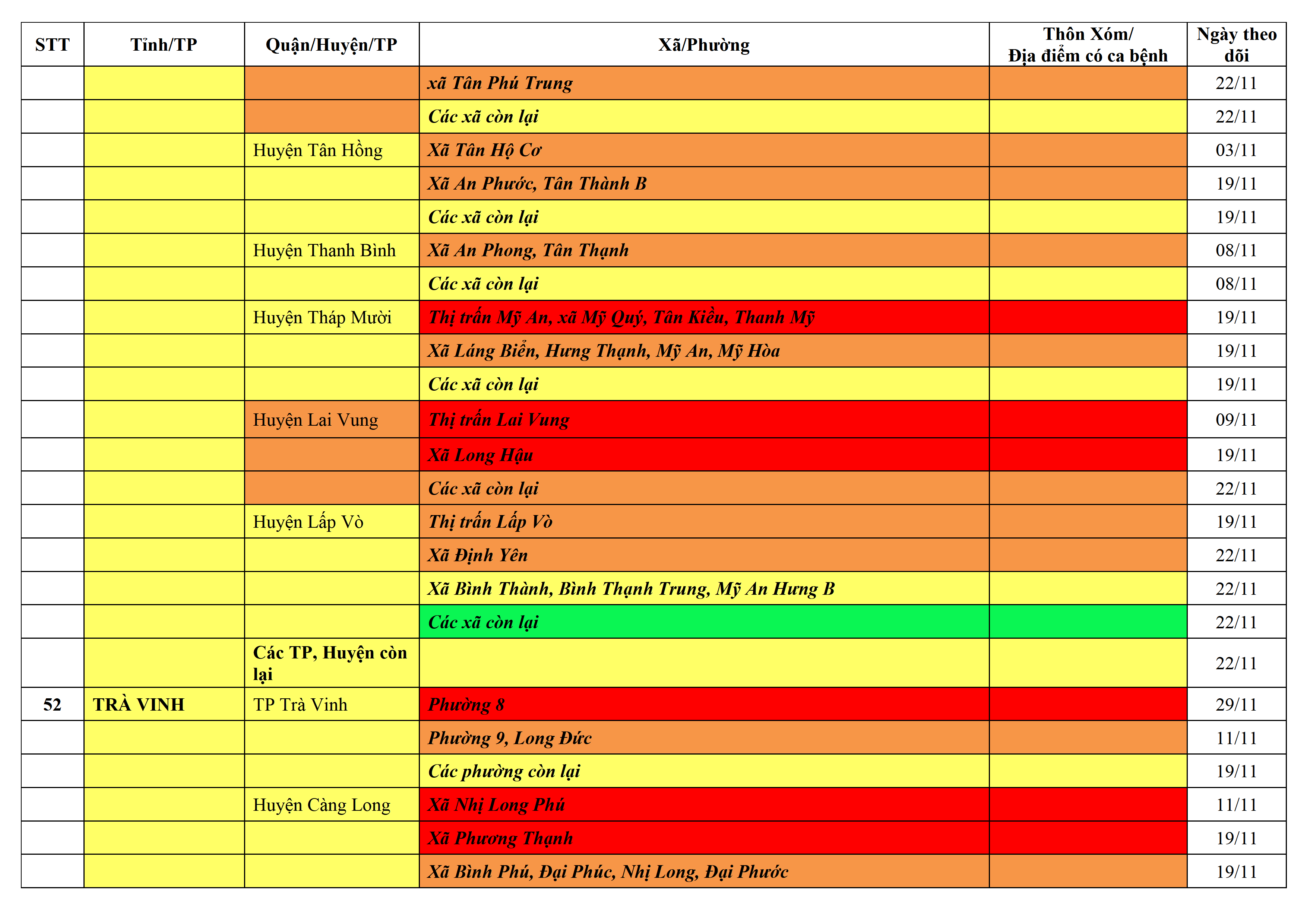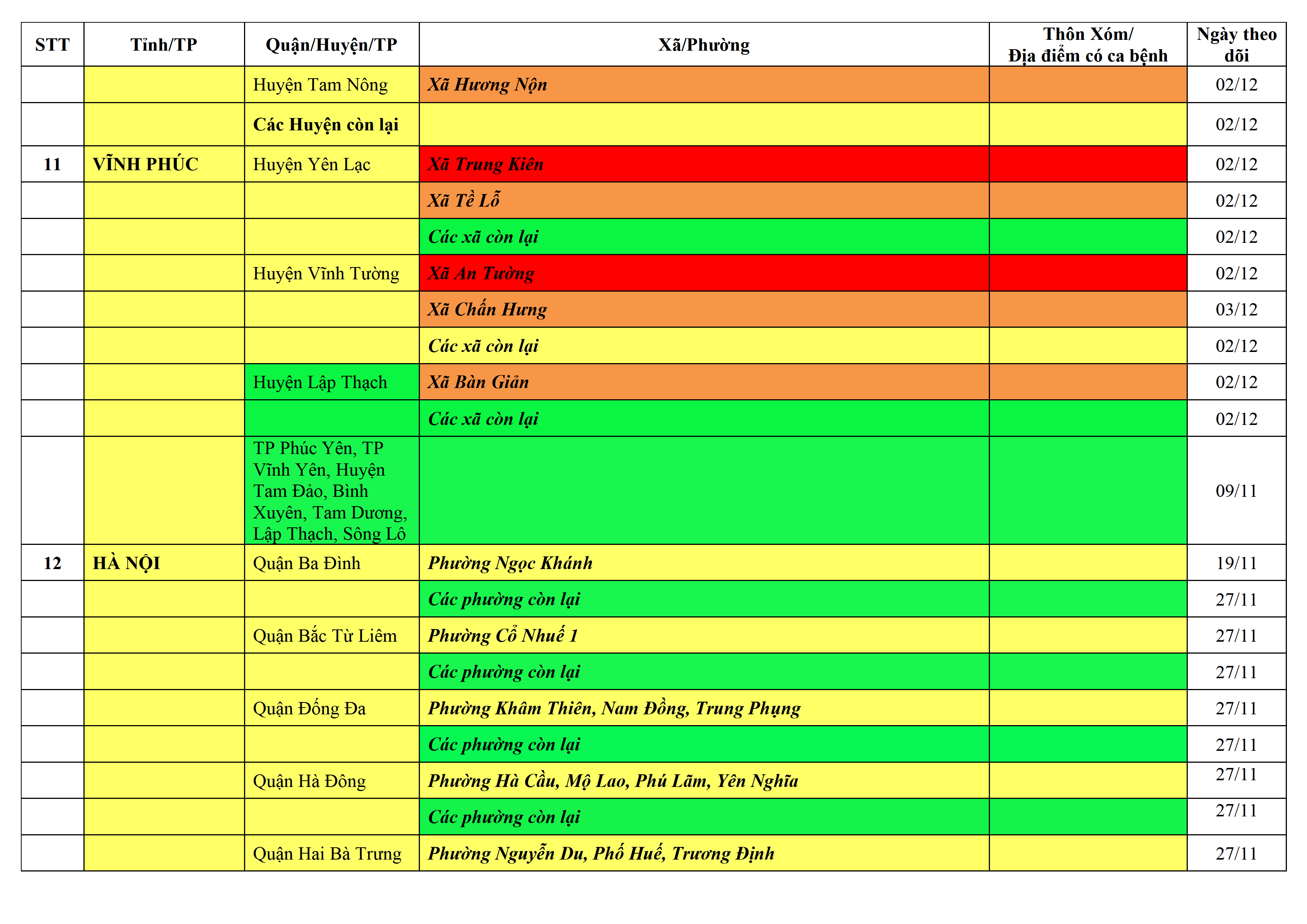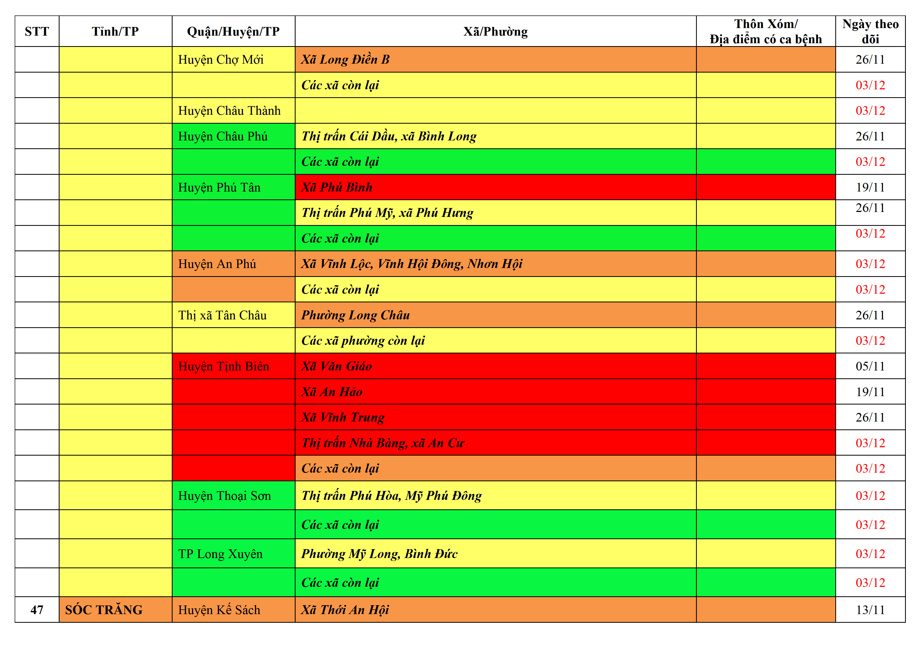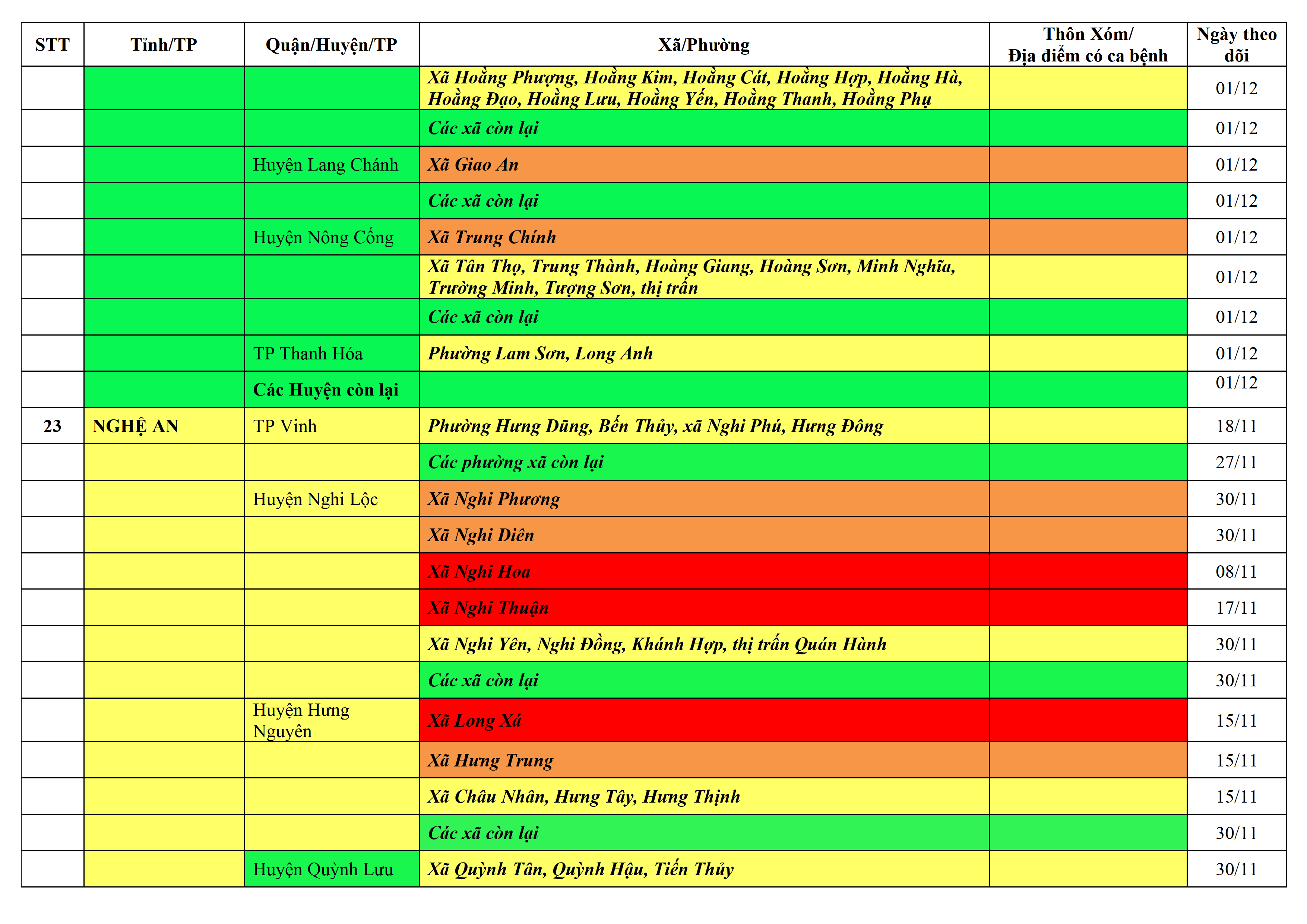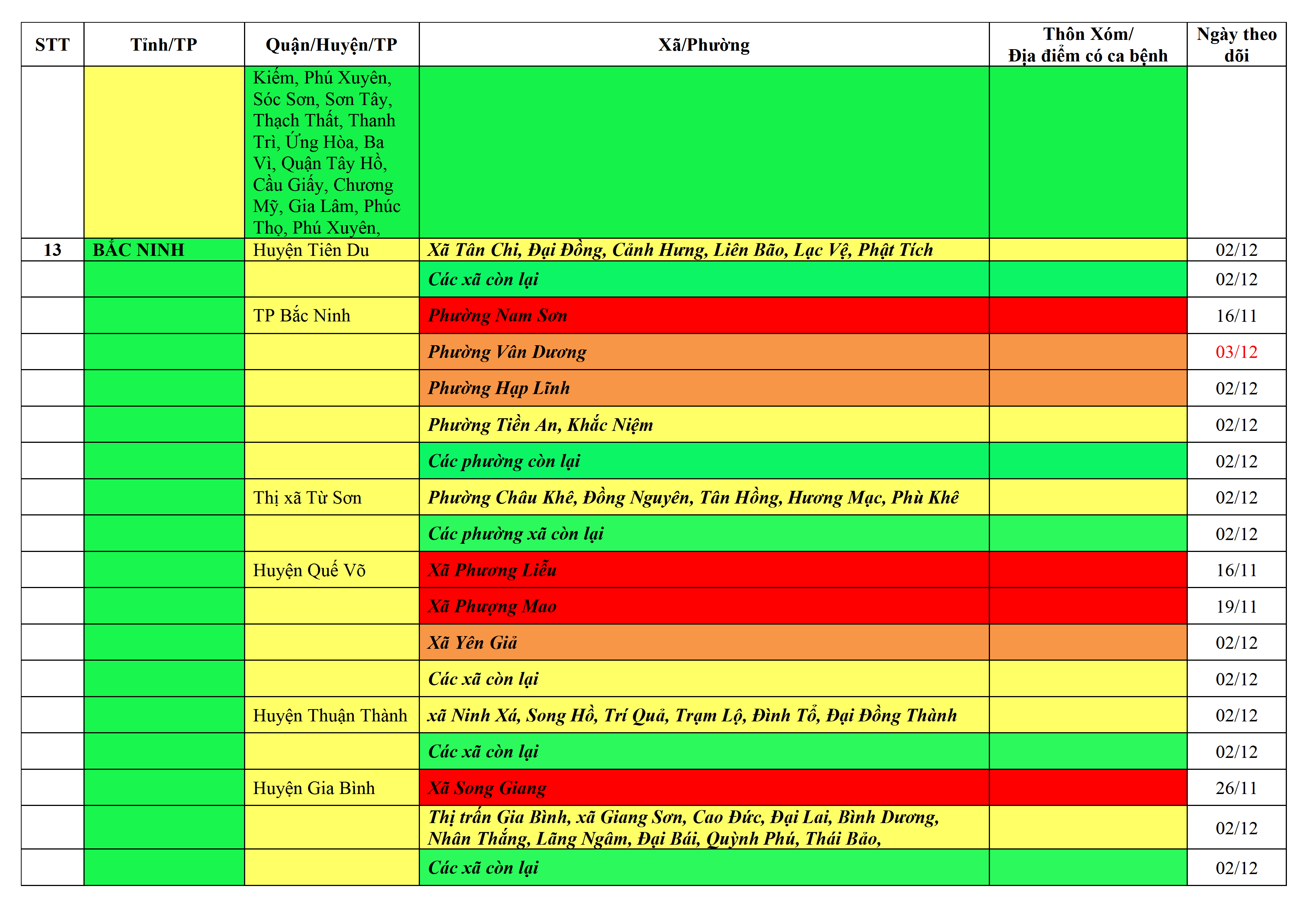 Lưu ý: Các tỉnh, thành phố không có tên trong bảng màu, đi lại bình thường, tuân thủ các biện pháp phòng chống dịch theo chỉ đạo của Bộ Y tế; khai báo y tế, thực hiện nghiêm 5K.