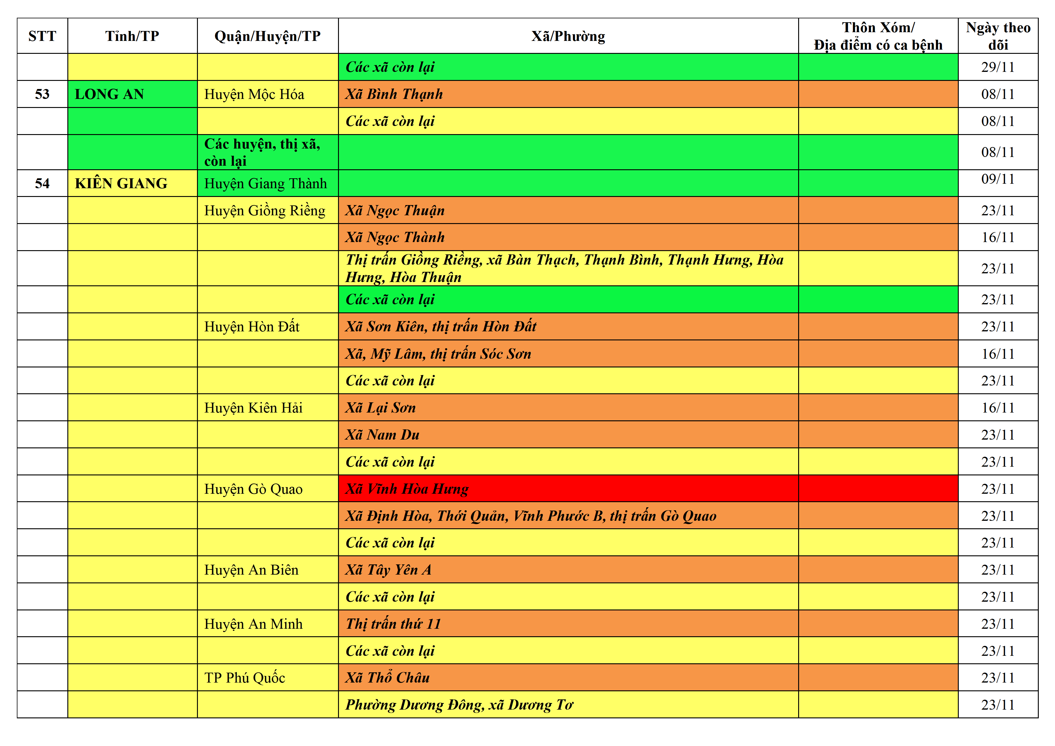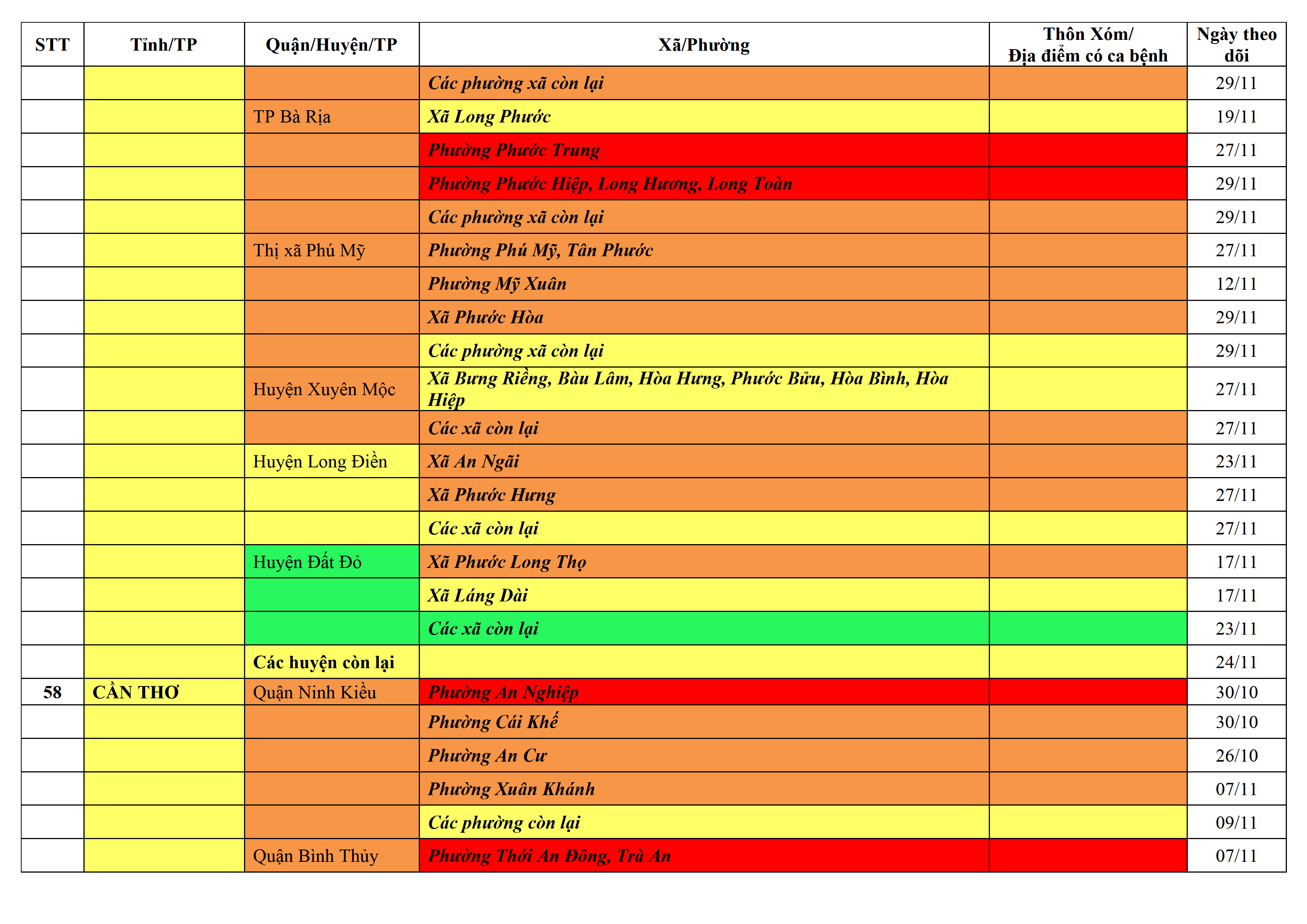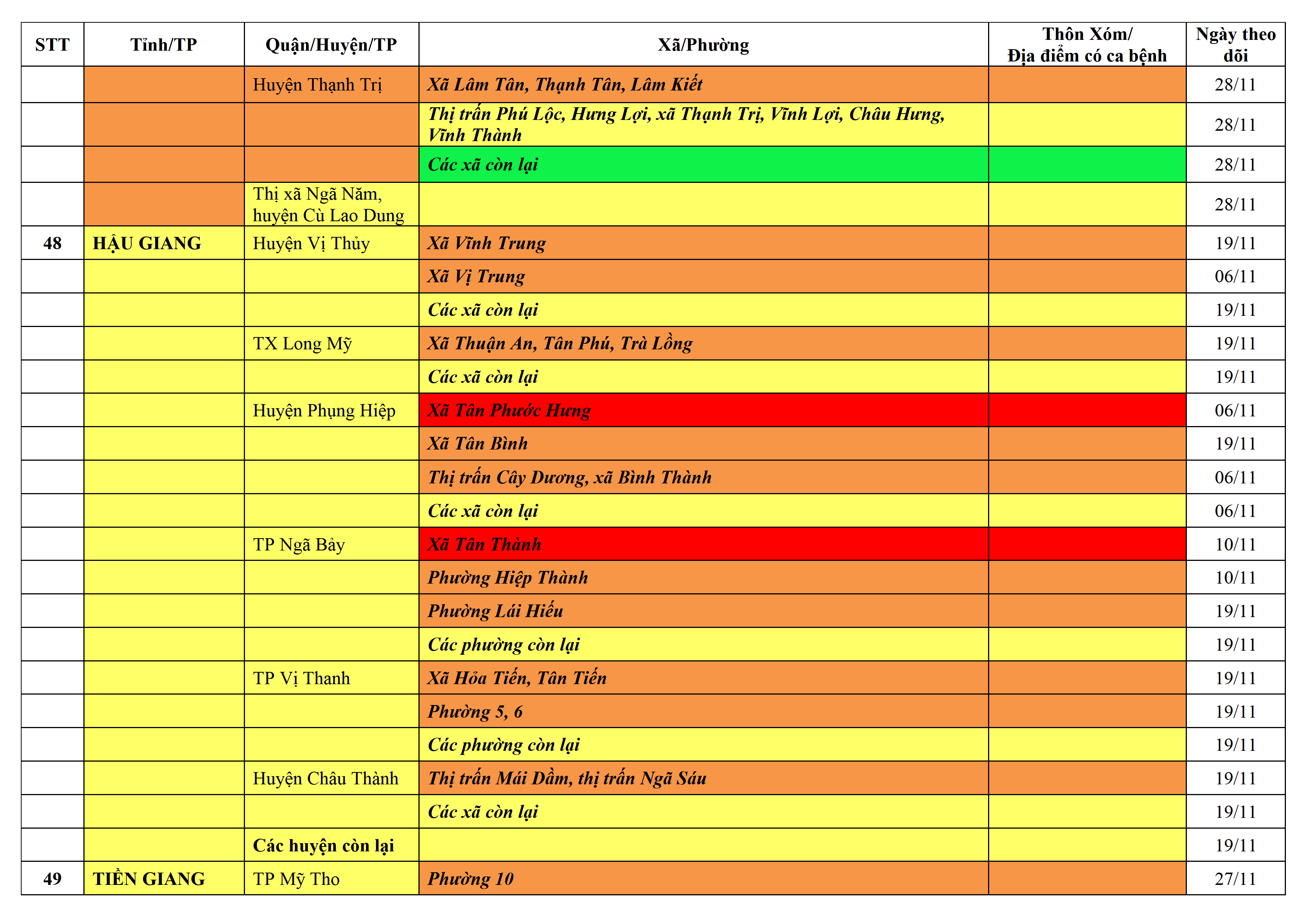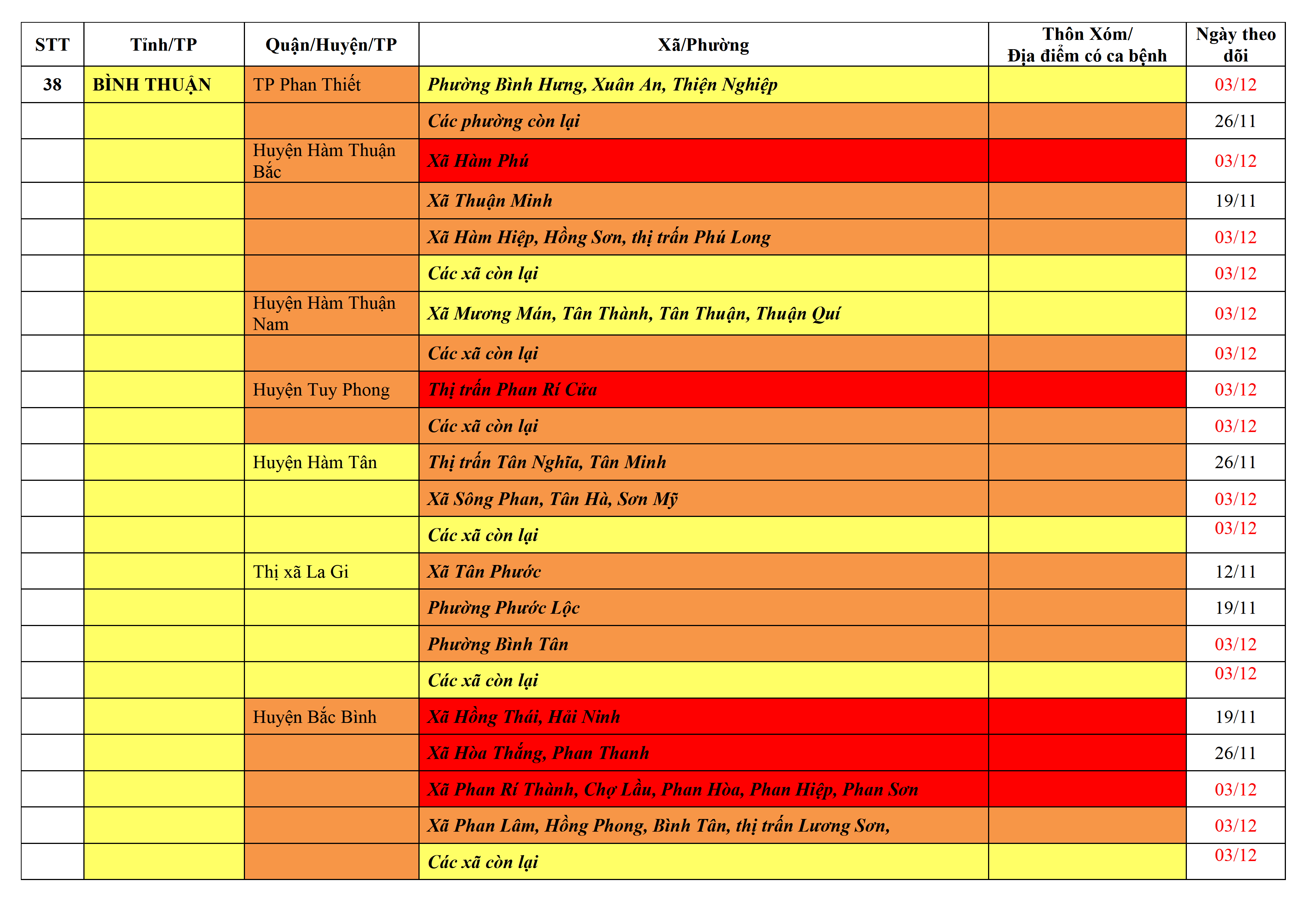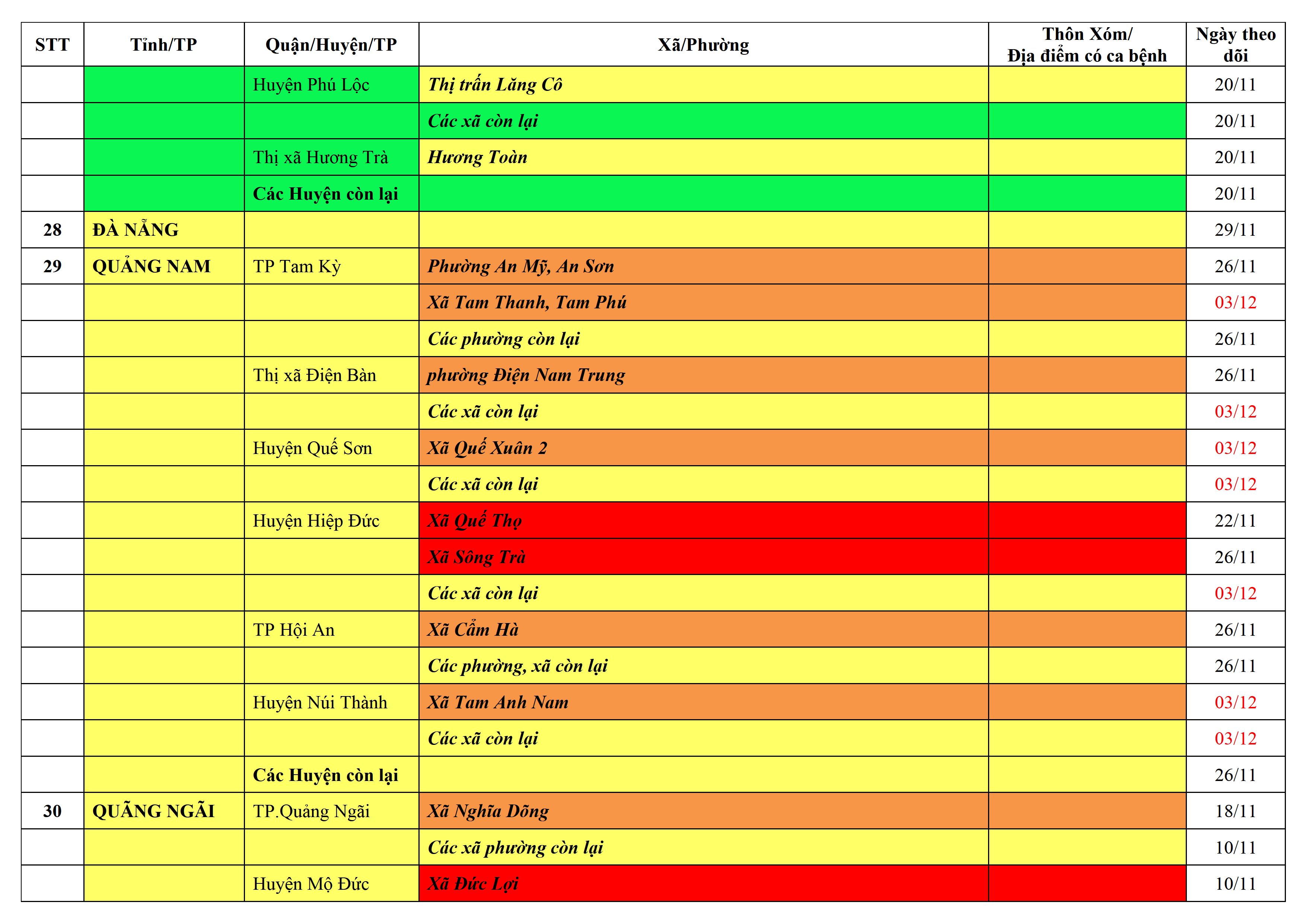 Lưu ý: Các tỉnh, thành phố không có tên trong bảng màu, đi lại bình thường, tuân thủ các biện pháp phòng chống dịch theo chỉ đạo của Bộ Y tế; khai báo y tế, thực hiện nghiêm 5K.