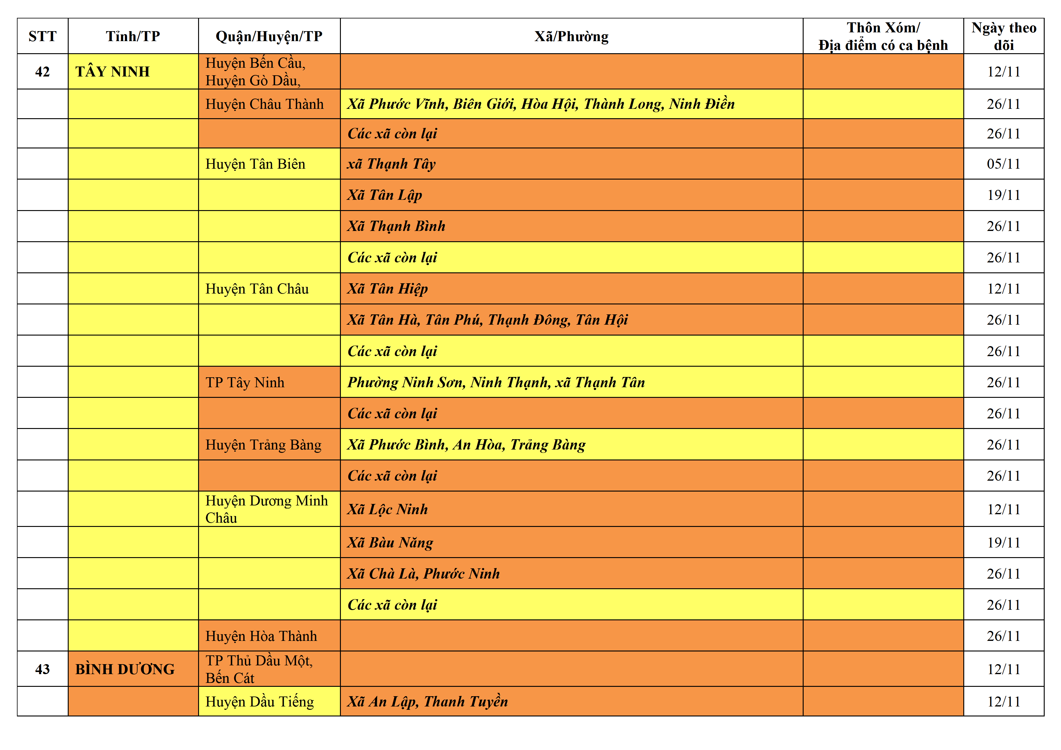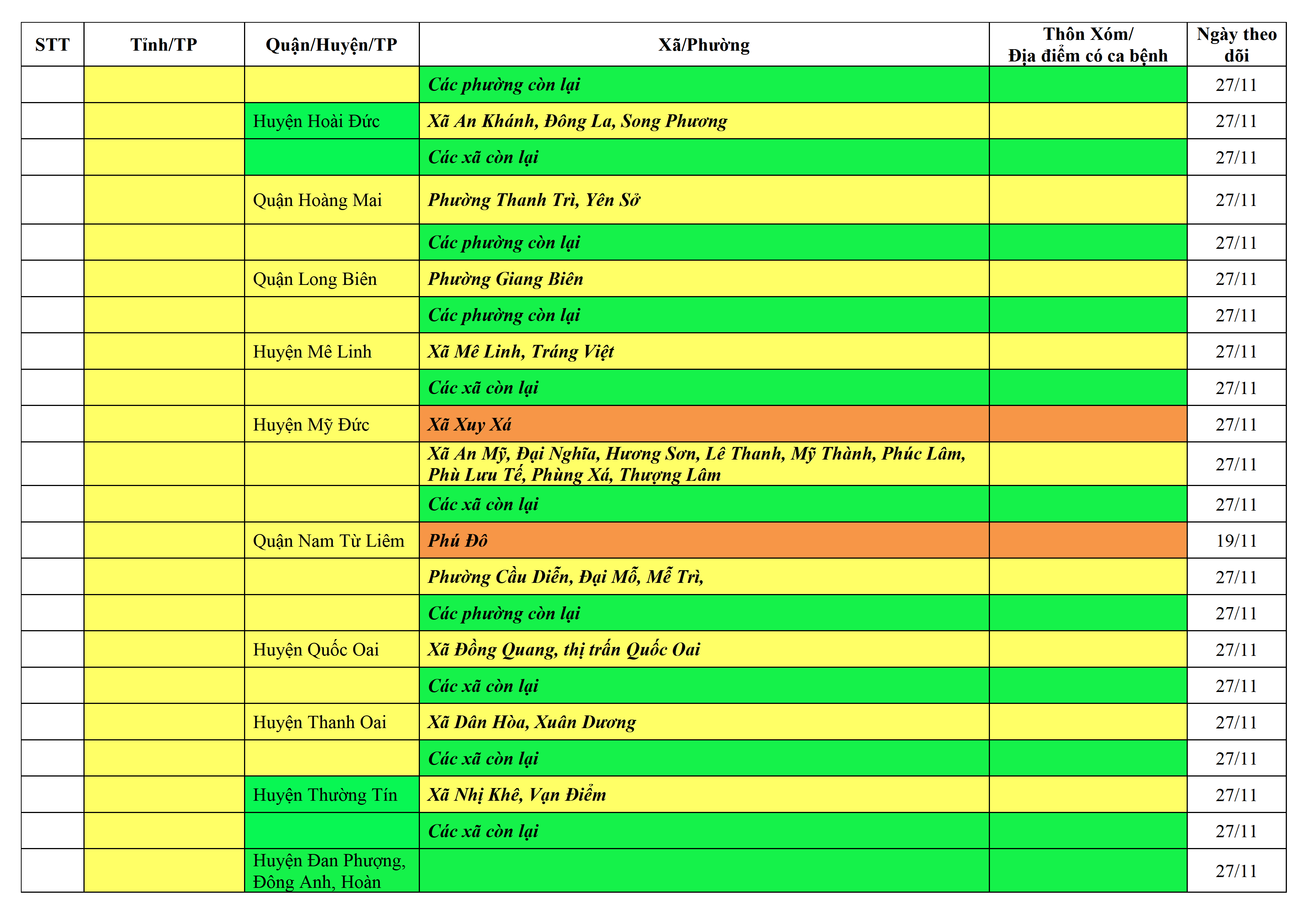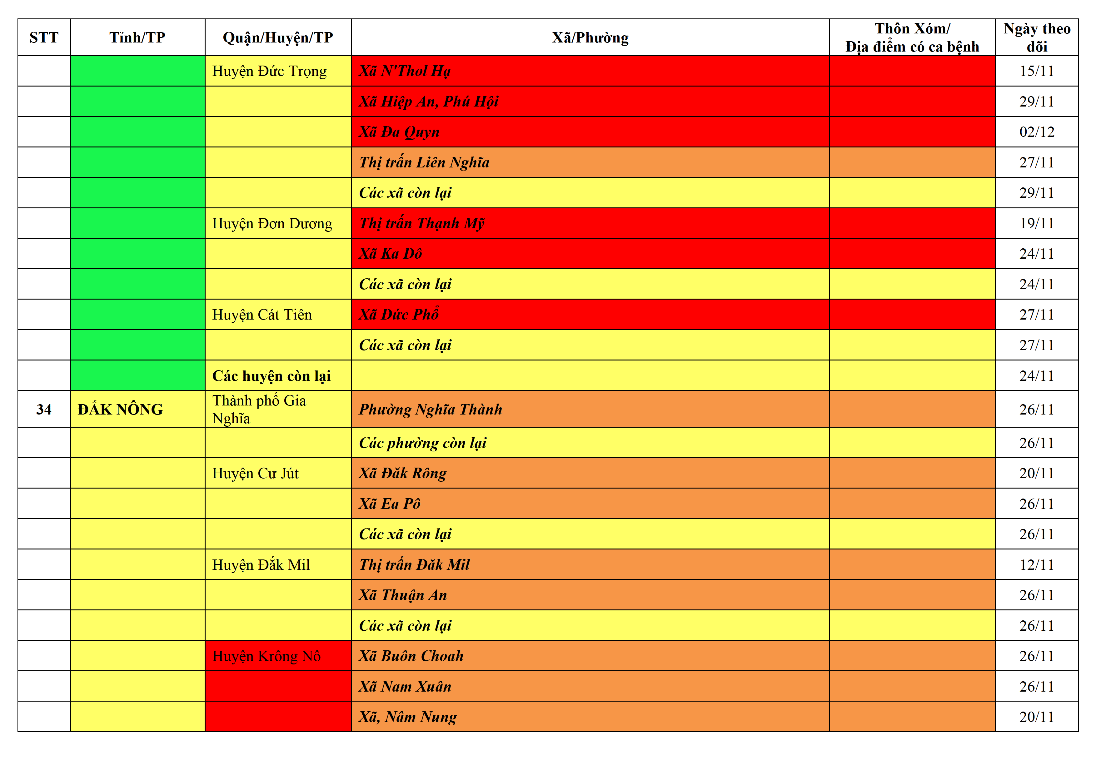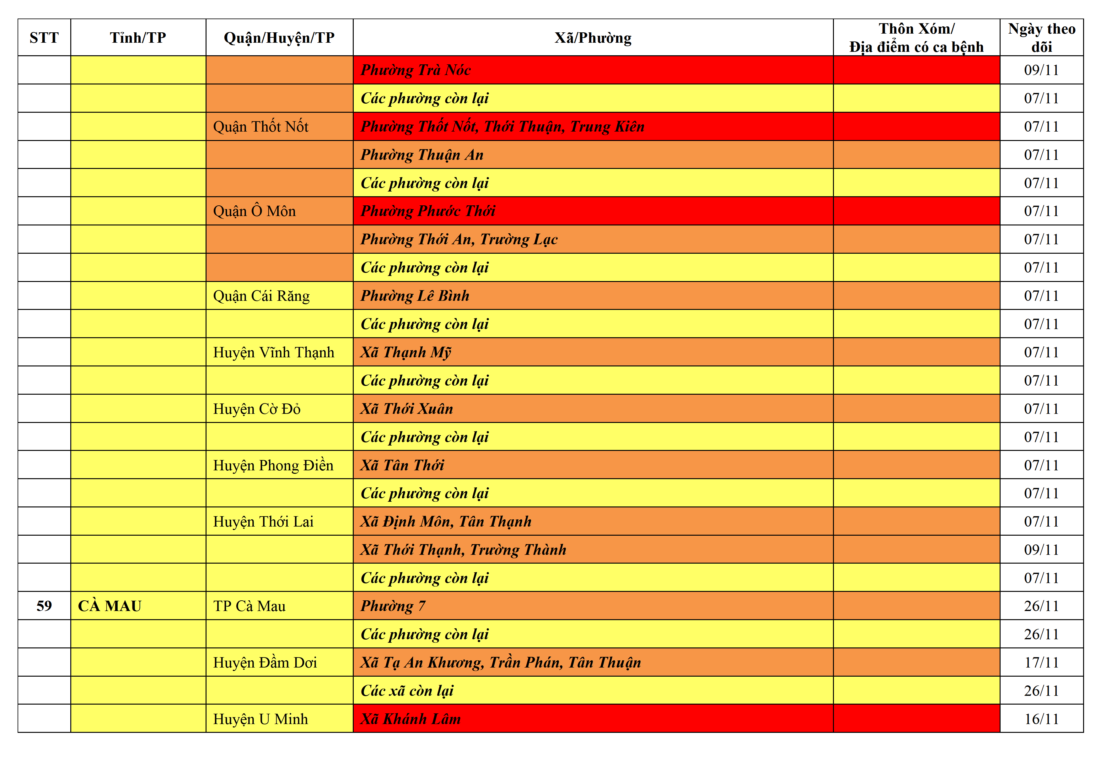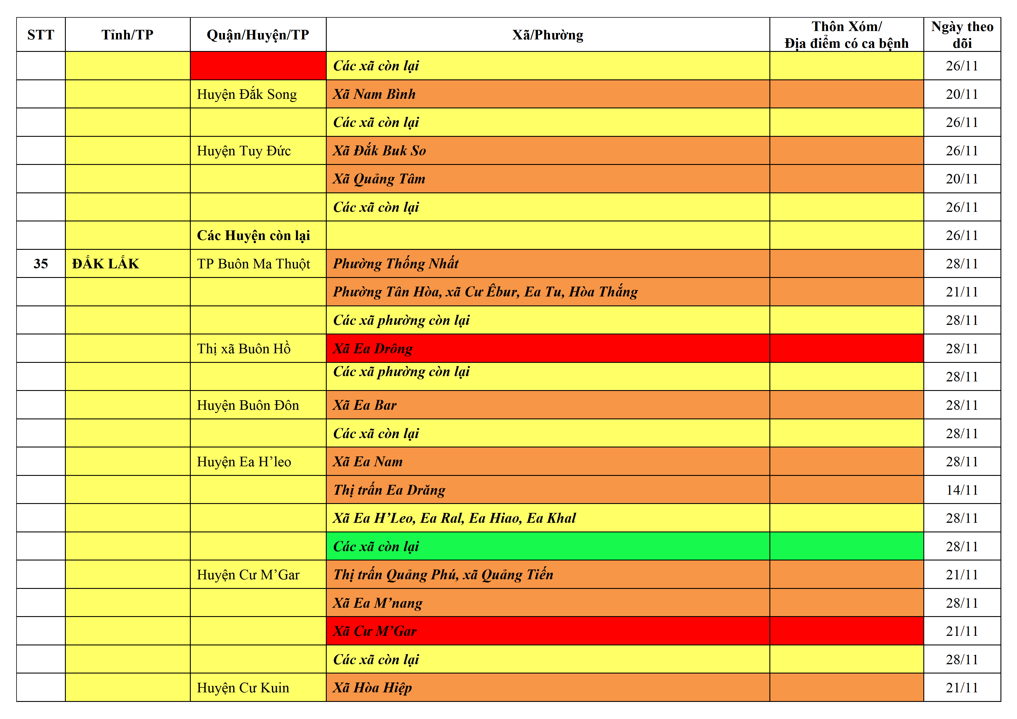 Lưu ý: Các tỉnh, thành phố không có tên trong bảng màu, đi lại bình thường, tuân thủ các biện pháp phòng chống dịch theo chỉ đạo của Bộ Y tế; khai báo y tế, thực hiện nghiêm 5K.