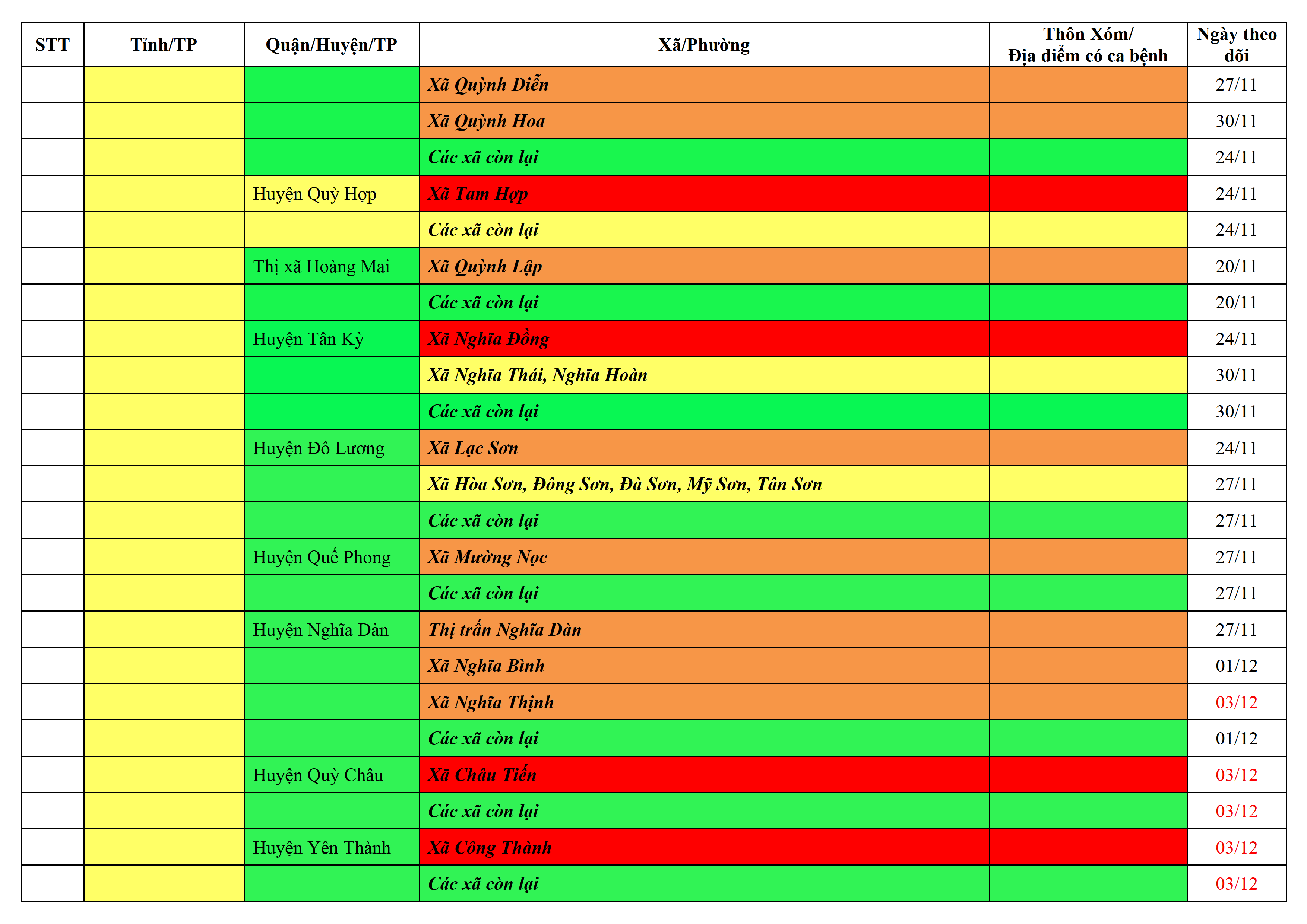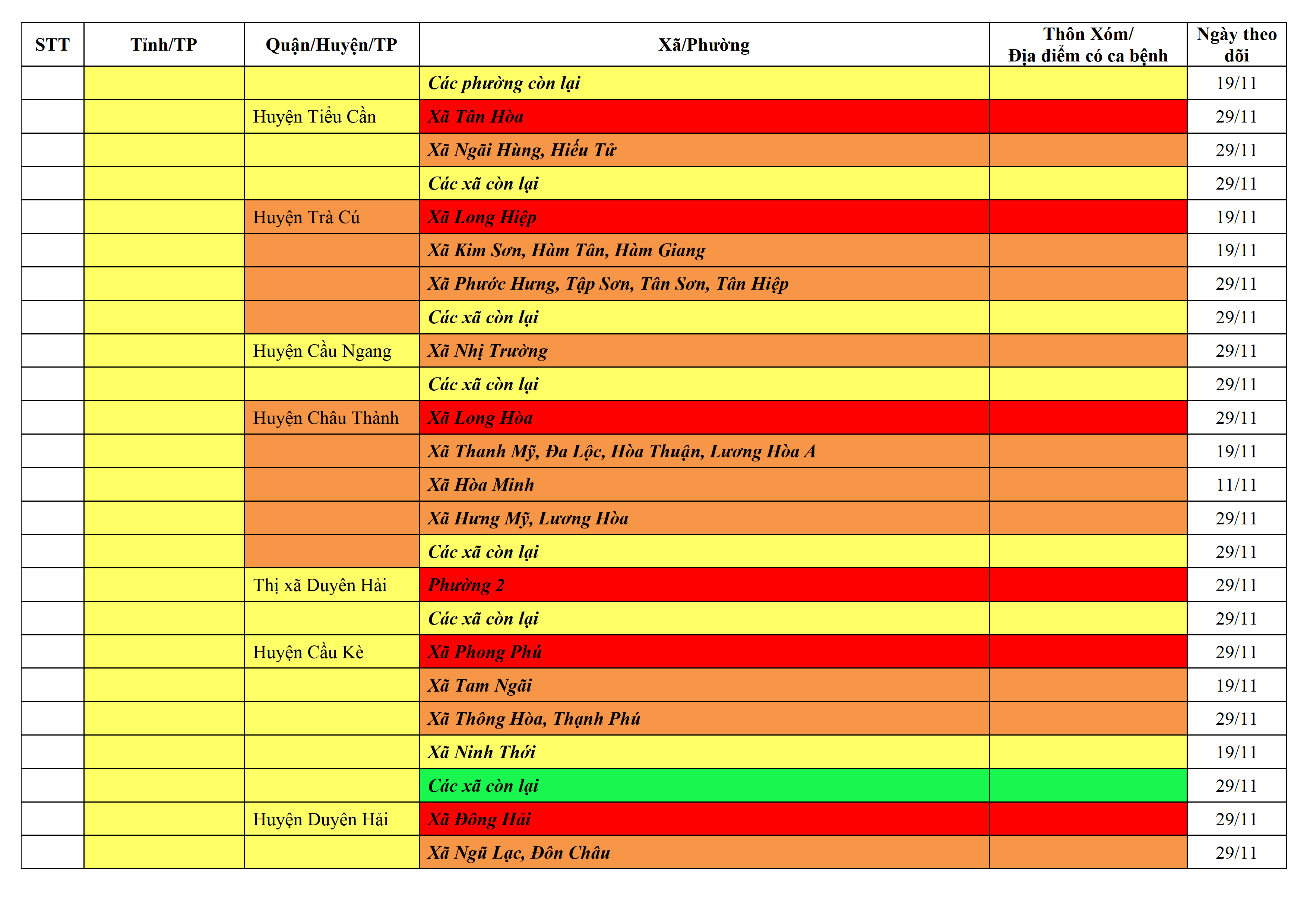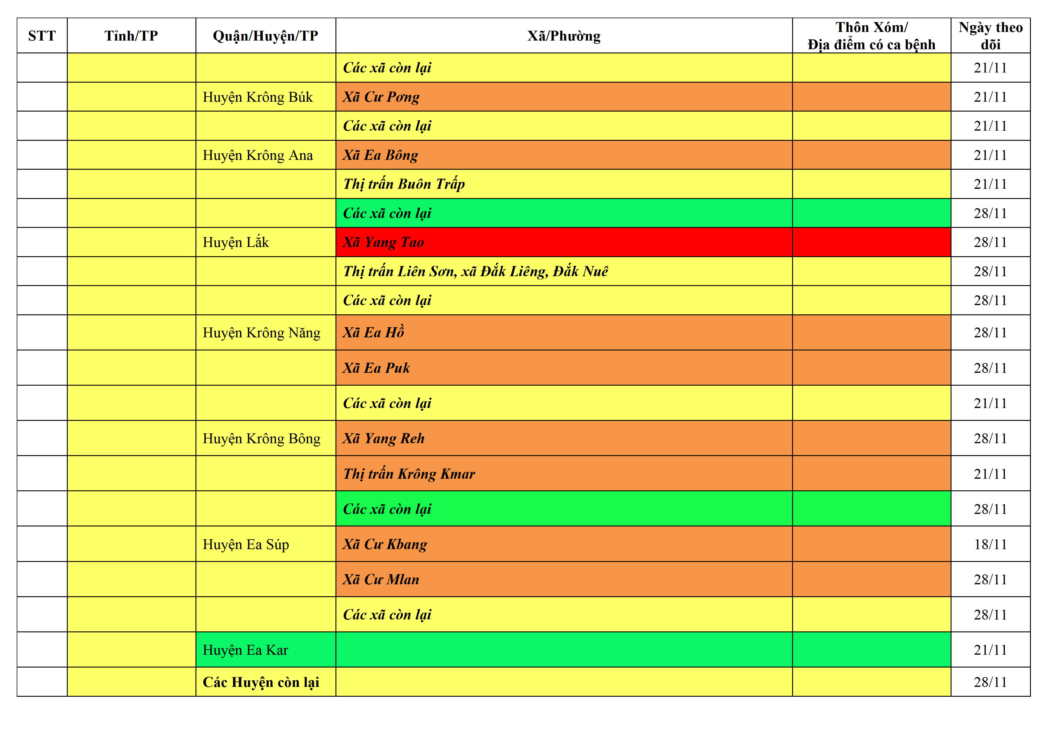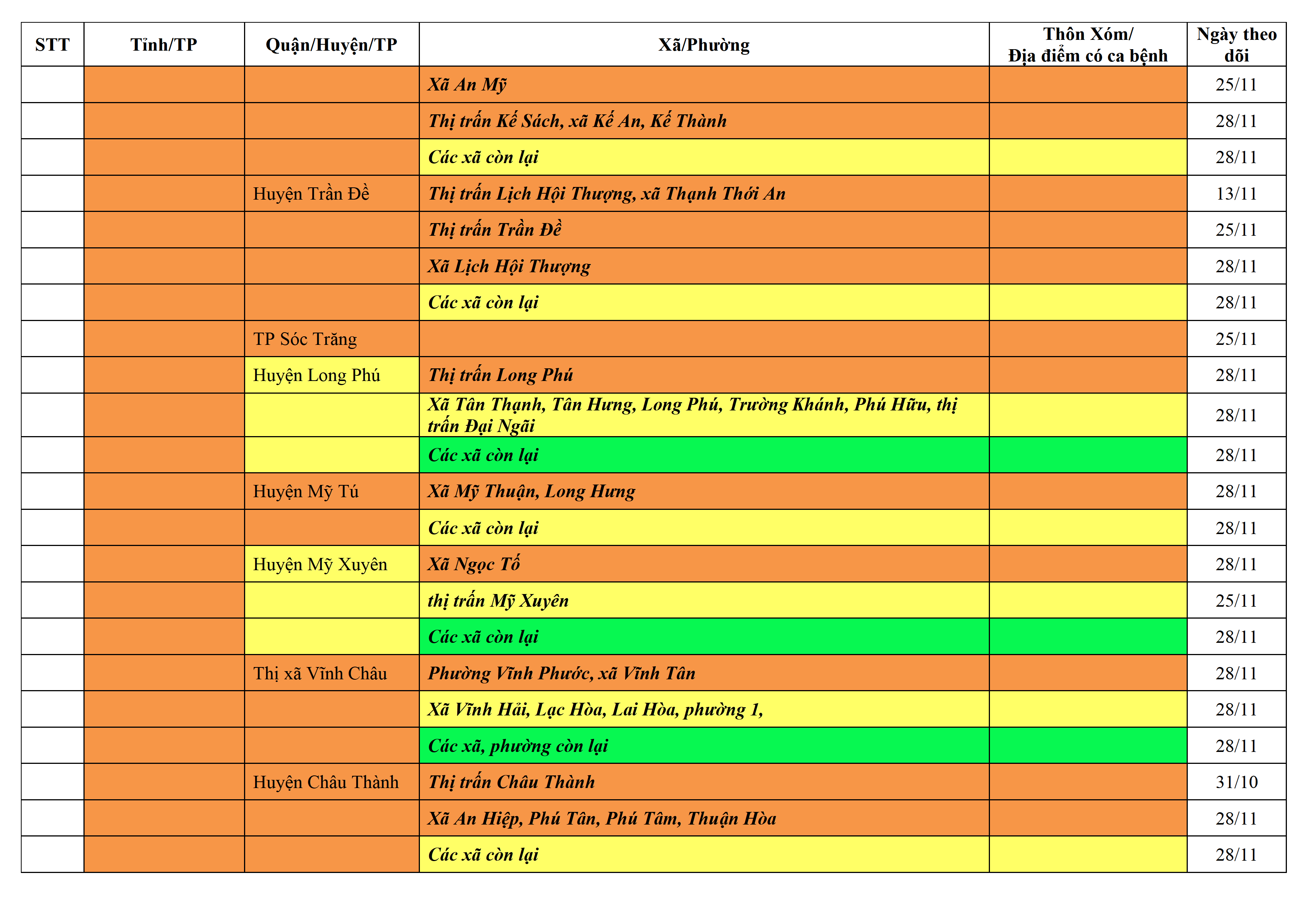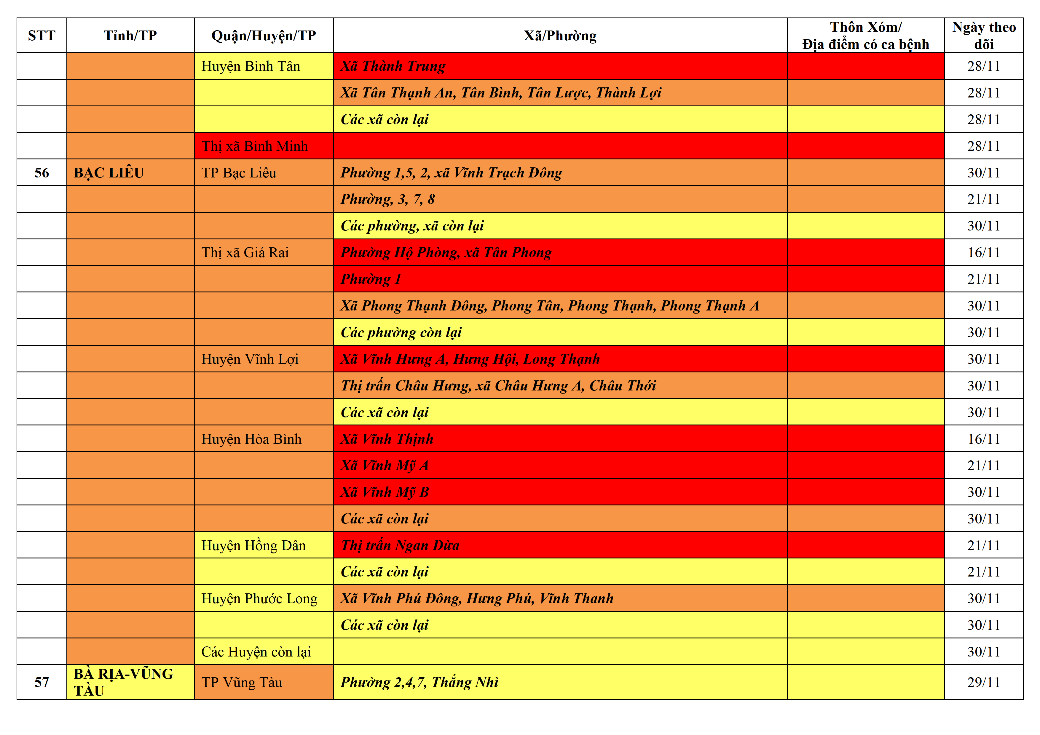 Lưu ý: Các tỉnh, thành phố không có tên trong bảng màu, đi lại bình thường, tuân thủ các biện pháp phòng chống dịch theo chỉ đạo của Bộ Y tế; khai báo y tế, thực hiện nghiêm 5K.