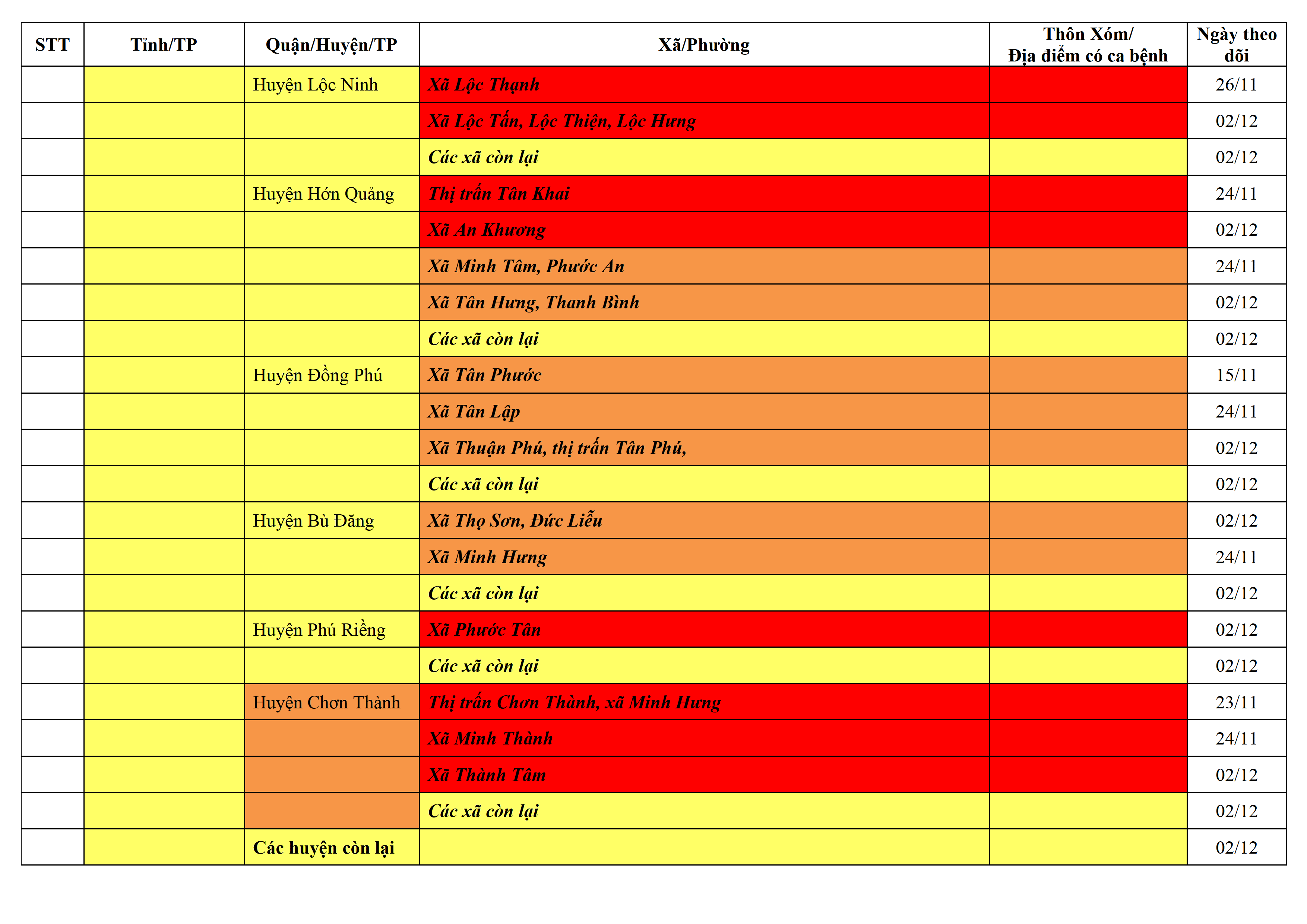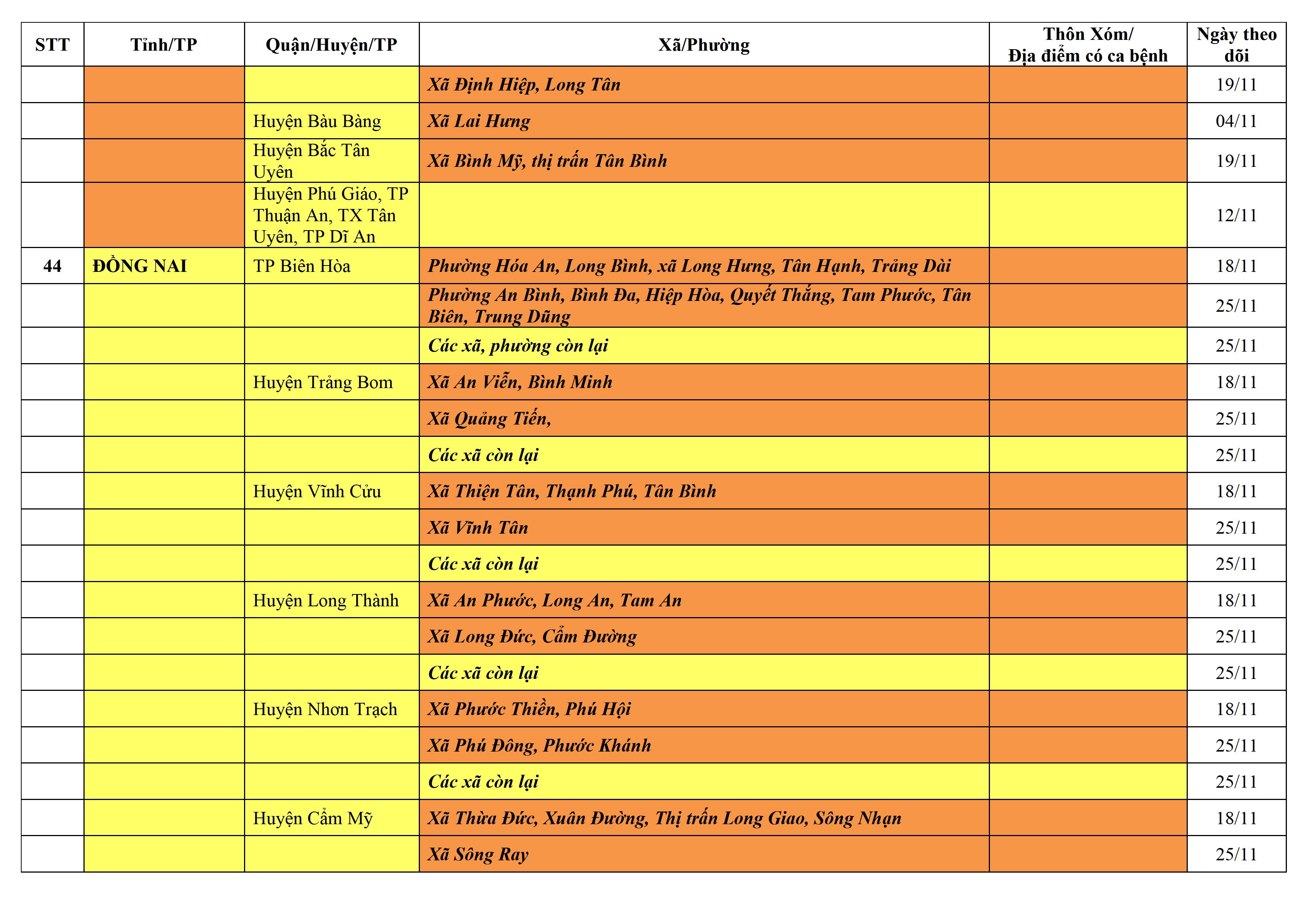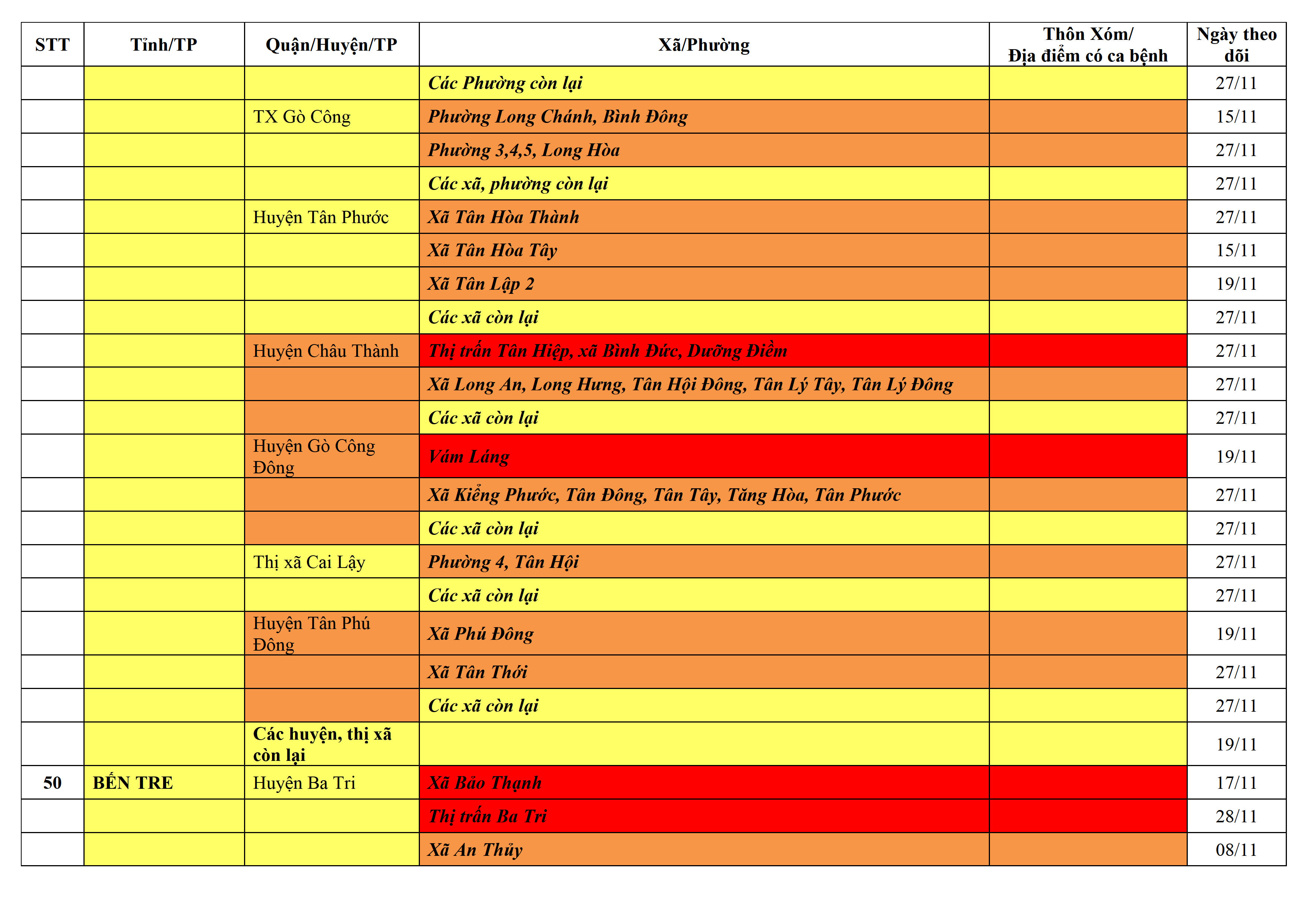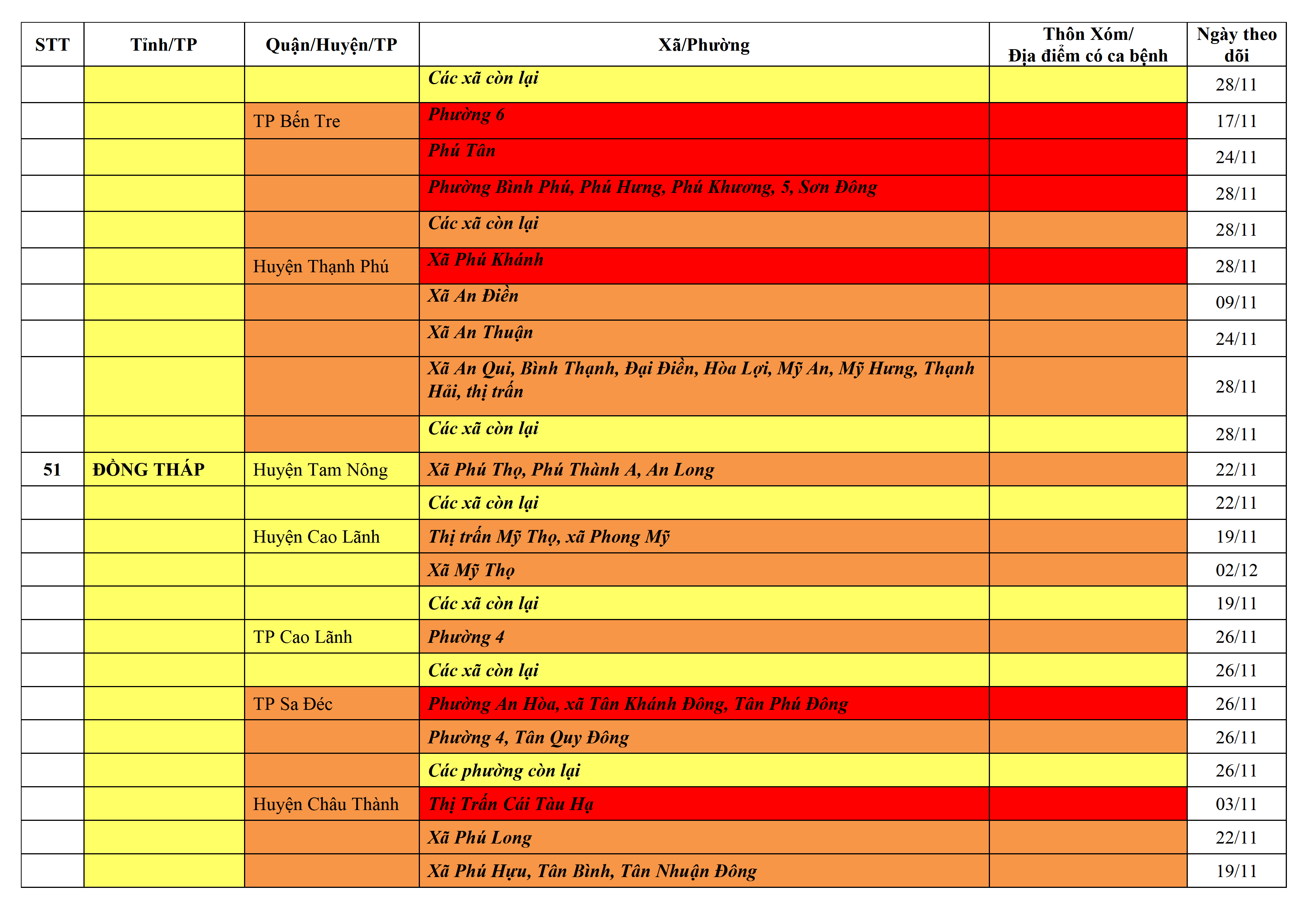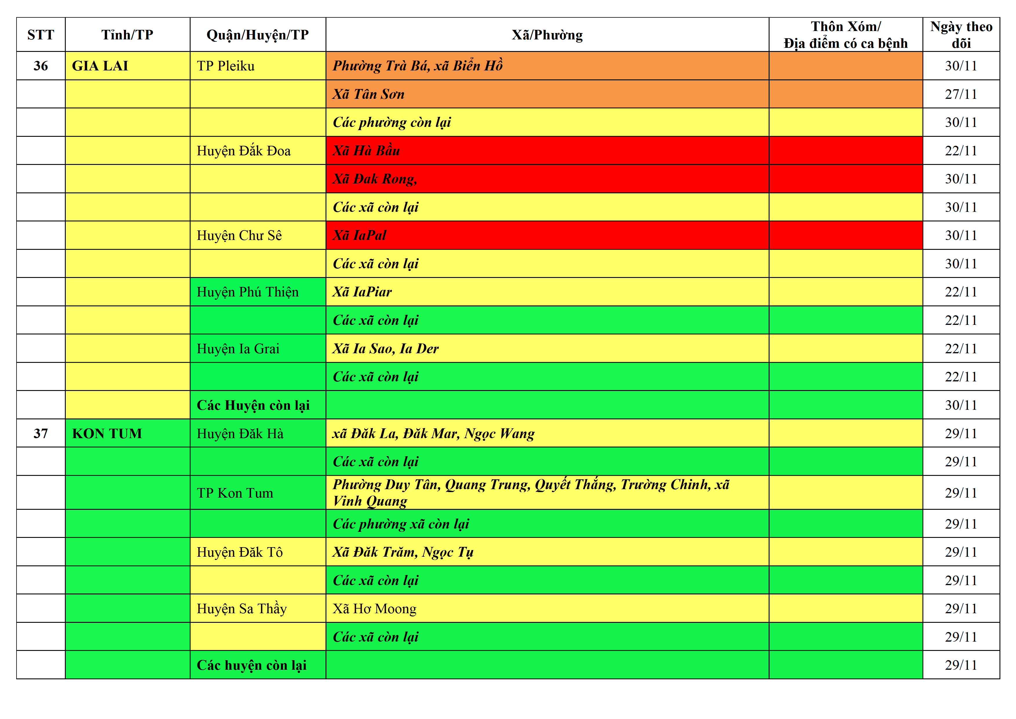 Lưu ý: Các tỉnh, thành phố không có tên trong bảng màu, đi lại bình thường, tuân thủ các biện pháp phòng chống dịch theo chỉ đạo của Bộ Y tế; khai báo y tế, thực hiện nghiêm 5K.