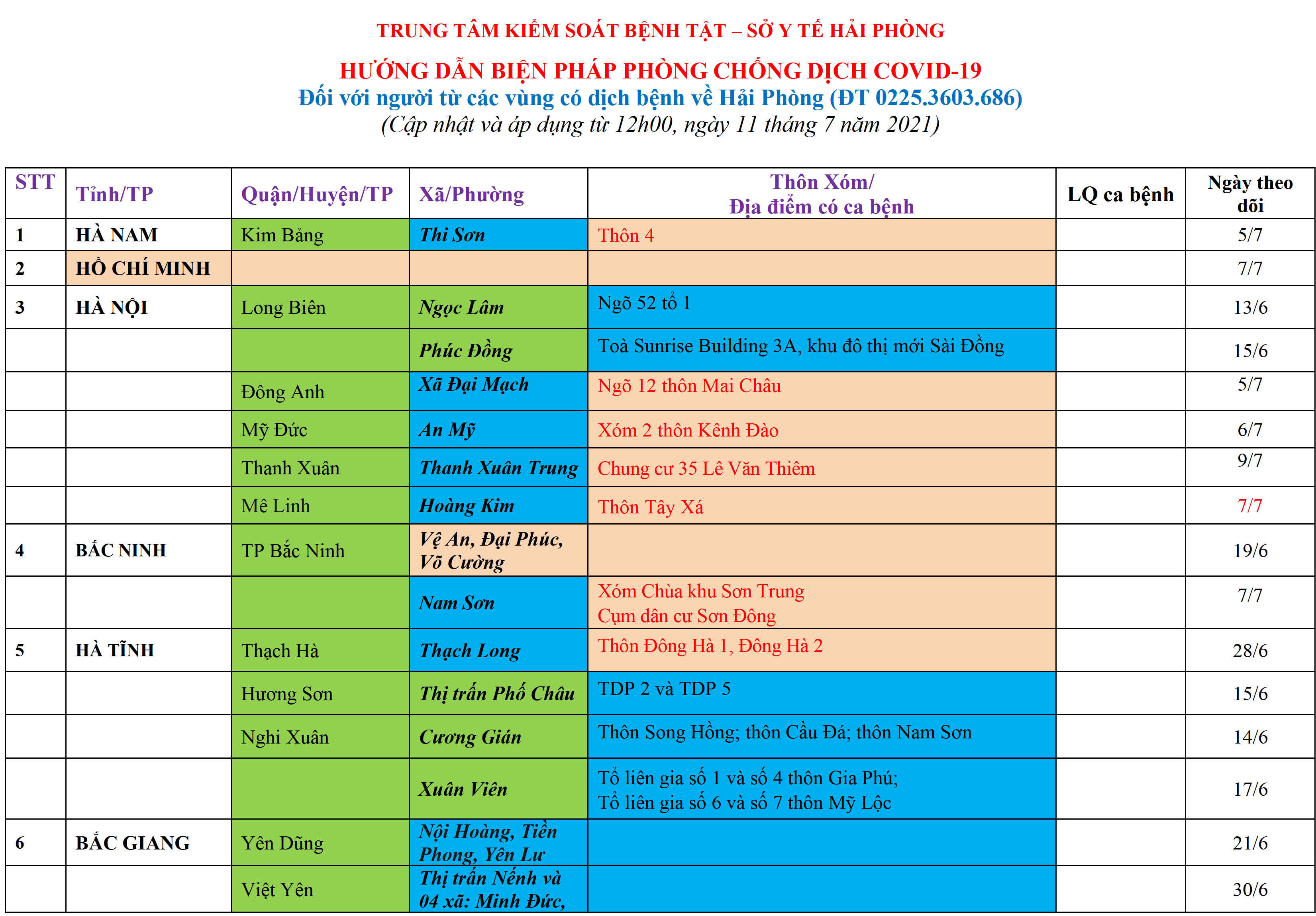 – Từ 12h00 ngày 07/7/2021 áp dụng cách ly tập trung 21 ngày đối với tất cả những người về Hải Phòng từ TP. Hồ Chí Minh;