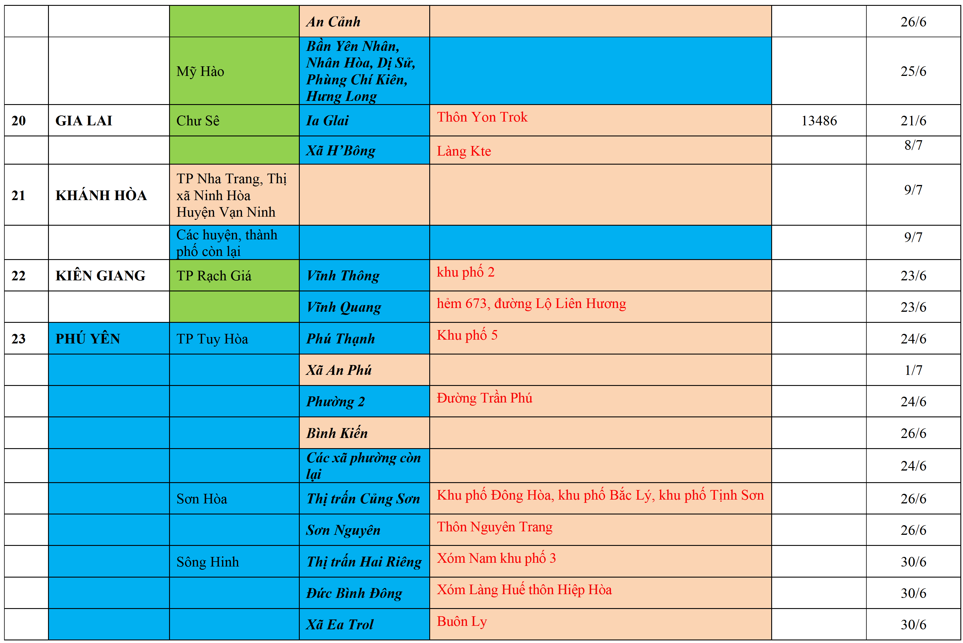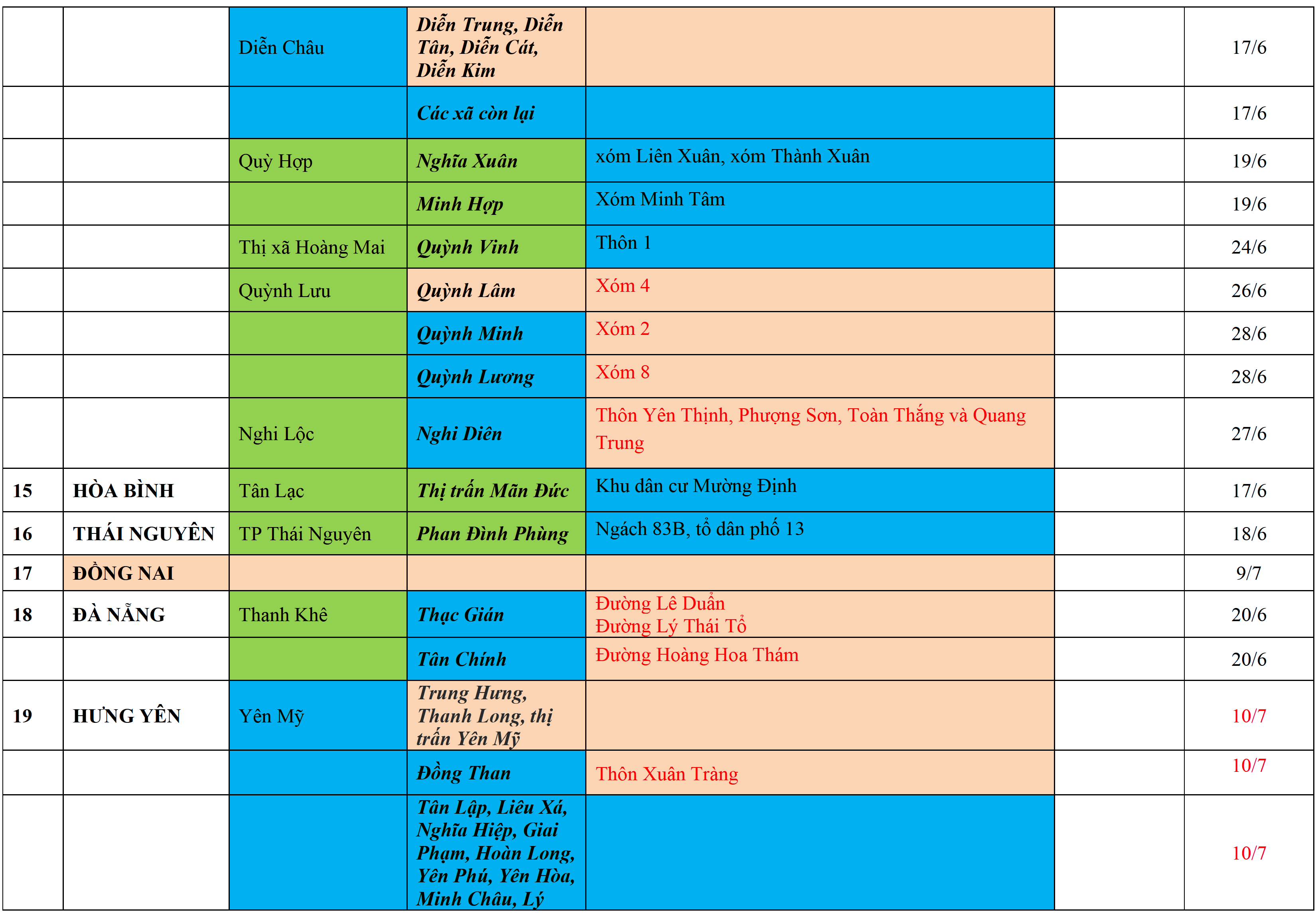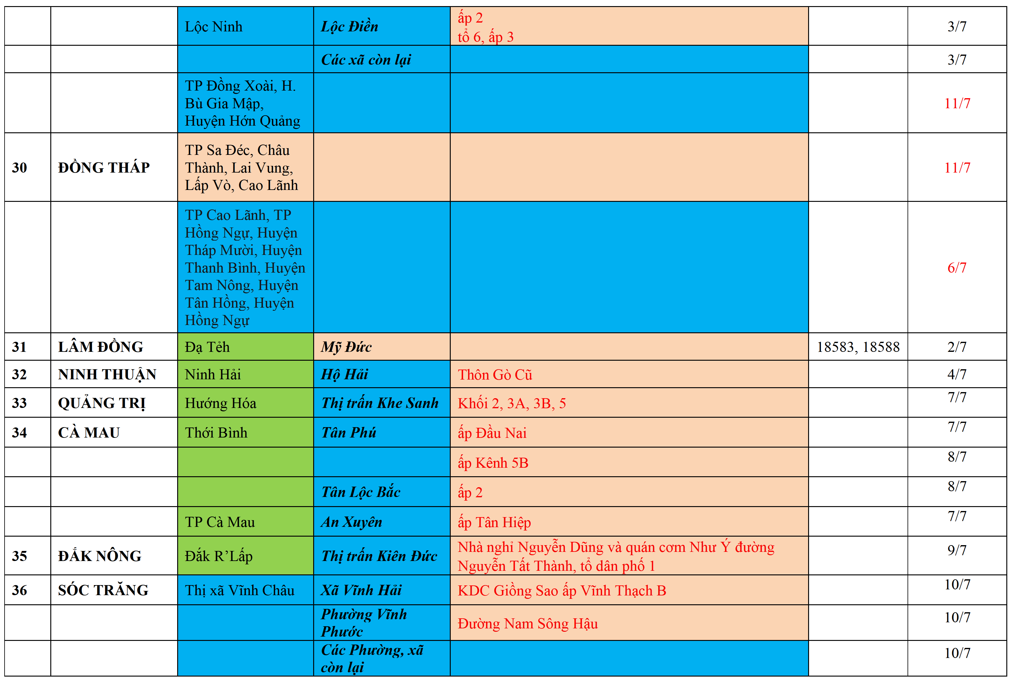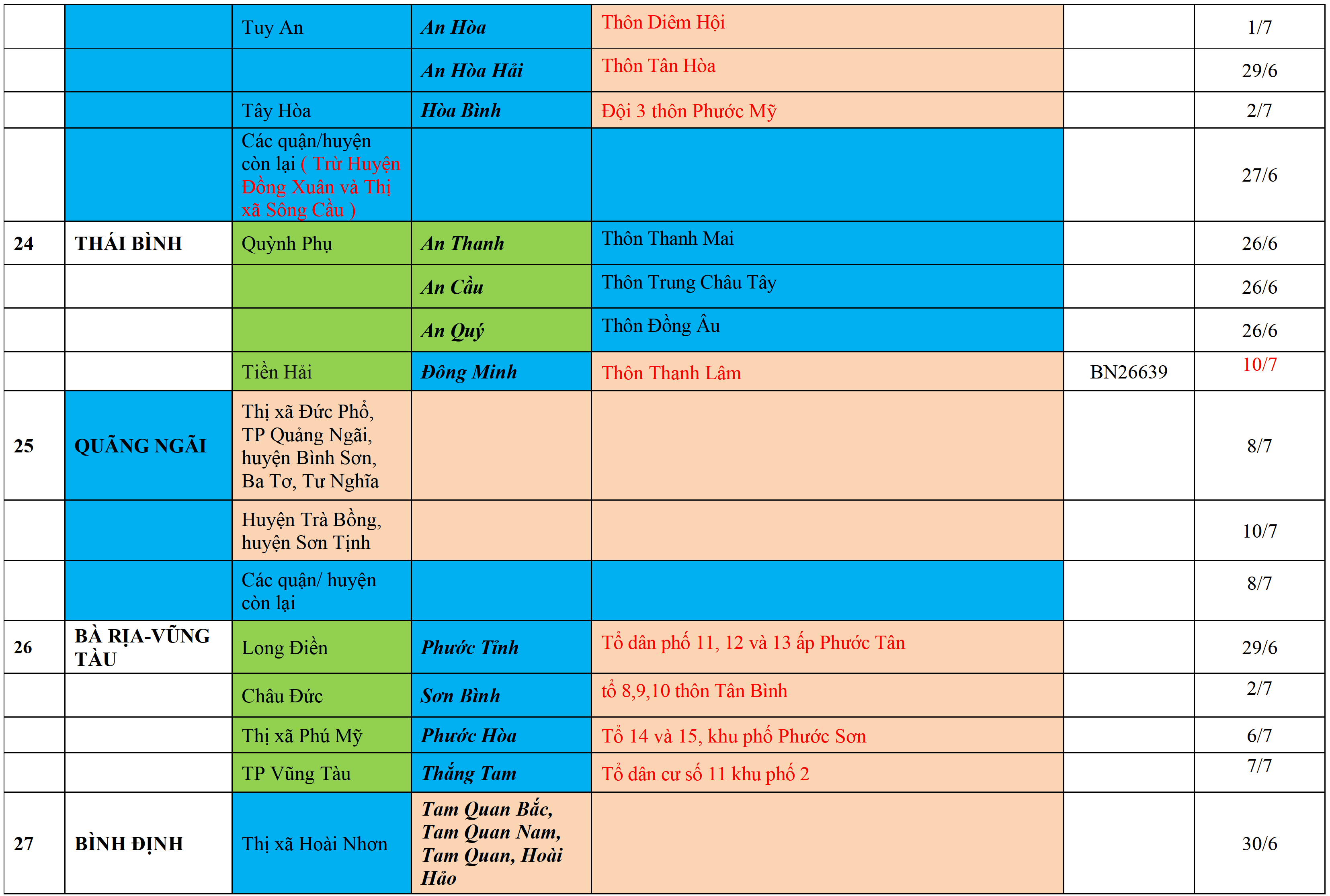 . Áp dụng biện pháp tương ứng màu sắc ô cột theo thôn xóm; xã phường; quận huyện; tỉnh thành phố. Cách ly y tế dựa vào việc tiếp xúc, đi đến địa điểm và nơi cư trú có ca bệnh, theo Thông báo của Bộ Y tế, các tỉnh thành phố.