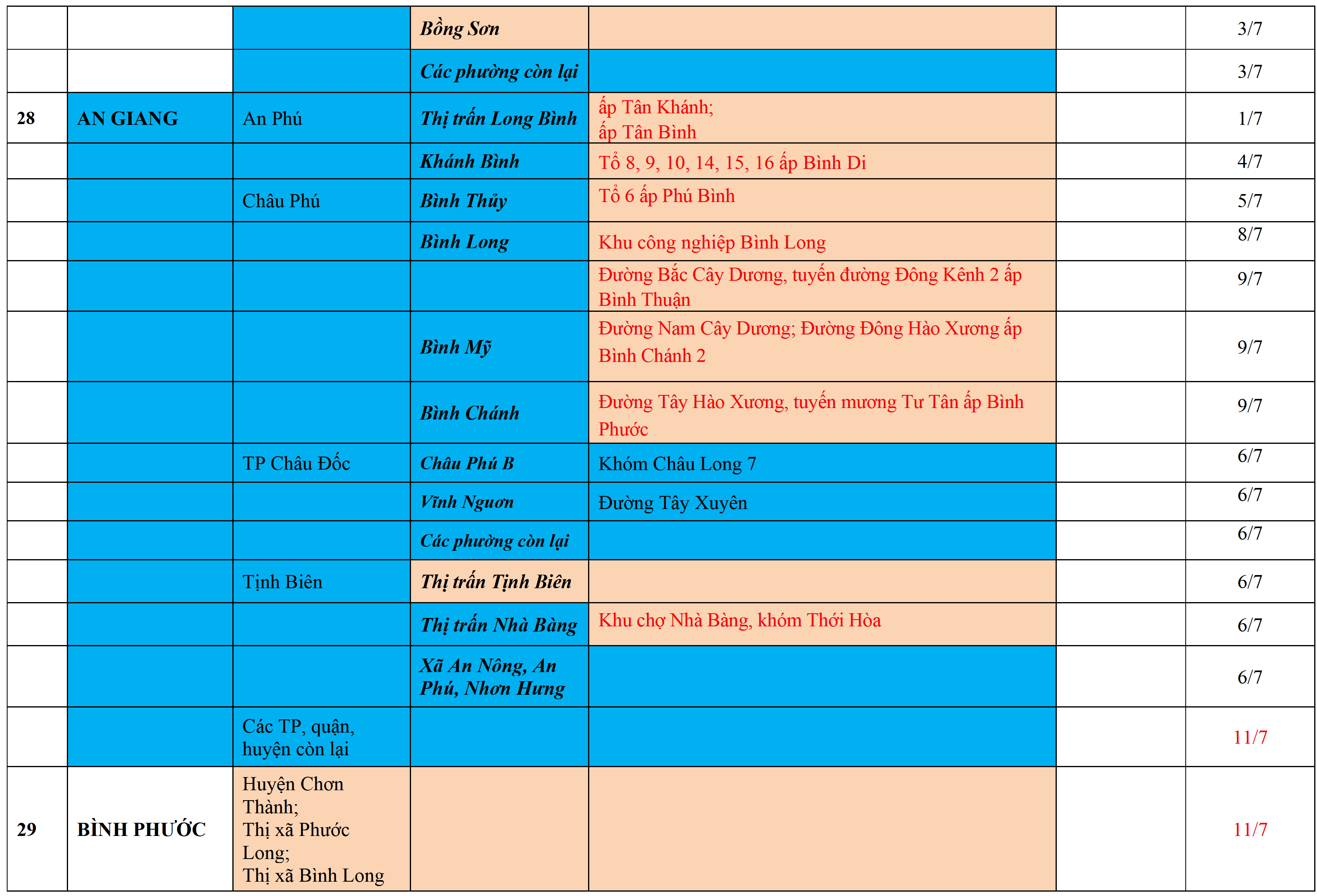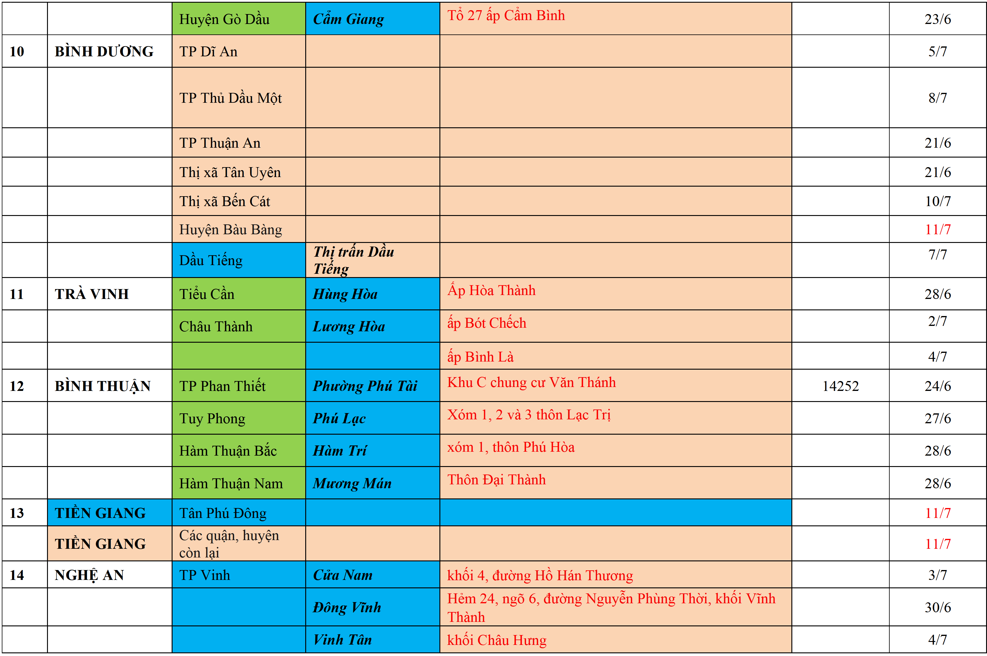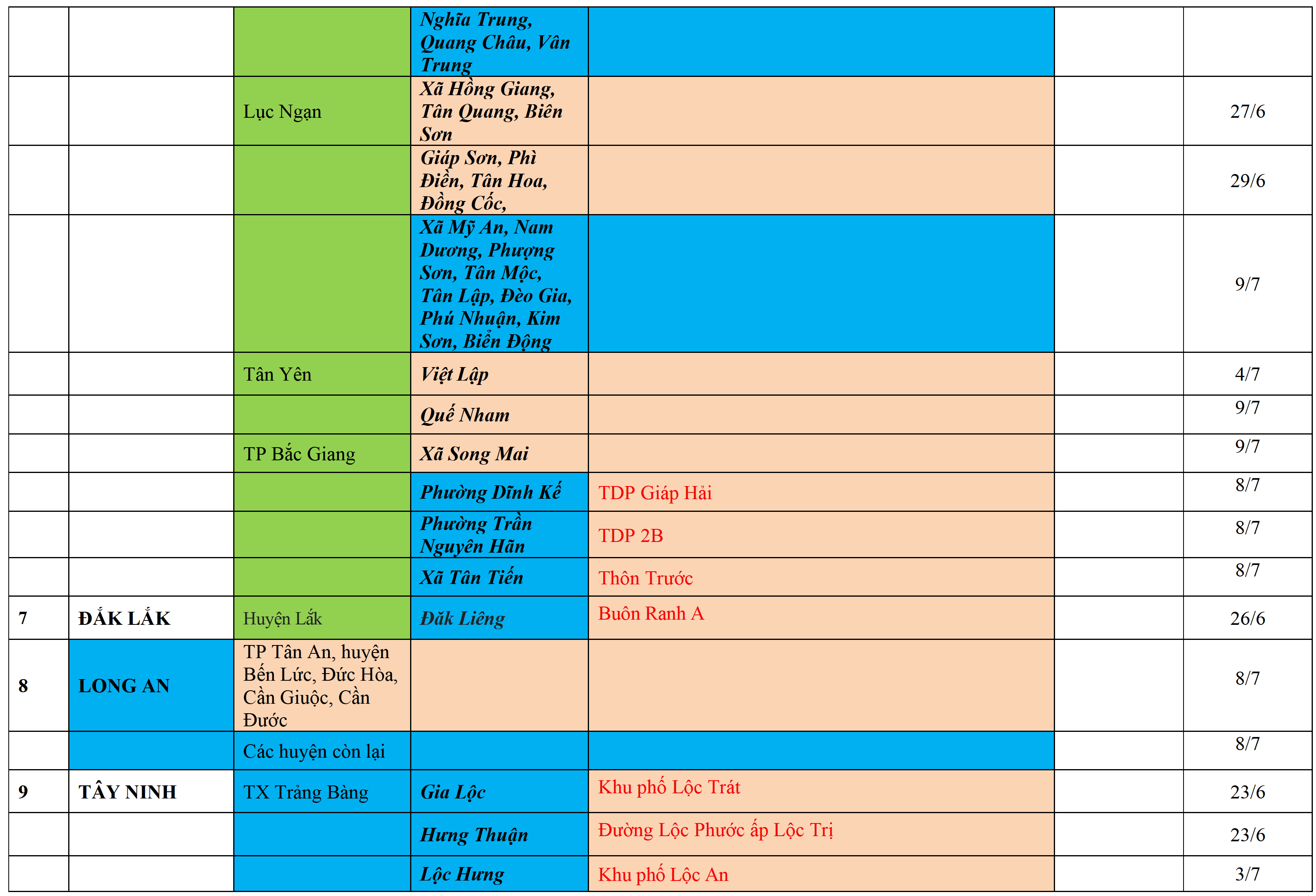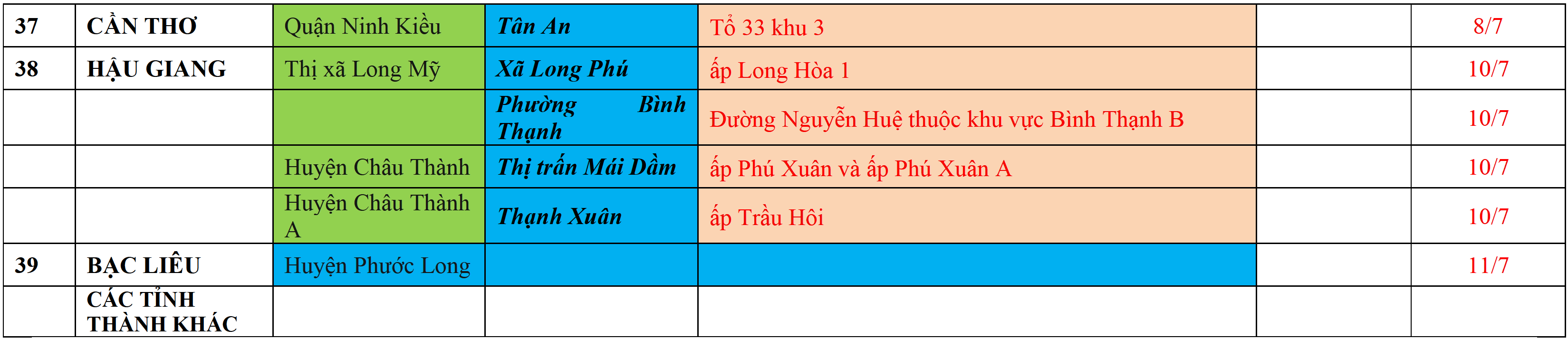 . Áp dụng biện pháp tương ứng màu sắc ô cột theo thôn xóm; xã phường; quận huyện; tỉnh thành phố. Cách ly y tế dựa vào việc tiếp xúc, đi đến địa điểm và nơi cư trú có ca bệnh, theo Thông báo của Bộ Y tế, các tỉnh thành phố.