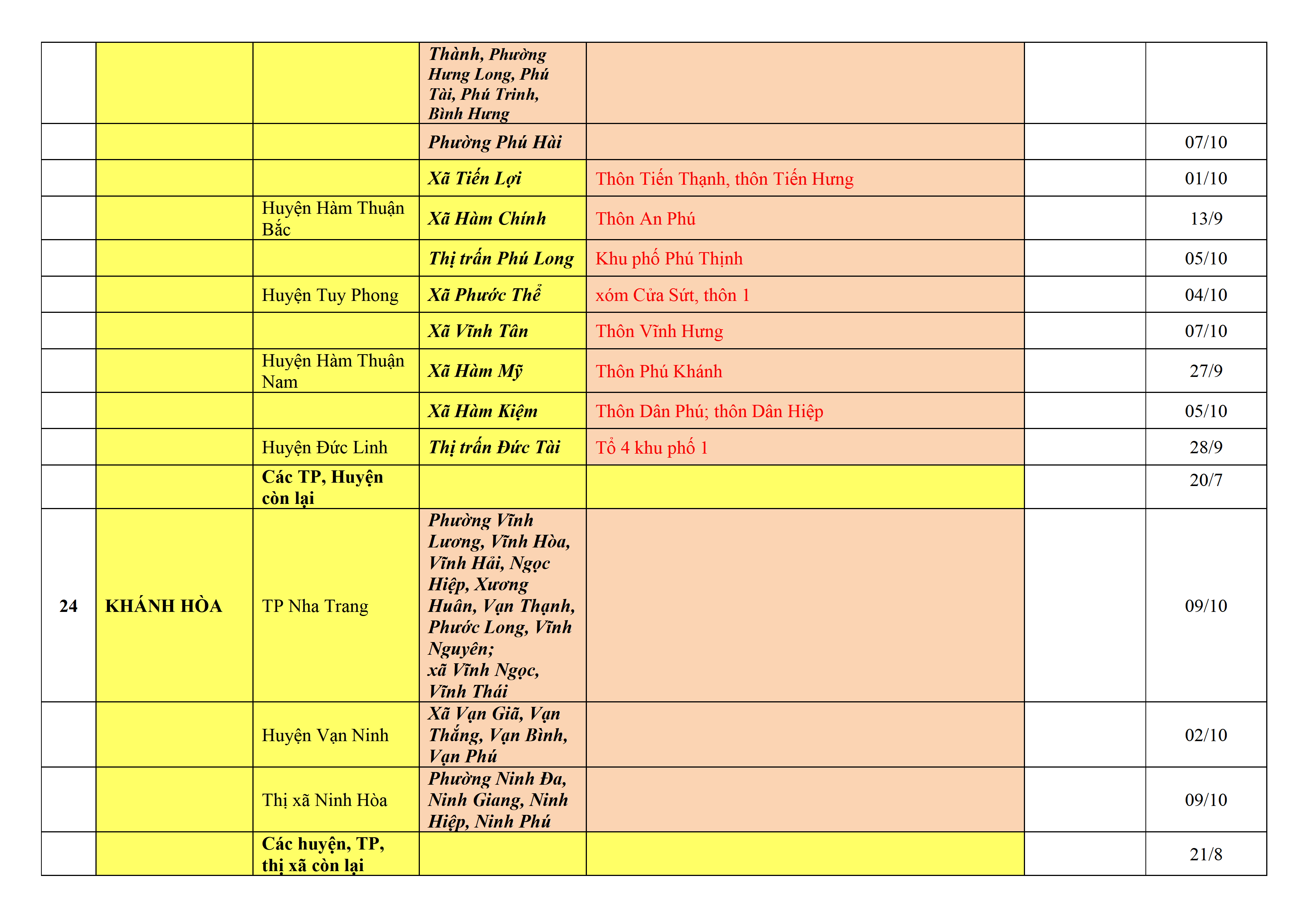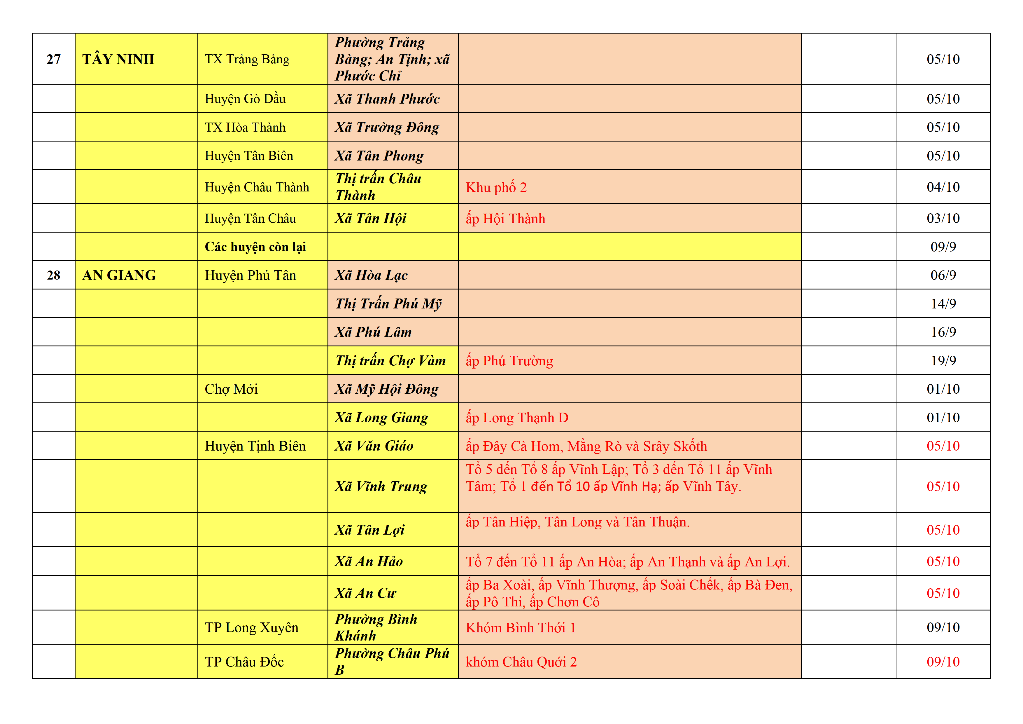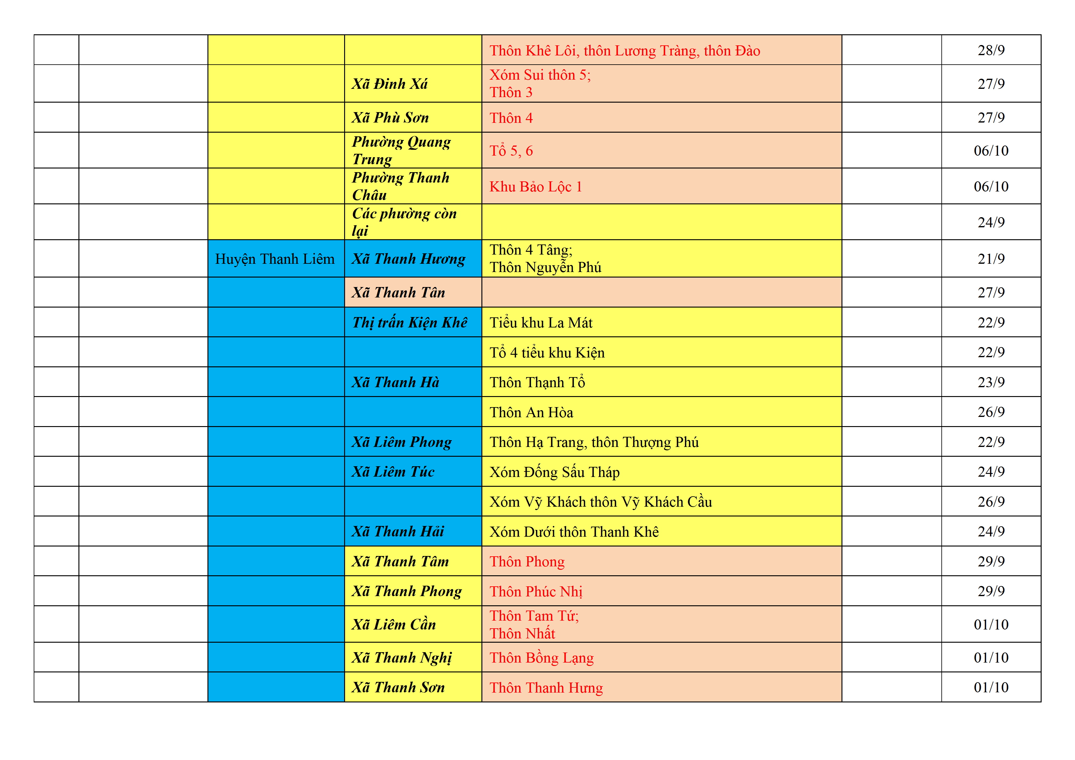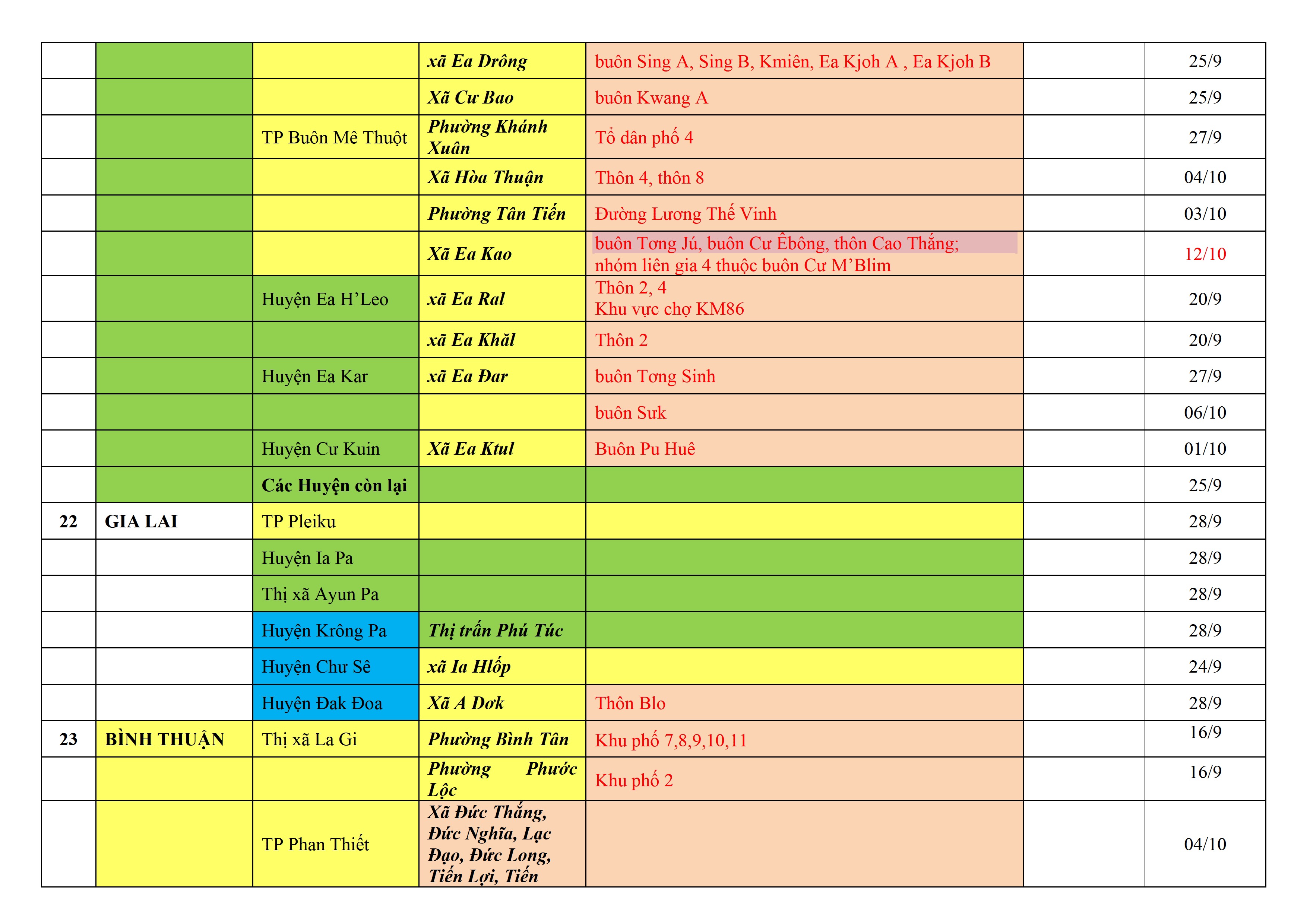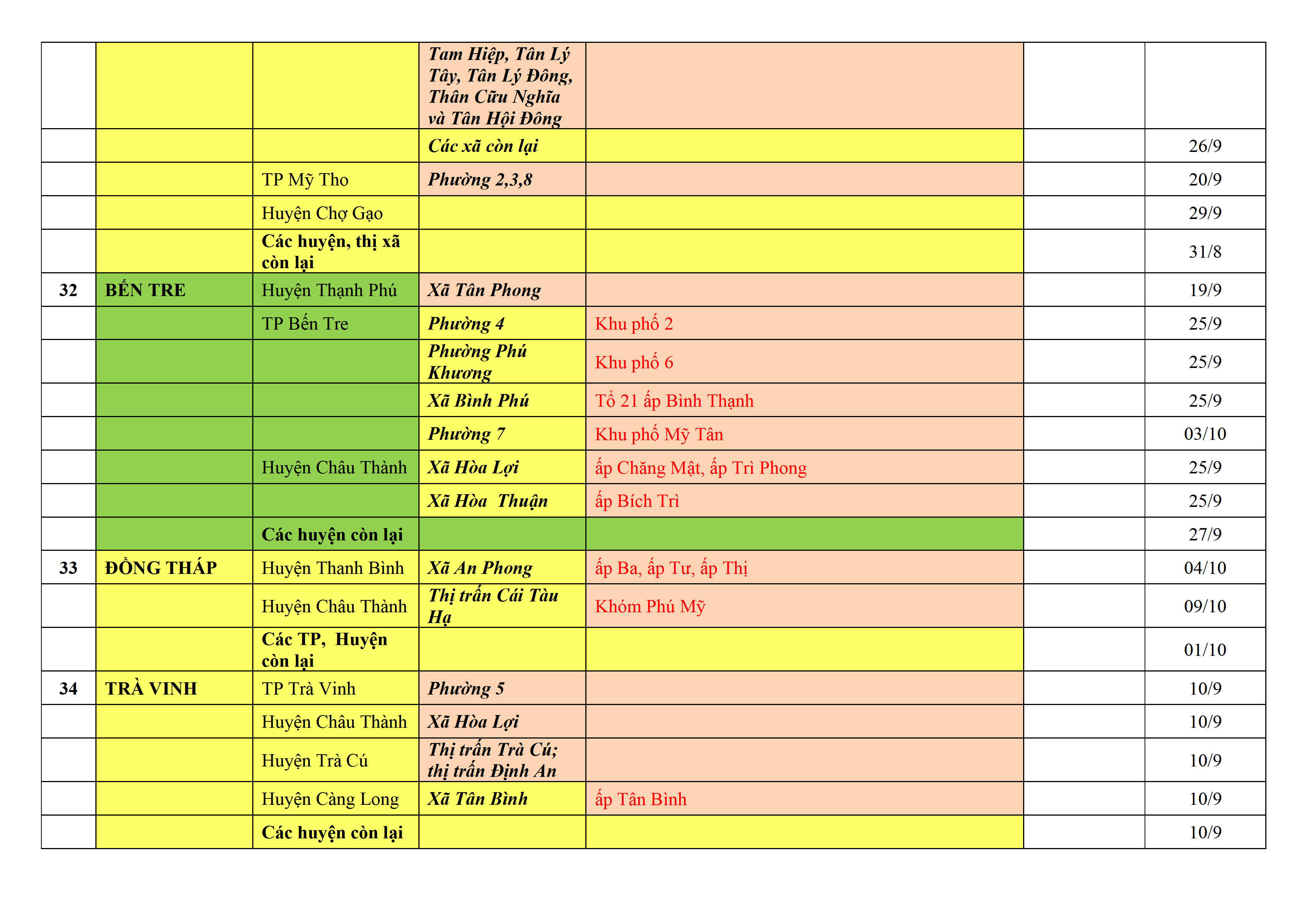 – Áp dụng biện pháp tương ứng màu sắc ô cột theo thôn xóm; xã phường; quận huyện; tỉnh thành phố. Cách ly y tế dựa vào việc tiếp xúc, đi đến địa điểm và nơi cư trú có ca bệnh, theo Thông báo của Bộ Y tế, các tỉnh thành phố.