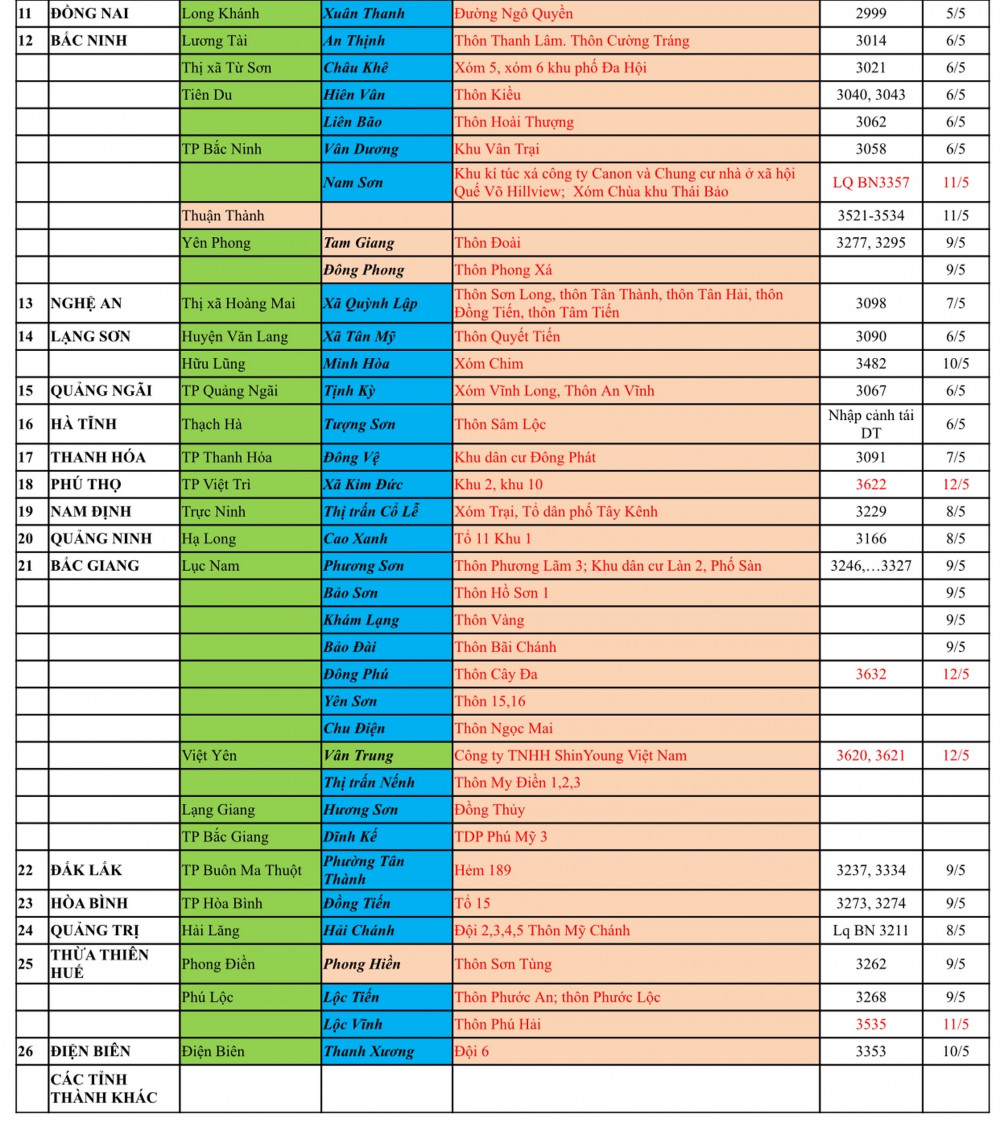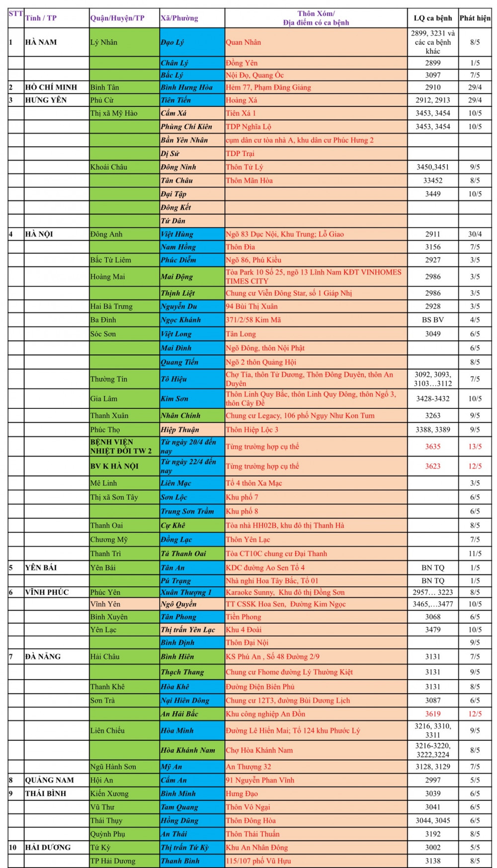 . Áp dụng các biện pháp Cách ly y tế đối với những người đến và trở về Hải Phòng, từ các vùng có ca bệnh tại cộng đồng theo Bảng trên.