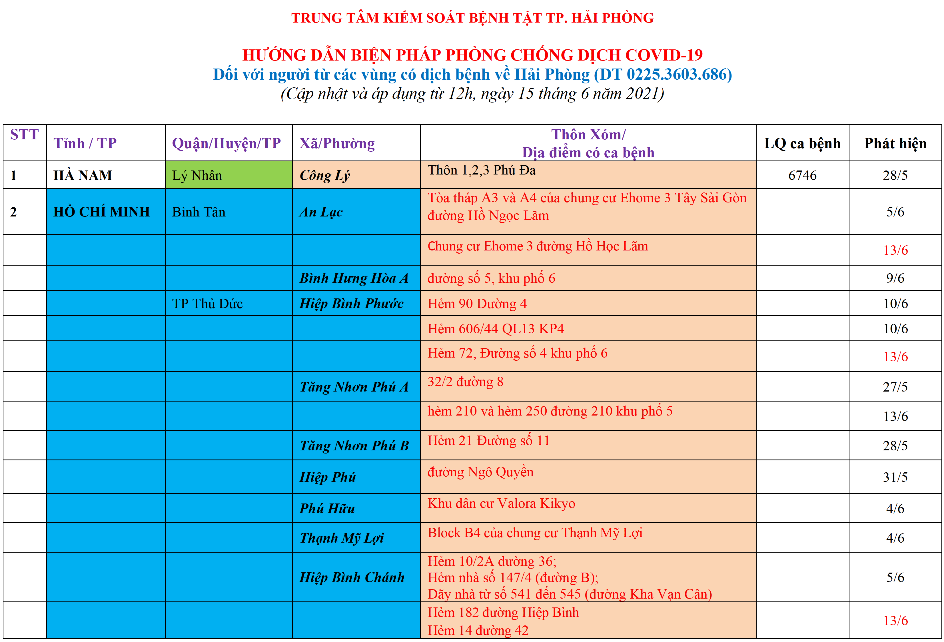 Trung tâm kiểm soát bệnh tật Hải Phòng hướng dẫn tạm thời biện pháp phòng chống dịch COVID-19 đối với người từ các tỉnh, thành khác về thành phố như sau (thông tin cập nhật vào 12h00’ ngày 15/6/2021):