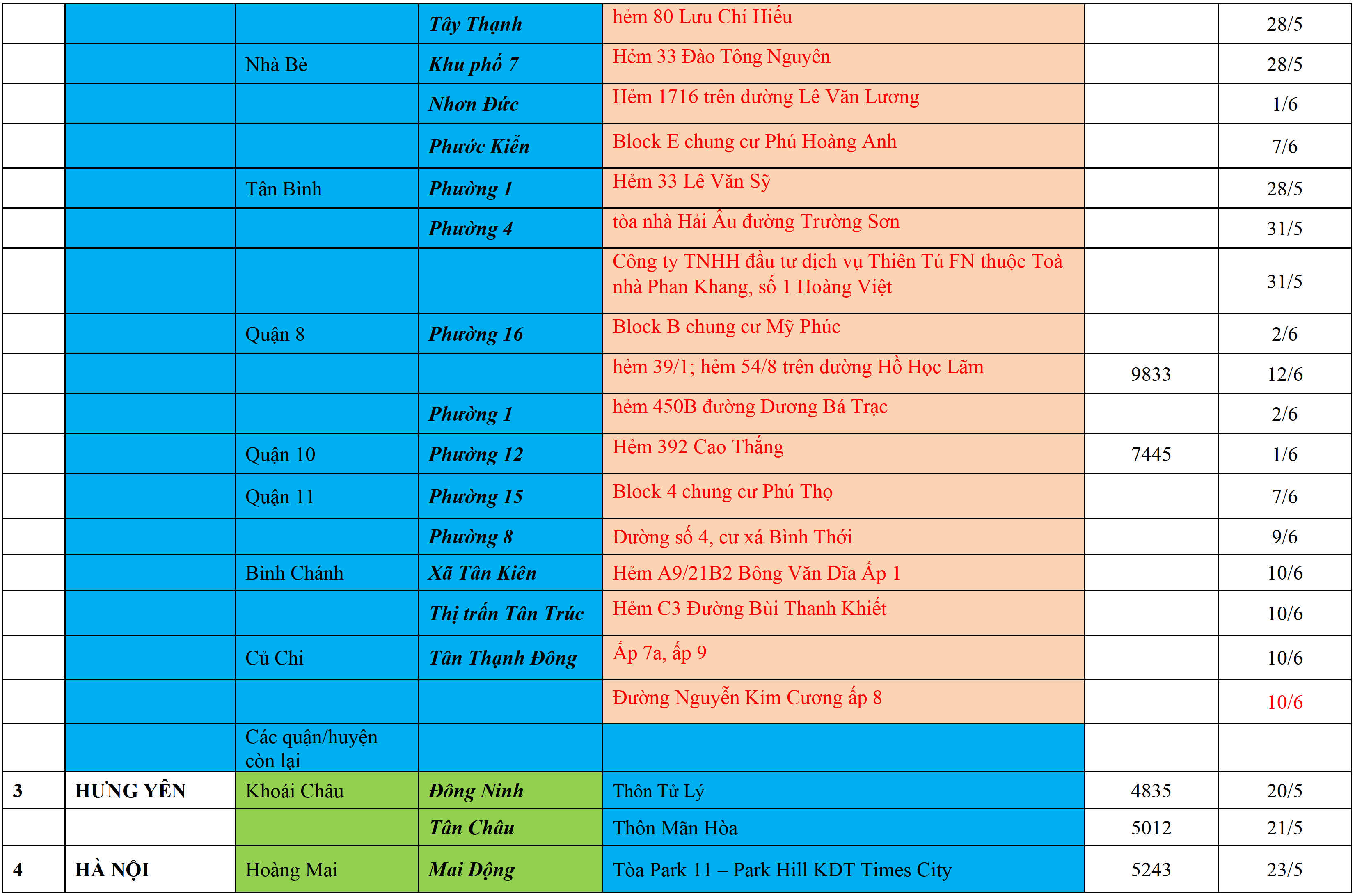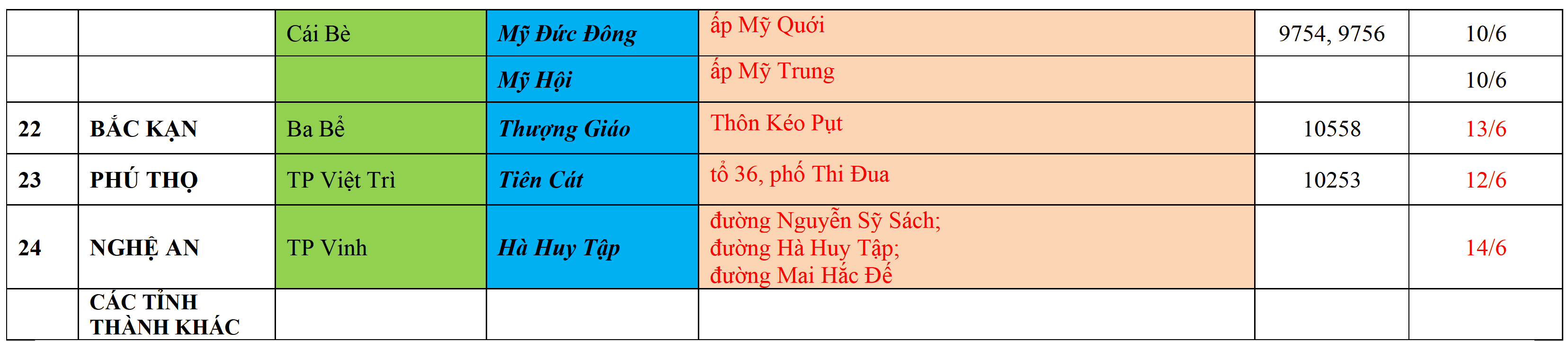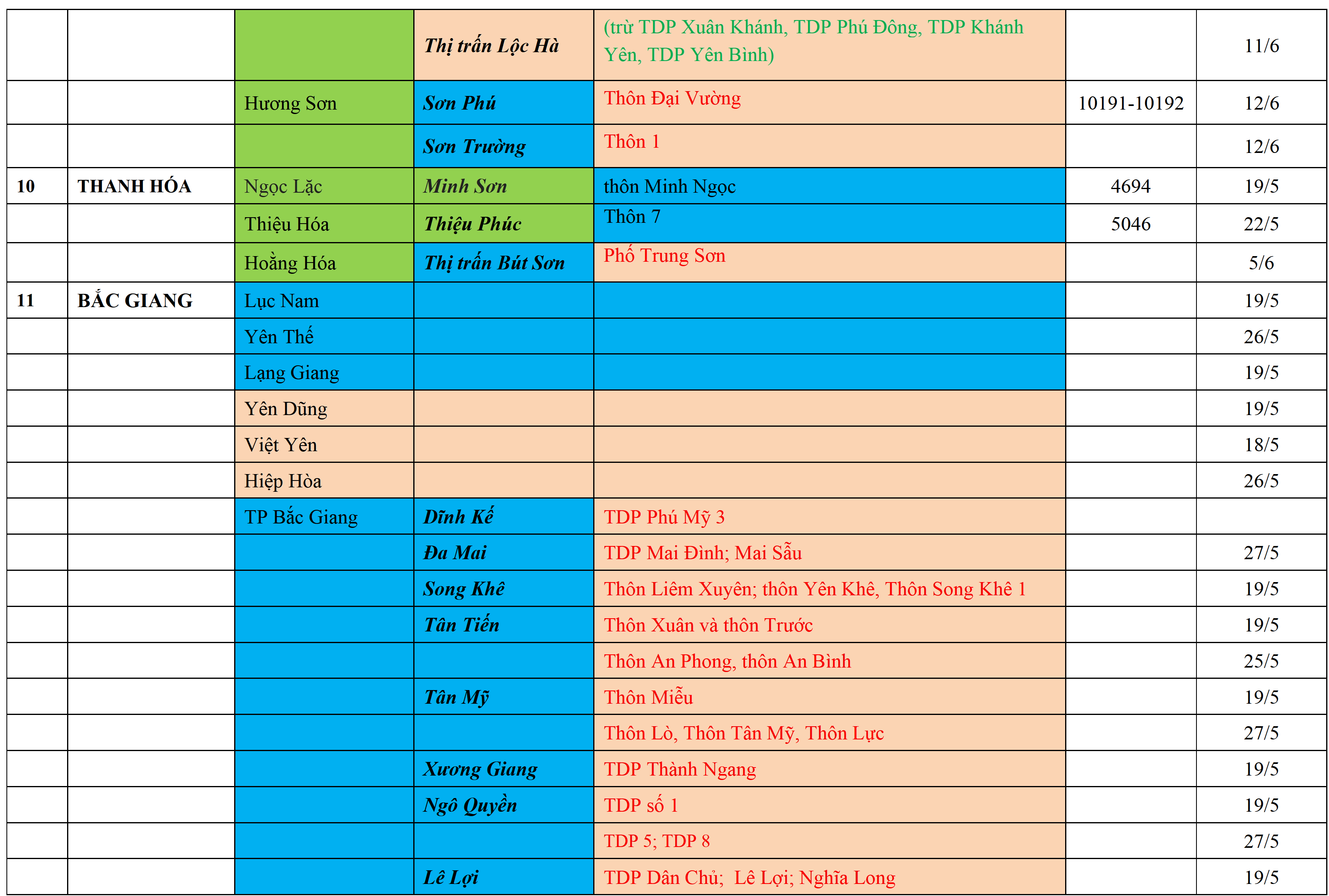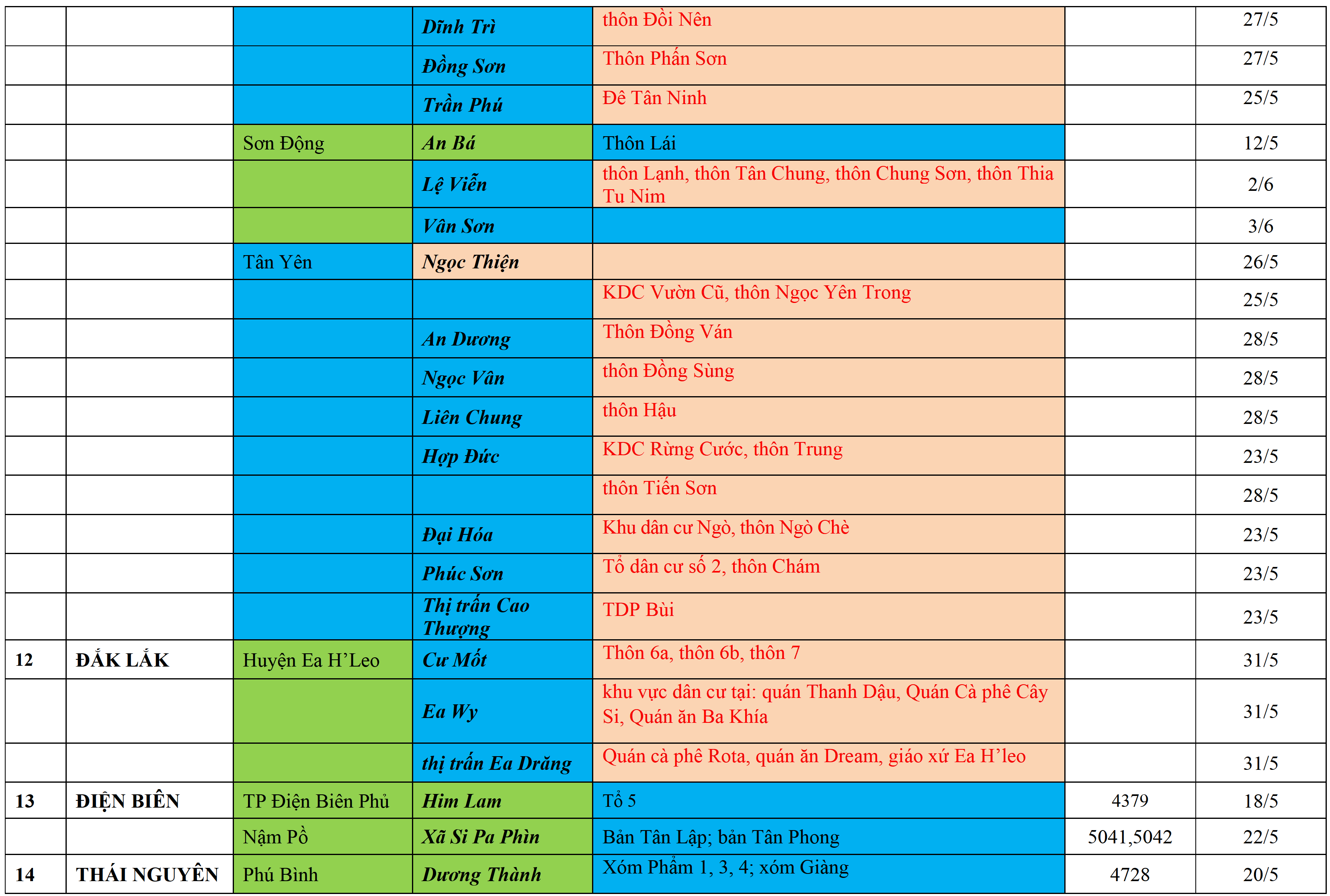 Cách ly tập trung theo MÀU CAM, Cách ly tại nhà theo MÀU XANH NƯỚC BIỂN, Khai báo, giám sát y tế theo MÀU XANH MẠ; Không áp dụng các biện pháp cách ly y tế theo MÀU TRẮNG;