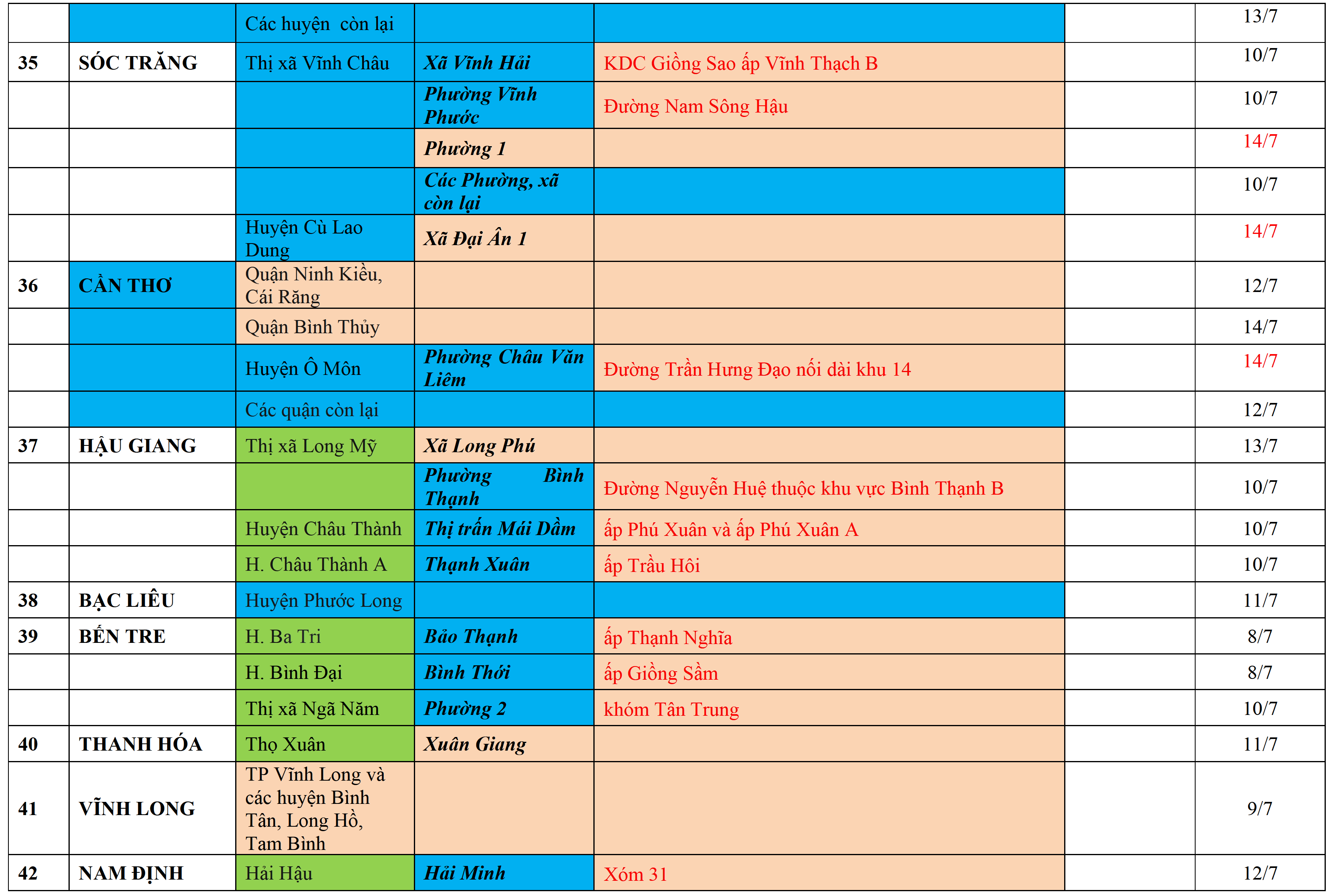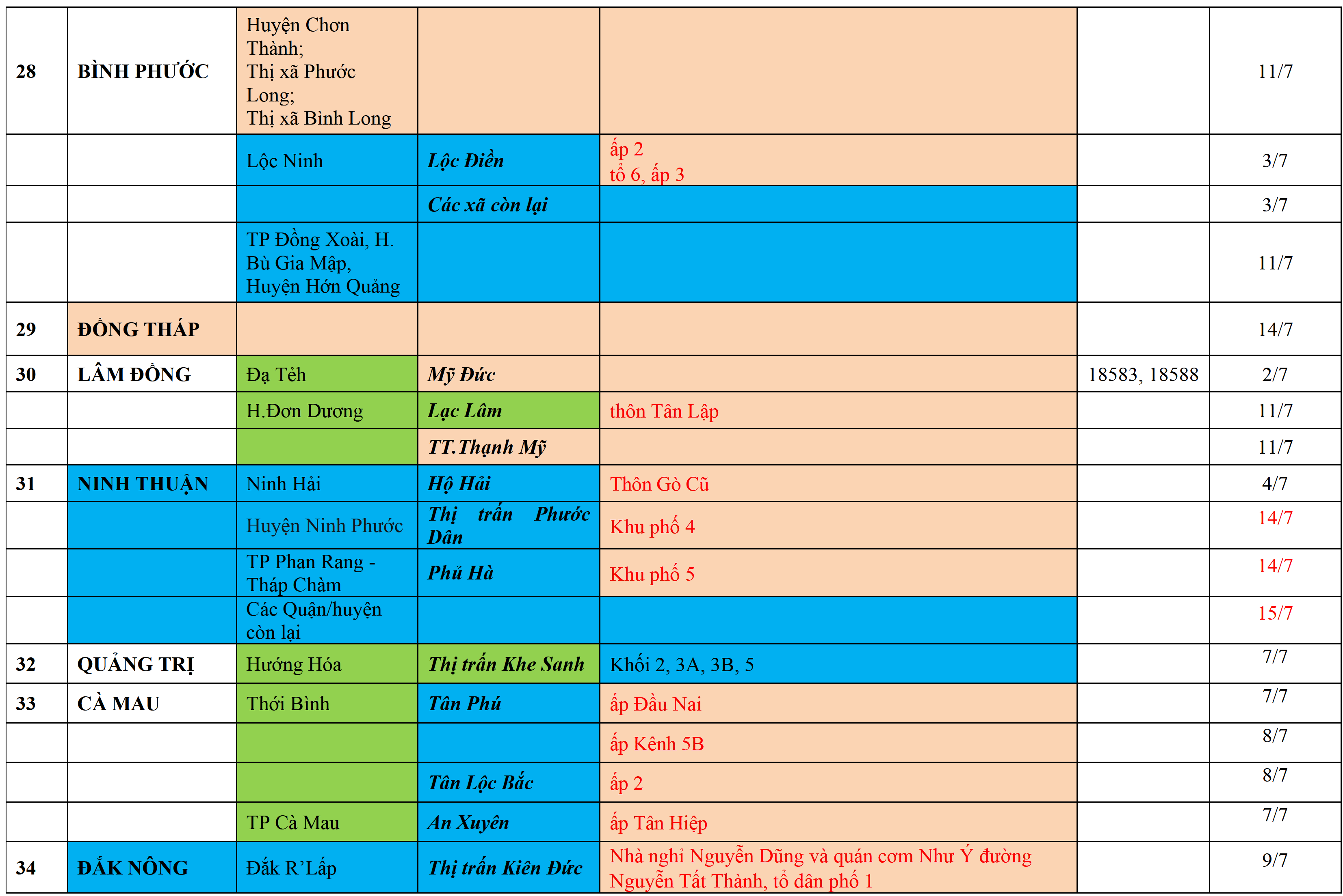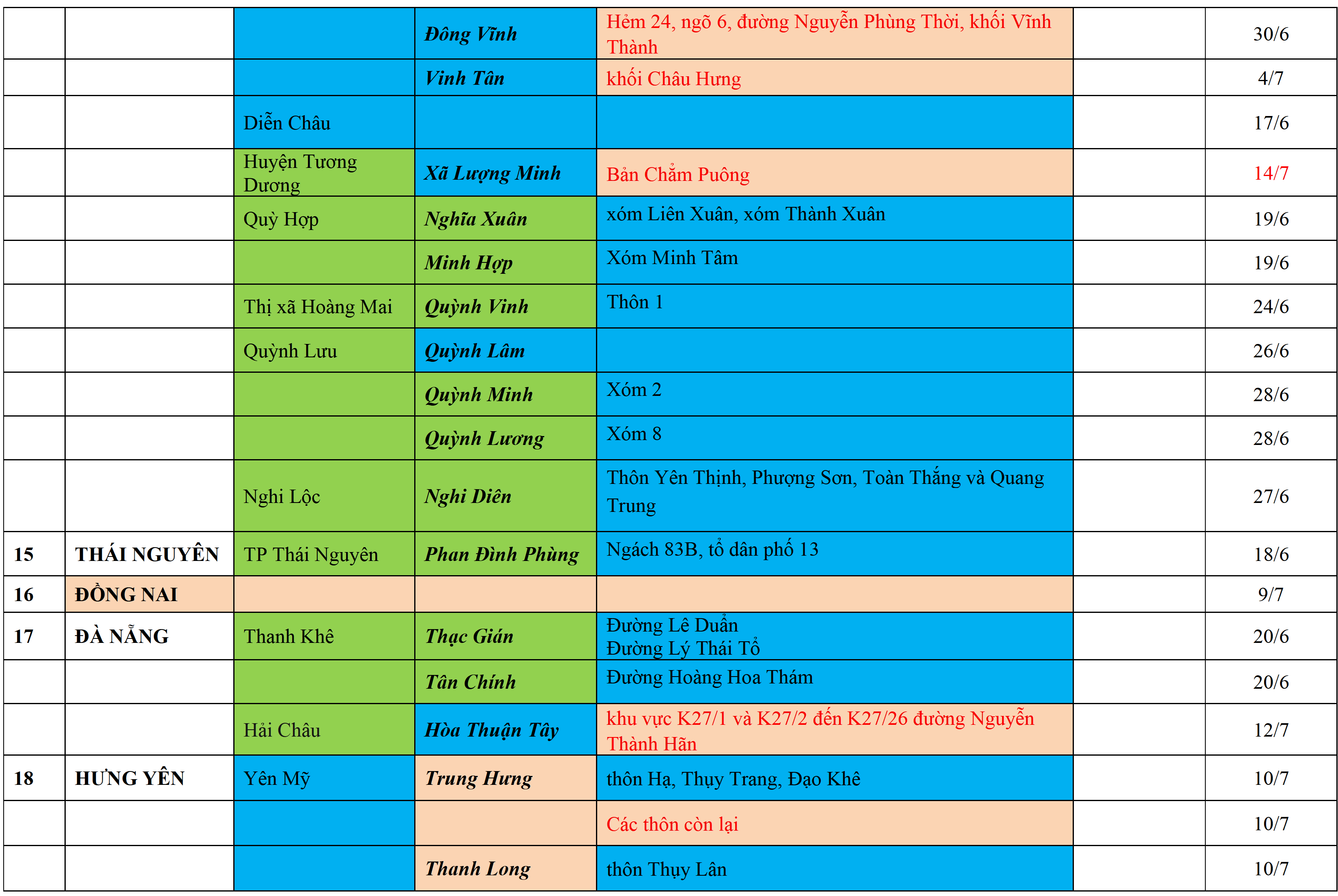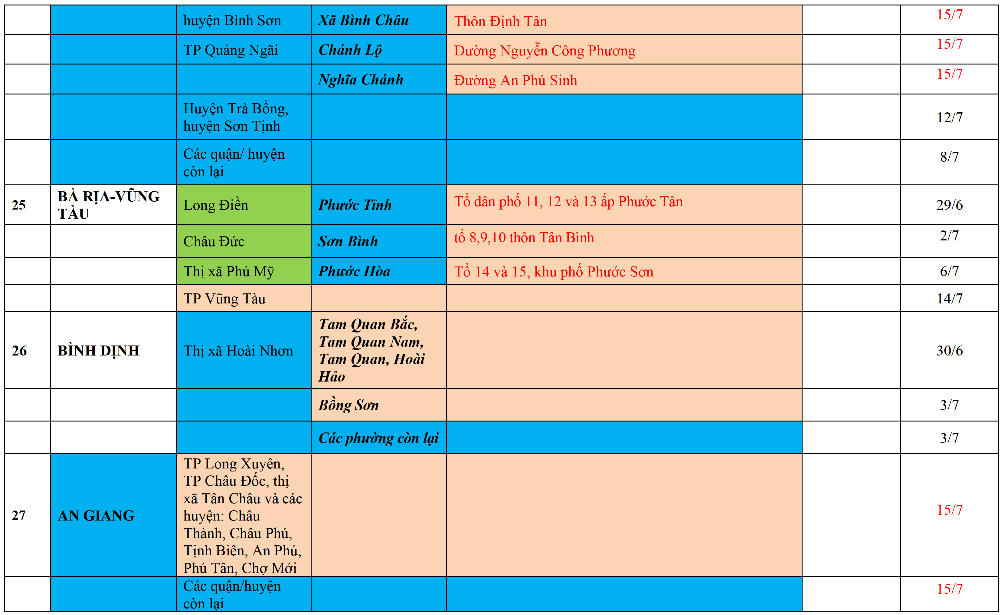 . Áp dụng biện pháp tương ứng màu sắc ô cột theo thôn xóm; xã phường; quận huyện; tỉnh thành phố. Cách ly y tế dựa vào việc tiếp xúc, đi đến địa điểm và nơi cư trú có ca bệnh, theo Thông báo của Bộ Y tế, các tỉnh thành phố.
