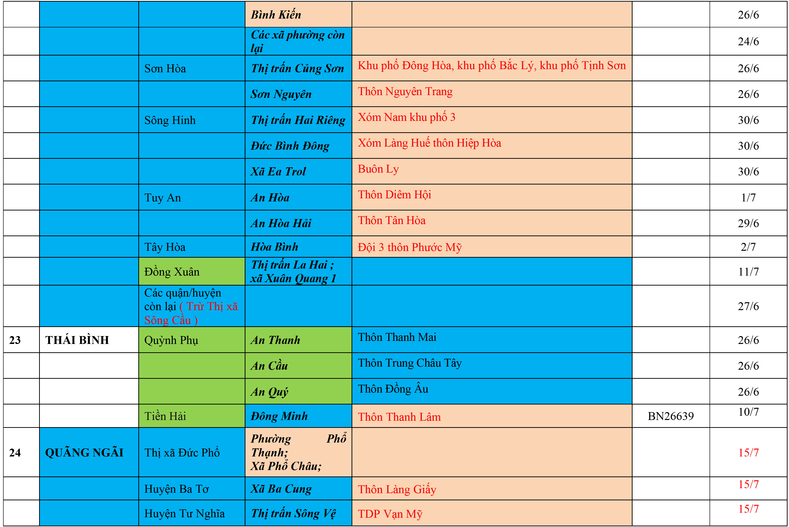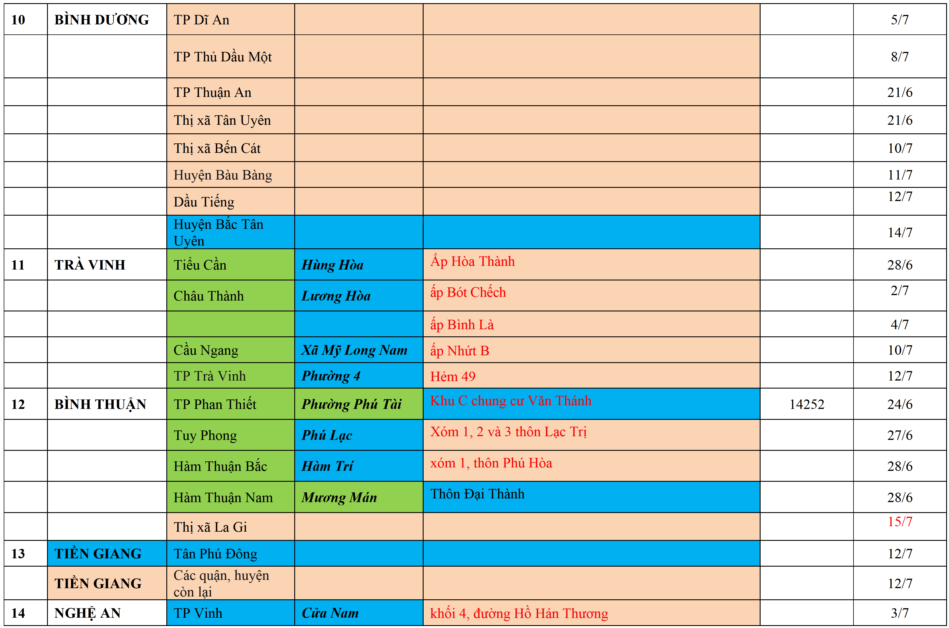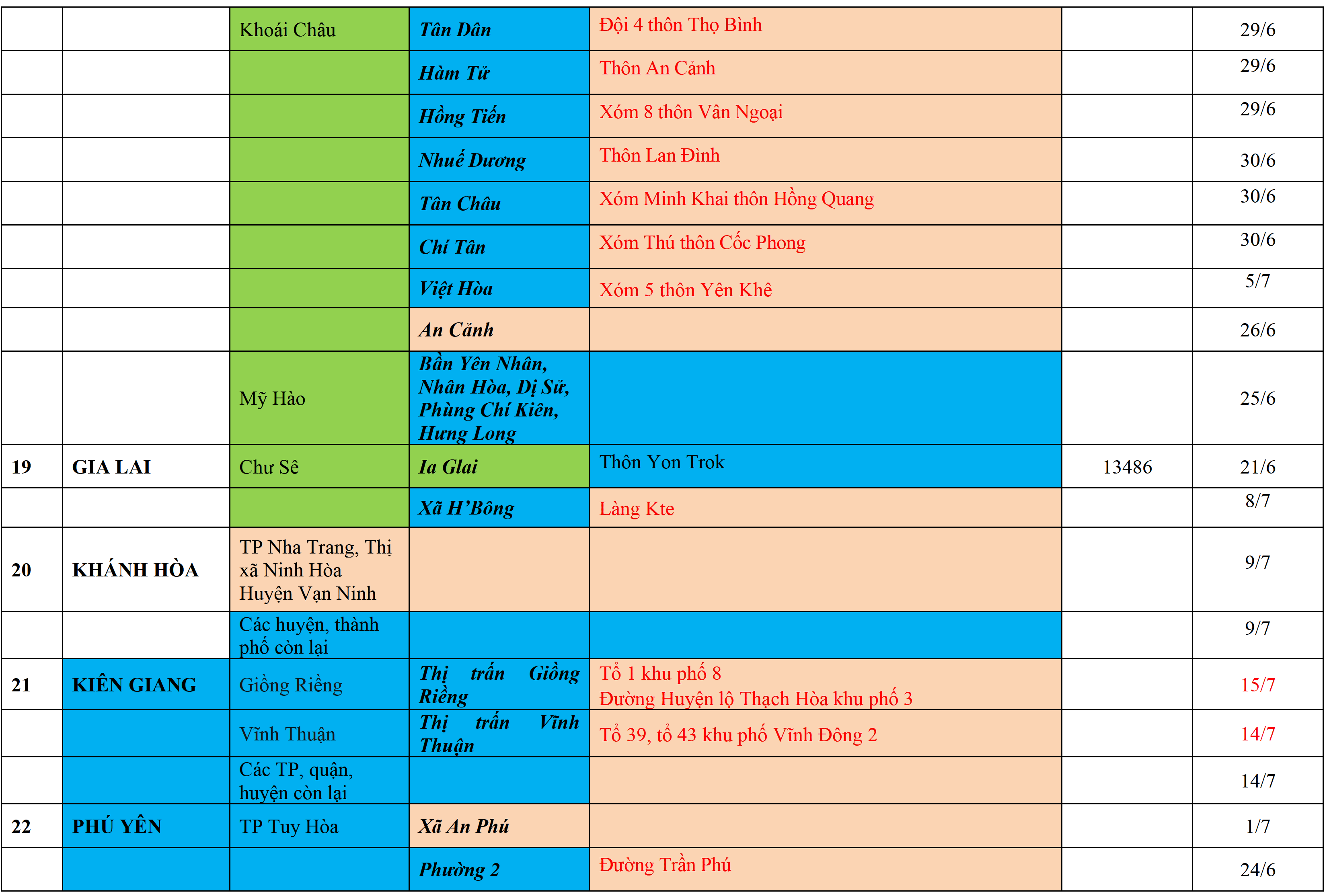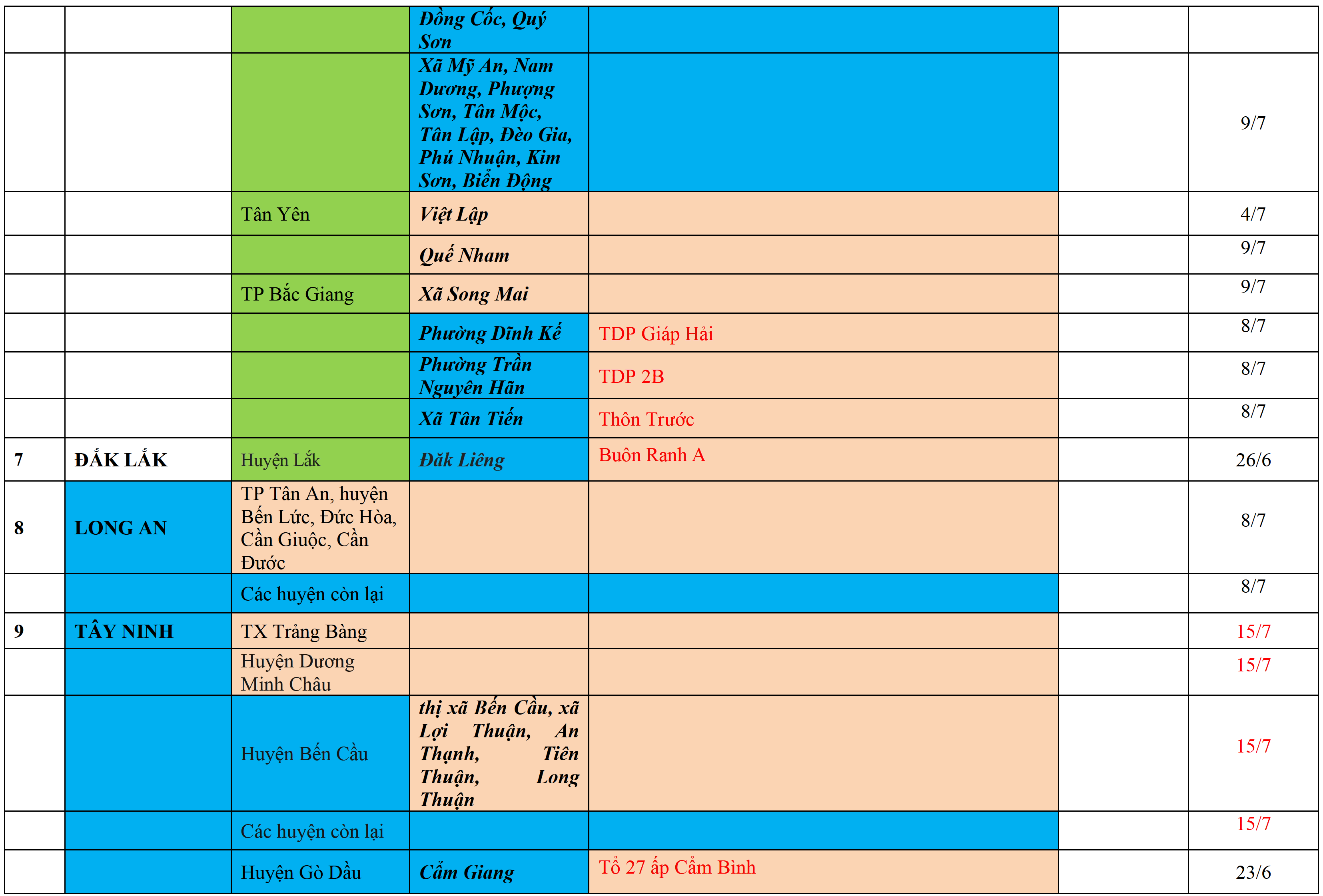 . Áp dụng biện pháp tương ứng màu sắc ô cột theo thôn xóm; xã phường; quận huyện; tỉnh thành phố. Cách ly y tế dựa vào việc tiếp xúc, đi đến địa điểm và nơi cư trú có ca bệnh, theo Thông báo của Bộ Y tế, các tỉnh thành phố.