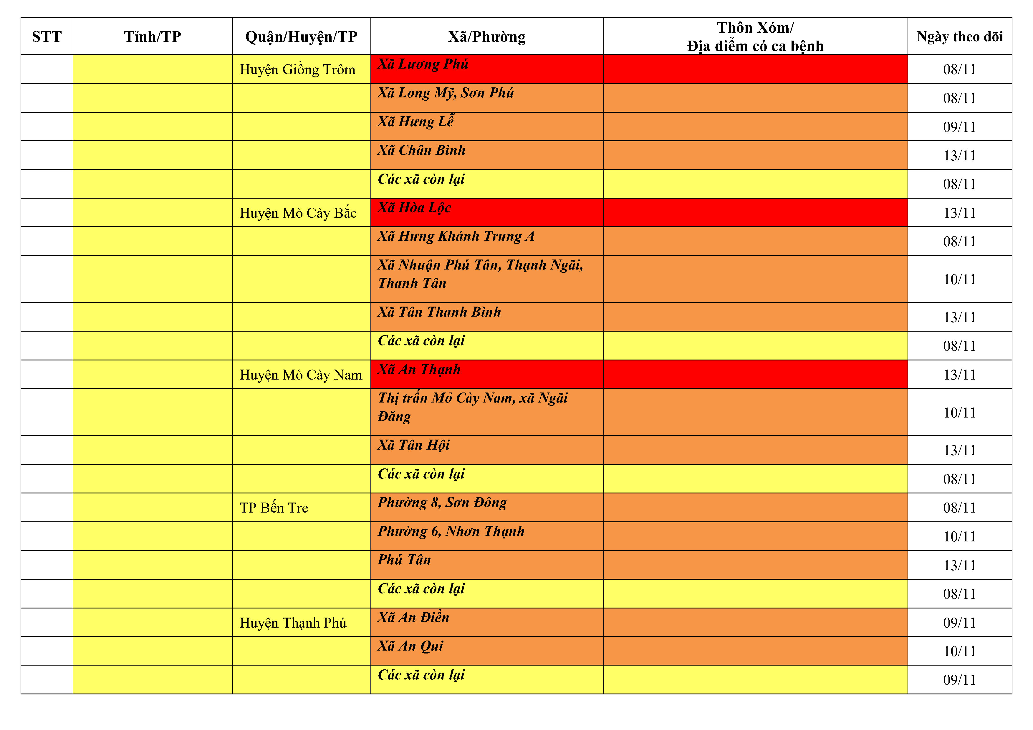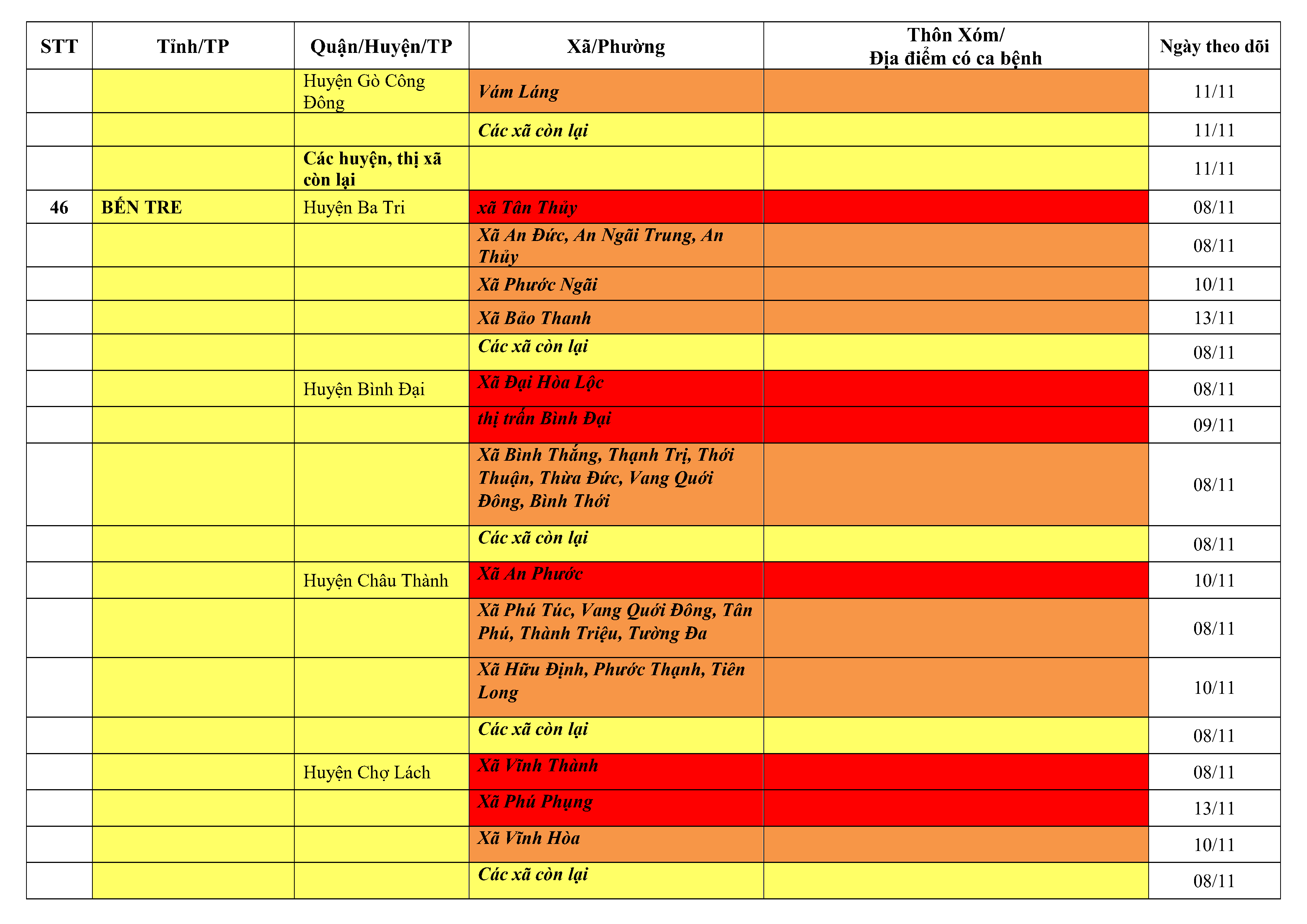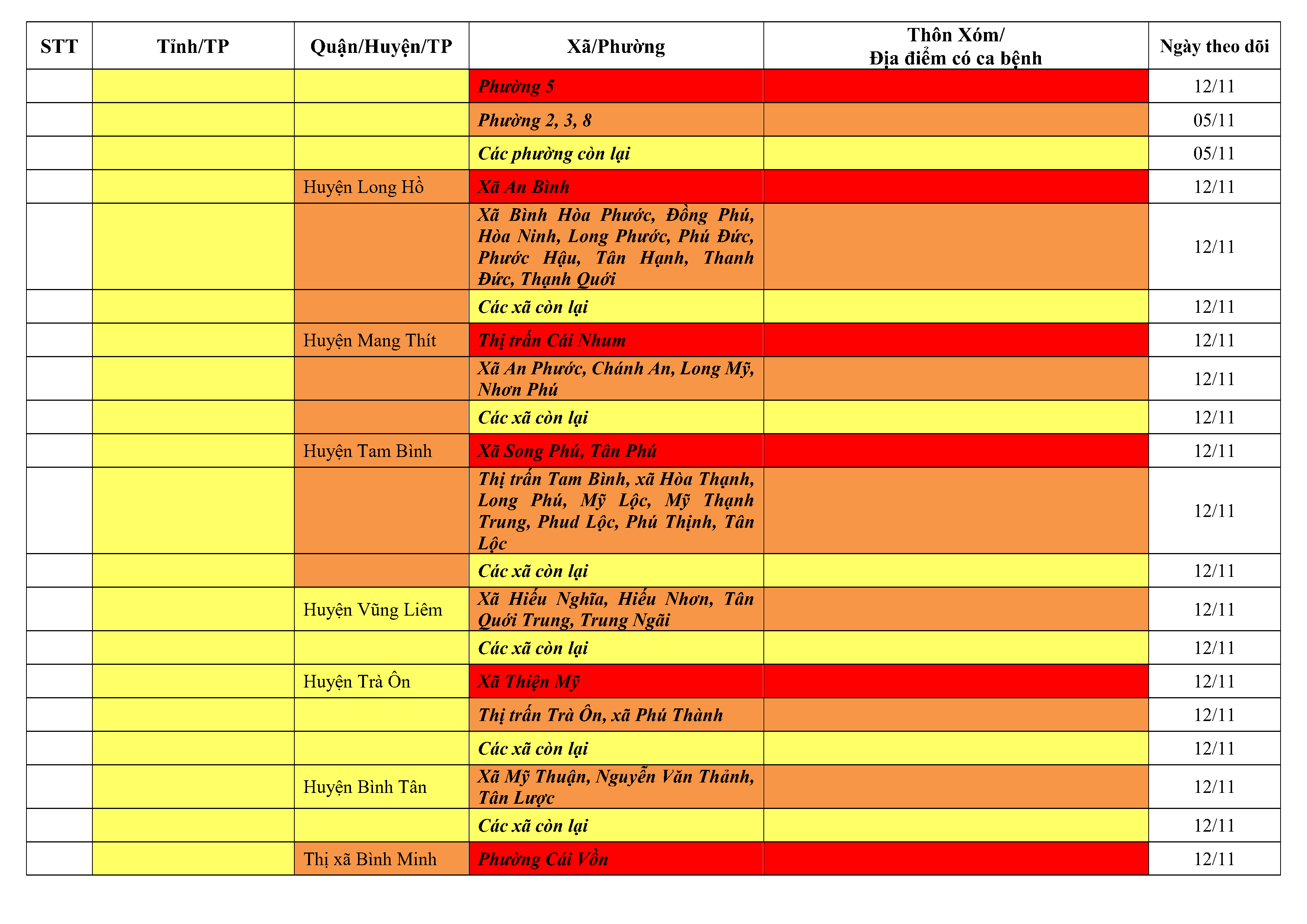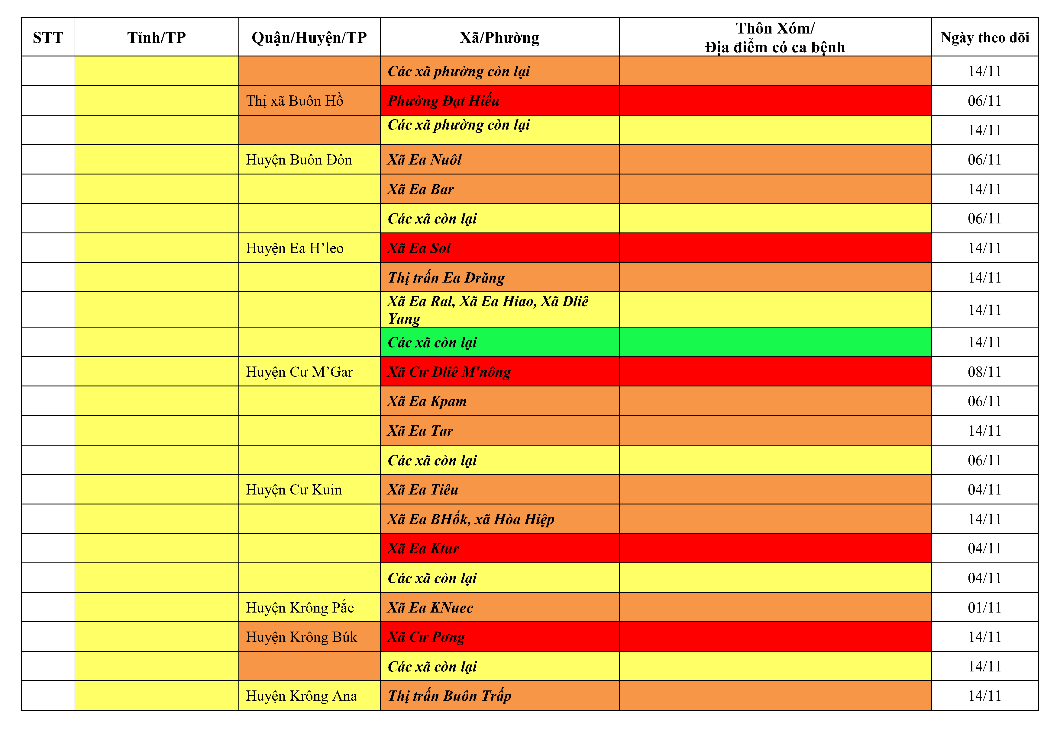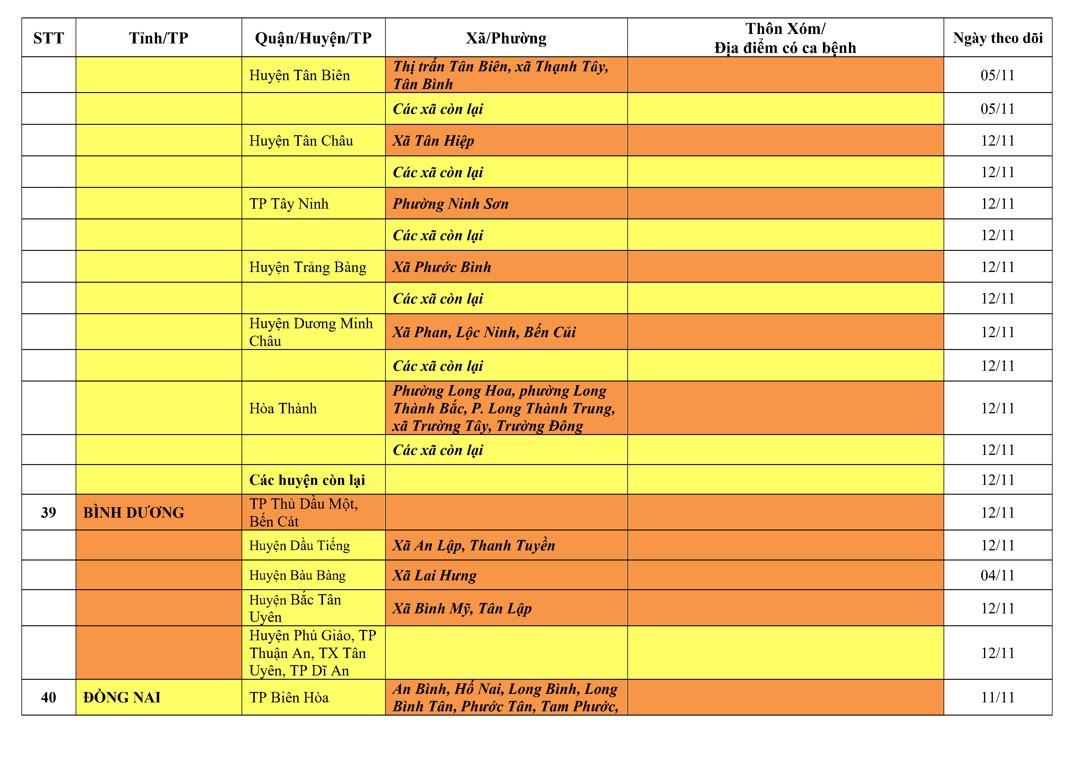 Lưu ý: Các tỉnh, thành phố không có tên trong bảng màu, đi lại bình thường, tuân thủ các biện pháp phòng chống dịch theo chỉ đạo của Bộ Y tế; khai báo y tế, thực hiện nghiêm 5K.