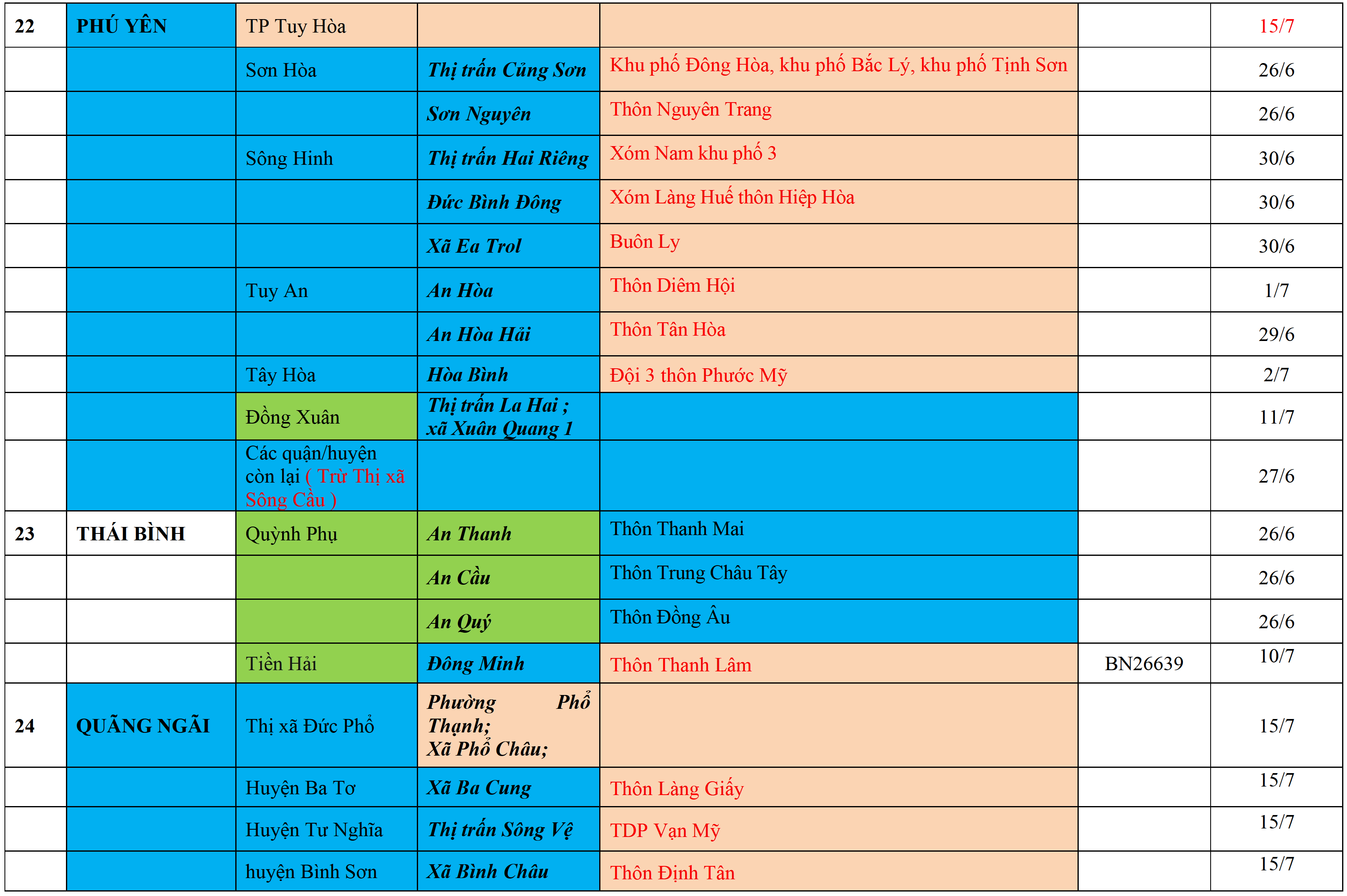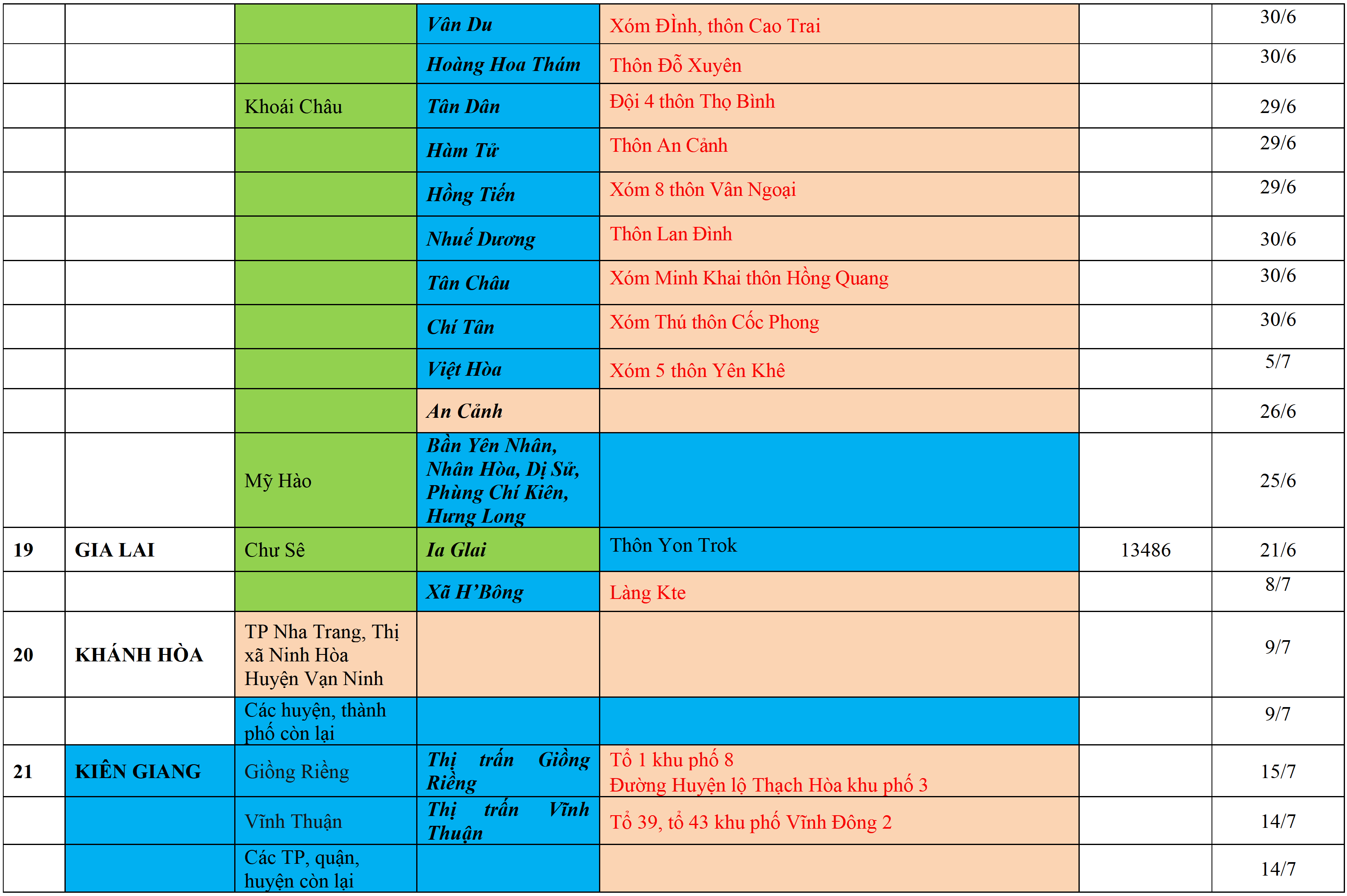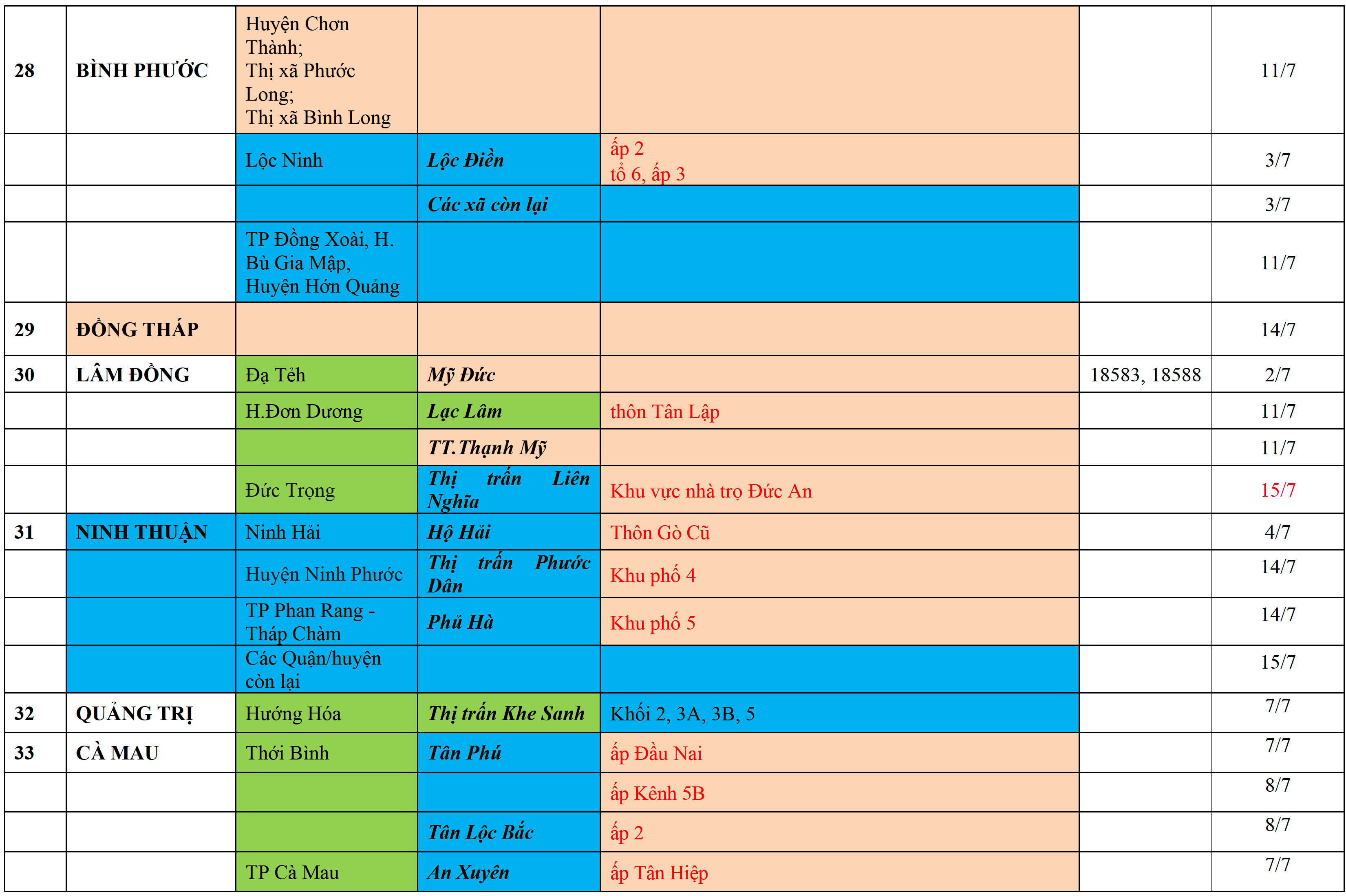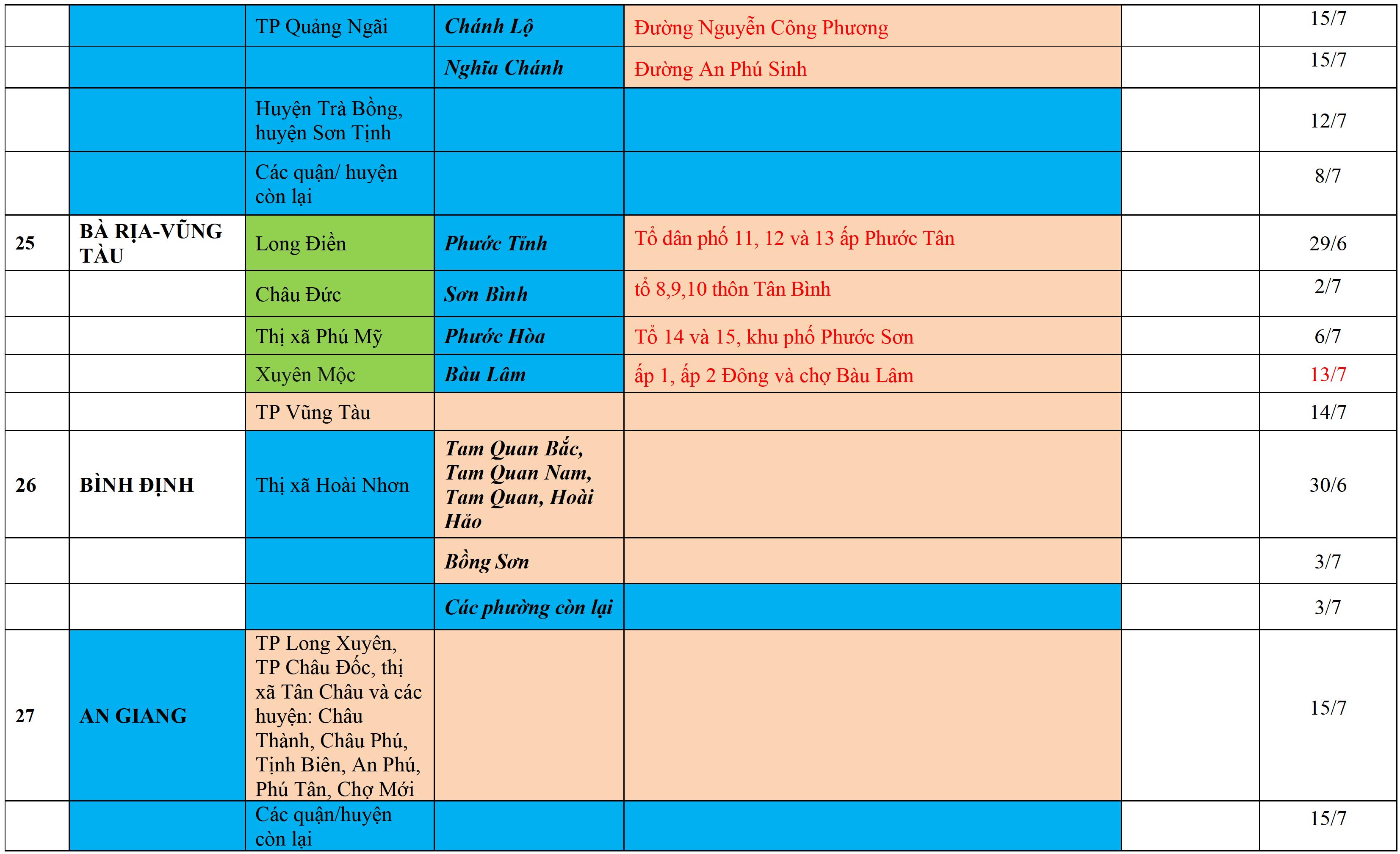 . Áp dụng biện pháp tương ứng màu sắc ô cột theo thôn xóm; xã phường; quận huyện; tỉnh thành phố. Cách ly y tế dựa vào việc tiếp xúc, đi đến địa điểm và nơi cư trú có ca bệnh, theo Thông báo của Bộ Y tế, các tỉnh thành phố.
