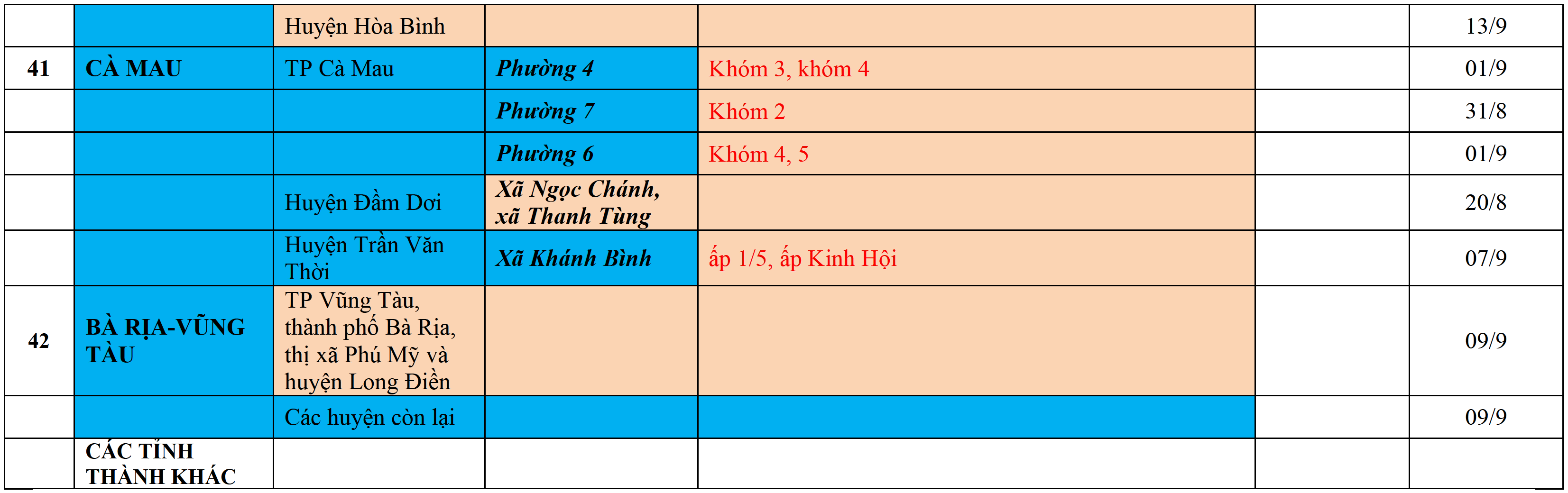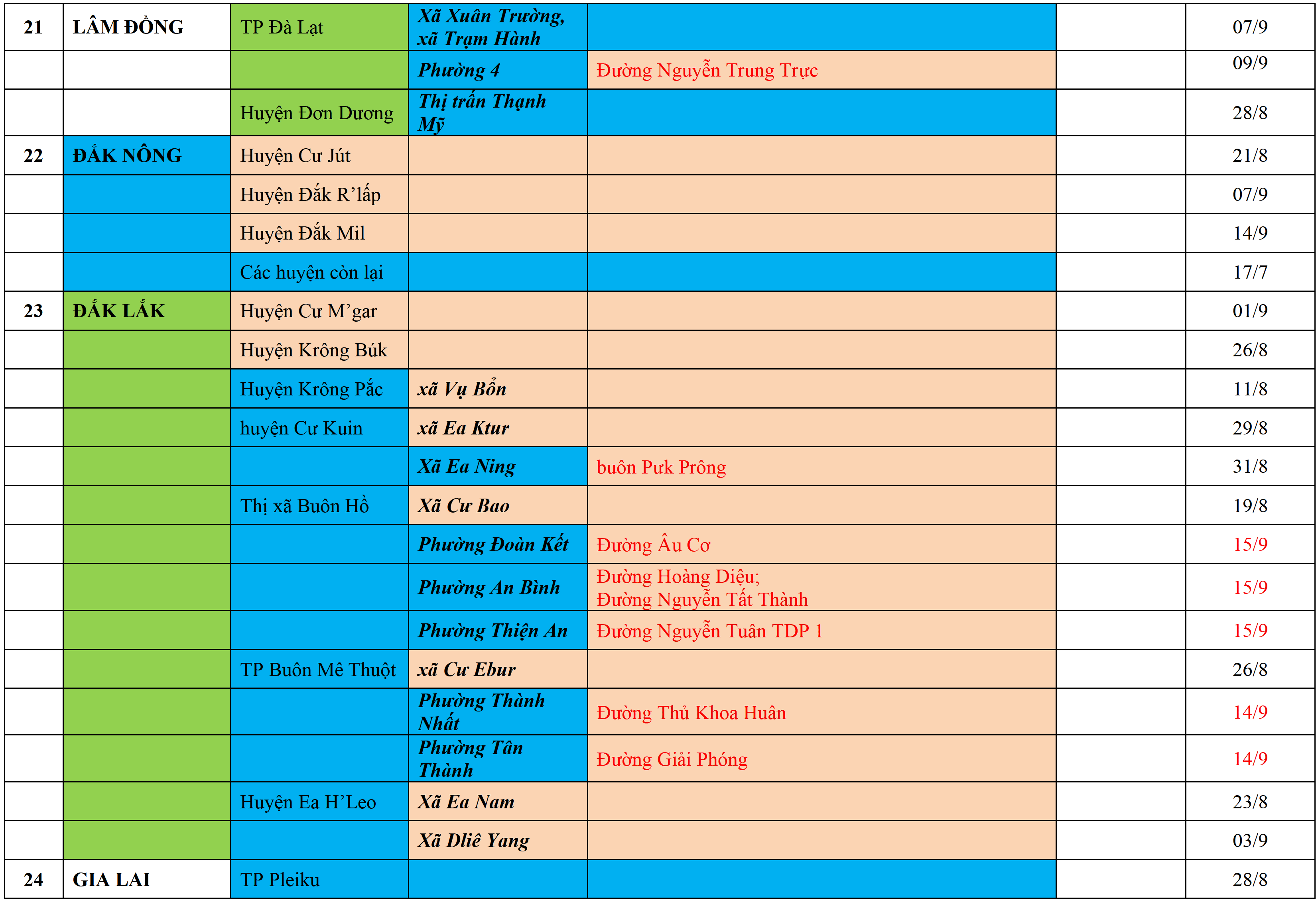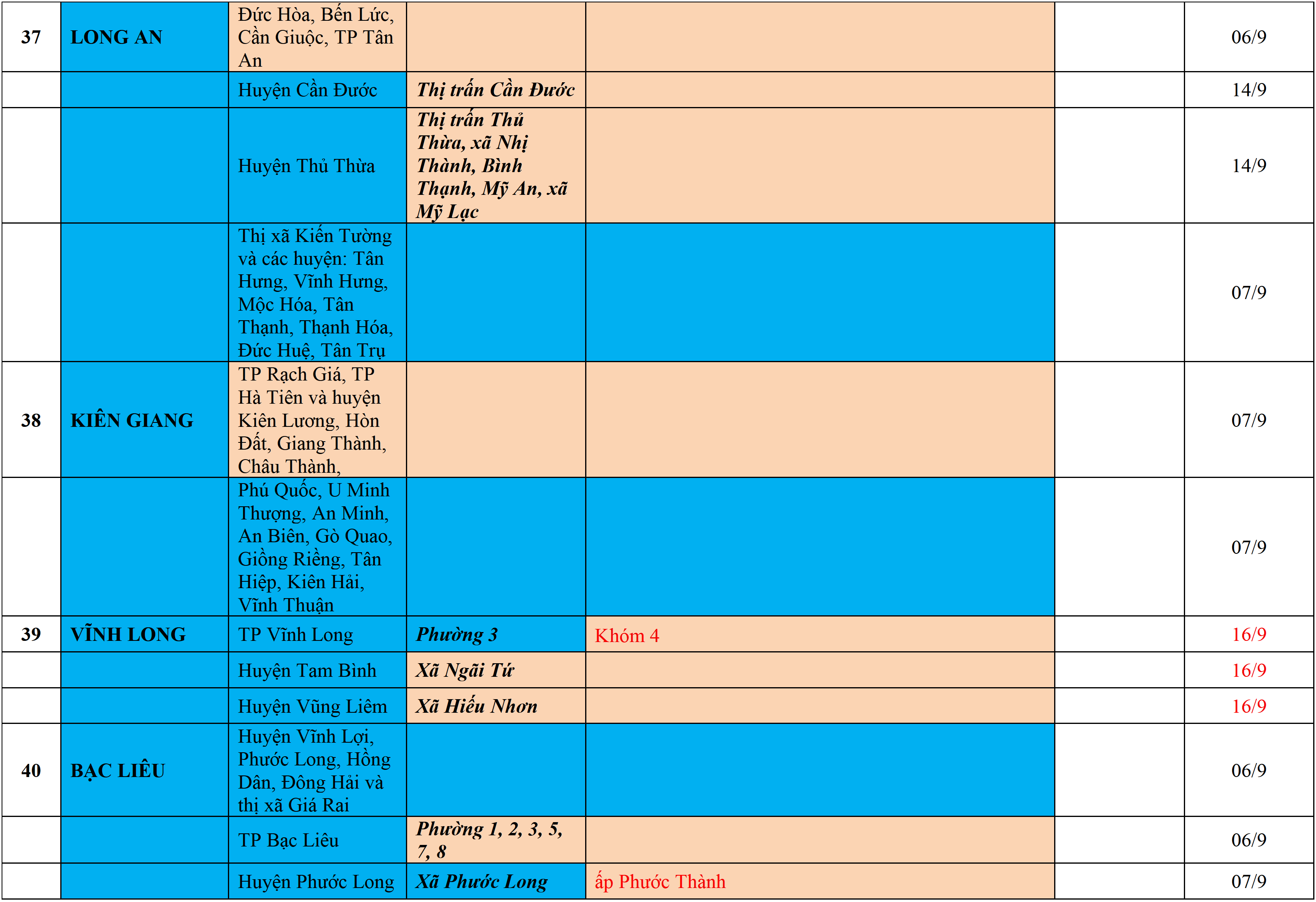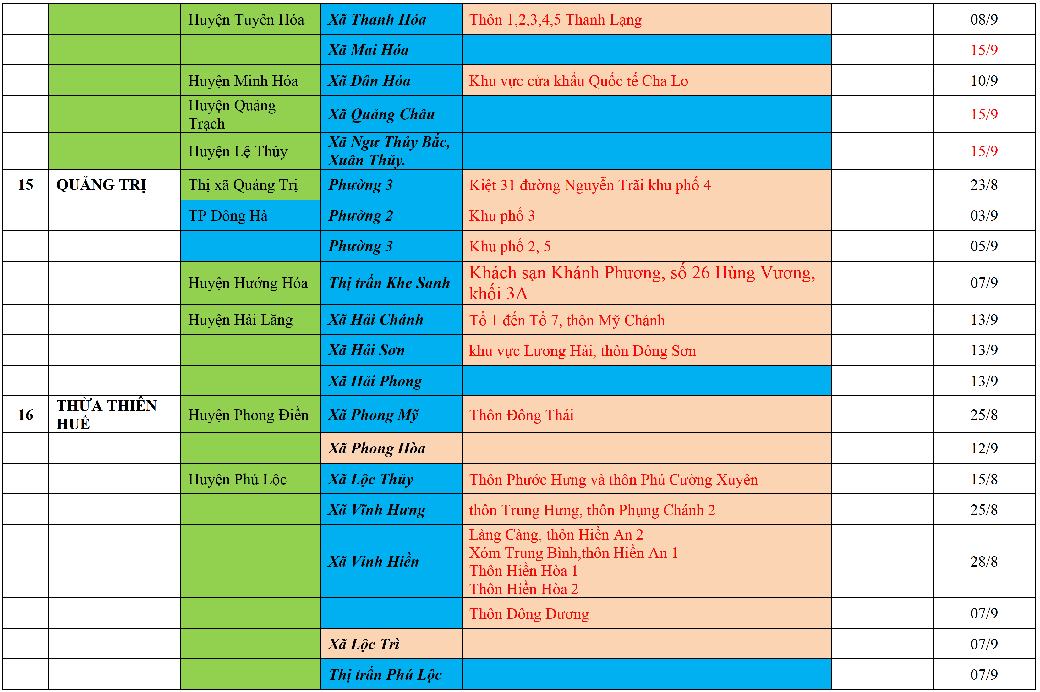 Từ 0 giờ 00 phút, ngày 15/9/2021: