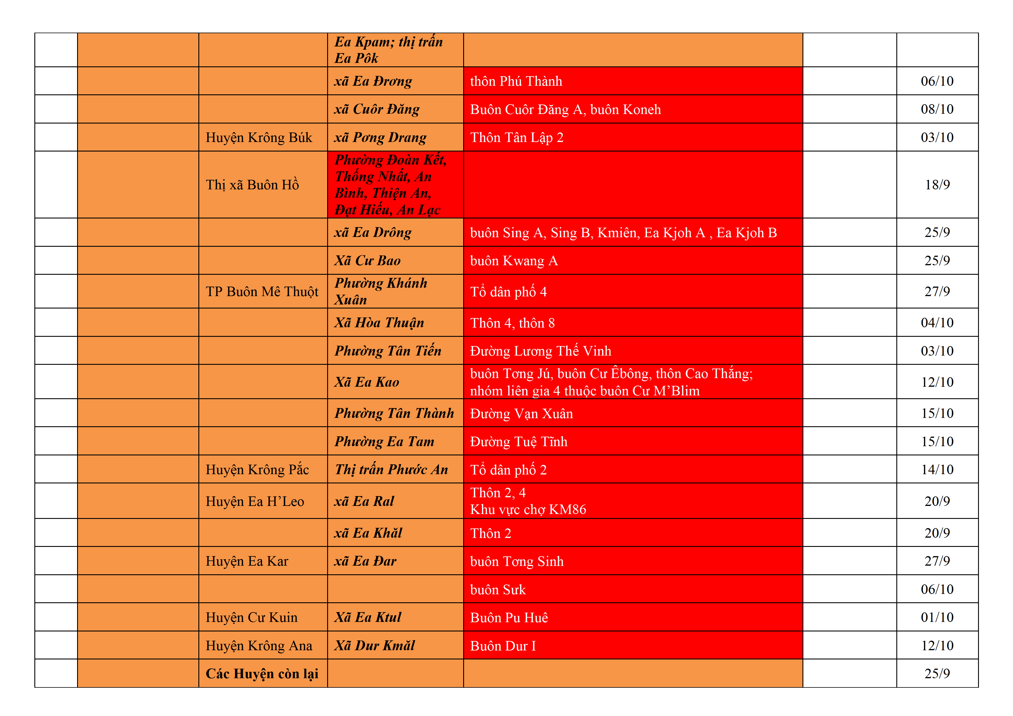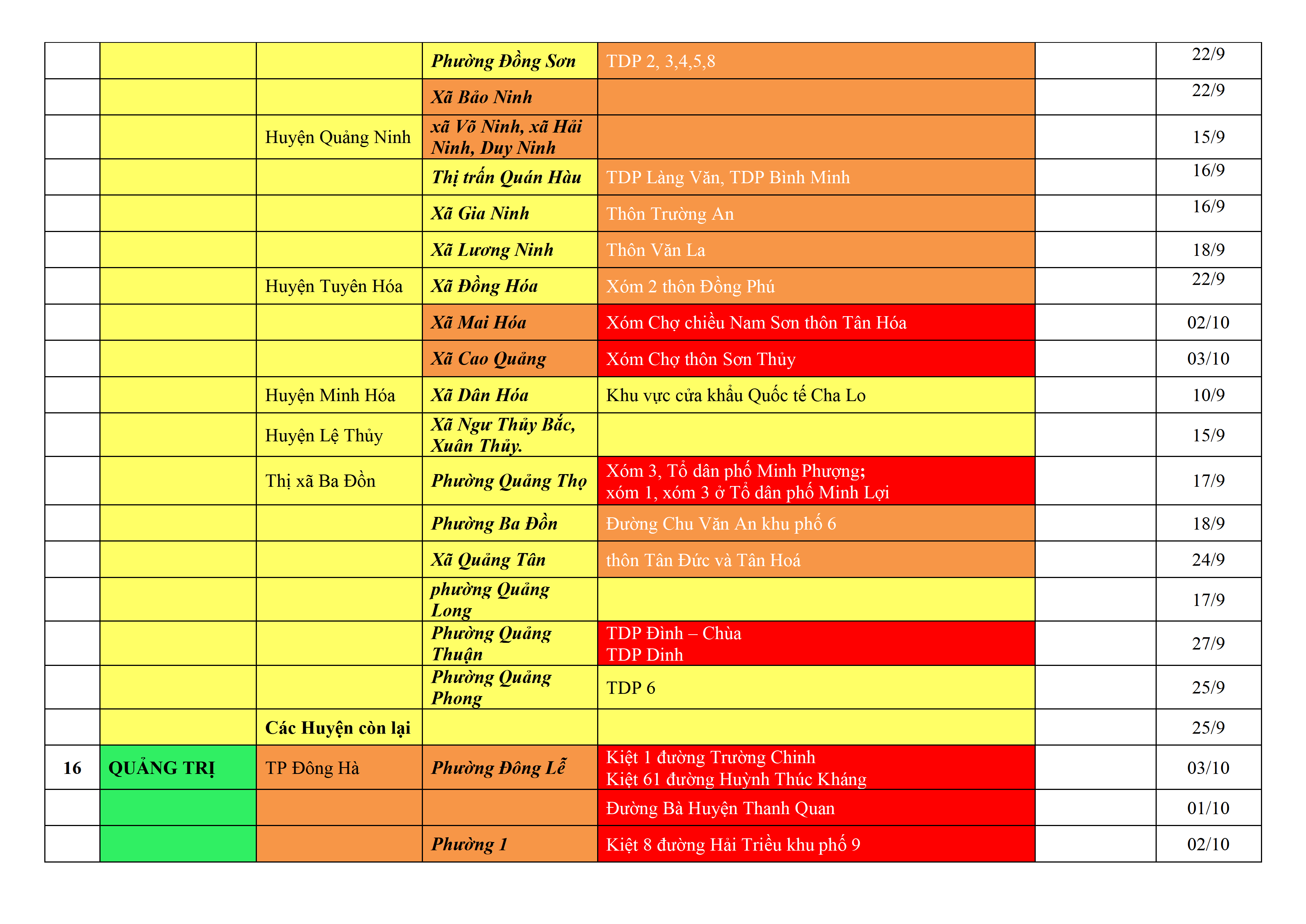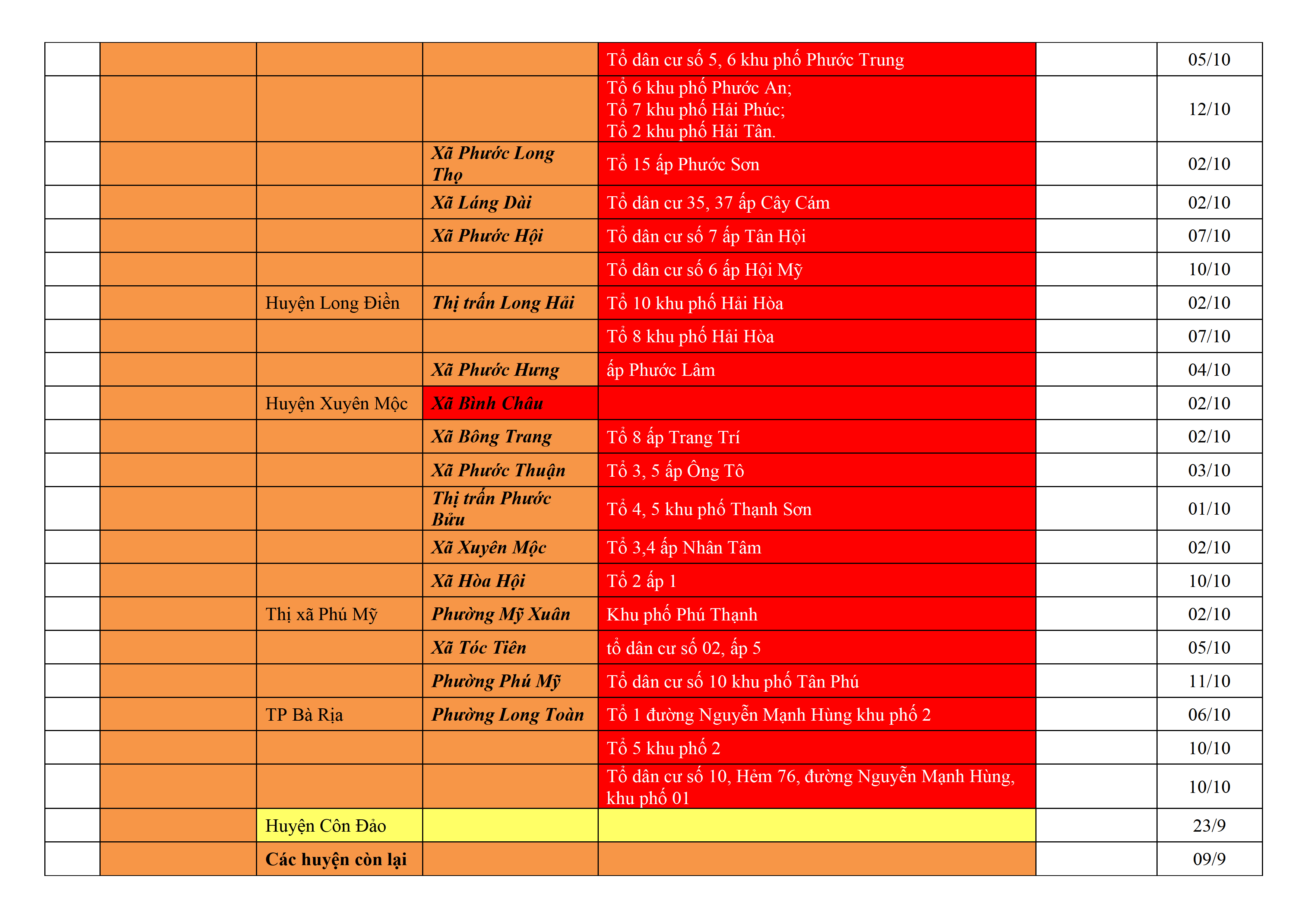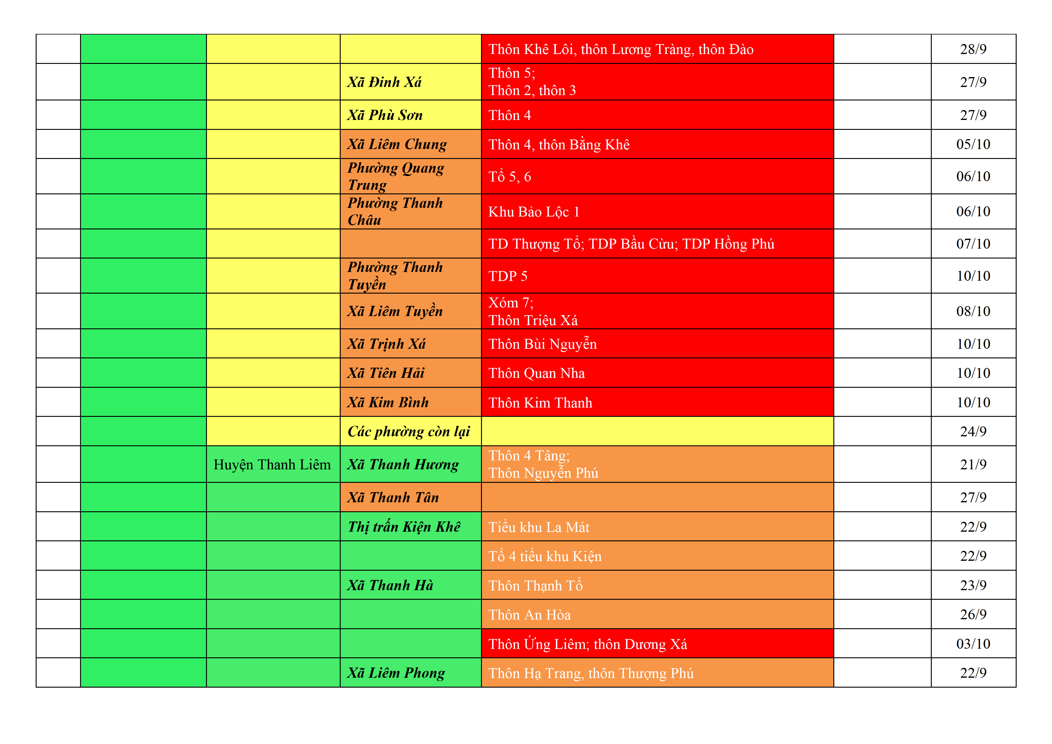 Lưu ý: các tỉnh, thành phố không có tên trong bảng màu, đi lại bình thường, tuân thủ các biện pháp phòng chống dịch theo chỉ đạo của Bộ Y tế; khai bào y tế, thực hiện nghiêm 5K.