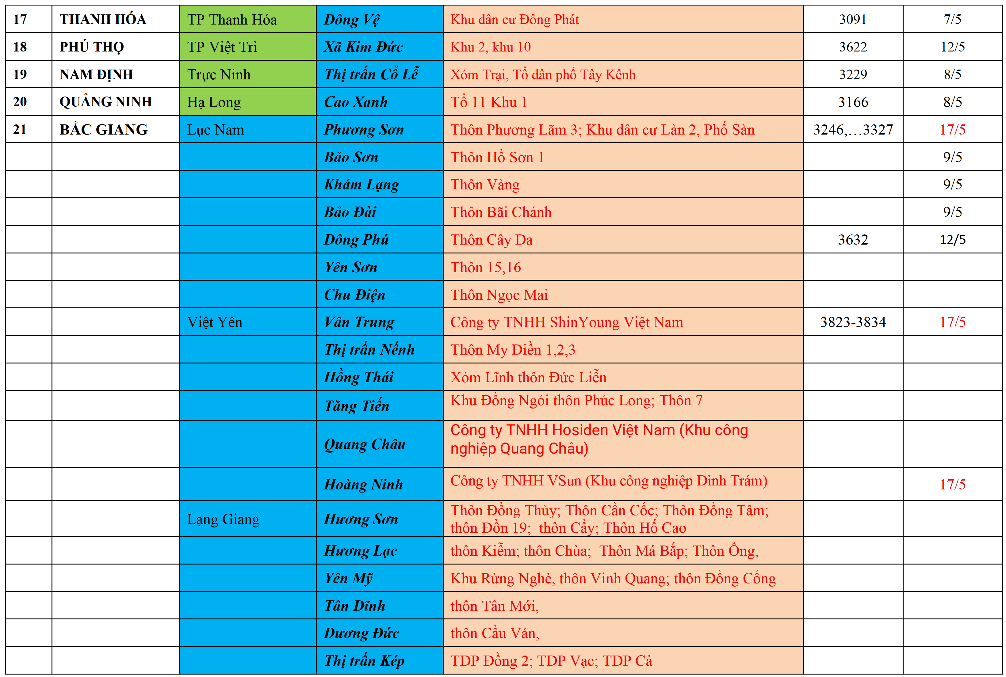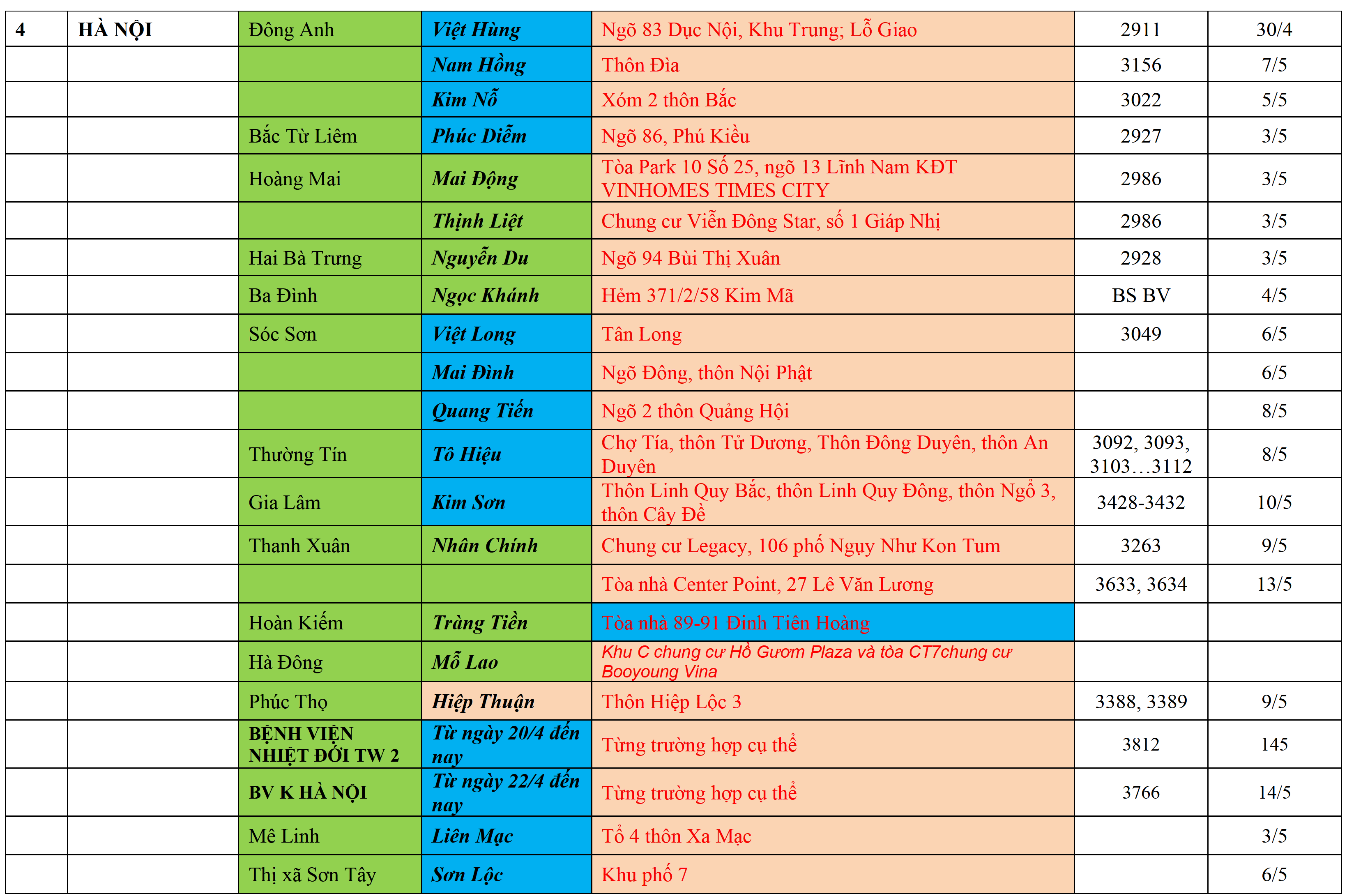 . Áp dụng các biện pháp Cách ly y tế đối với những người đến và trở về Hải Phòng, từ các vùng có ca bệnh tại cộng đồng theo Bảng trên.