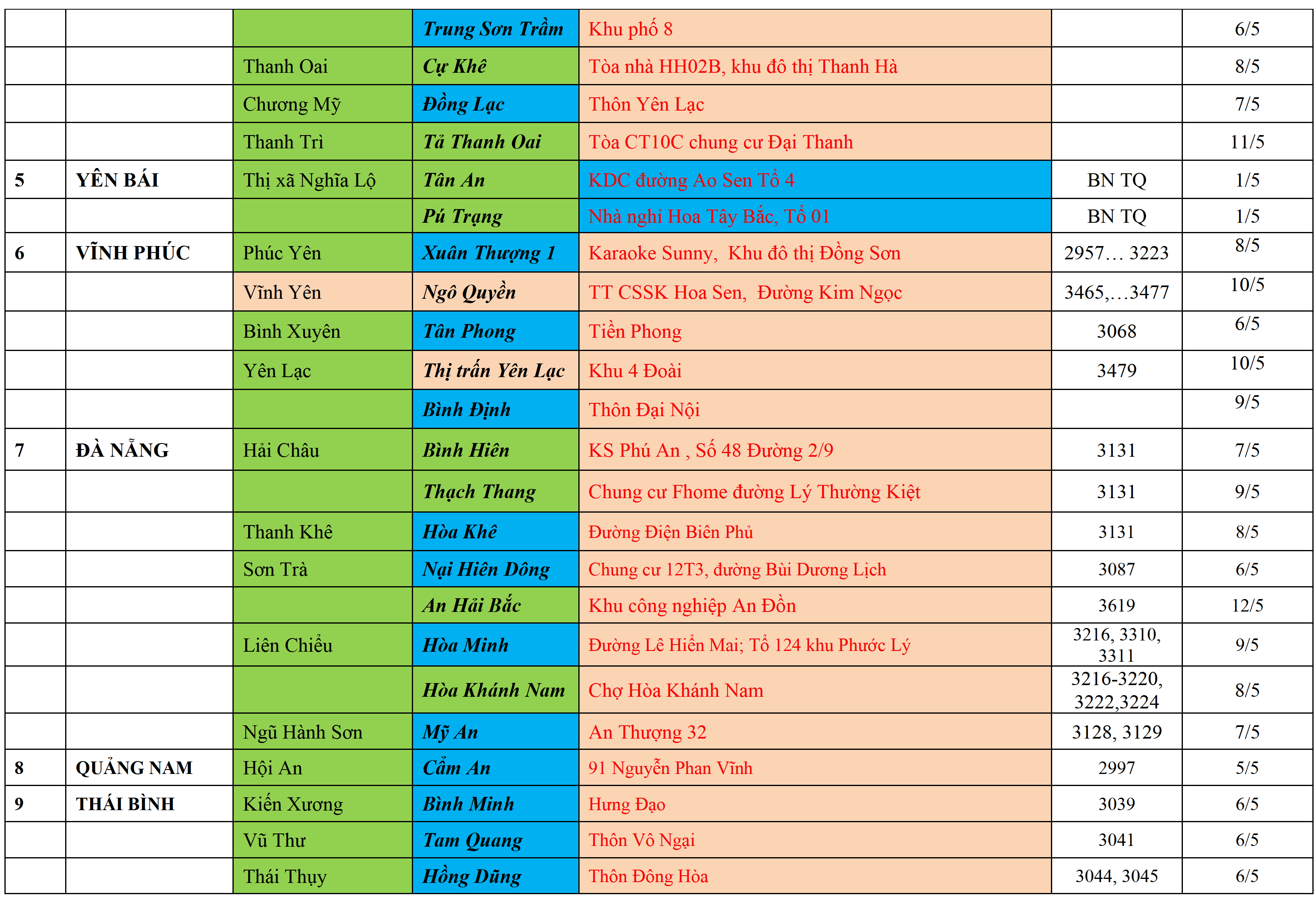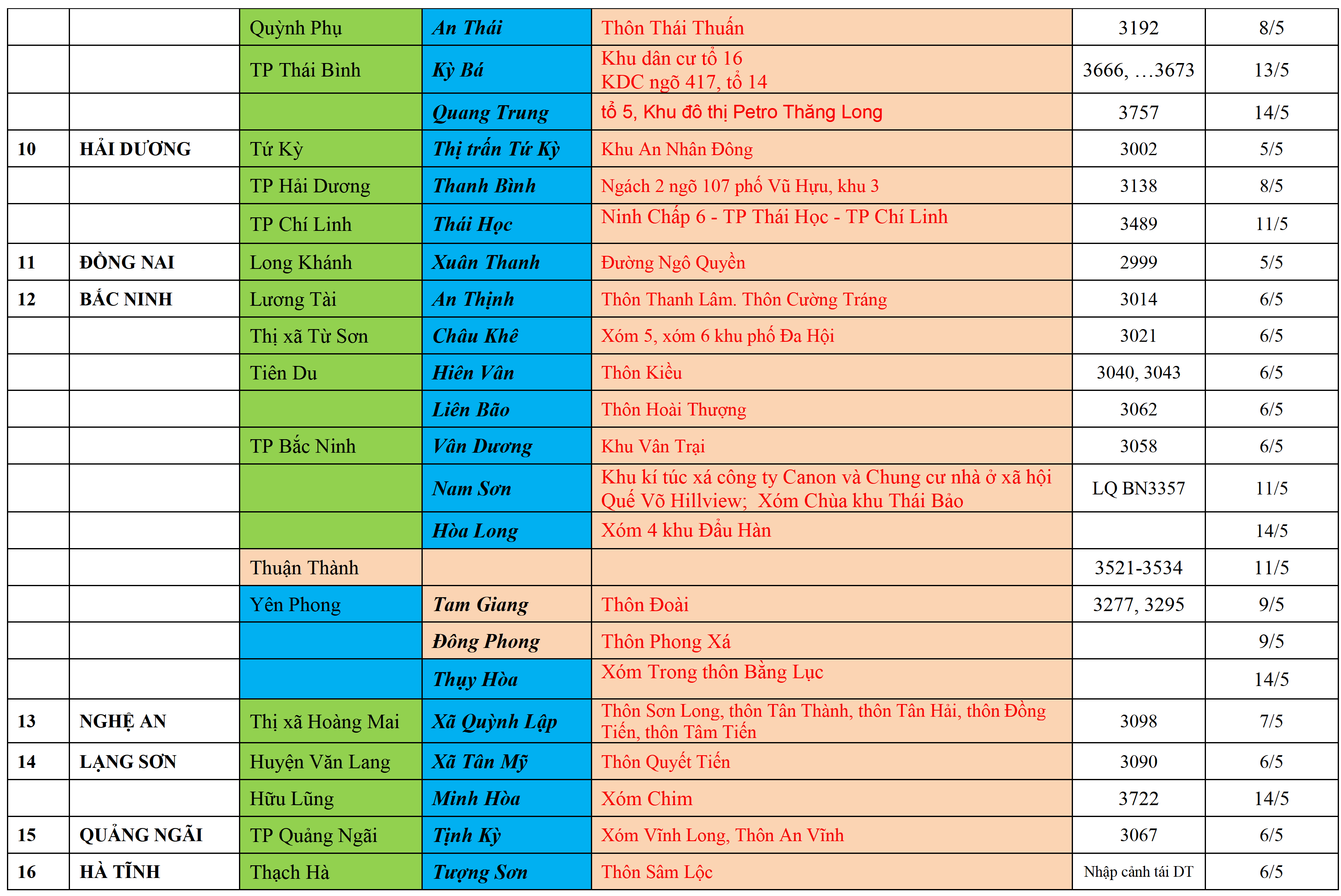 Cách ly tập trung theo MÀU CAM, Cách ly tại nhà theo MÀU XANH NƯỚC BIỂN, Khai báo, giám sát y tế theo MÀU XANH MẠ,