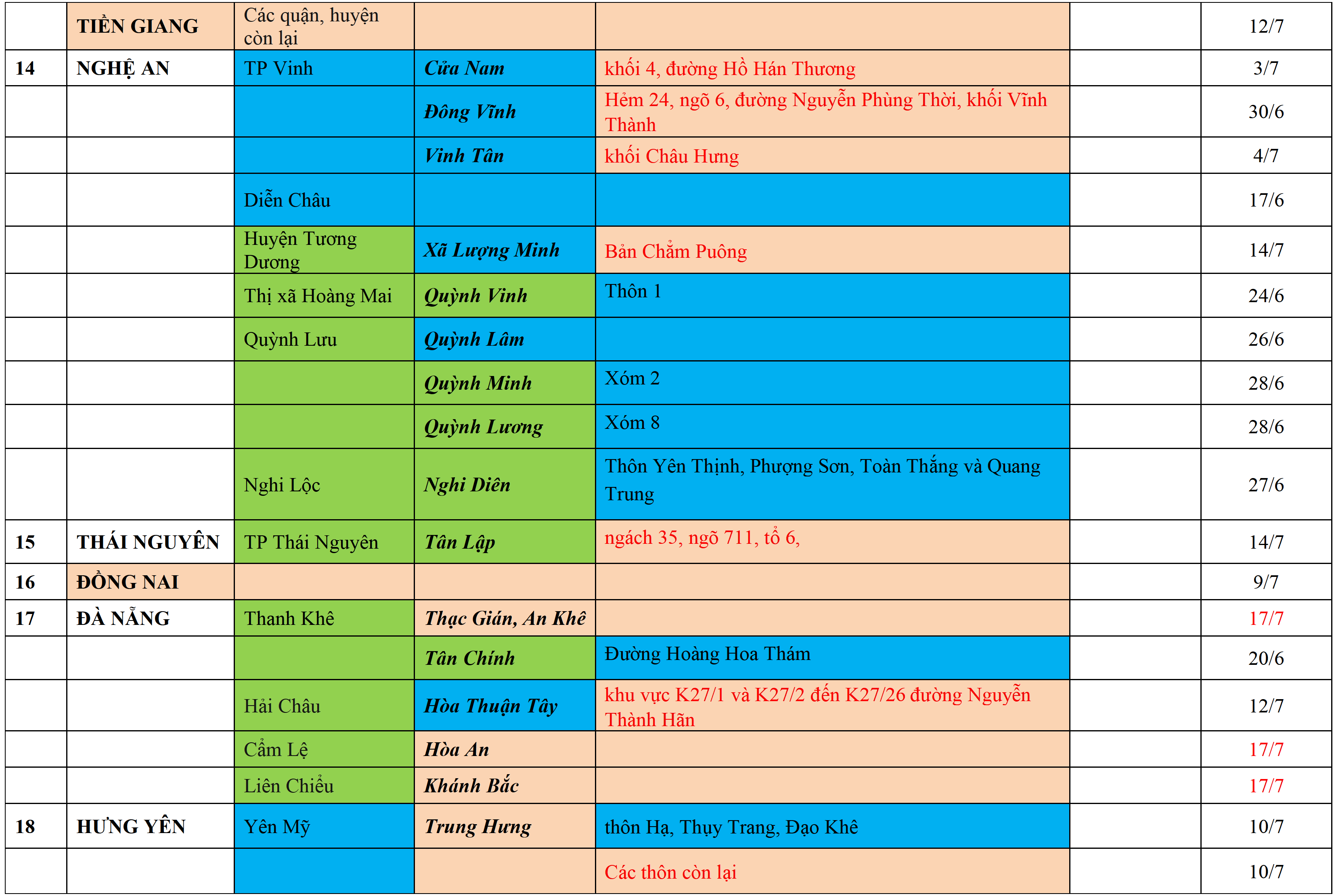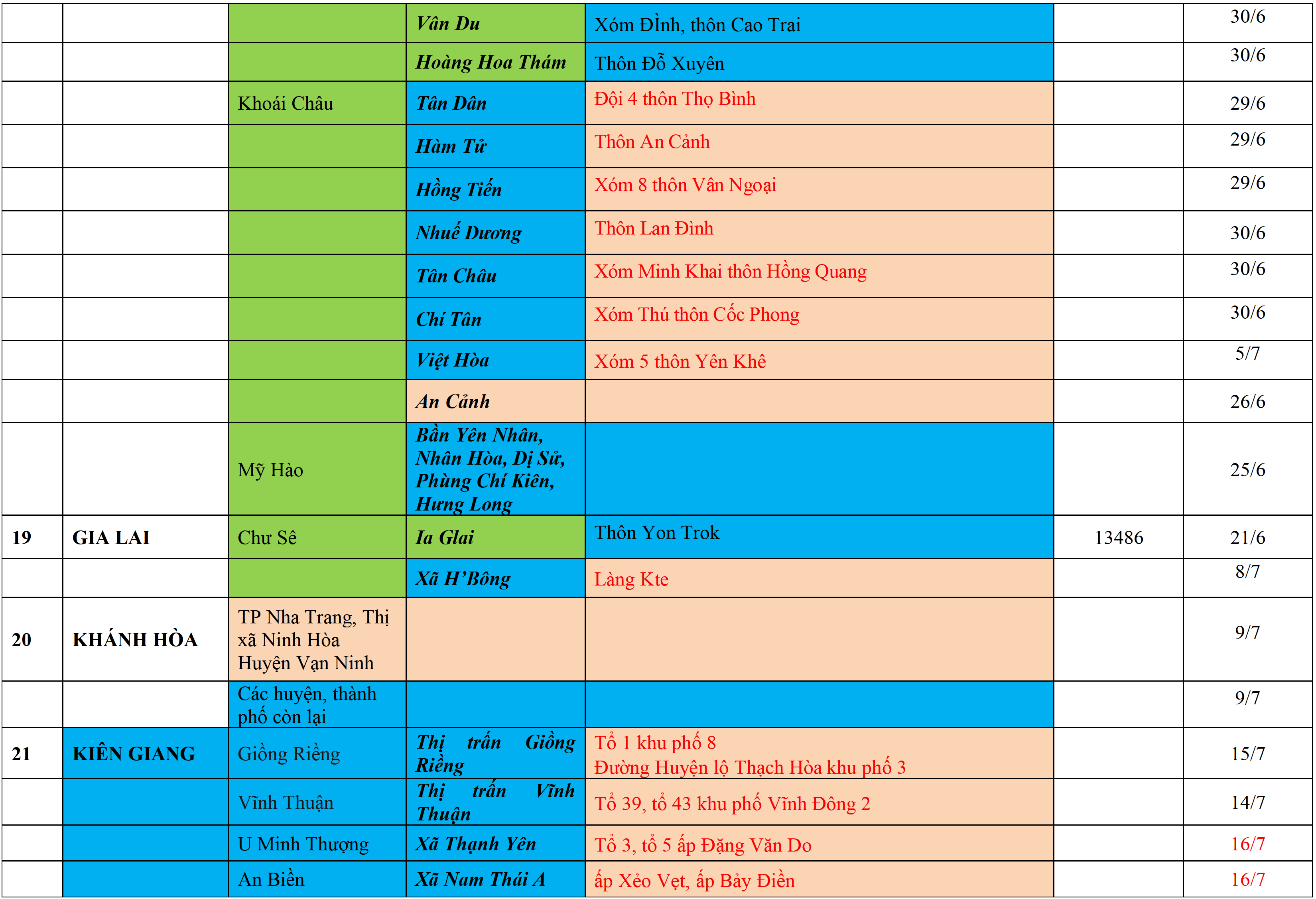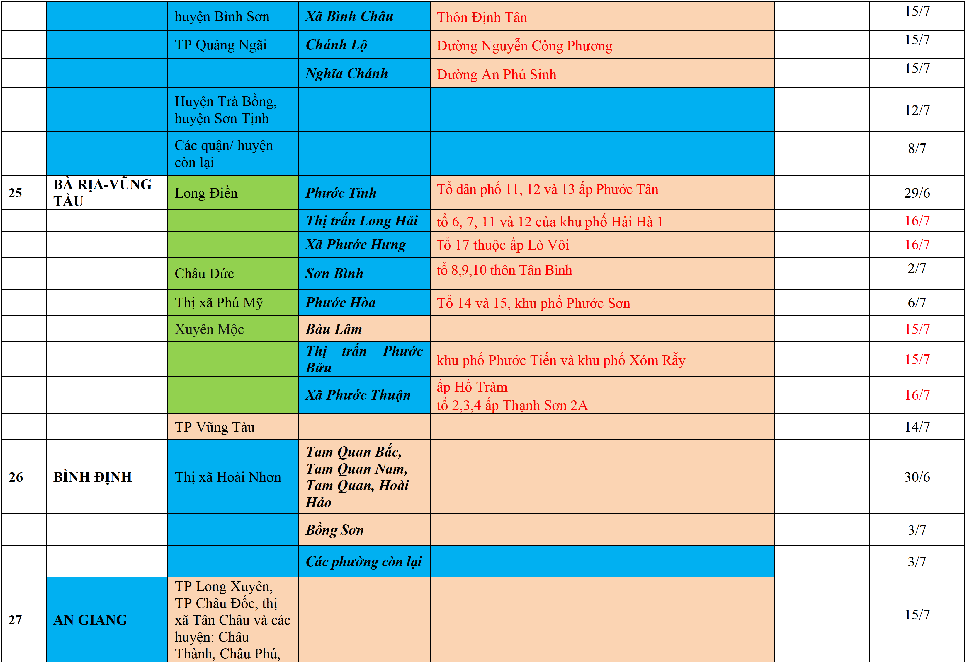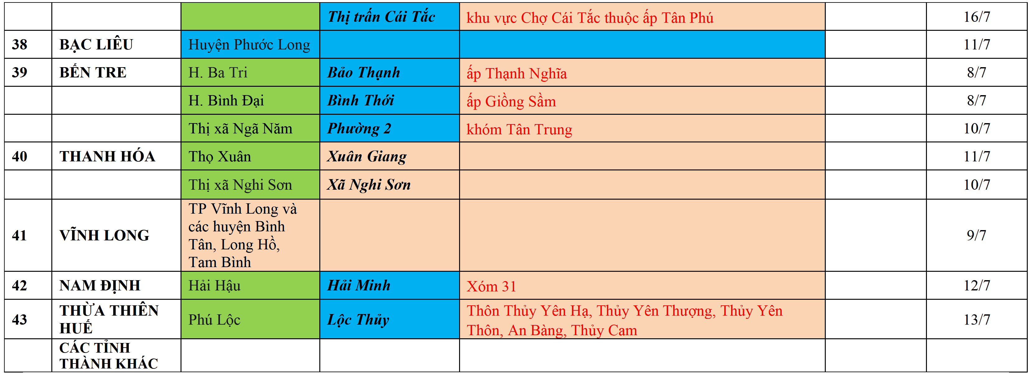 . Áp dụng biện pháp tương ứng màu sắc ô cột theo thôn xóm; xã phường; quận huyện; tỉnh thành phố. Cách ly y tế dựa vào việc tiếp xúc, đi đến địa điểm và nơi cư trú có ca bệnh, theo Thông báo của Bộ Y tế, các tỉnh thành phố.