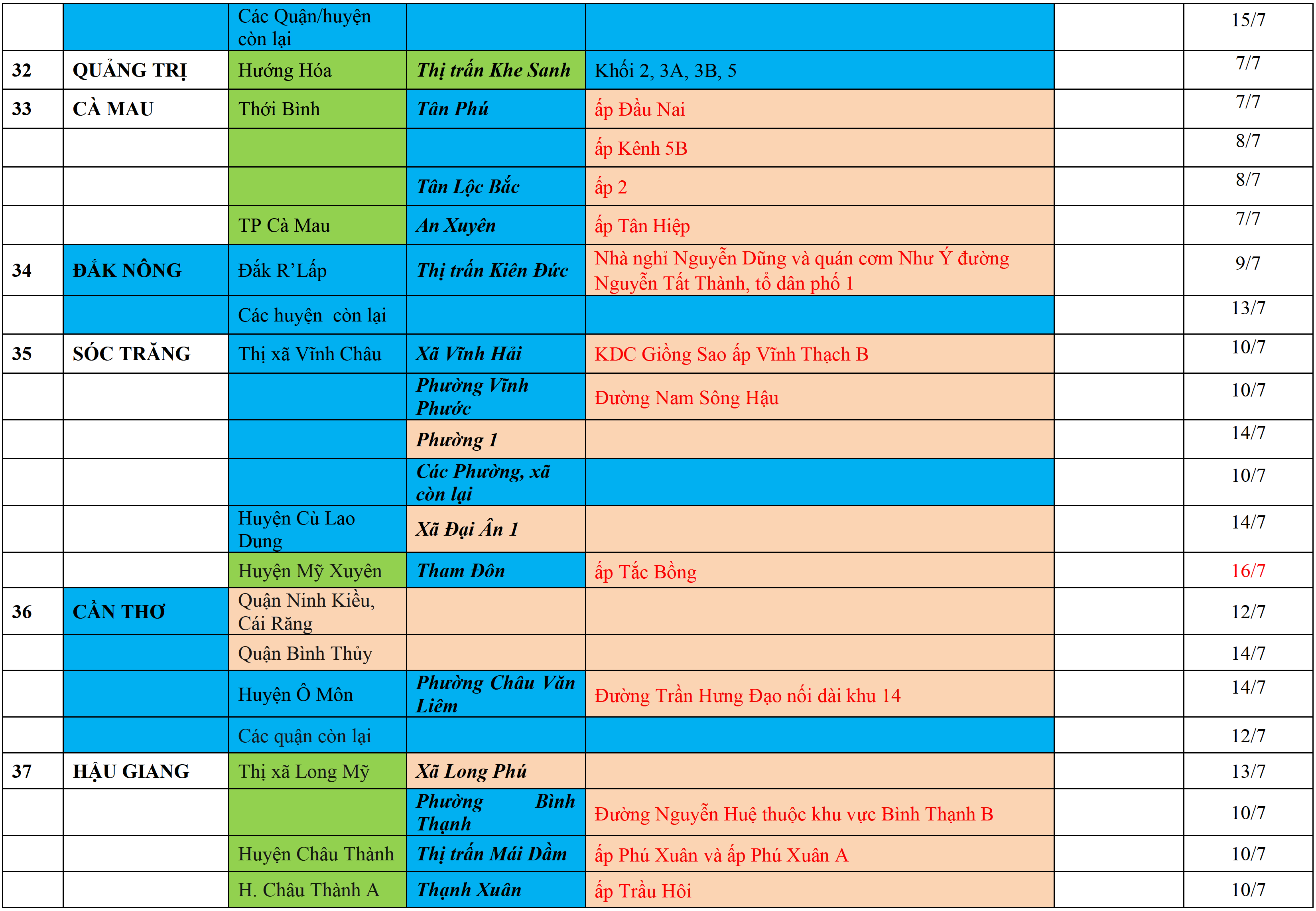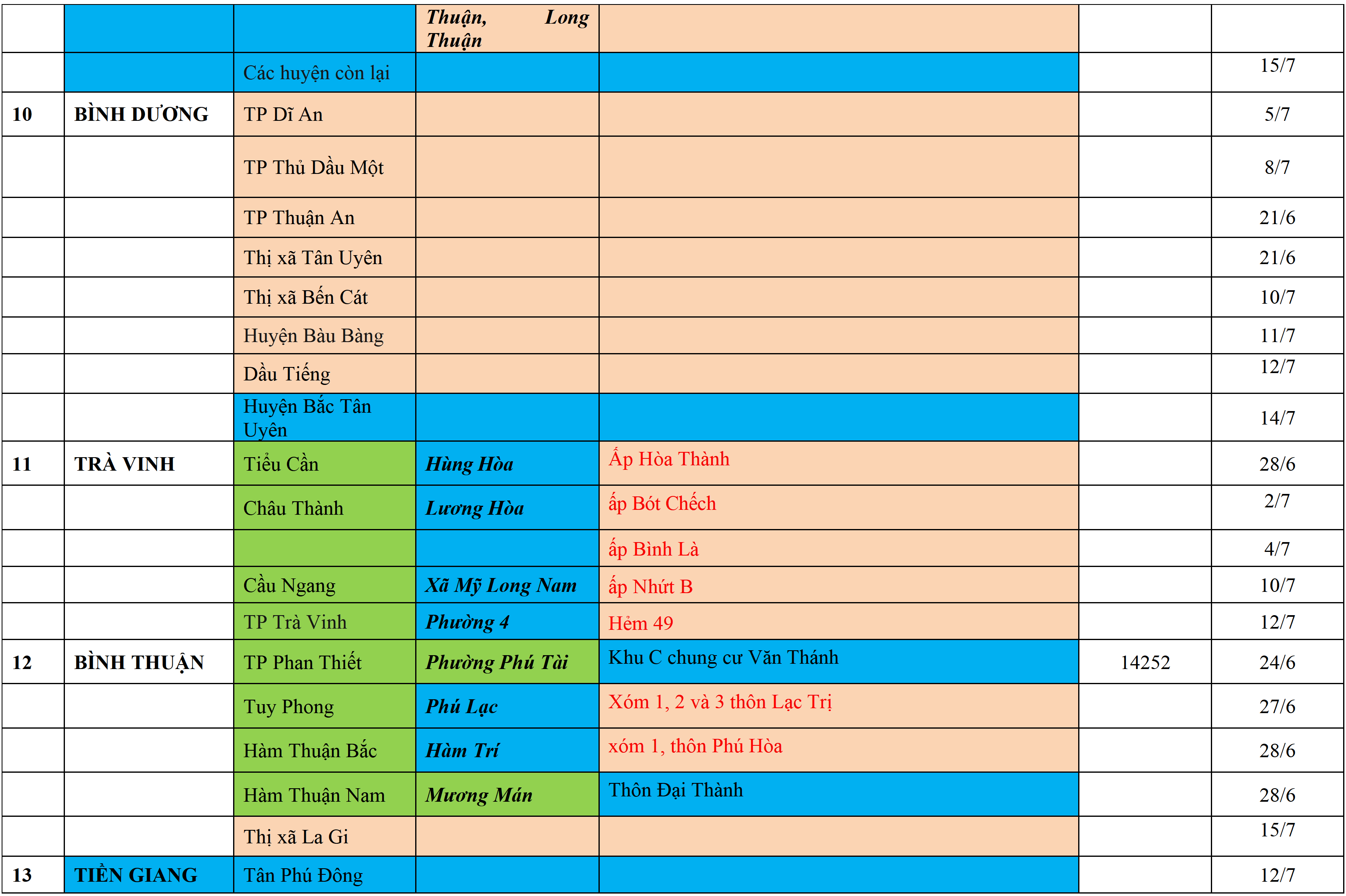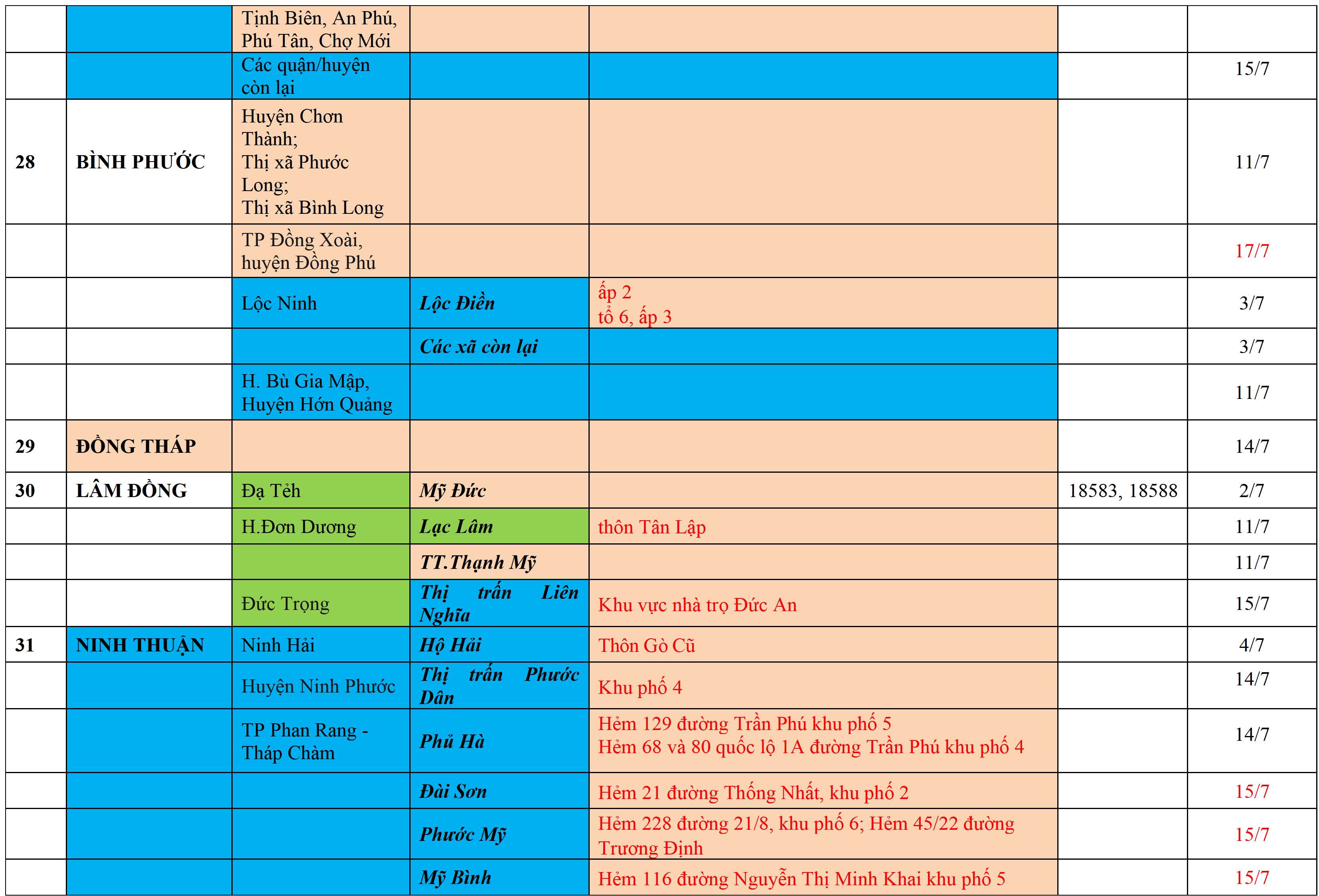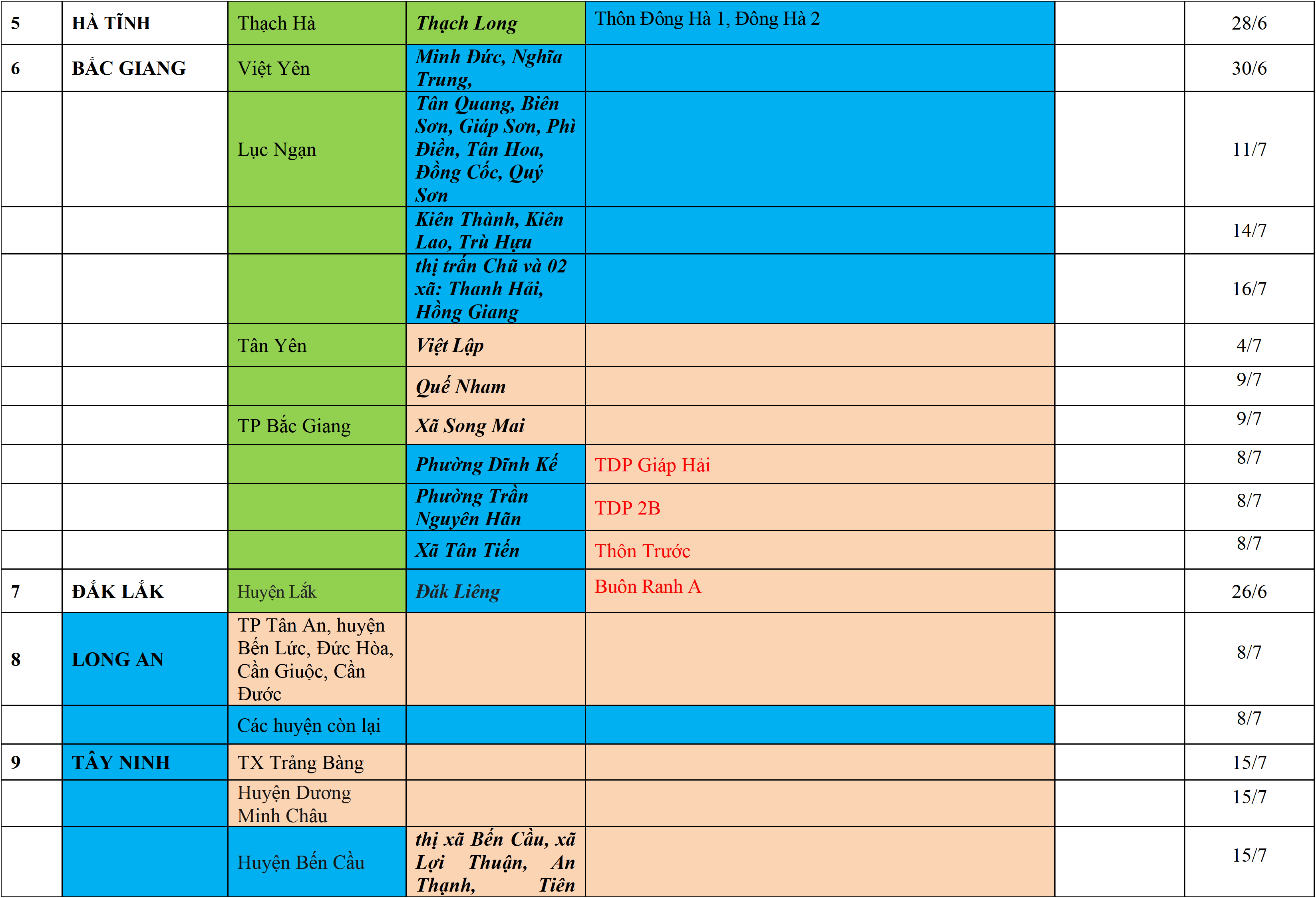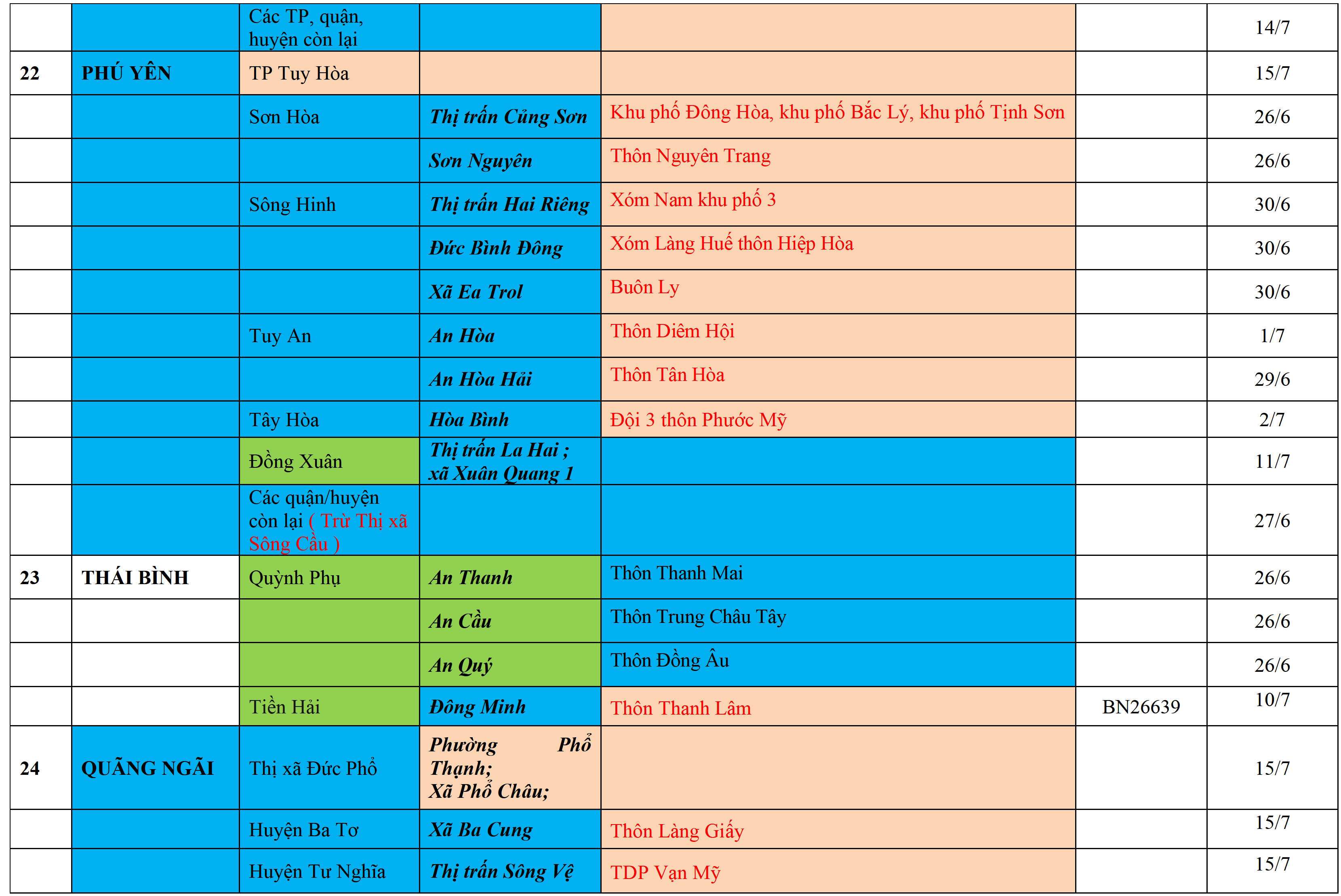 . Áp dụng biện pháp tương ứng màu sắc ô cột theo thôn xóm; xã phường; quận huyện; tỉnh thành phố. Cách ly y tế dựa vào việc tiếp xúc, đi đến địa điểm và nơi cư trú có ca bệnh, theo Thông báo của Bộ Y tế, các tỉnh thành phố.
