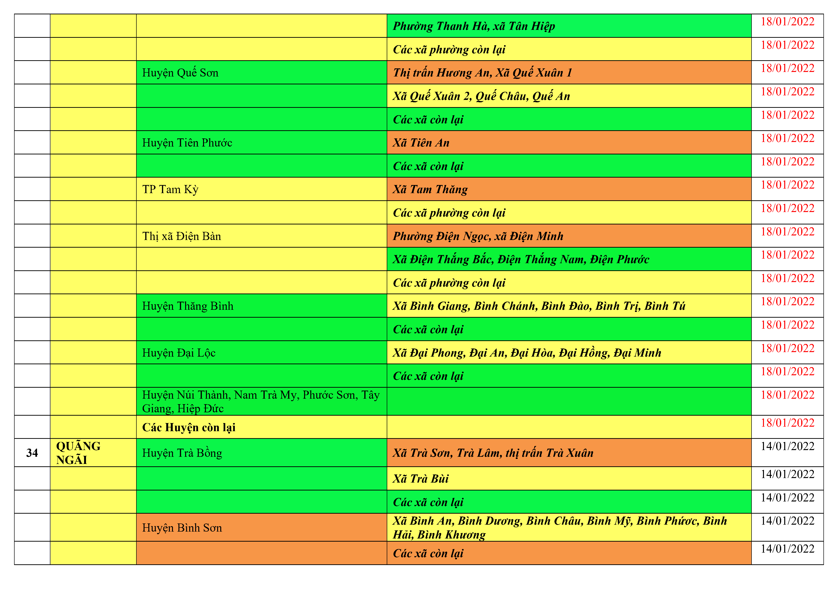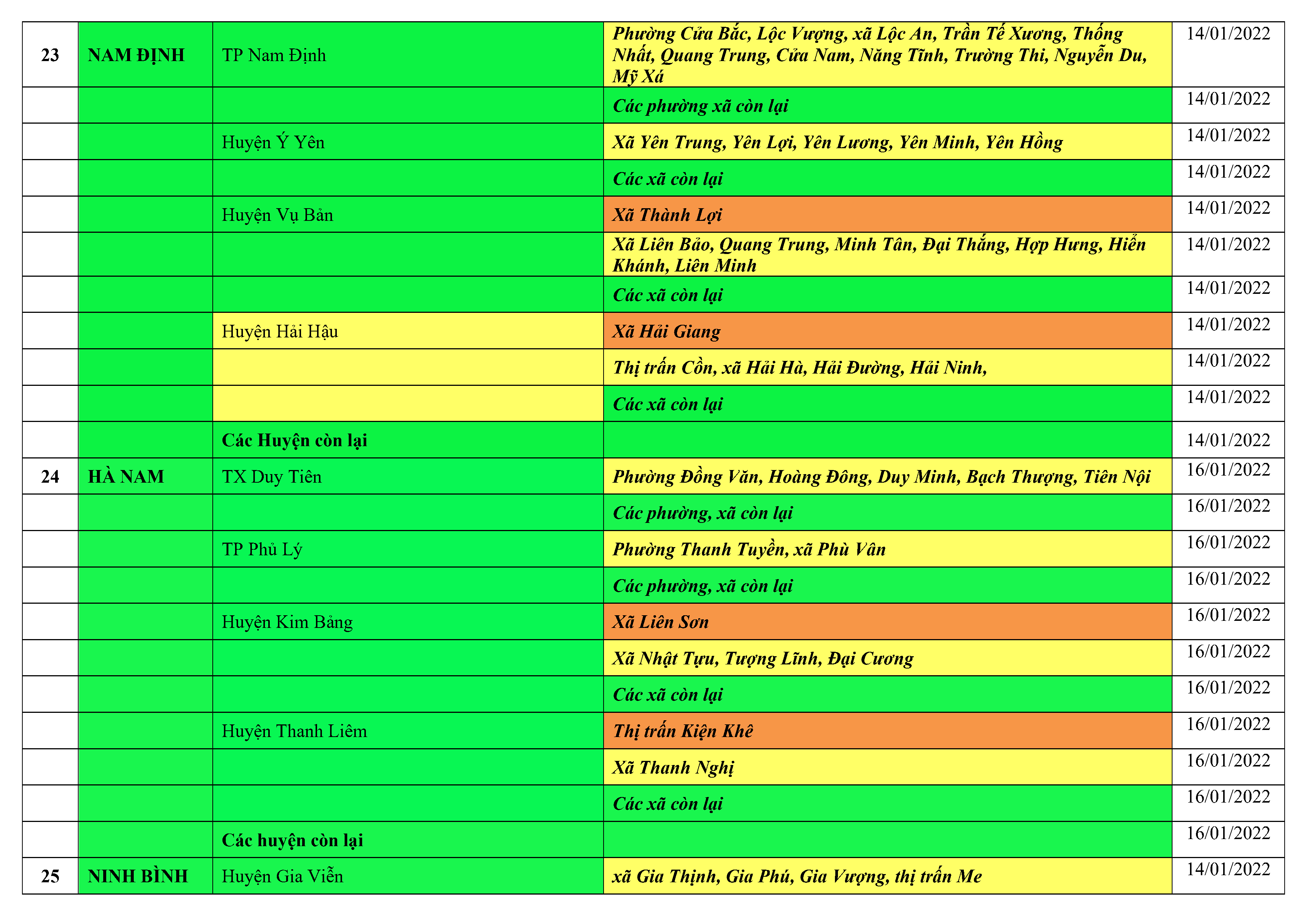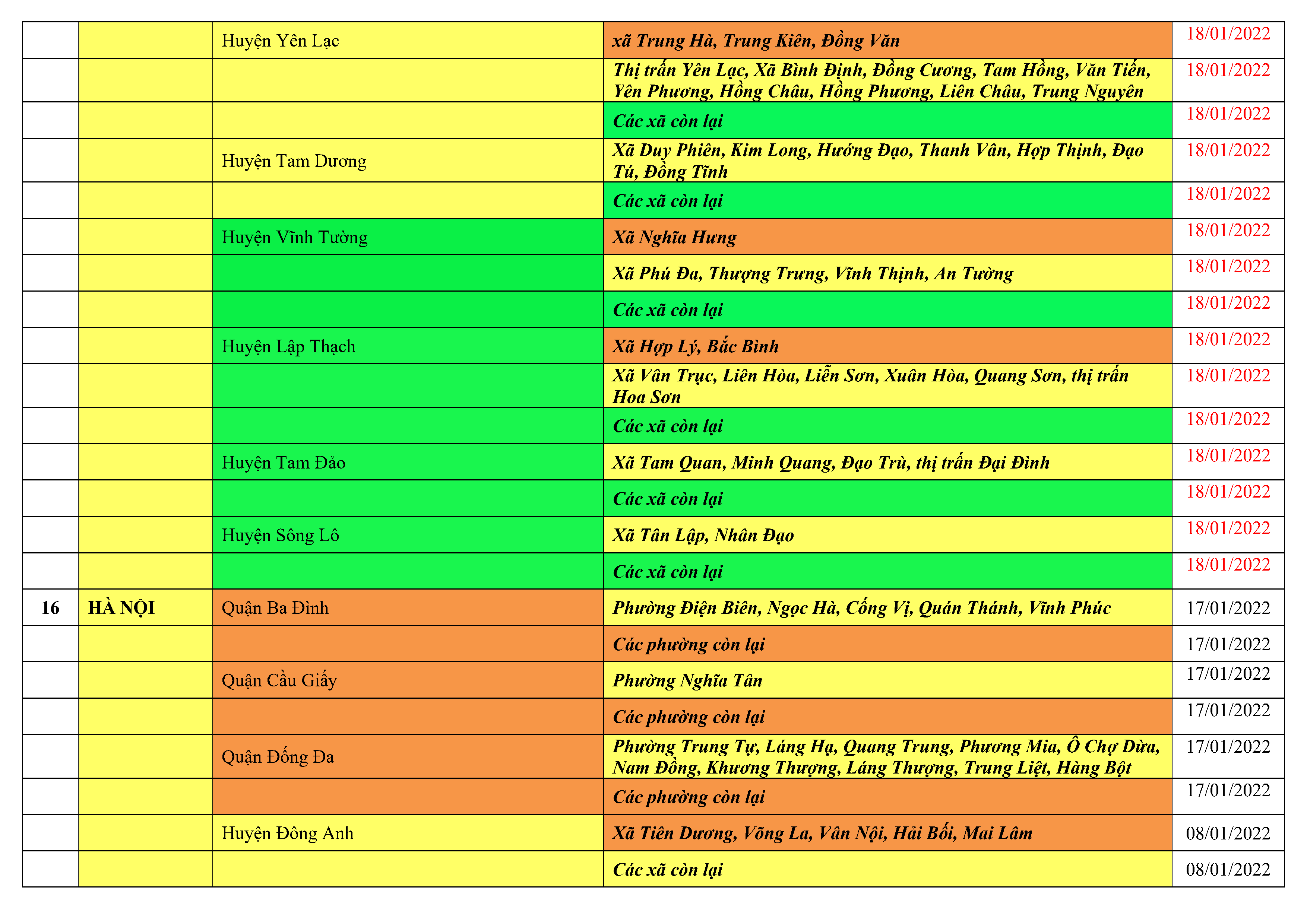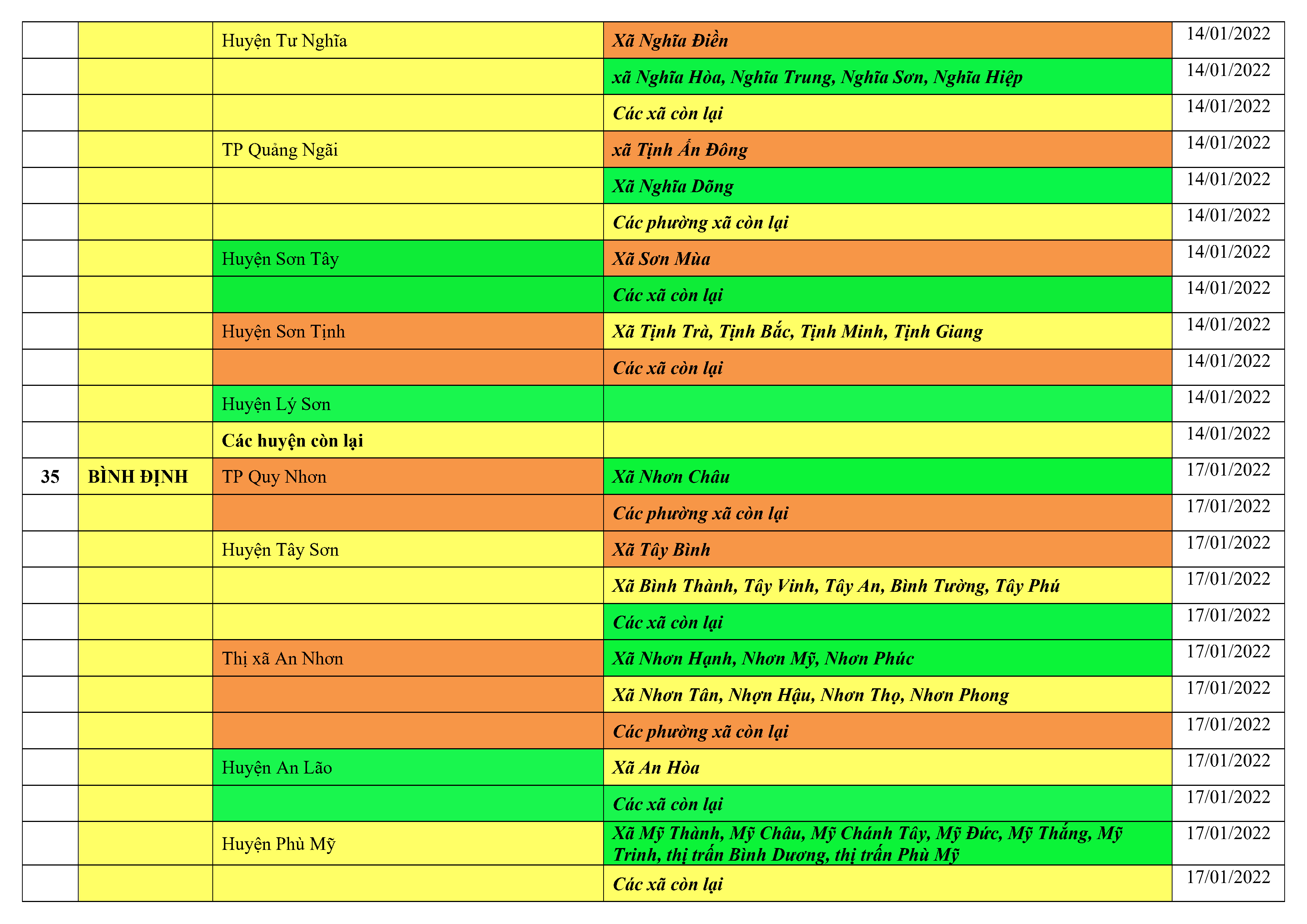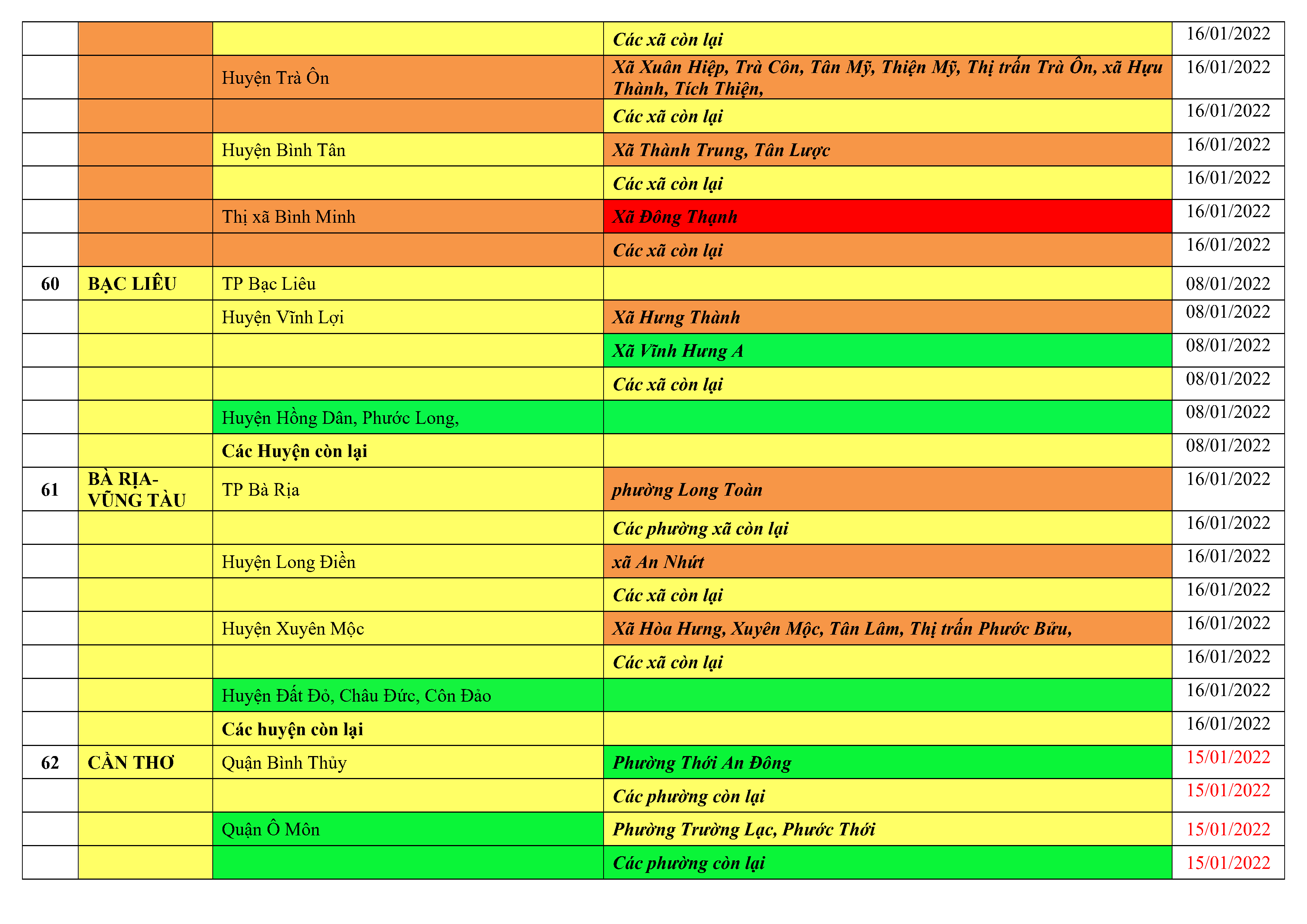 Áp dụng biện pháp tương ứng màu sắc ô cột theo thôn xóm; xã phường; quận huyện; tỉnh thành phố. Cách ly y tế dựa vào việc tiếp xúc, đi đến địa điểm và nơi cư trú có ca bệnh, theo Thông báo của Bộ Y tế, các tỉnh thành phố.