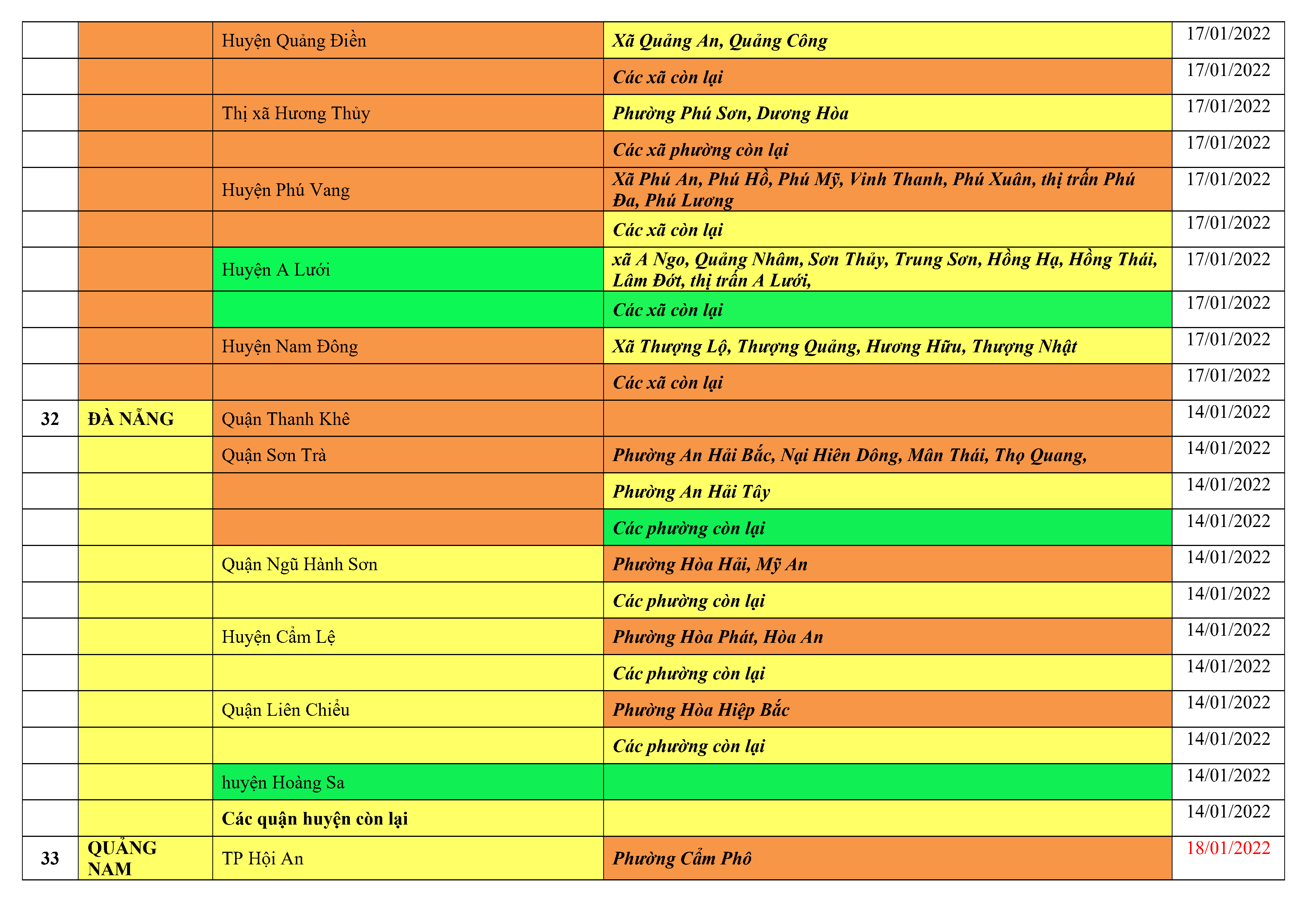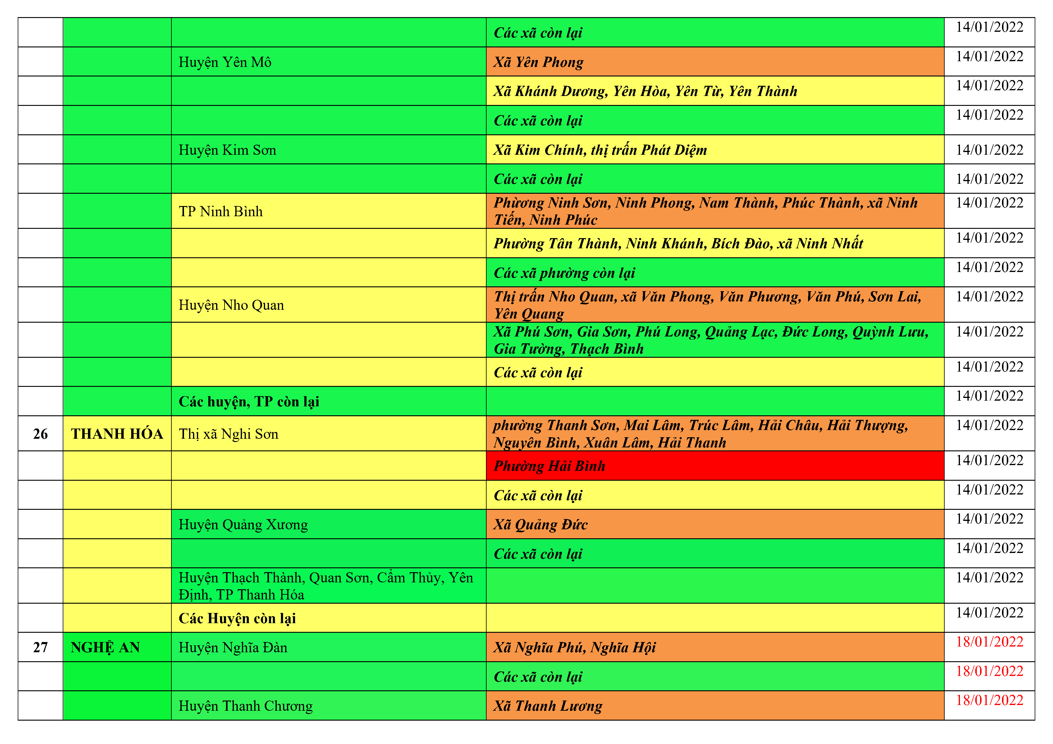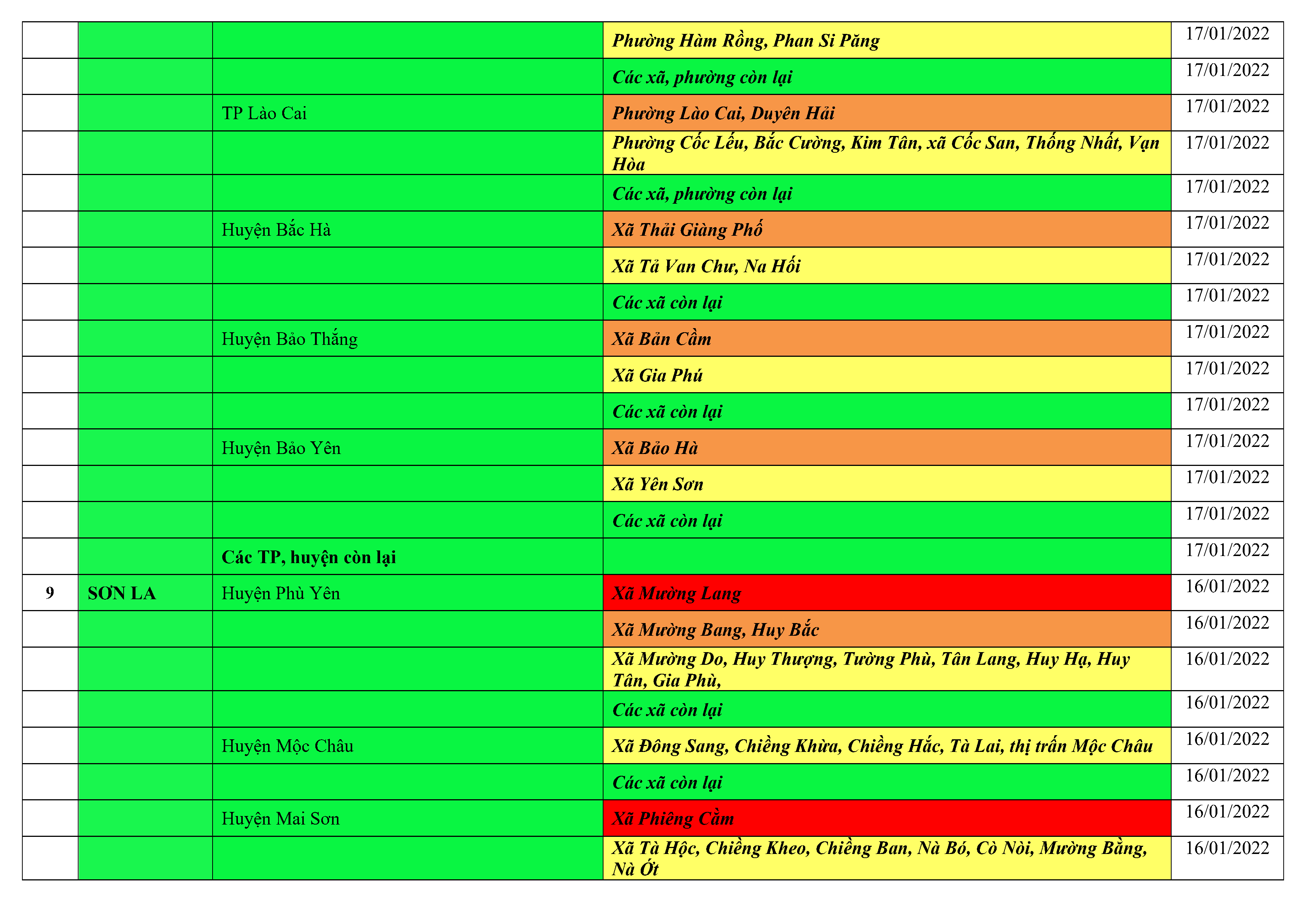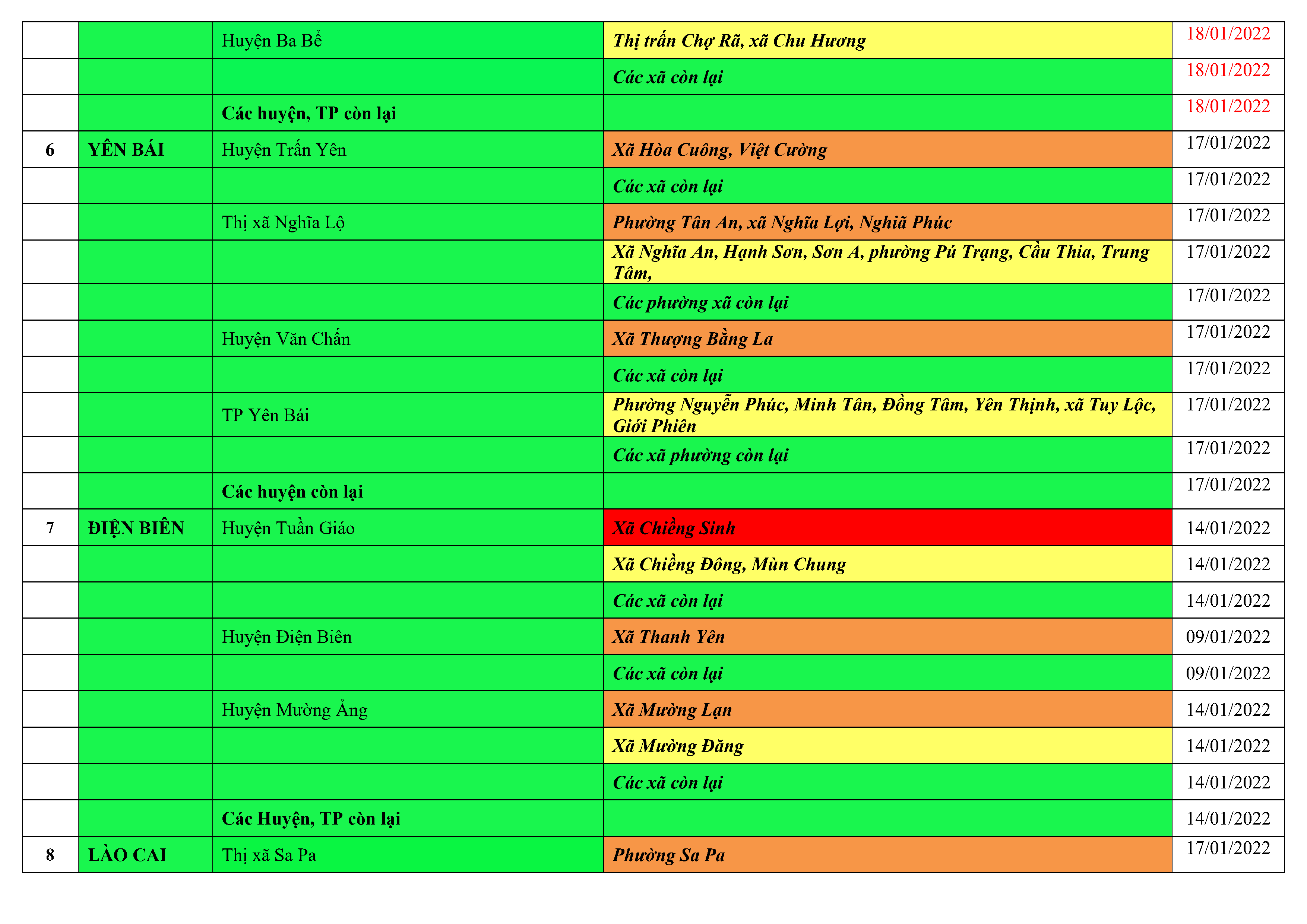 Áp dụng biện pháp tương ứng màu sắc ô cột theo thôn xóm; xã phường; quận huyện; tỉnh thành phố. Cách ly y tế dựa vào việc tiếp xúc, đi đến địa điểm và nơi cư trú có ca bệnh, theo Thông báo của Bộ Y tế, các tỉnh thành phố.