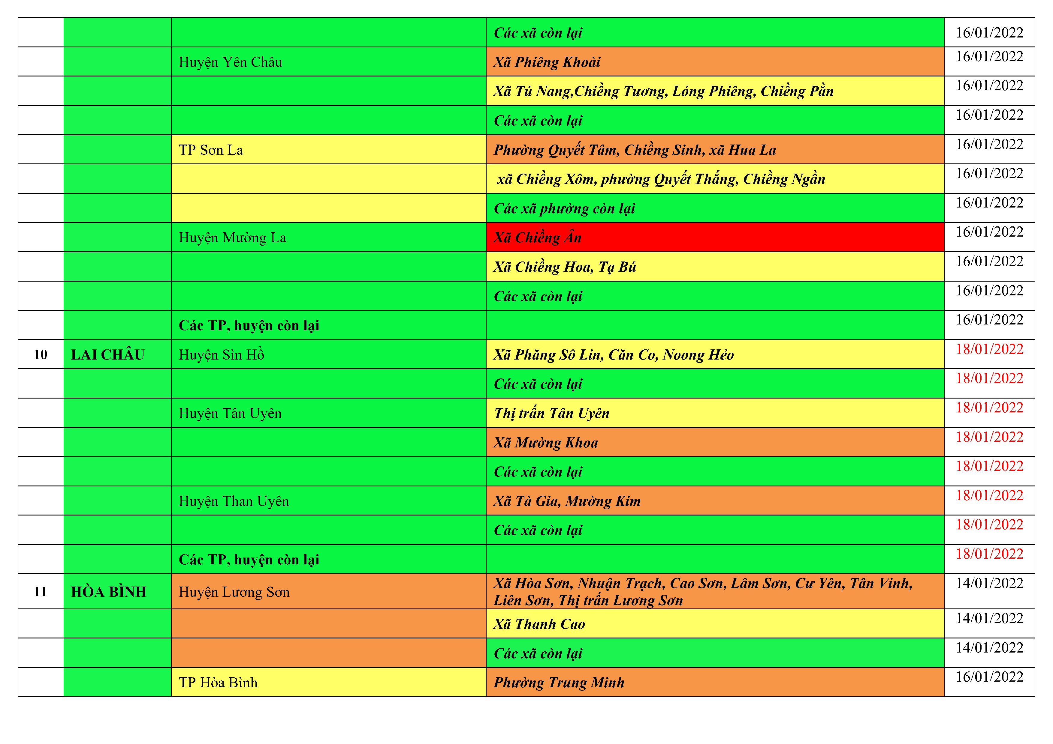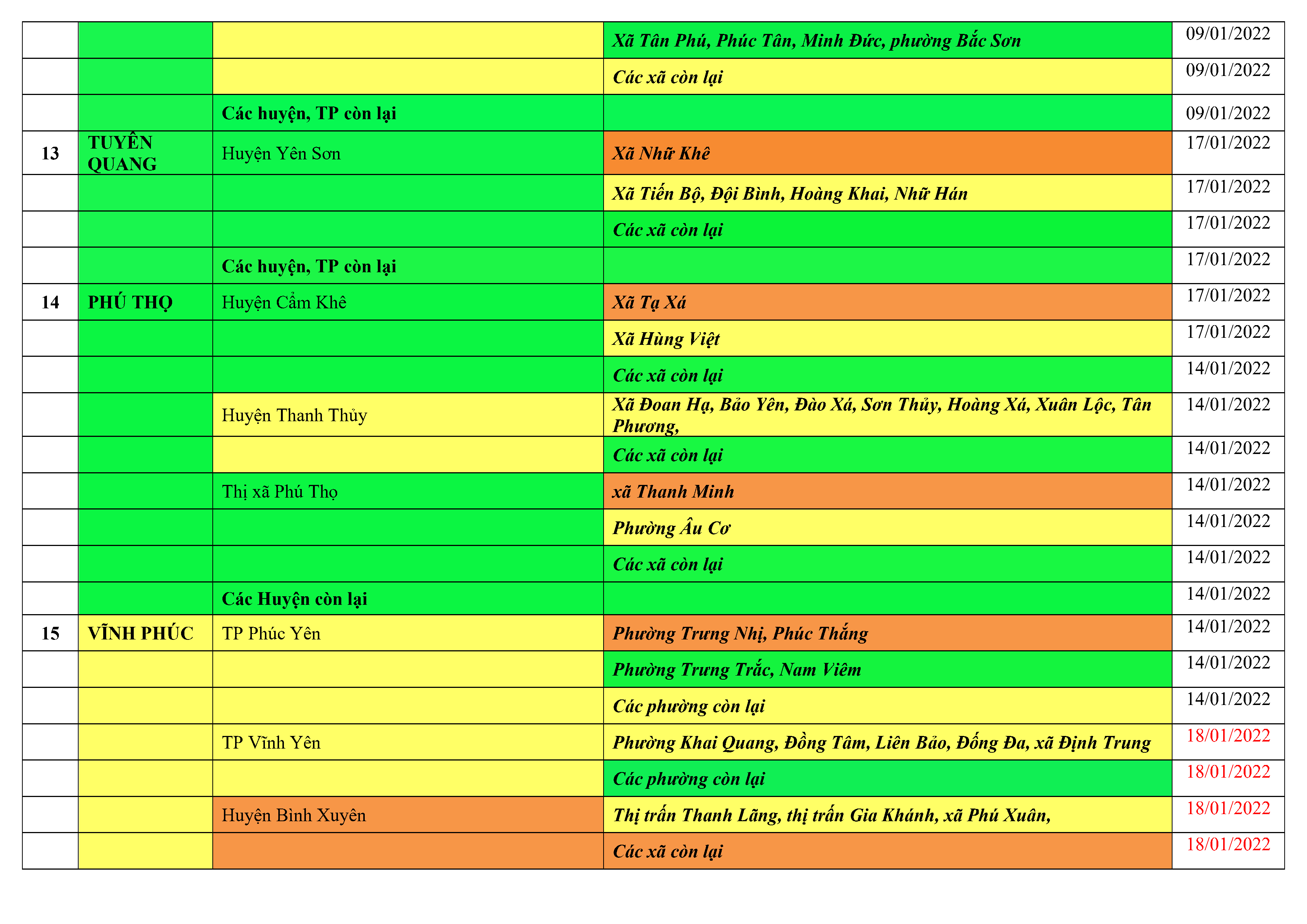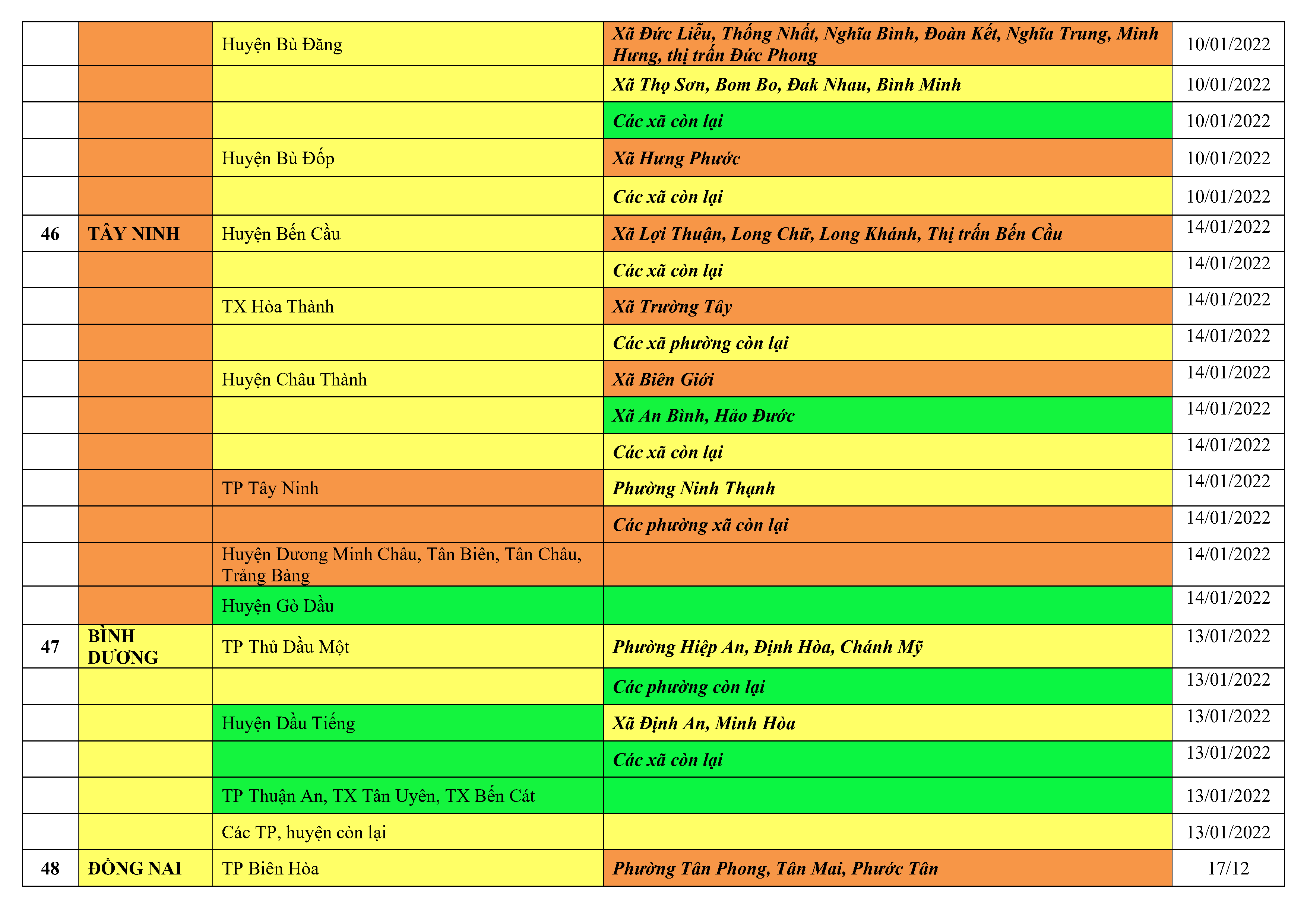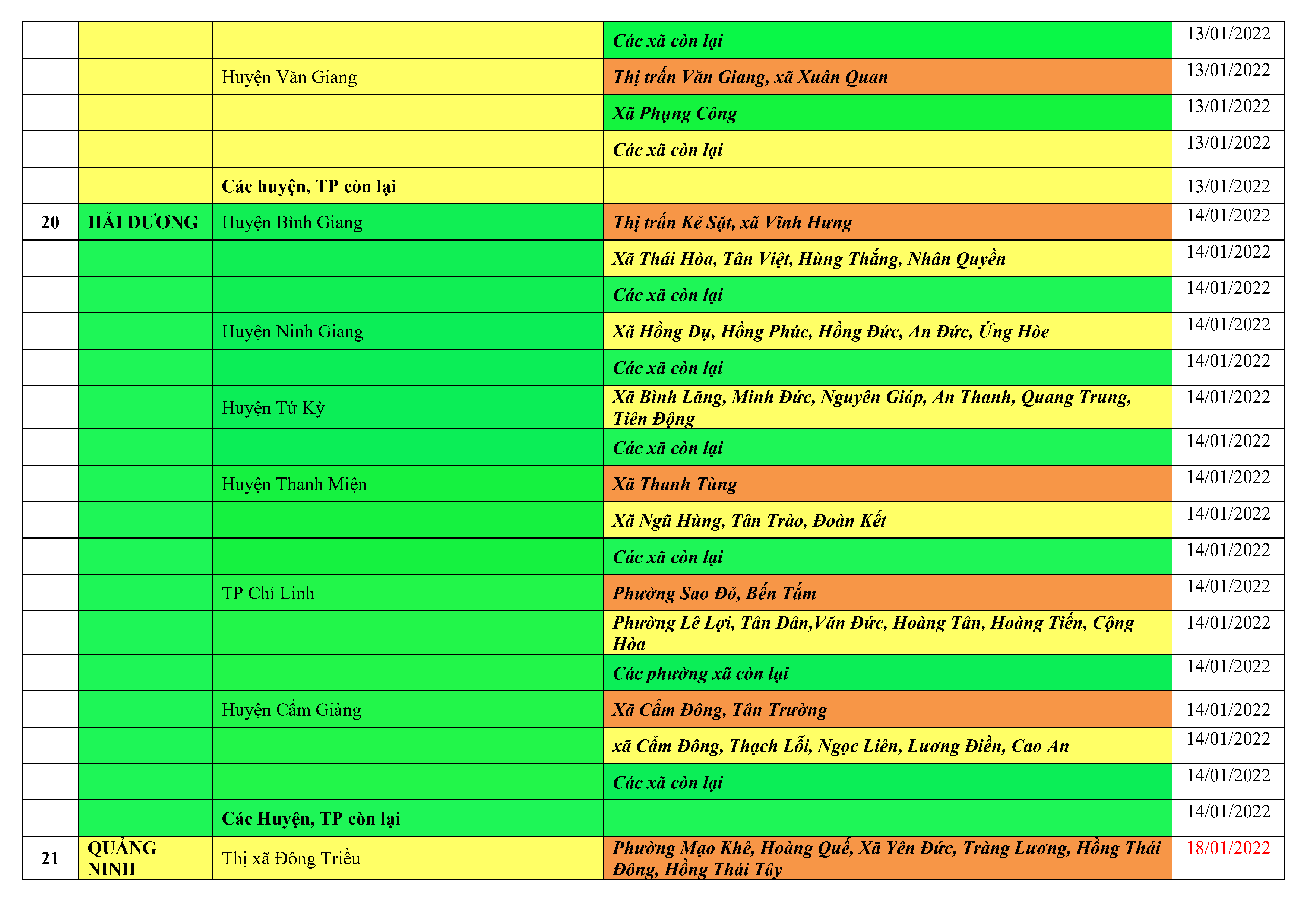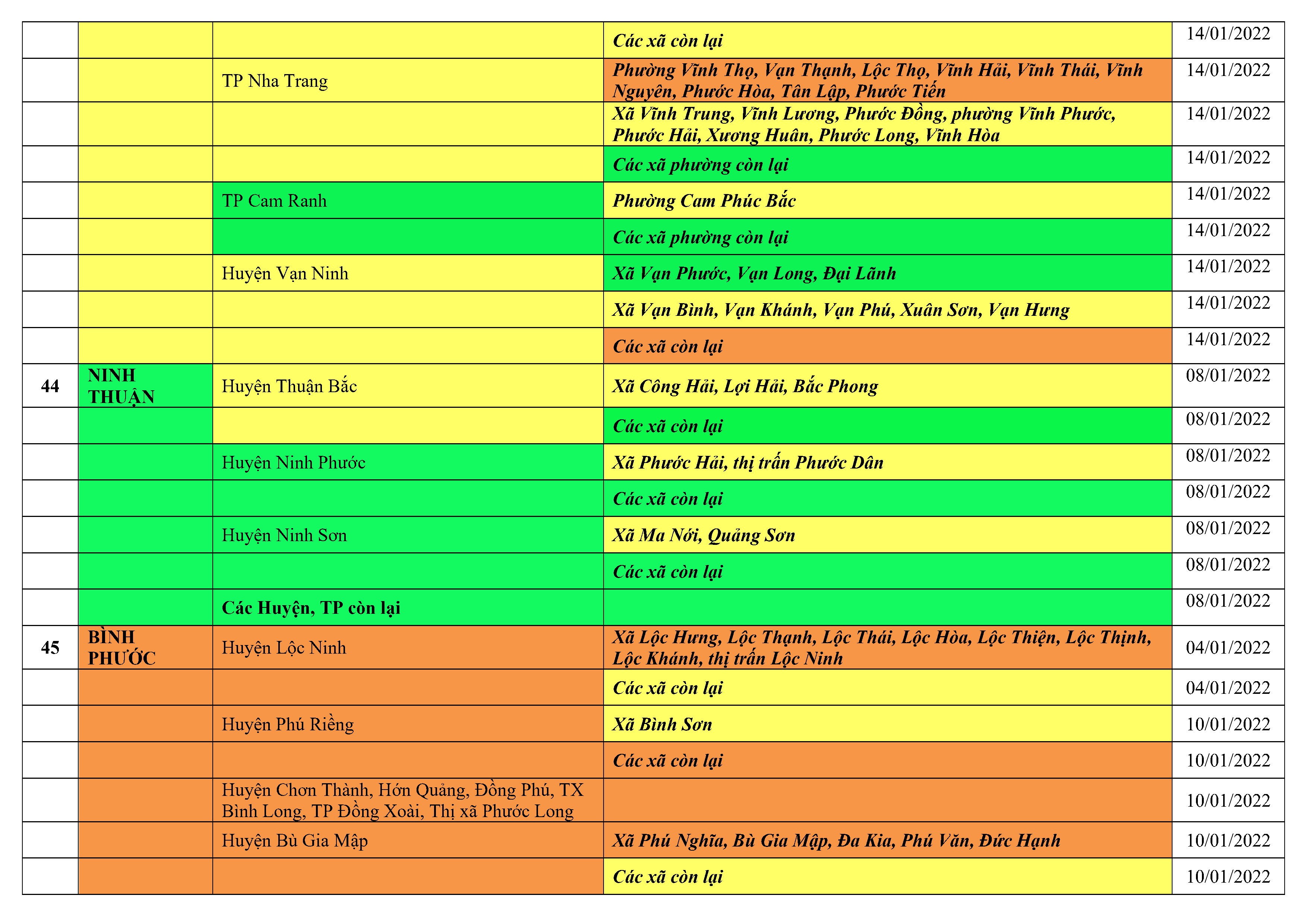 Áp dụng biện pháp tương ứng màu sắc ô cột theo thôn xóm; xã phường; quận huyện; tỉnh thành phố. Cách ly y tế dựa vào việc tiếp xúc, đi đến địa điểm và nơi cư trú có ca bệnh, theo Thông báo của Bộ Y tế, các tỉnh thành phố.