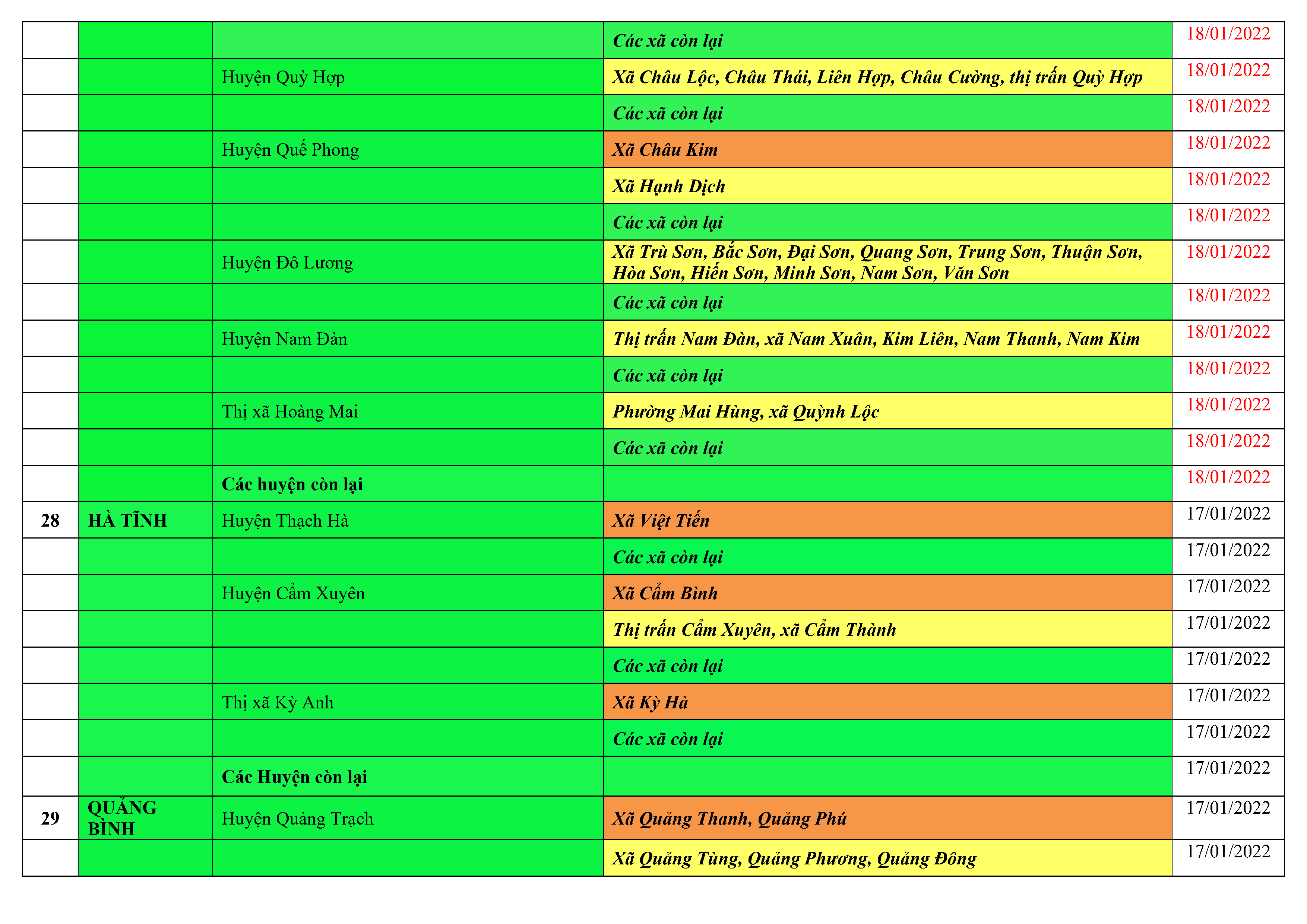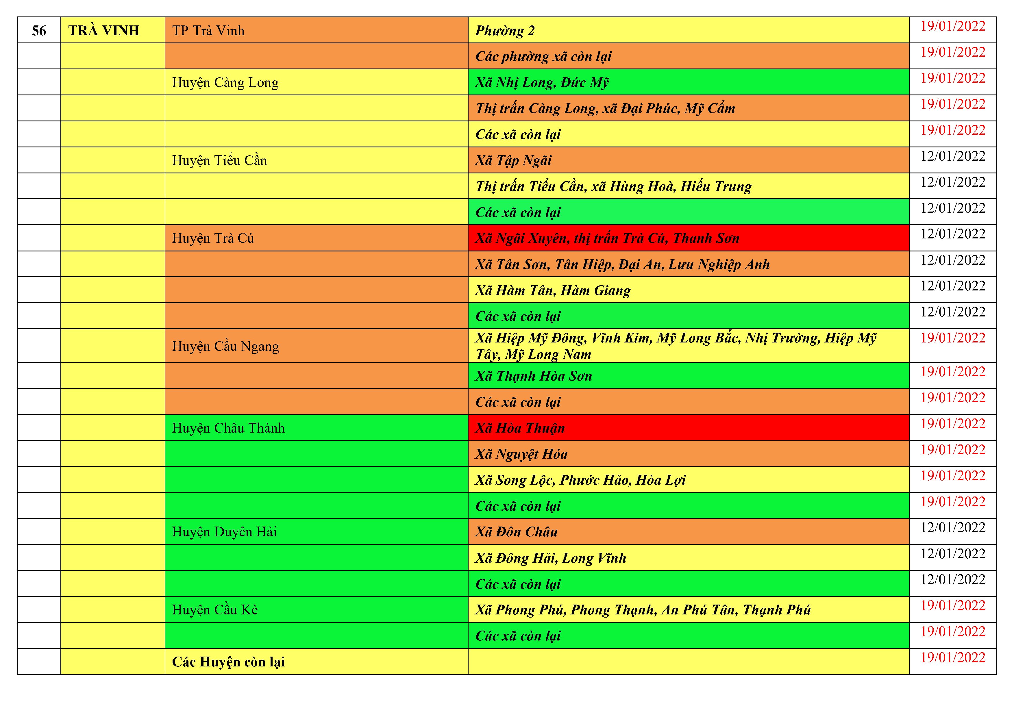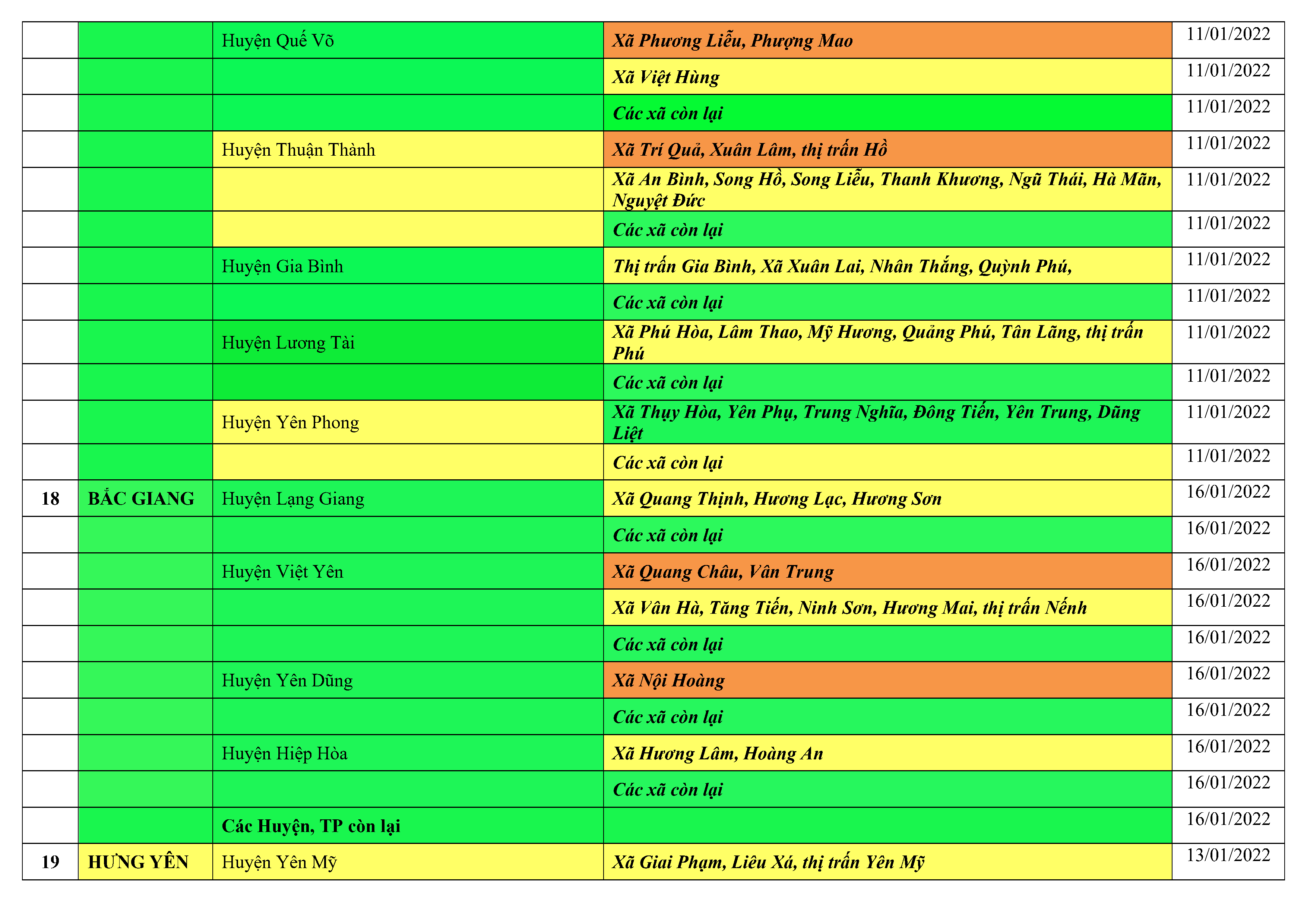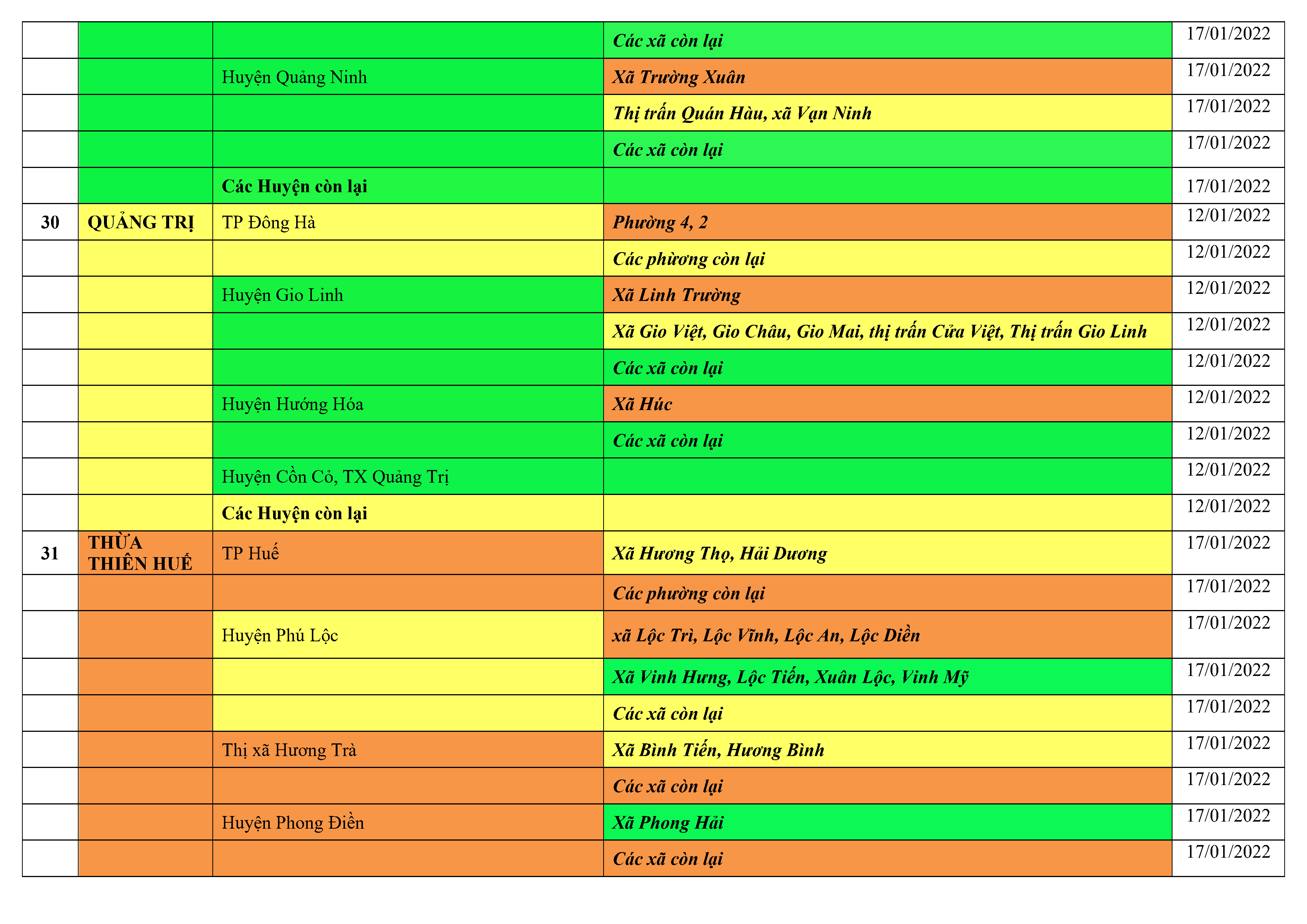 Áp dụng biện pháp tương ứng màu sắc ô cột theo thôn xóm; xã phường; quận huyện; tỉnh thành phố. Cách ly y tế dựa vào việc tiếp xúc, đi đến địa điểm và nơi cư trú có ca bệnh, theo Thông báo của Bộ Y tế, các tỉnh thành phố.