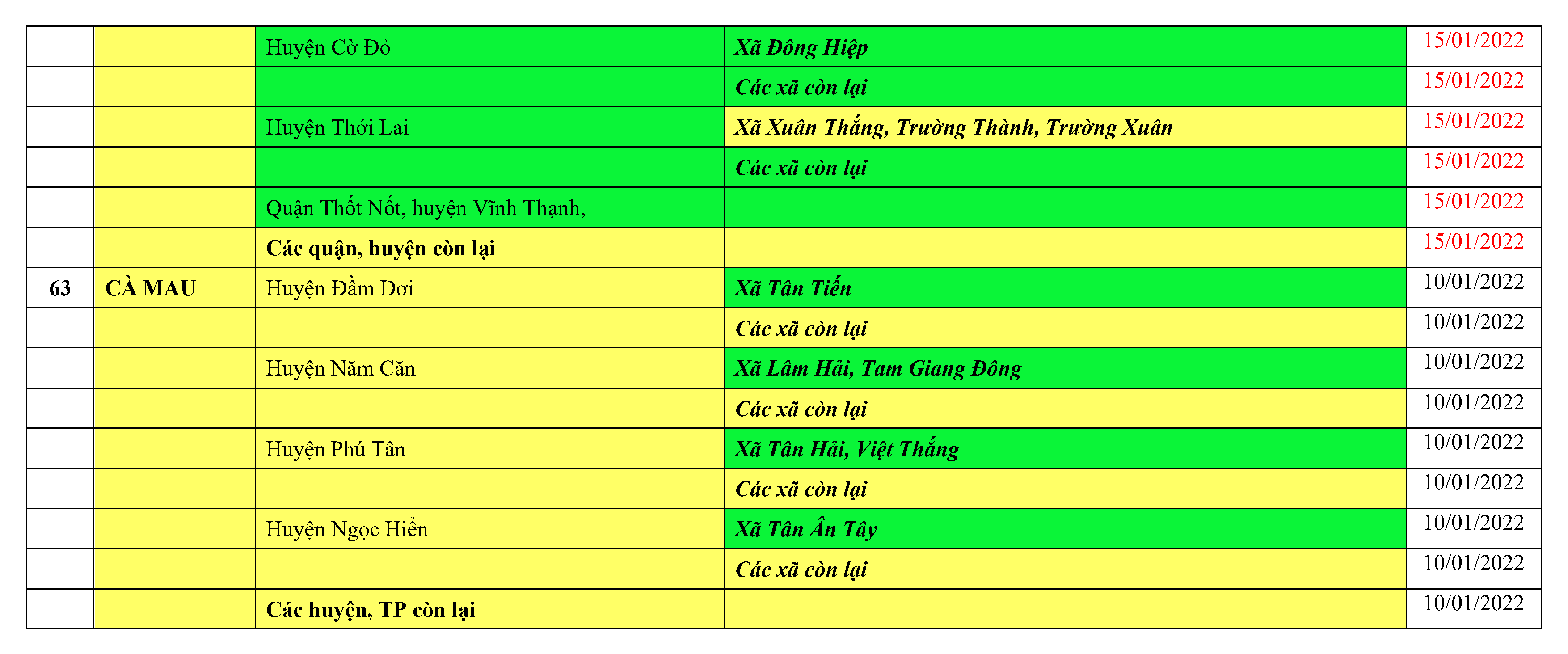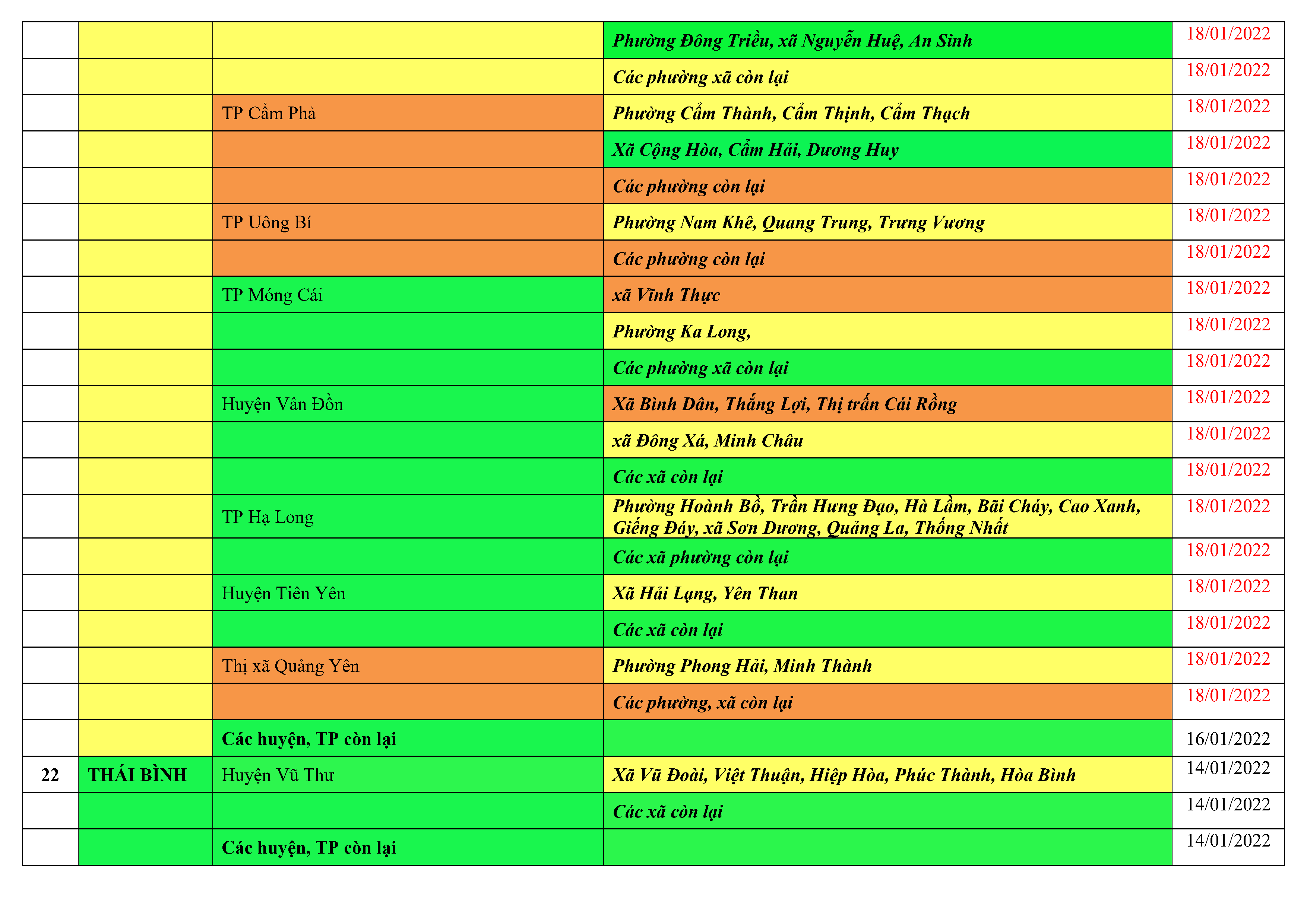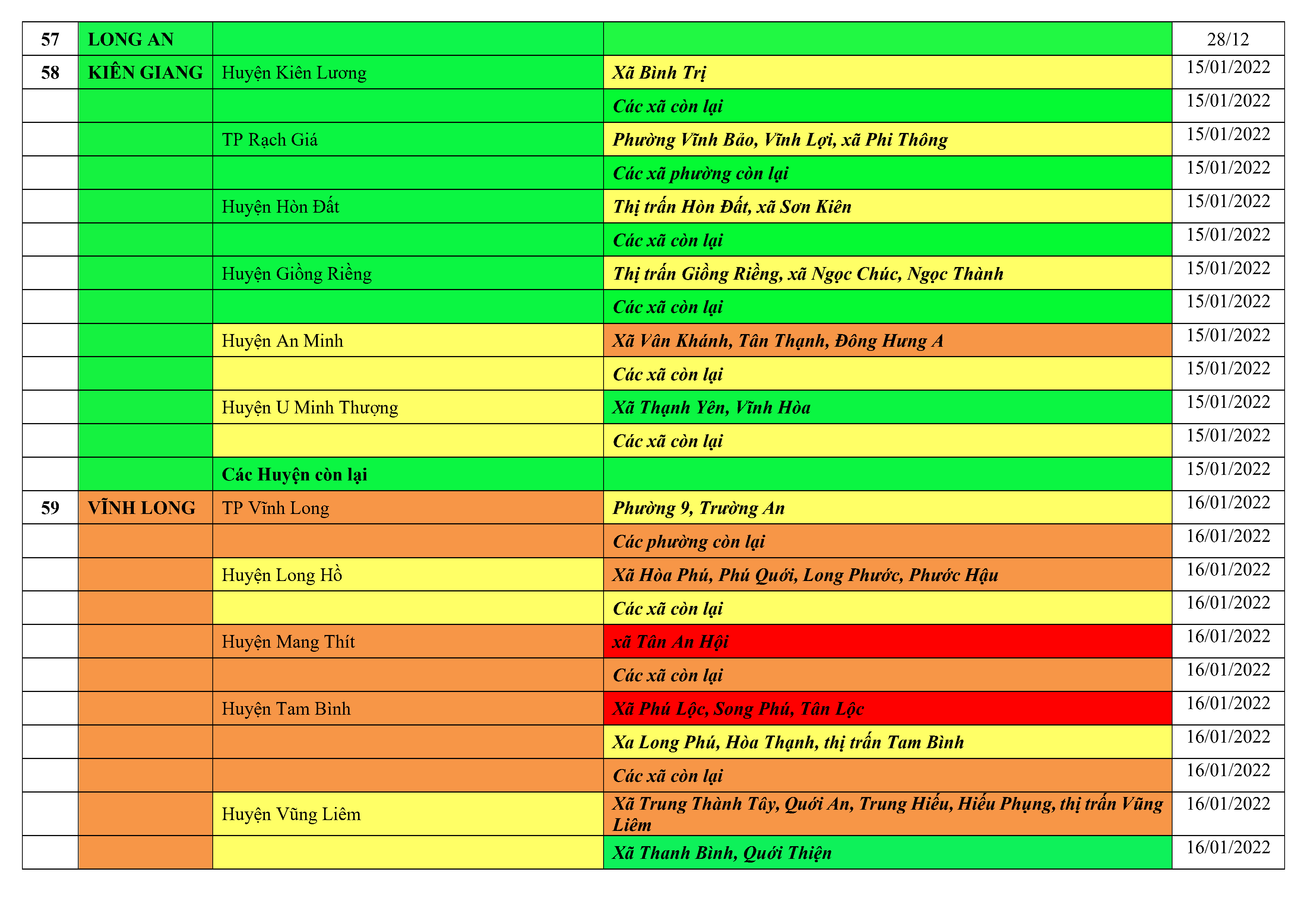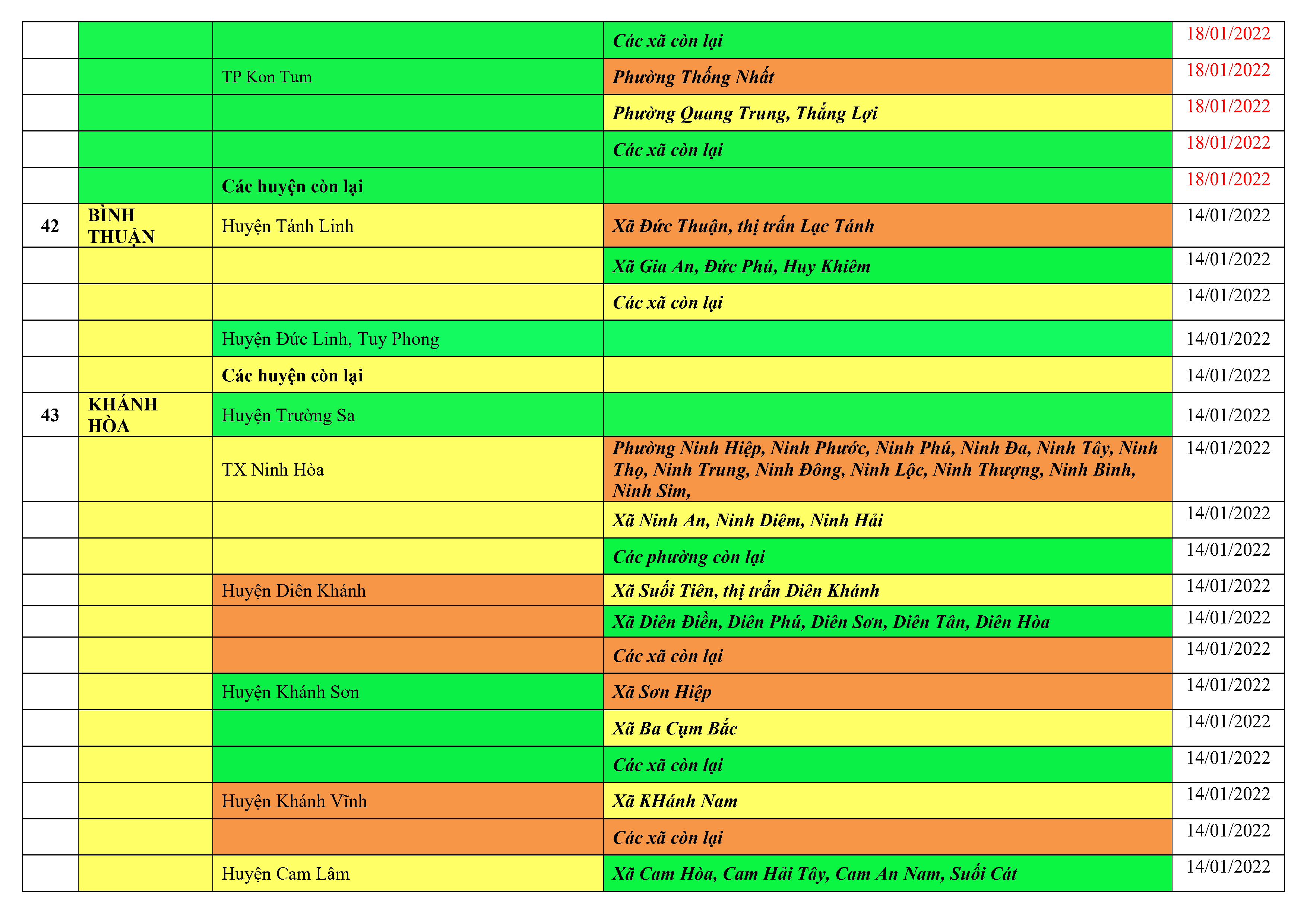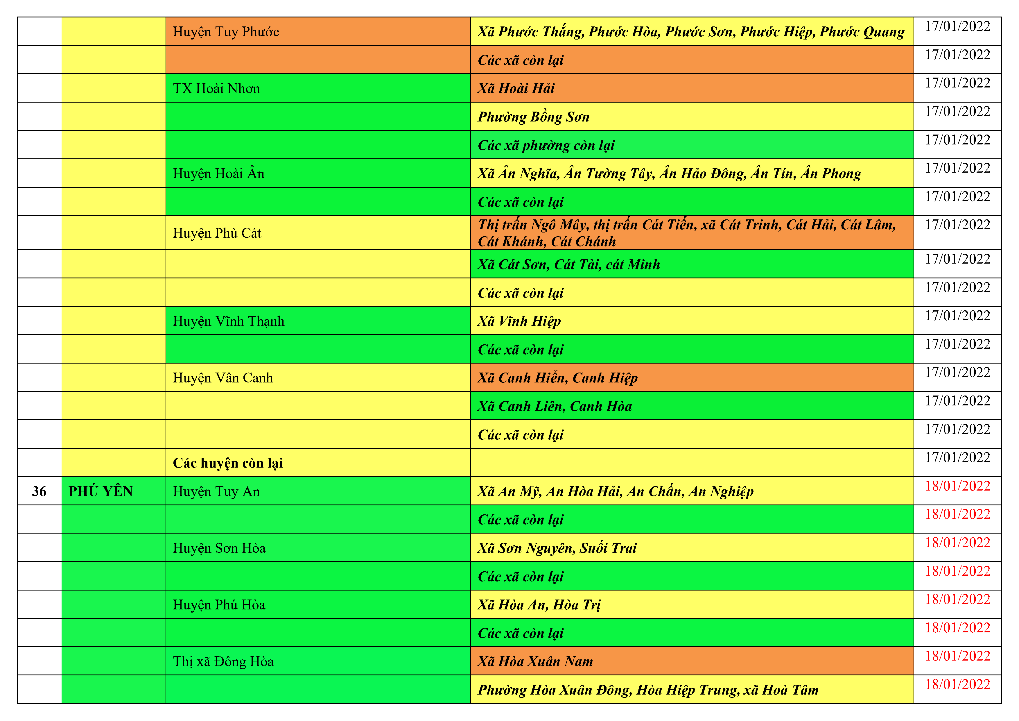 Áp dụng biện pháp tương ứng màu sắc ô cột theo thôn xóm; xã phường; quận huyện; tỉnh thành phố. Cách ly y tế dựa vào việc tiếp xúc, đi đến địa điểm và nơi cư trú có ca bệnh, theo Thông báo của Bộ Y tế, các tỉnh thành phố.