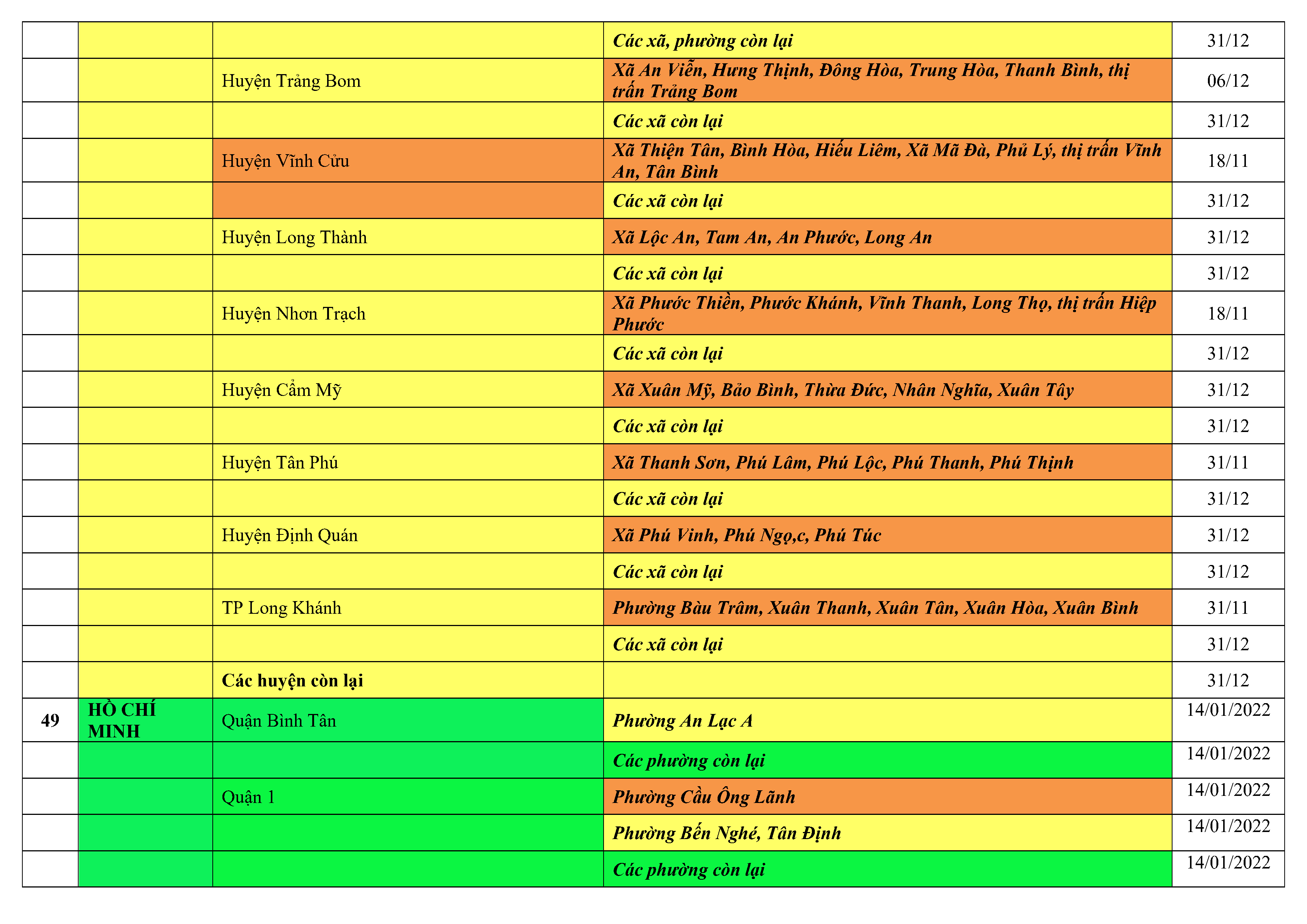 Áp dụng biện pháp tương ứng màu sắc ô cột theo thôn xóm; xã phường; quận huyện; tỉnh thành phố.